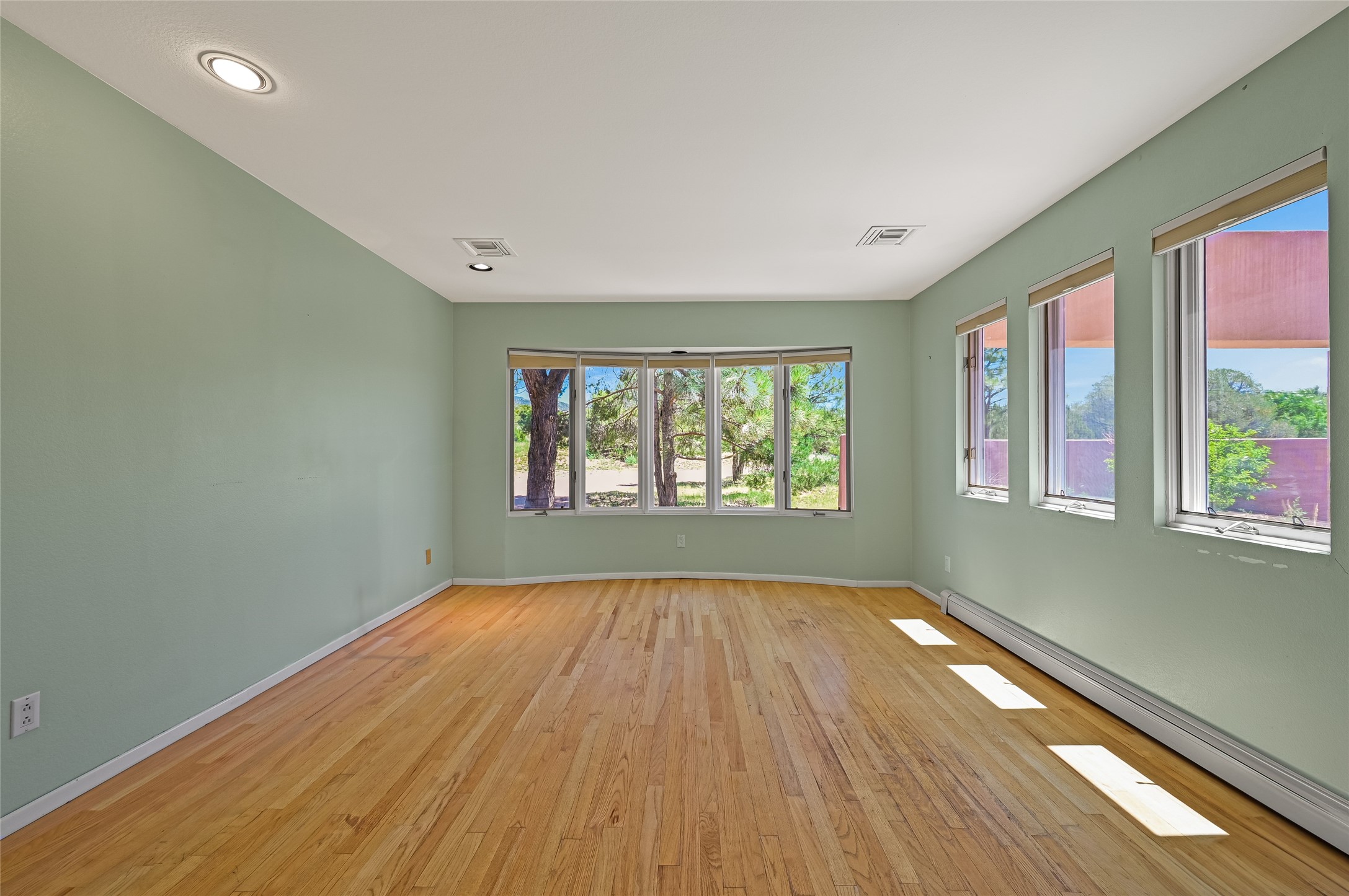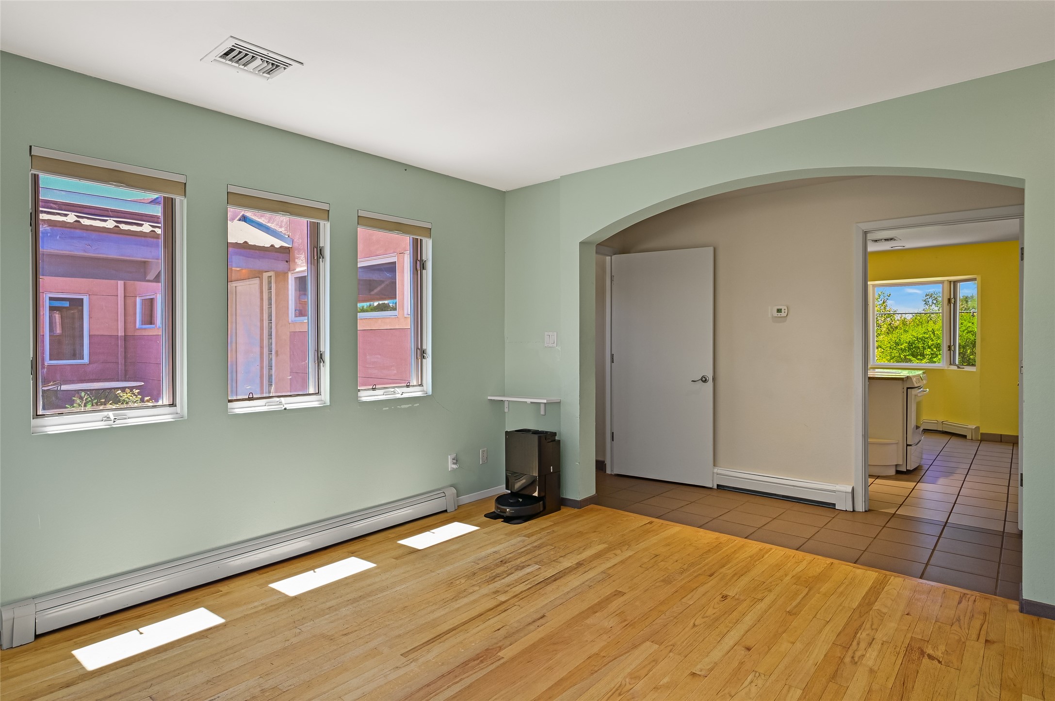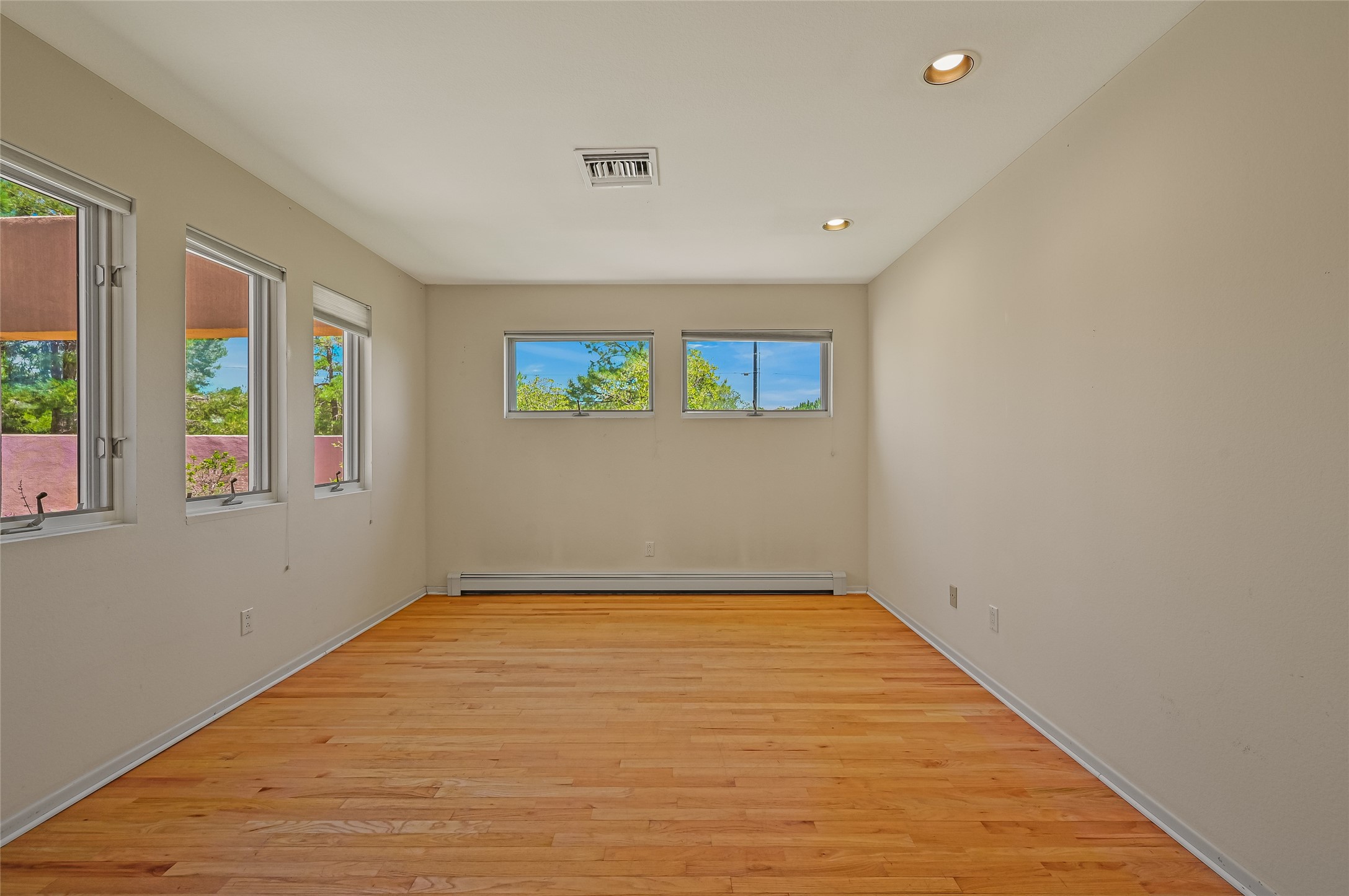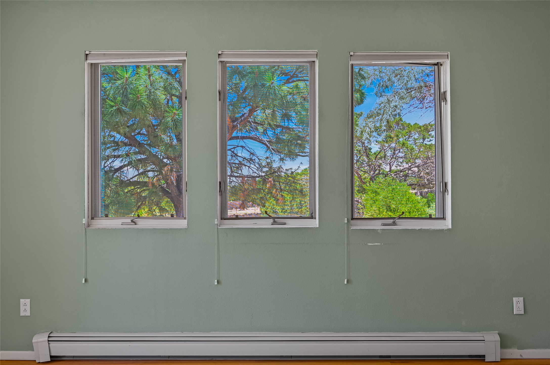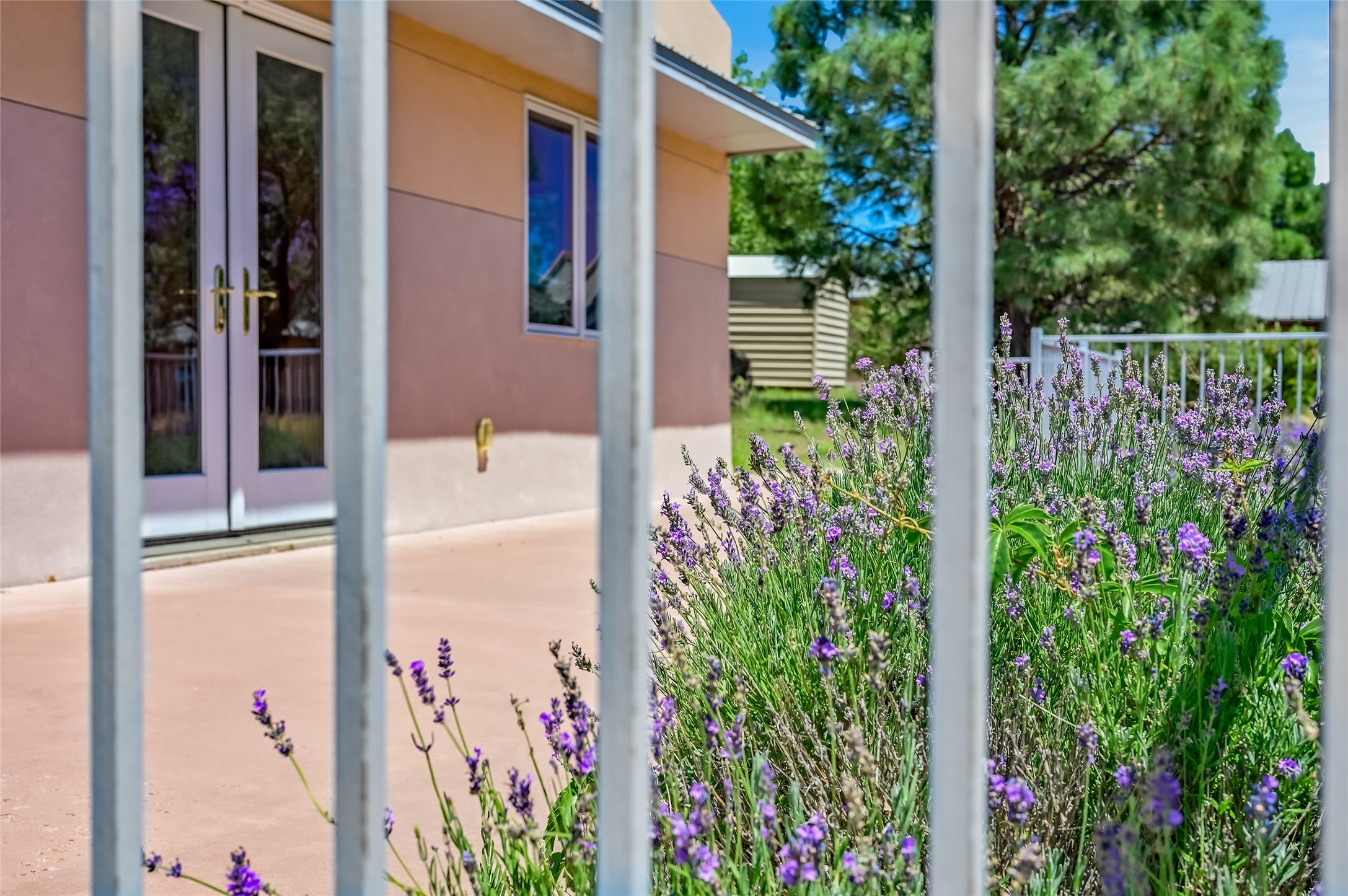 Income-producing property just 15 minutes from Downtown Santa Fe (3 mins. to St. Vincent's, close to shopping and the Rail Runner). Situated on a private 1-acre lot, this unique compound features a 3-bedroom main house designed with passive solar principles. The fully detached 2-bedroom guest house has its own entrance, kitchen, and bath-ideal for rentals, a guest suite, studio, or private office. Mature trees surround both homes, providing peace, privacy, and scenic beauty. The sustainability, and potential. Perfect for investors or multigenerational living
