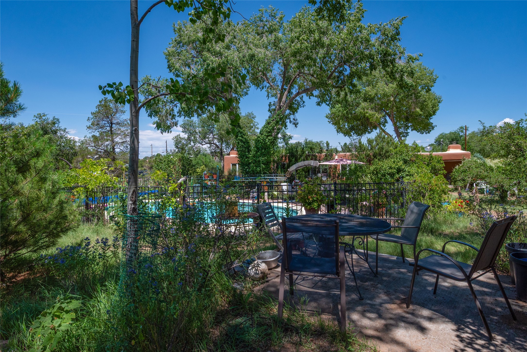 *** WEBSITE: oldcompoundsantafe.com ***What's your dream? A historic Santa Fe compound, nestled on about 2.3 semi-rural acres, with an adjoining 0.41 acre lot. Less than 3 miles from the Santa Fe Plaza, the 100+ year old adobe residence and five casitas surround a green central oasis and a small swimming pool. Imagine the possibilities: retreat, extended family, intentional community, workshops, therapy & health, retirement, or something not yet imagined. Reserved development rights on 2/3 acre and the vacant lot expand the possibilities. The current owners discovered the compound in 1969, bought it in 2006, and have been restoring, planting, and loving it ever since. They are ready to offer the compound to new owners, whatever their new dreams may be. * 6 units in 4 buildings, with 8 bedrooms, 8 baths, 9 fireplaces. Total heated space = 6215 sq. ft. (Note: Fires in fireplaces are photoshopped in. Buyer should verify fireplaces' functionality.) * Each unit has private outdoor garden space. * Extensive remodeling: kitchens and baths, oak and brick floors, new Pella windows, TPO roof, and more. * Landscaping with hundreds of native trees, bushes, vines, flowers, and grama grass; rock walls and fences. * 12' x 28' Barn with garage door.