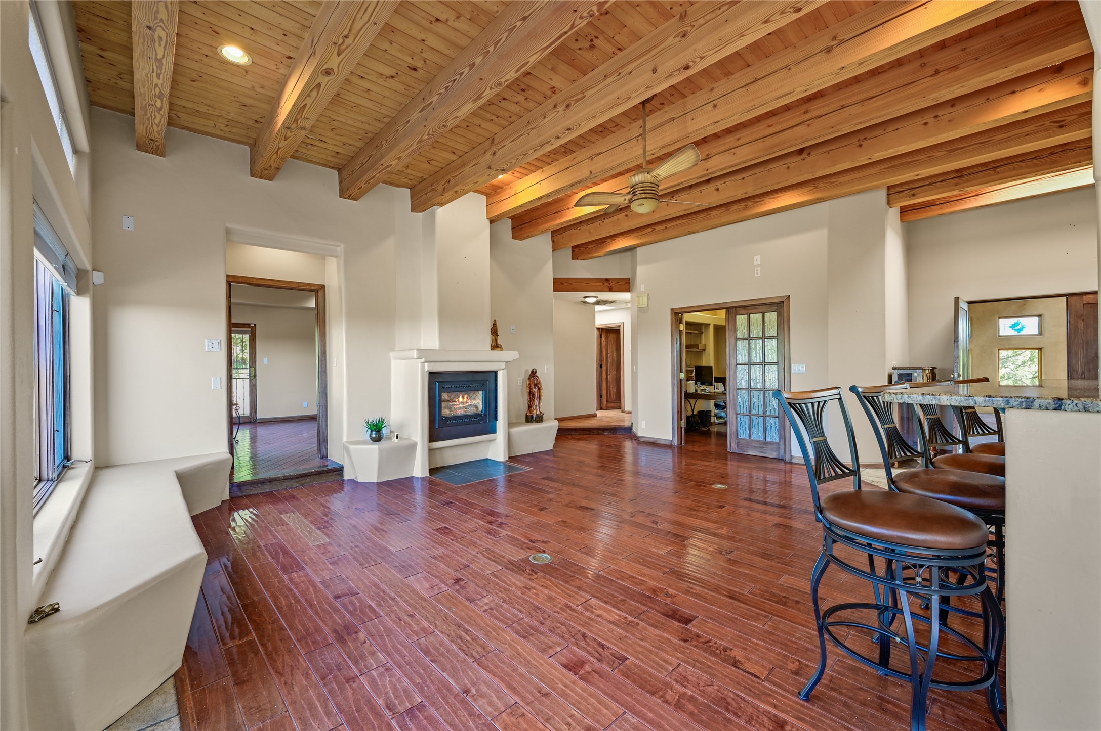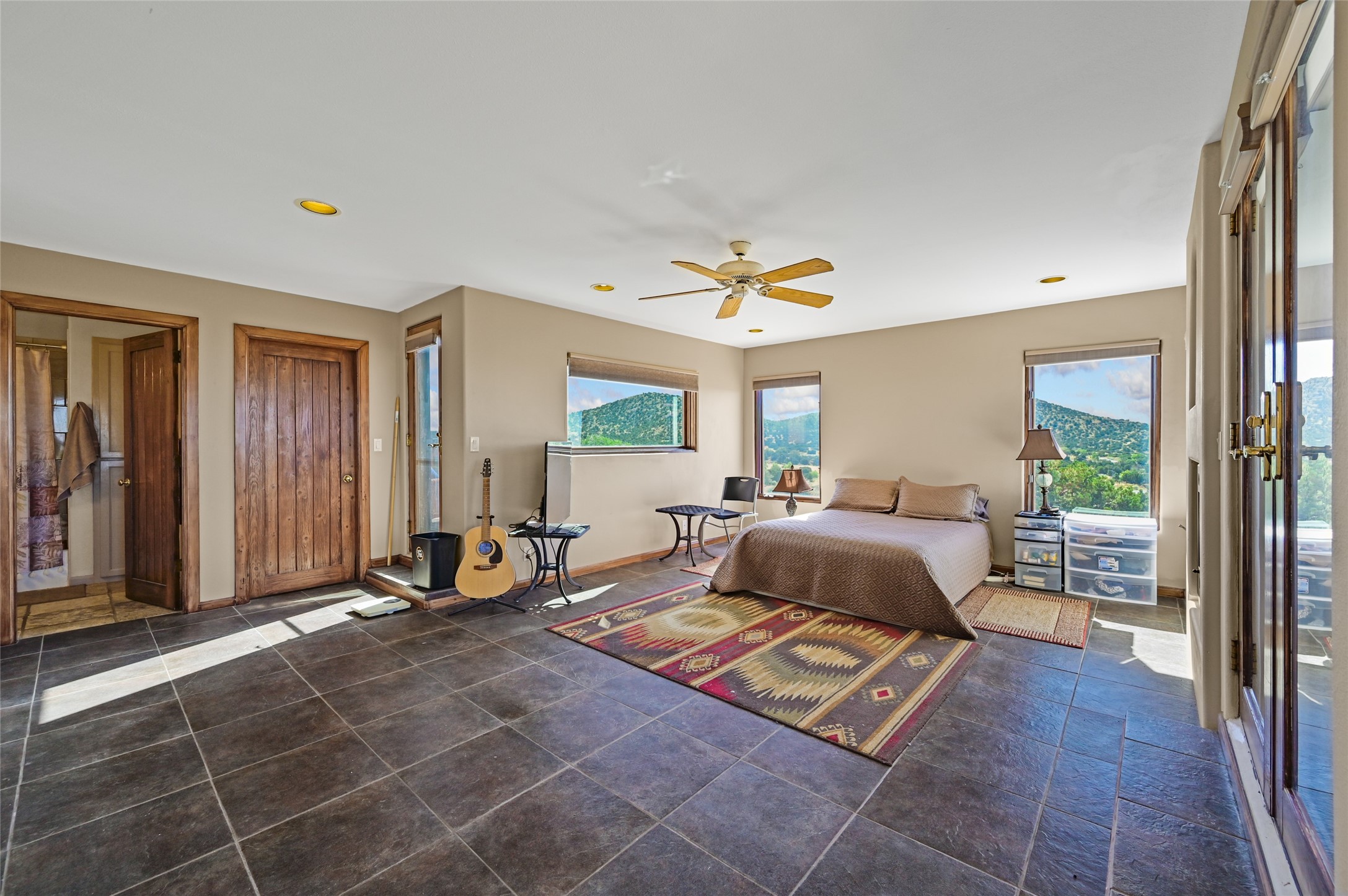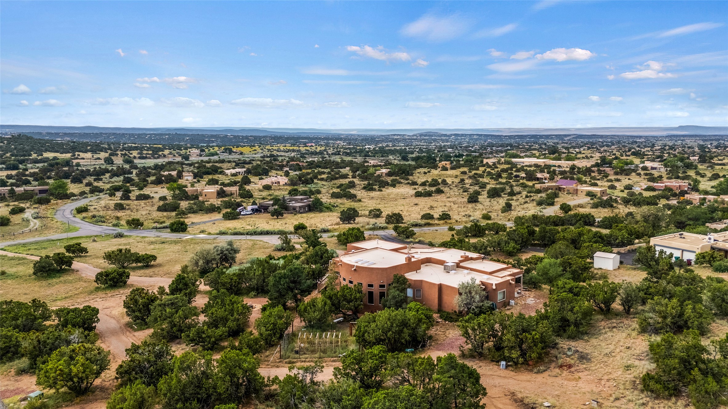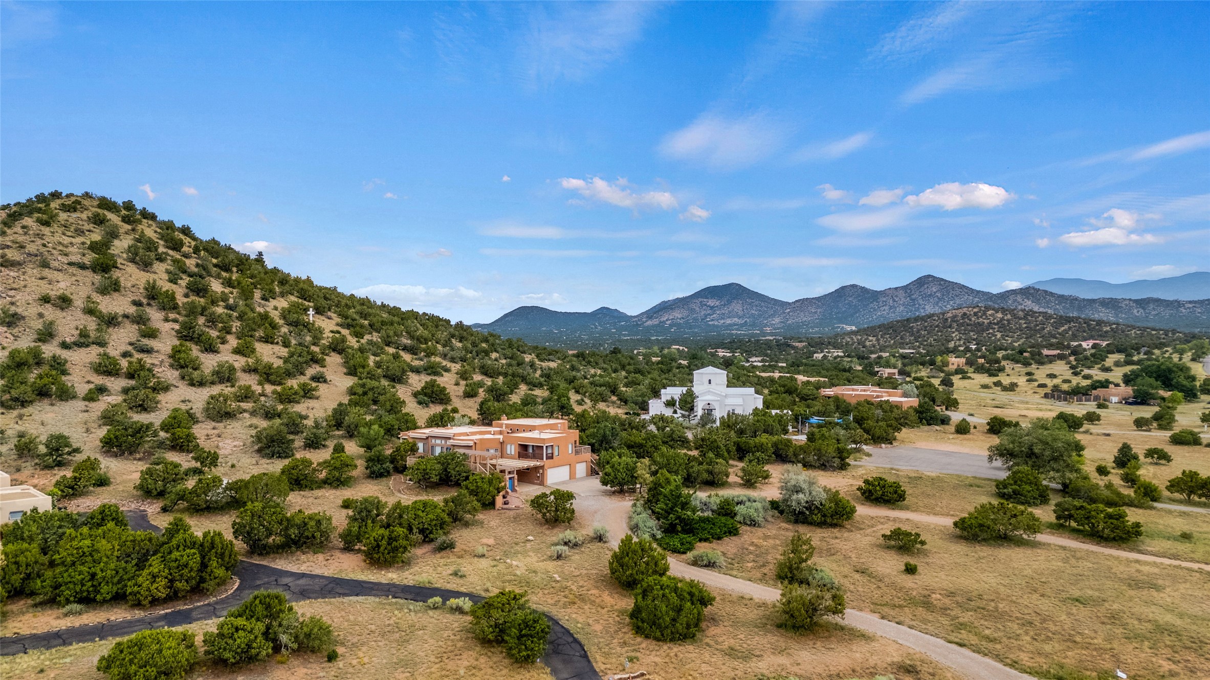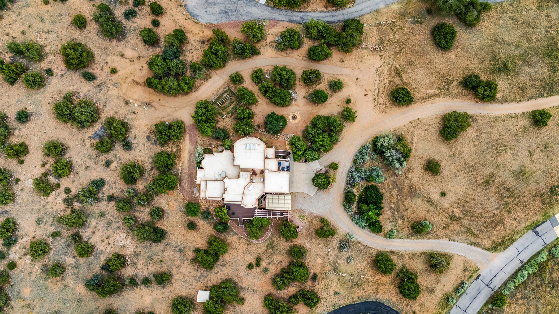 Don't miss this exceptional and unique property!Nestled in the tranquil Dos Griegos community, this exceptional property, "Jewel on the Hill," offers a unique blend of privacy and comfort. Set on 3.34 acres, the home is thoughtfully designed with a separated floor plan that includes two primary suites, two additional bedrooms, and a dedicated office space. One of the primary suites offers the convenience of direct entry from both the exterior and the main living area, providing flexible access and an added layer of privacy.The interior flows out to multiple decks, creating an ideal setting for enjoying the glorious views. A standout feature is the attached atrium studio, providing a perfect space for creative pursuits or relaxation. Additional features include a TPO roof with a transferable warranty and the benefit of no HOA fees. This property offers a truly special living experience in a wonderful location.