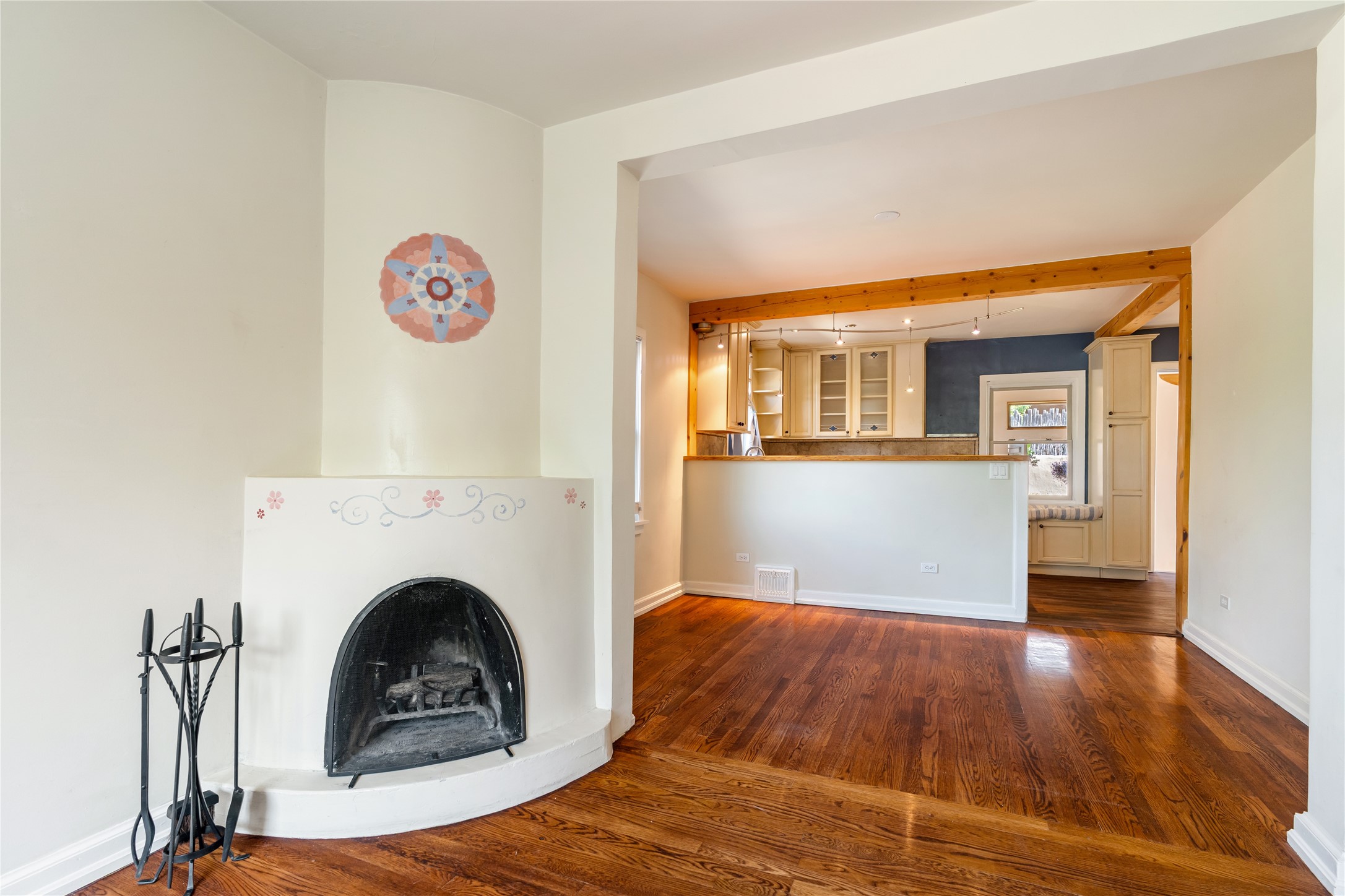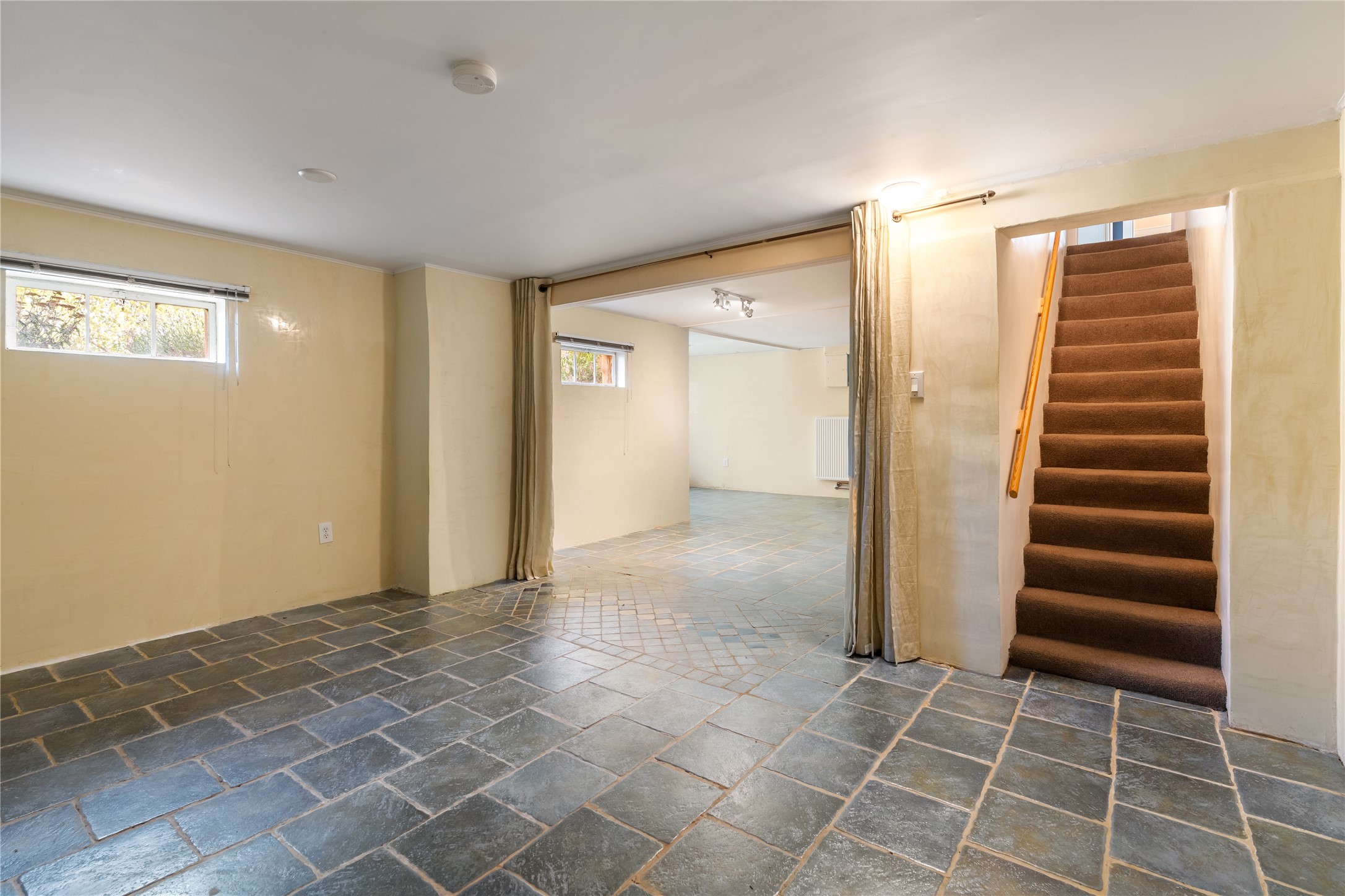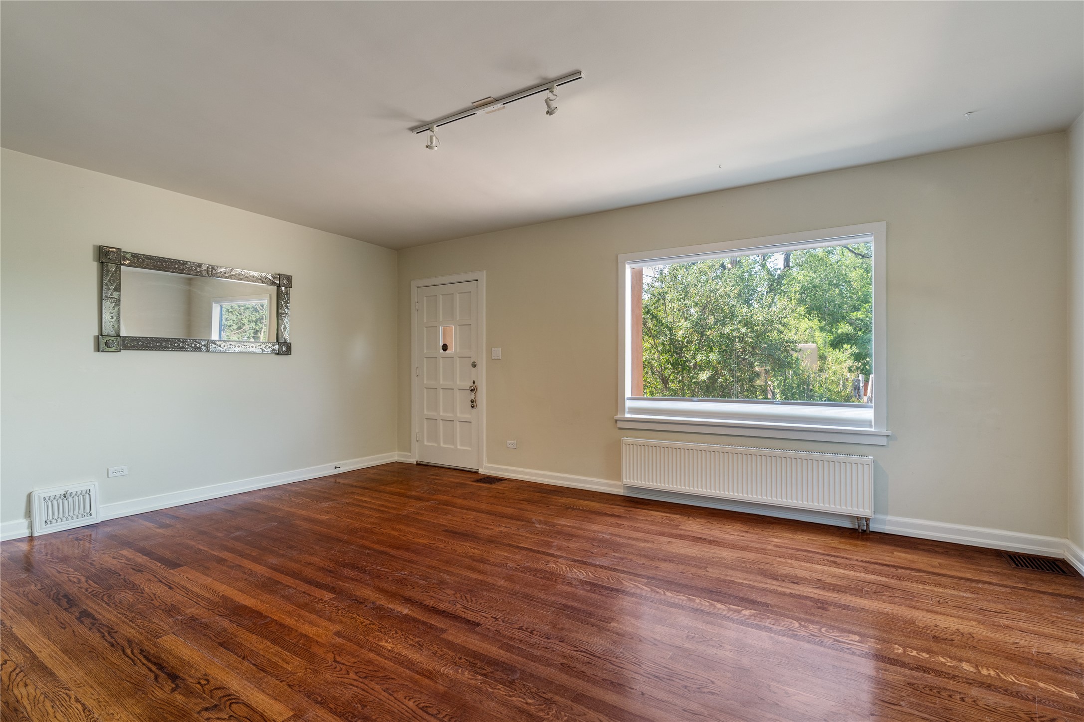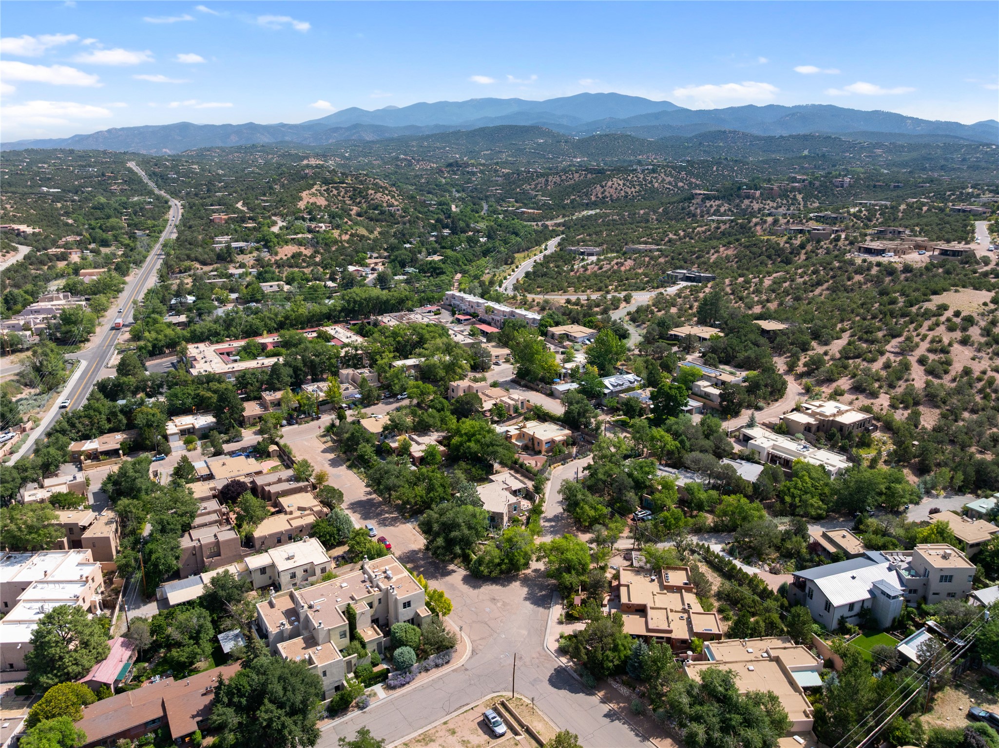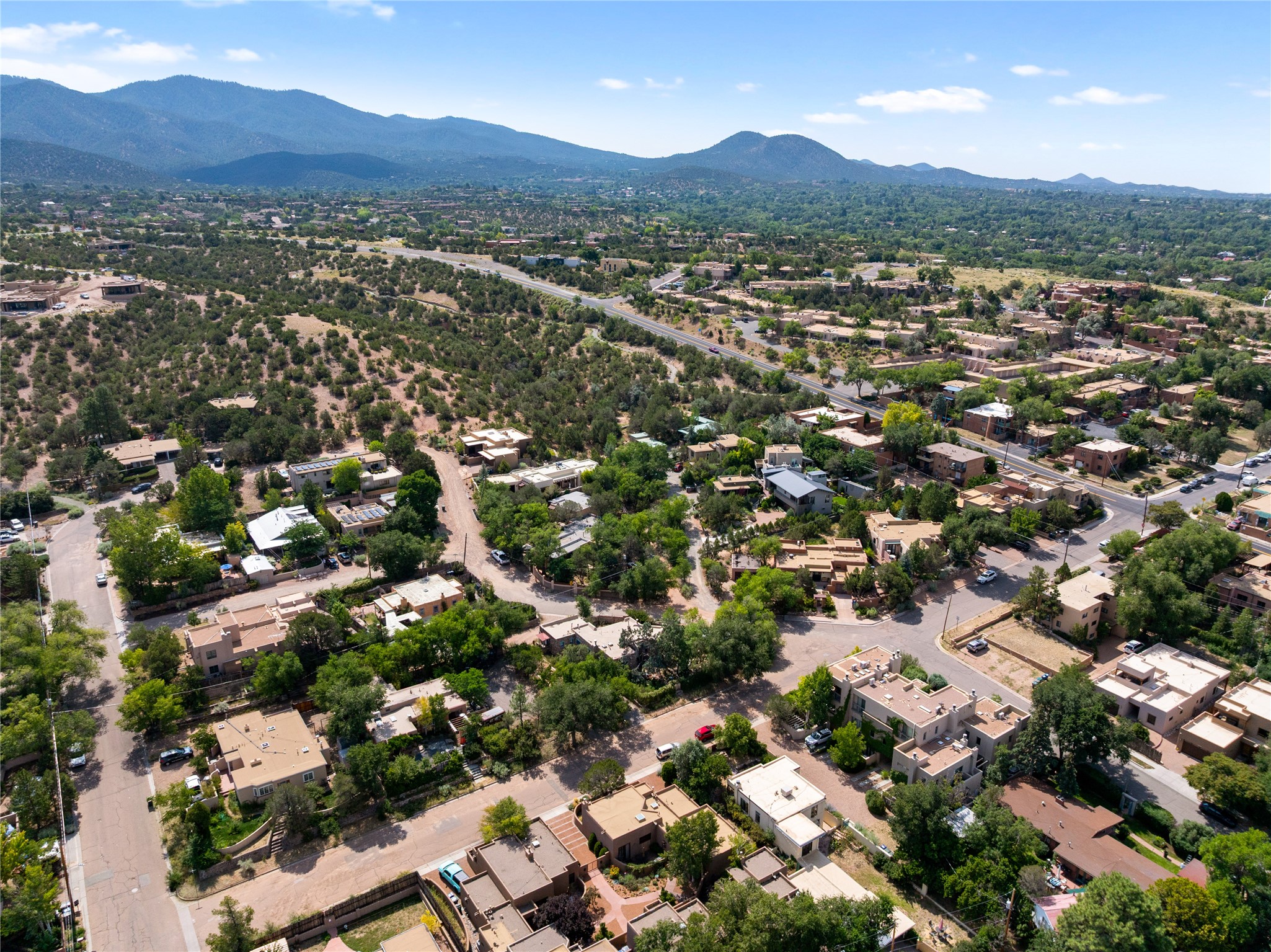 Step into Santa Fe history in this captivating 2,041+/- sq ft pre-war home, where artistic vision meets sustainable living just five blocks from the world-famous Santa Fe Plaza. This unique 3-bedroom, 2-bathroom property enchants from the moment you enter through the whimsical front gate created by renowned Galisteo artist John Massey. The home showcases remarkable historic character with original Santa Fe Penitentiary fencing enclosing the entire property, complete with original iron keys - perfect for pet owners. Venetian plaster finishes & tile flooring downstairs add authentic southwestern elegance, while beautiful hardwood floors grace the main living area and two upper level bedrooms, complemented by a cozy wood-burning kiva fireplace in the living room. Sustainable living features abound in this thoughtfully designed home. The south-facing passive solar design includes a bermed-in lower level that stays naturally cool in summer. The property boasts a 1,400-gallon underground rainwater collection system, mature low-water gardens, and organic raised beds cultivated for 18 years. A super-efficient 92% Lochinvar hydronic heating system minimizes utility costs, while energy-efficient induction cooking and double-pane low-E windows enhance efficiency. The roof was recently recoated in 2025. The outdoor spaces create a true paradise with a tranquil stone and sculpture garden and mature pond featuring over a dozen Koi fish, water lilies, and aquatic plants. A complete outdoor kitchen and dining pavilion with fireplace built from reclaimed Santa Fe Plaza brickwork extends living space seamlessly. Two separate living areas with independent entrances offer exceptional flexibility for multi-generational living, home office space, or rental income potential. The downstairs entrance can be converted back to garage access if desired. This is more than a home--it's a Santa Fe lifestyle combining historic charm, artistic flair, and modern efficiency. Schedule a showing today!