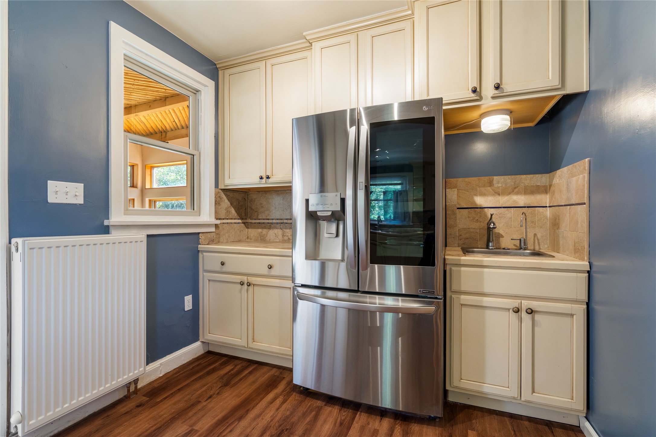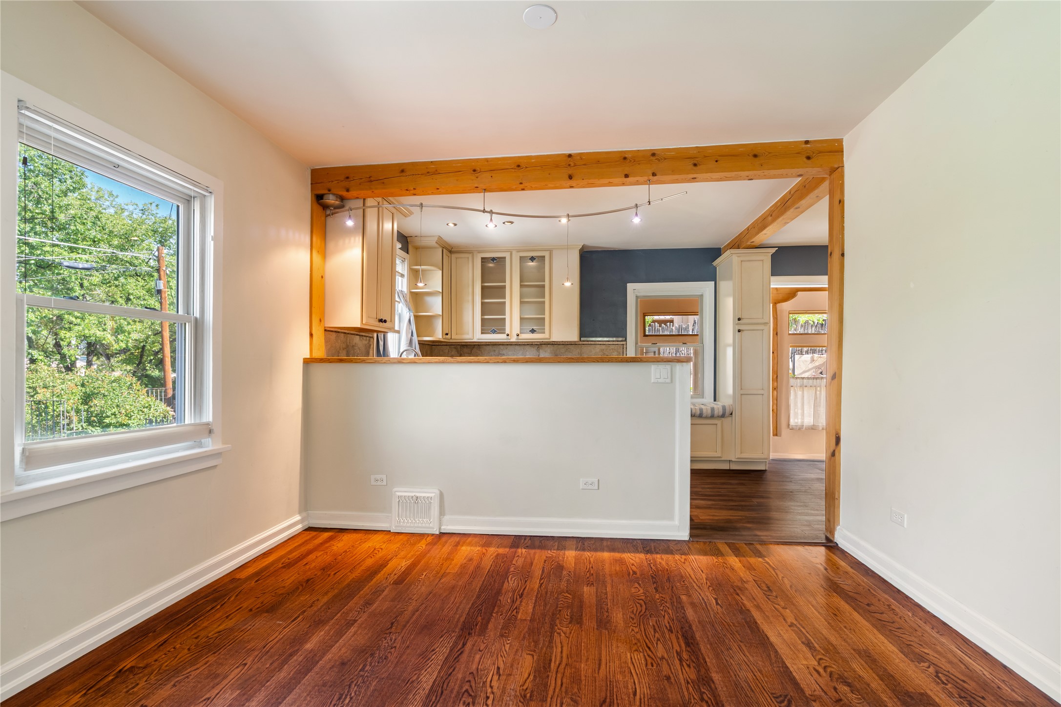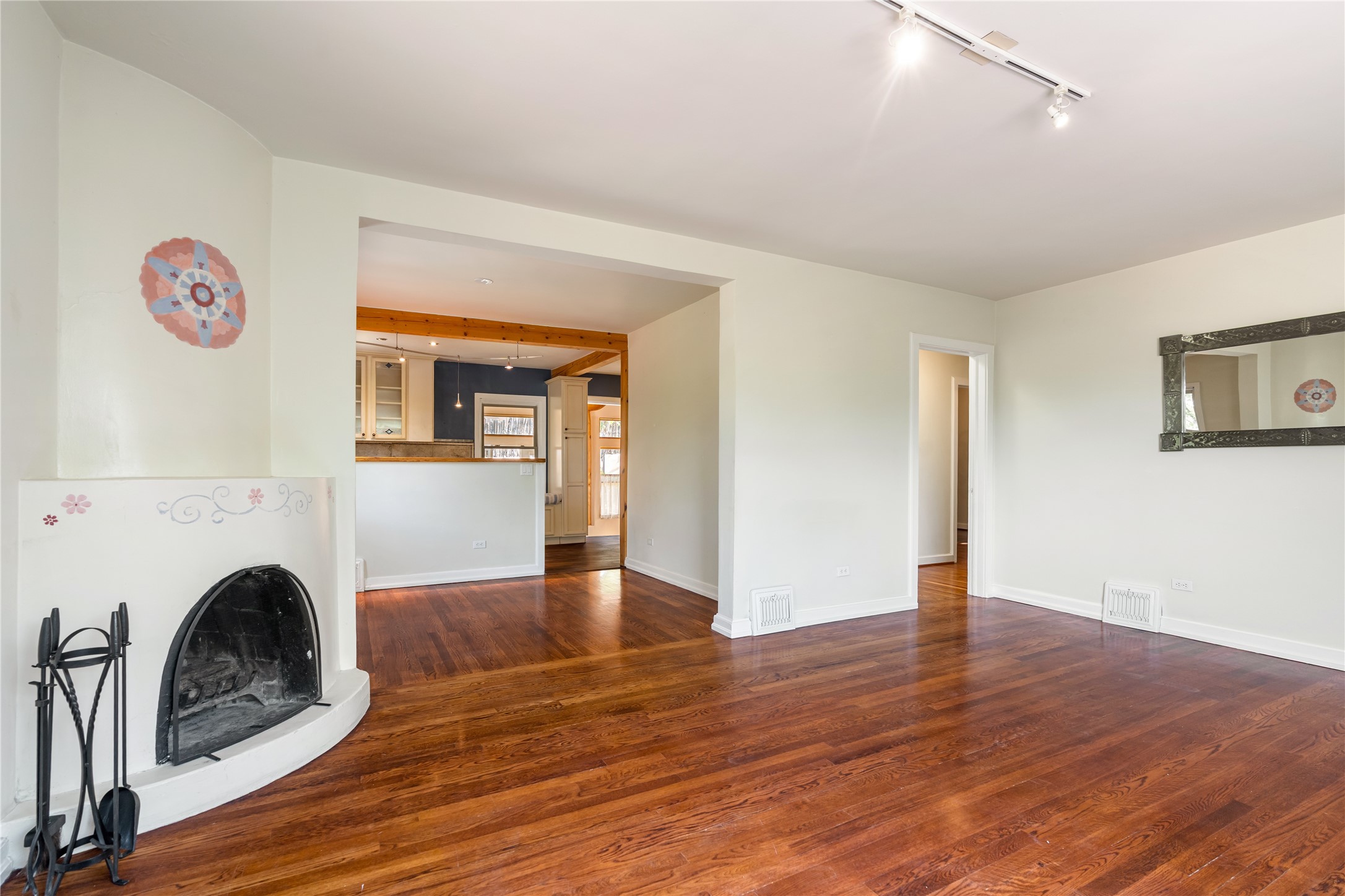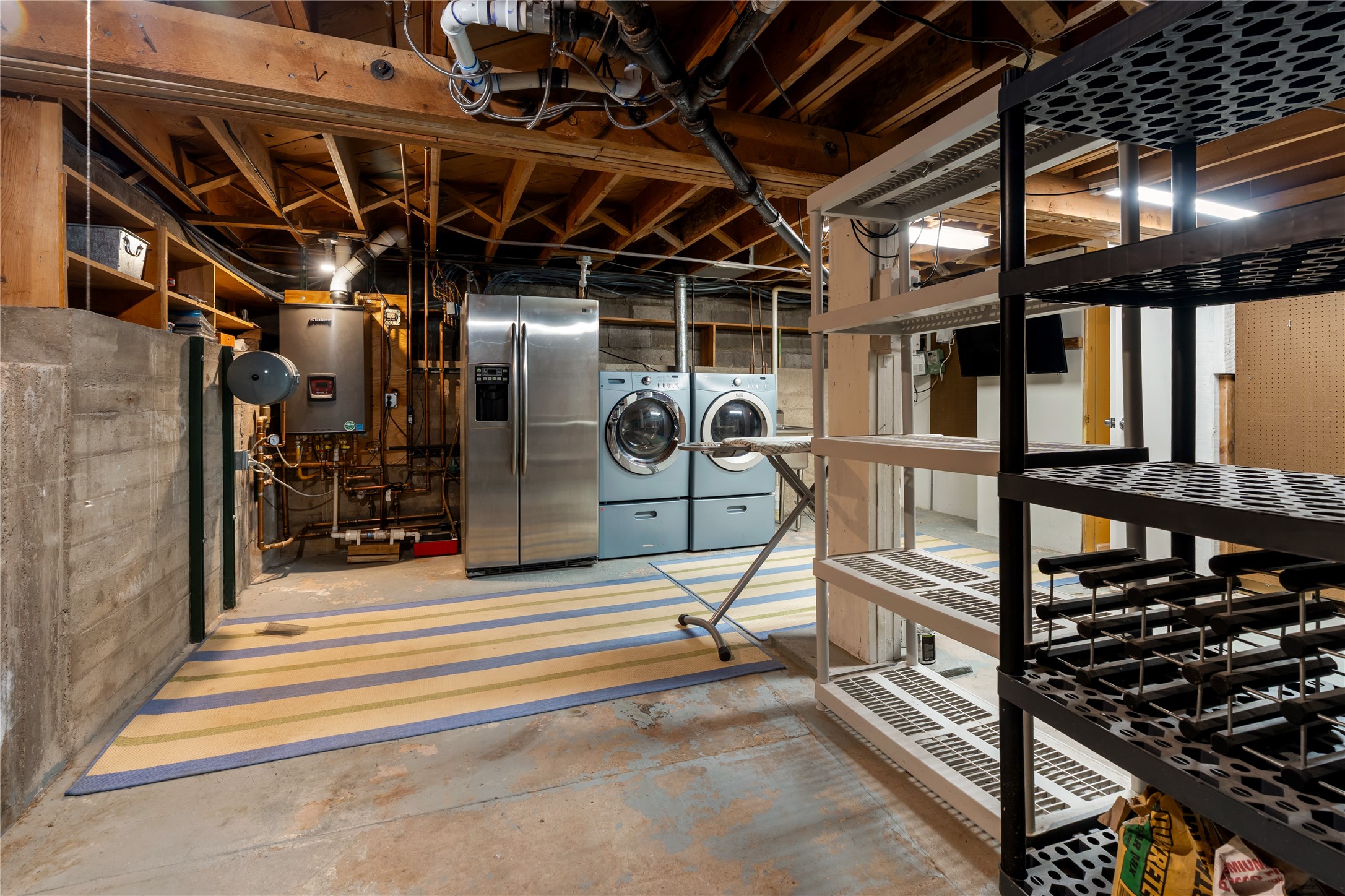 Step into Santa Fe history in this captivating 2,041+/- sq ft pre-war home, where artistic vision meets sustainable living just five blocks from the world-famous Santa Fe Plaza. This unique 3-bedroom, 2-bathroom property enchants from the moment you enter through the whimsical front gate created by renowned Galisteo artist John Massey. The home showcases remarkable historic character with original Santa Fe Penitentiary fencing enclosing the entire property, complete with original iron keys - perfect for pet owners. Venetian plaster finishes & tile flooring downstairs add authentic southwestern elegance, while beautiful hardwood floors grace the main living area and two upper level bedrooms, complemented by a cozy wood-burning kiva fireplace in the living room. Sustainable living features abound in this thoughtfully designed home. The south-facing passive solar design includes a bermed-in lower level that stays naturally cool in summer. The property boasts a 1,400-gallon underground rainwater collection system, mature low-water gardens, and organic raised beds cultivated for 18 years. A super-efficient 92% Lochinvar hydronic heating system minimizes utility costs, while energy-efficient induction cooking and double-pane low-E windows enhance efficiency. The roof was recently recoated in 2025. The outdoor spaces create a true paradise with a tranquil stone and sculpture garden and mature pond featuring over a dozen Koi fish, water lilies, and aquatic plants. A complete outdoor kitchen and dining pavilion with fireplace built from reclaimed Santa Fe Plaza brickwork extends living space seamlessly. Two separate living areas with independent entrances offer exceptional flexibility for multi-generational living, home office space, or rental income potential. The downstairs entrance can be converted back to garage access if desired. This is more than a home--it's a Santa Fe lifestyle combining historic charm, artistic flair, and modern efficiency. Schedule a showing today!