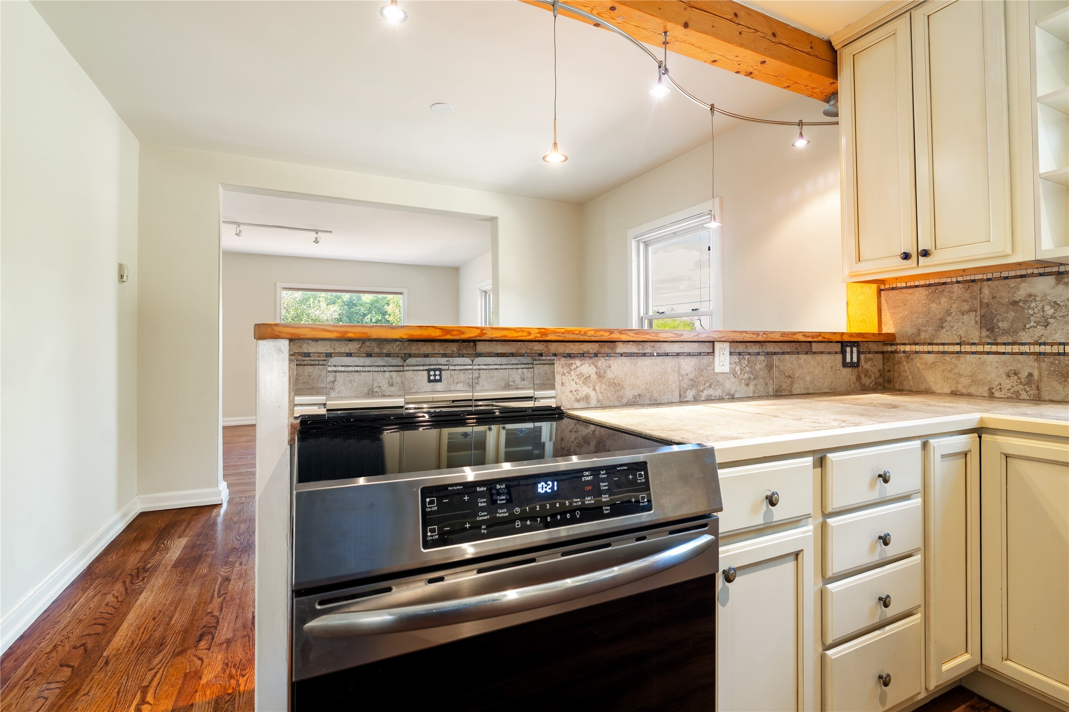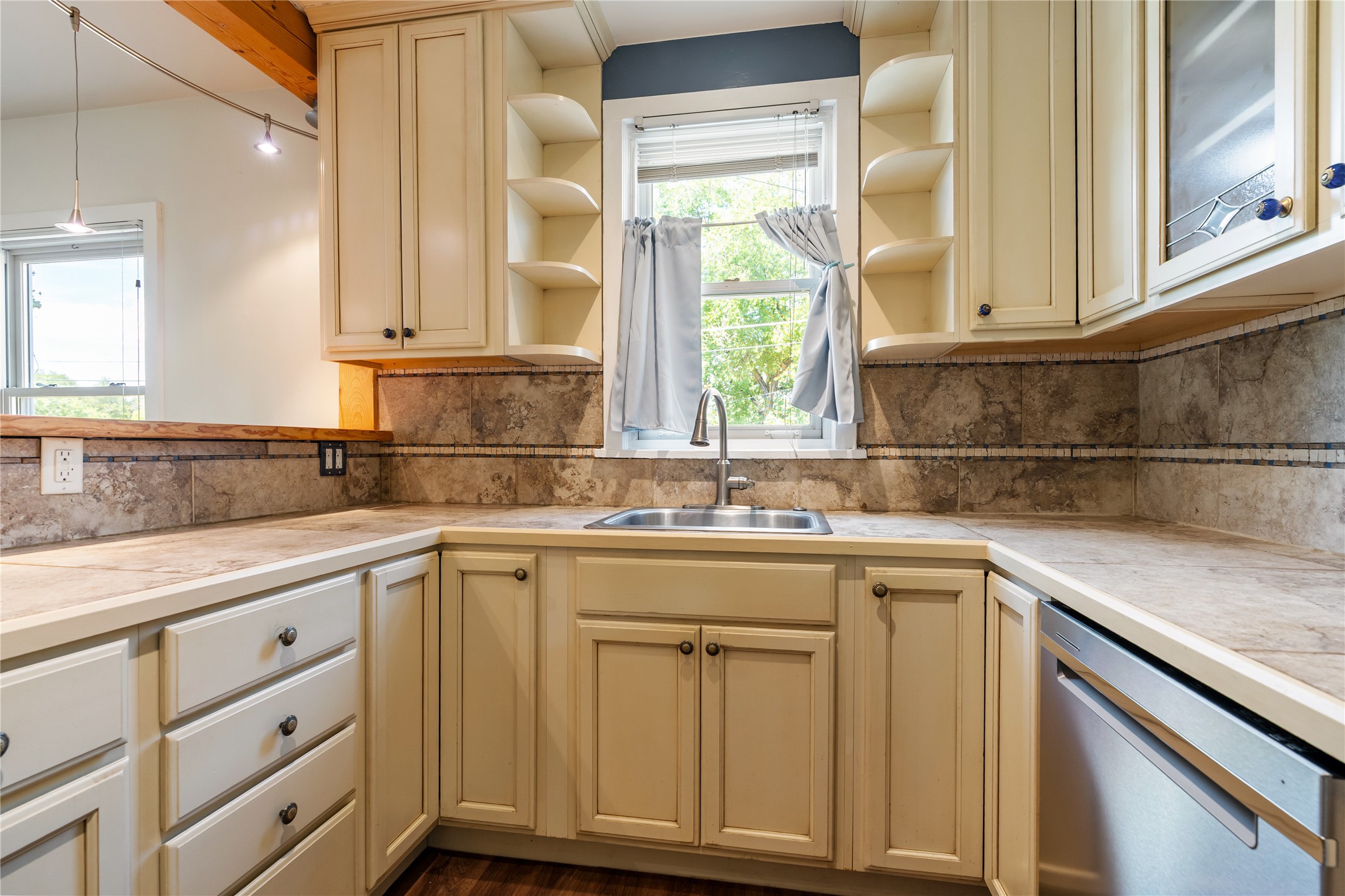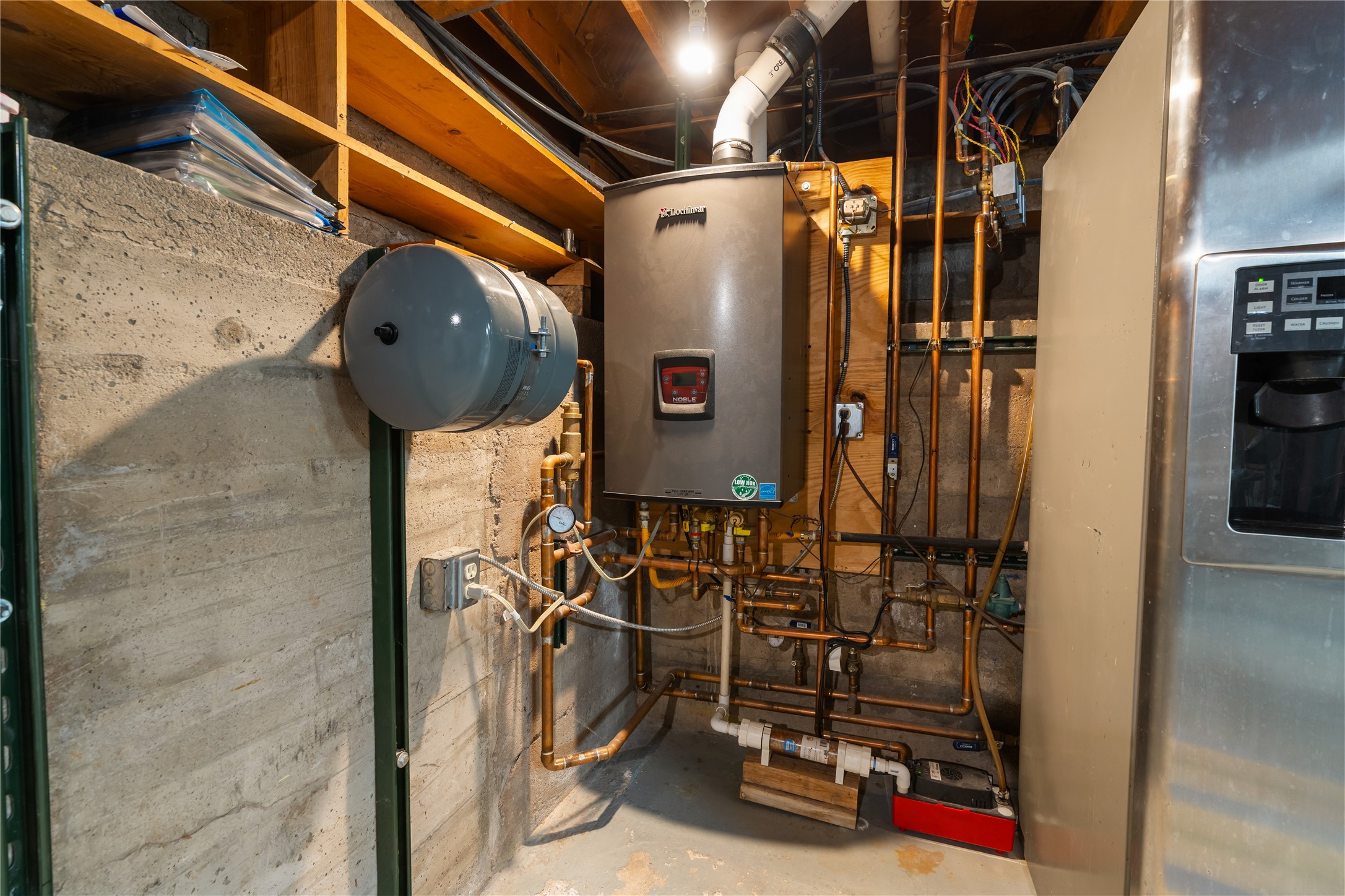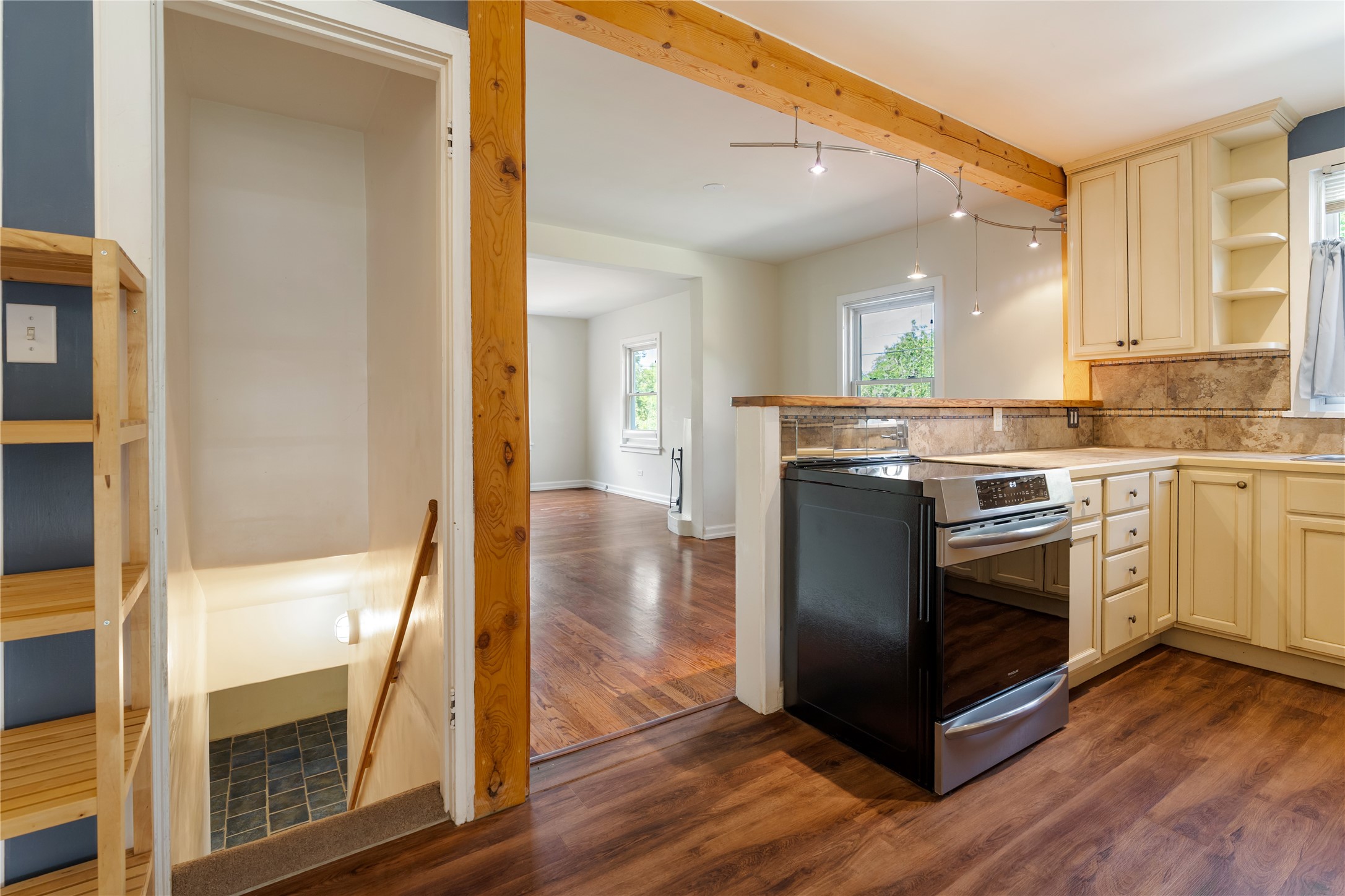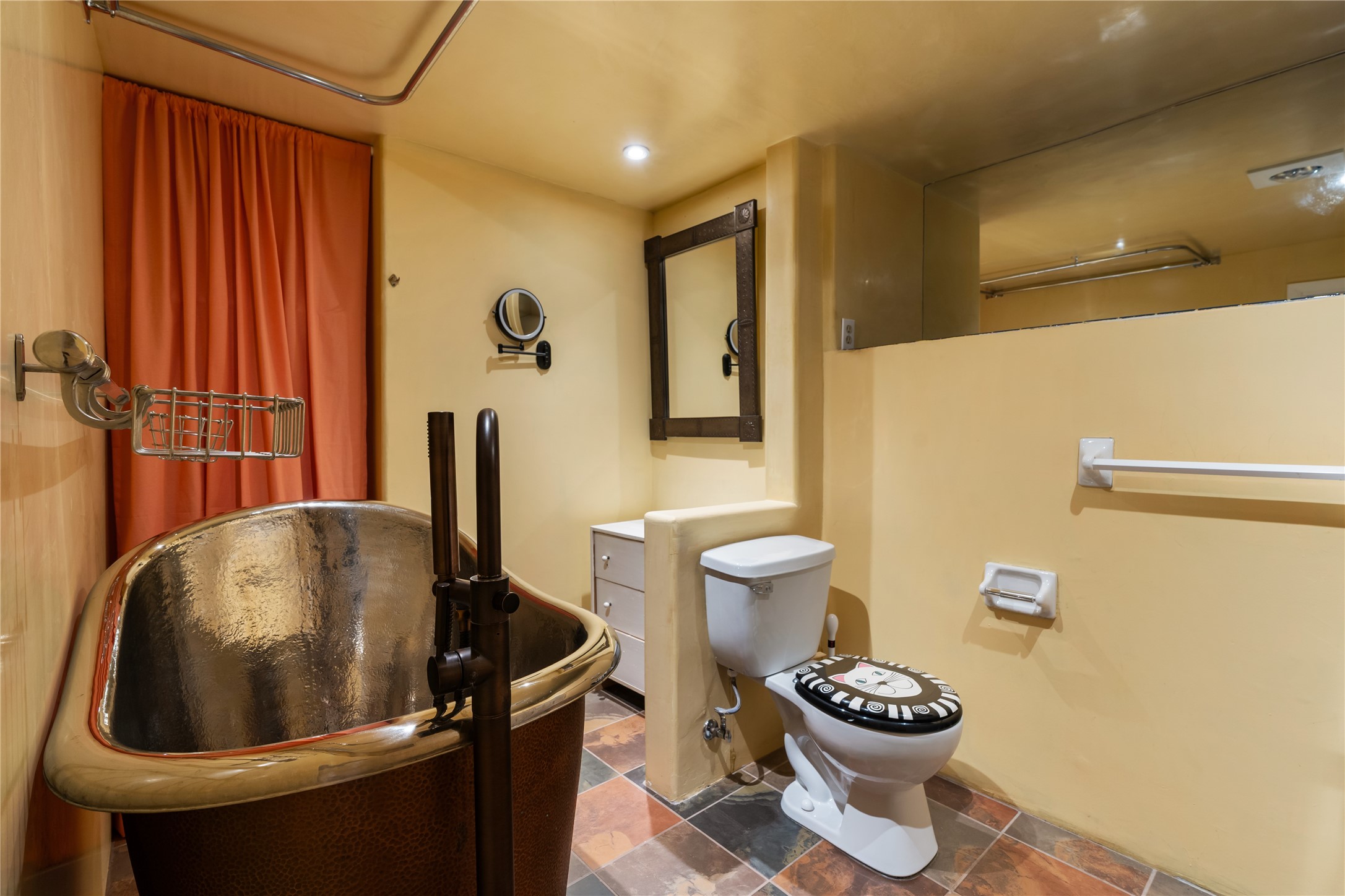 Step into Santa Fe history in this captivating 2,041+/- sq ft pre-war home, where artistic vision meets sustainable living just five blocks from the world-famous Santa Fe Plaza. This unique 3-bedroom, 2-bathroom property enchants from the moment you enter through the whimsical front gate created by renowned Galisteo artist John Massey. The home showcases remarkable historic character with original Santa Fe Penitentiary fencing enclosing the entire property, complete with original iron keys - perfect for pet owners. Venetian plaster finishes & tile flooring downstairs add authentic southwestern elegance, while beautiful hardwood floors grace the main living area and two upper level bedrooms, complemented by a cozy wood-burning kiva fireplace in the living room. Sustainable living features abound in this thoughtfully designed home. The south-facing passive solar design includes a bermed-in lower level that stays naturally cool in summer. The property boasts a 1,400-gallon underground rainwater collection system, mature low-water gardens, and organic raised beds cultivated for 18 years. A super-efficient 92% Lochinvar hydronic heating system minimizes utility costs, while energy-efficient induction cooking and double-pane low-E windows enhance efficiency. The roof was recently recoated in 2025. The outdoor spaces create a true paradise with a tranquil stone and sculpture garden and mature pond featuring over a dozen Koi fish, water lilies, and aquatic plants. A complete outdoor kitchen and dining pavilion with fireplace built from reclaimed Santa Fe Plaza brickwork extends living space seamlessly. Two separate living areas with independent entrances offer exceptional flexibility for multi-generational living, home office space, or rental income potential. The downstairs entrance can be converted back to garage access if desired. This is more than a home--it's a Santa Fe lifestyle combining historic charm, artistic flair, and modern efficiency. Schedule a showing today!