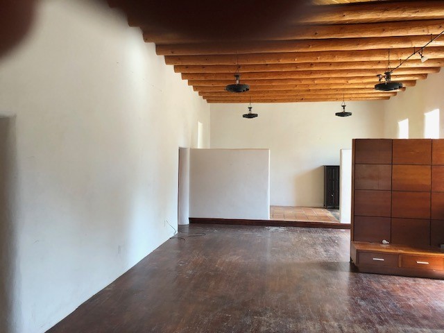 Lovely 2 bedroom 2 bath adobe home with mud plaster in the charming and historic village of El Rito, settled in 1807 along the creek that inspired its name. Home to many artists, it has its own studio tour in October. This home is just as charming as the village in which it resides. It was originally a Methodist church but has been remodeled. The sanctuary is a large living room with high ceiling and vigas, and latillas in a herringbone pattern. Adobe interior walls and wooden doors give the house a warm feeling. Updated kitchen and large dining area are open to each other and open onto a portal on the side of the house. The kitchen has an induction range with a convection oven and an island for extra prep space and seating. Hardwood and tile floors, wood-burning fireplace in the dining room, views of the Jemez Mountains. Heating is mini-split with ac/heat and radiant in the bathrooms and back bedroom. The property is fenced and has apricot and apple trees. Opens on the back to fields.
