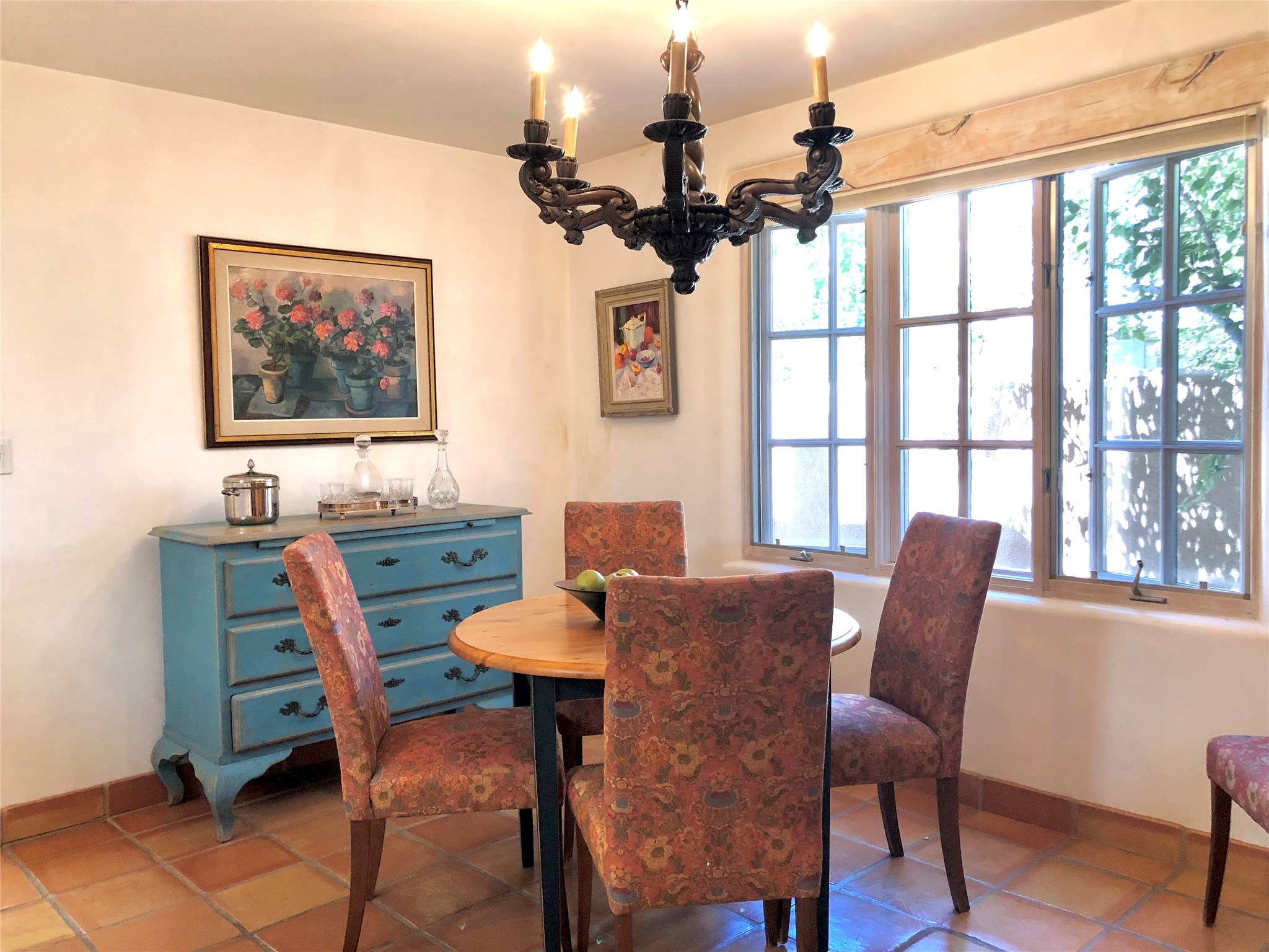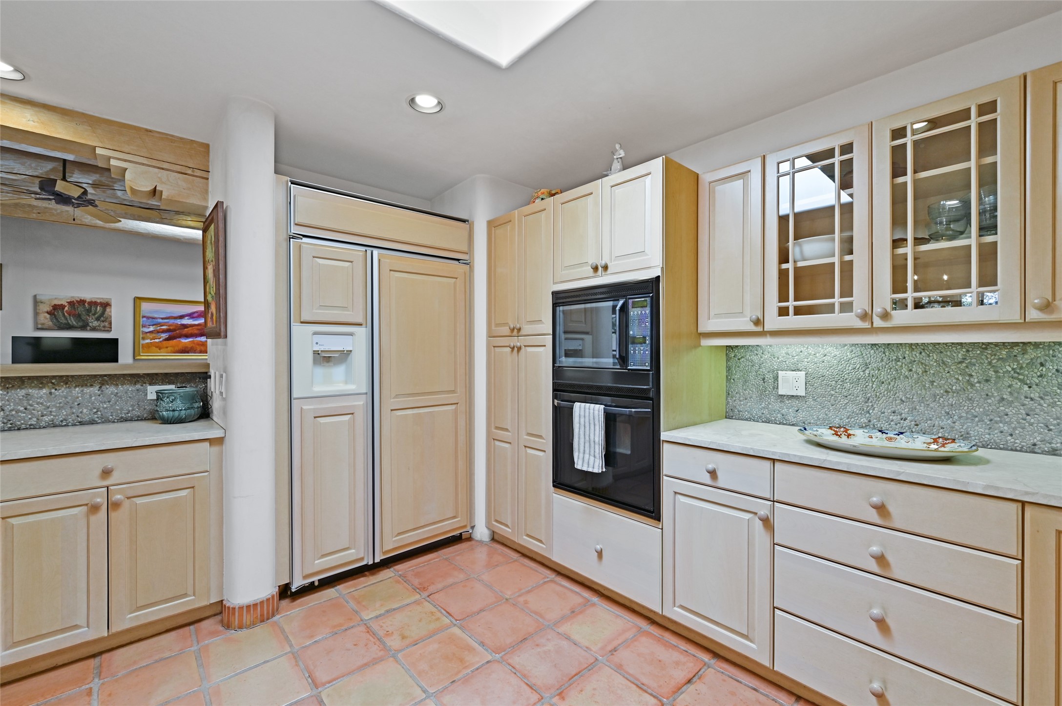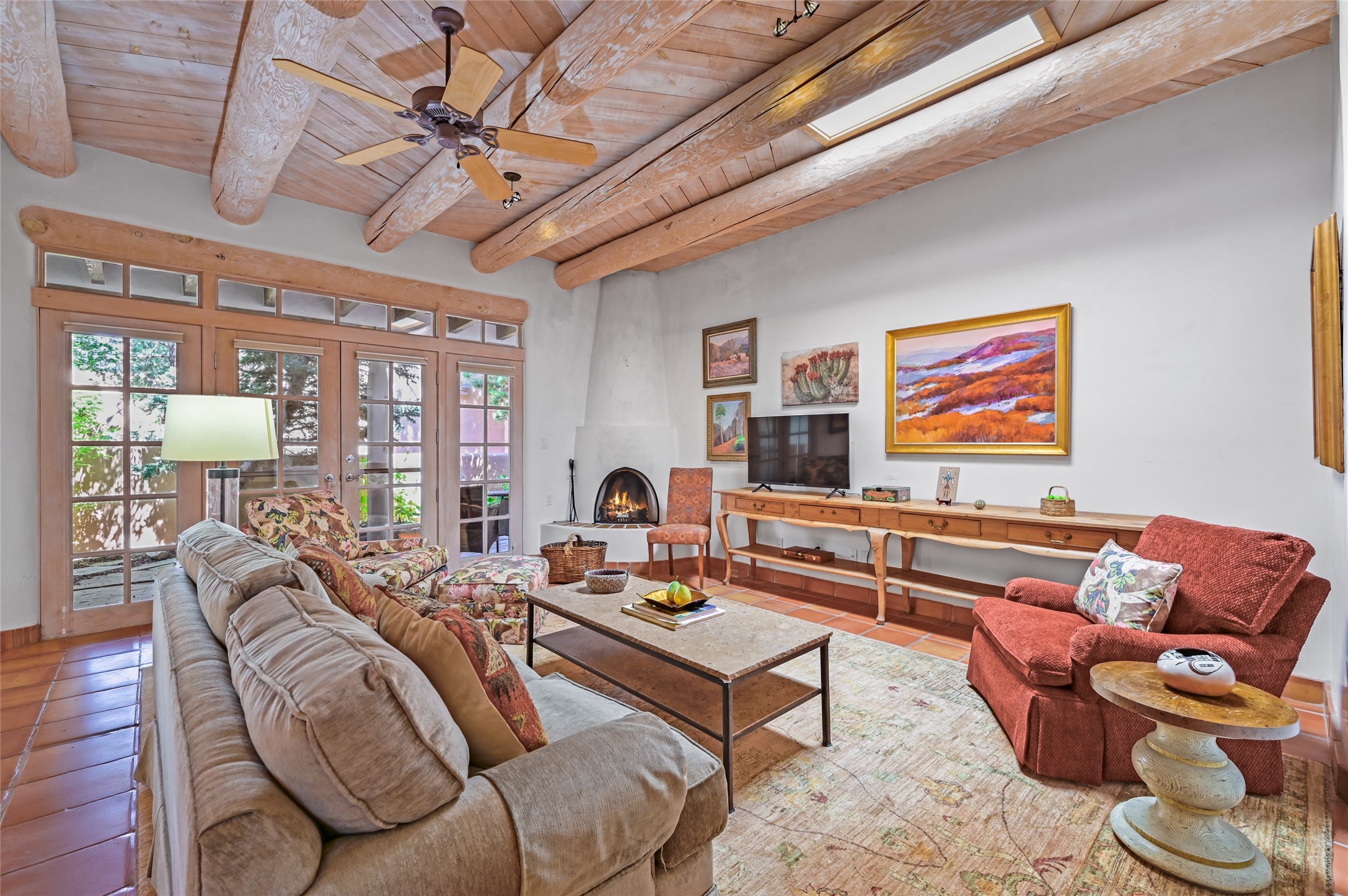 Worried about the HOA dues? Seller will pay 1 years' worth of dues for Quail Run's perfect condo -- a classic Pion C floorplan with two bedrooms plus an office/den! Step inside to discover plaster walls, Saltillo tile floors, and a traditional Kiva fireplace that create a warm and inviting atmosphere. Skylights throughout bathe the home in natural light, while the single-level layout with no steps offers comfort and ease of living.The kitchen features updated stone counters, a stylish backsplash, and generous cabinetry for storage and organization. The primary suite is its own retreat with a Kiva fireplace and access to the back courtyard while the adjoining bath includes a newer modern bathtub for relaxing at day's end and a double vanity and larger closest.The living spaces open to a covered back patio, complete with a gentle fountain, brick detailing, vigas, lush landscaping and charming corbels -- a private sanctuary for relaxing or entertaining. A spacious two-car garage adds convenience and storage.Ownership at Quail Run includes access to exceptional amenities: 24-hour hosted security, state-of-the-art fitness facilities, a swimming pool, golf, pickleball, fitness classes, social gatherings, and its own restaurant!Come see why this special home in Quail Run offers the perfect blend of Santa Fe style and resort living.