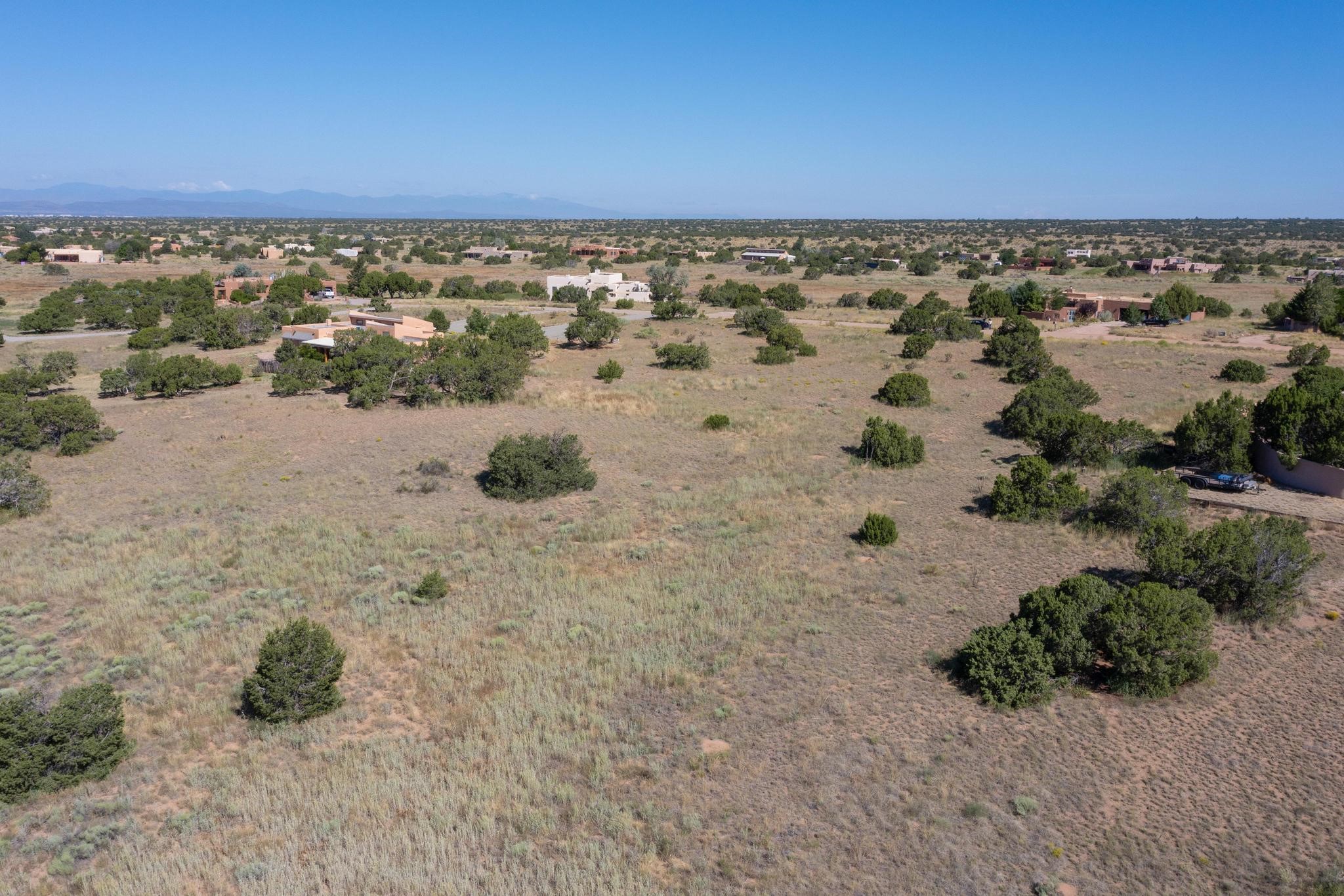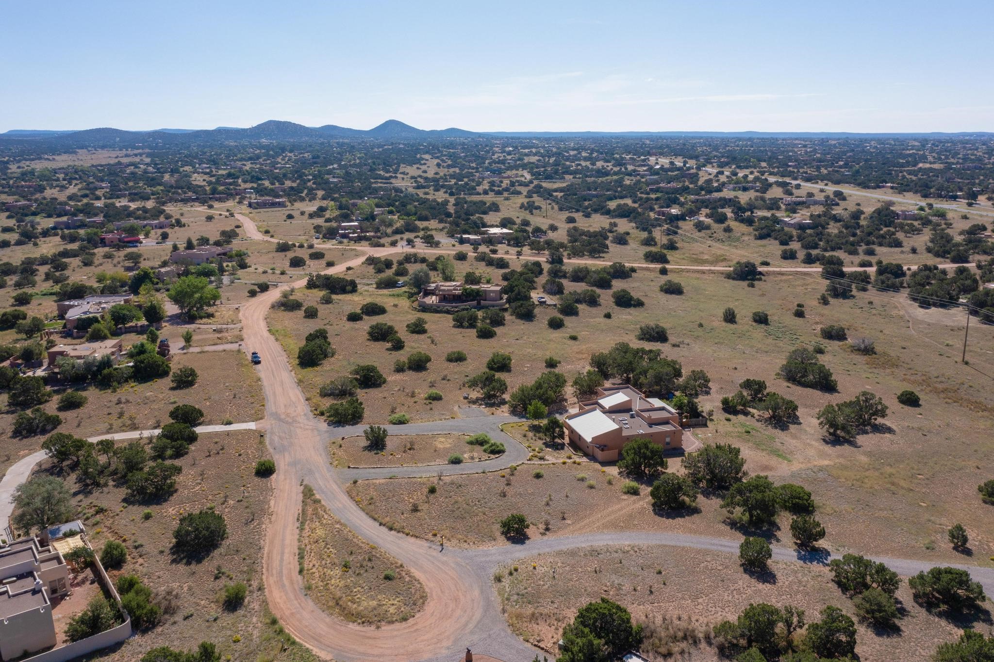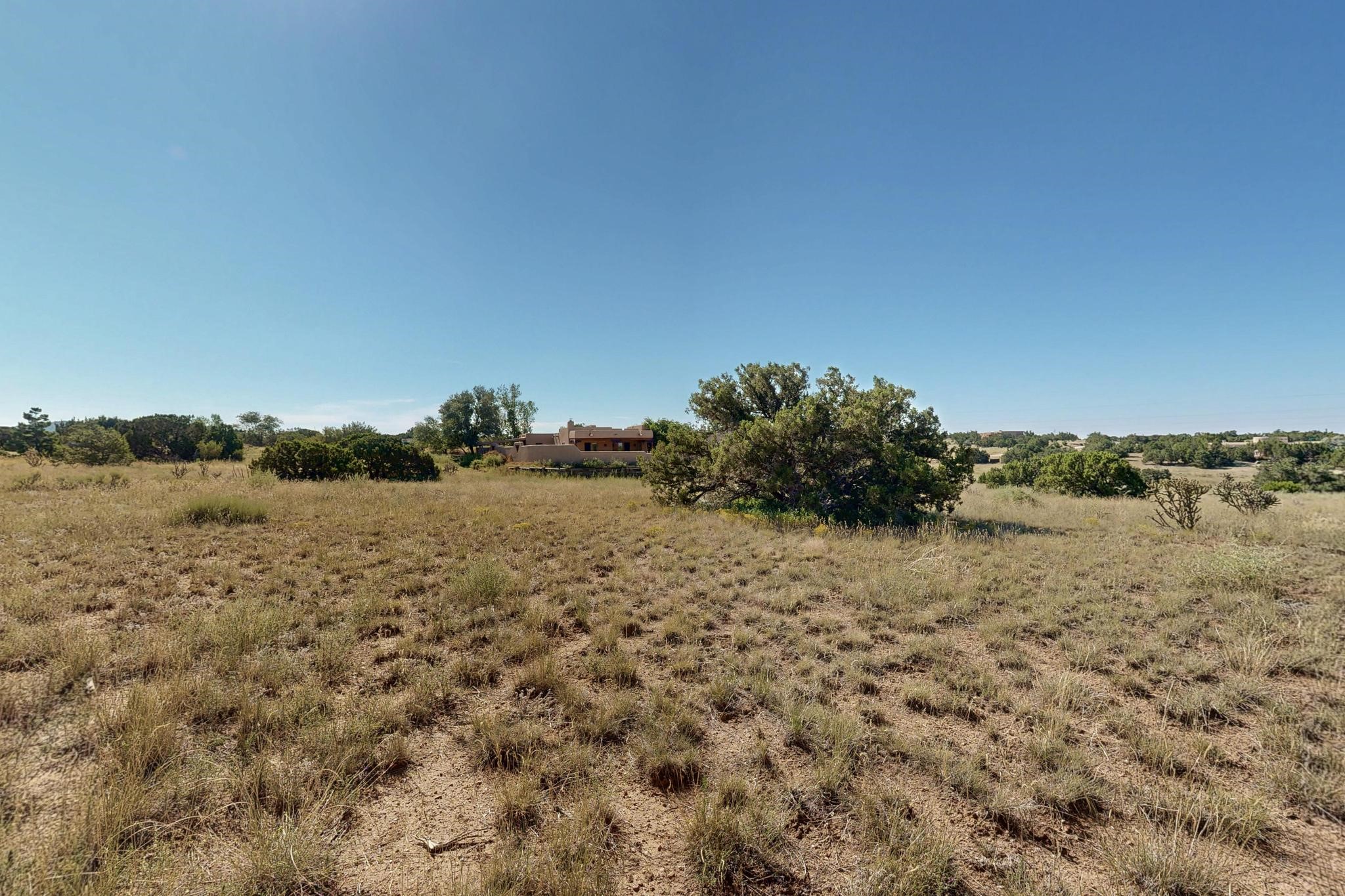 Lovely sunset view rolling terrain on a cul de sac and bordering a large greenbelt. This lot has good solar exposure building sites with natural gas, public electric and internet in the street, just requires a well. One of very few remaining lots left in Eldorado. This lot accesses all of Eldorado community amenities, pool. pickleball, tennis, basketball, disc golf, greenbelt, trails and more. It is close to local shopping centers, schools, library, senior center and parks, only minutes into historic Santa Fe.