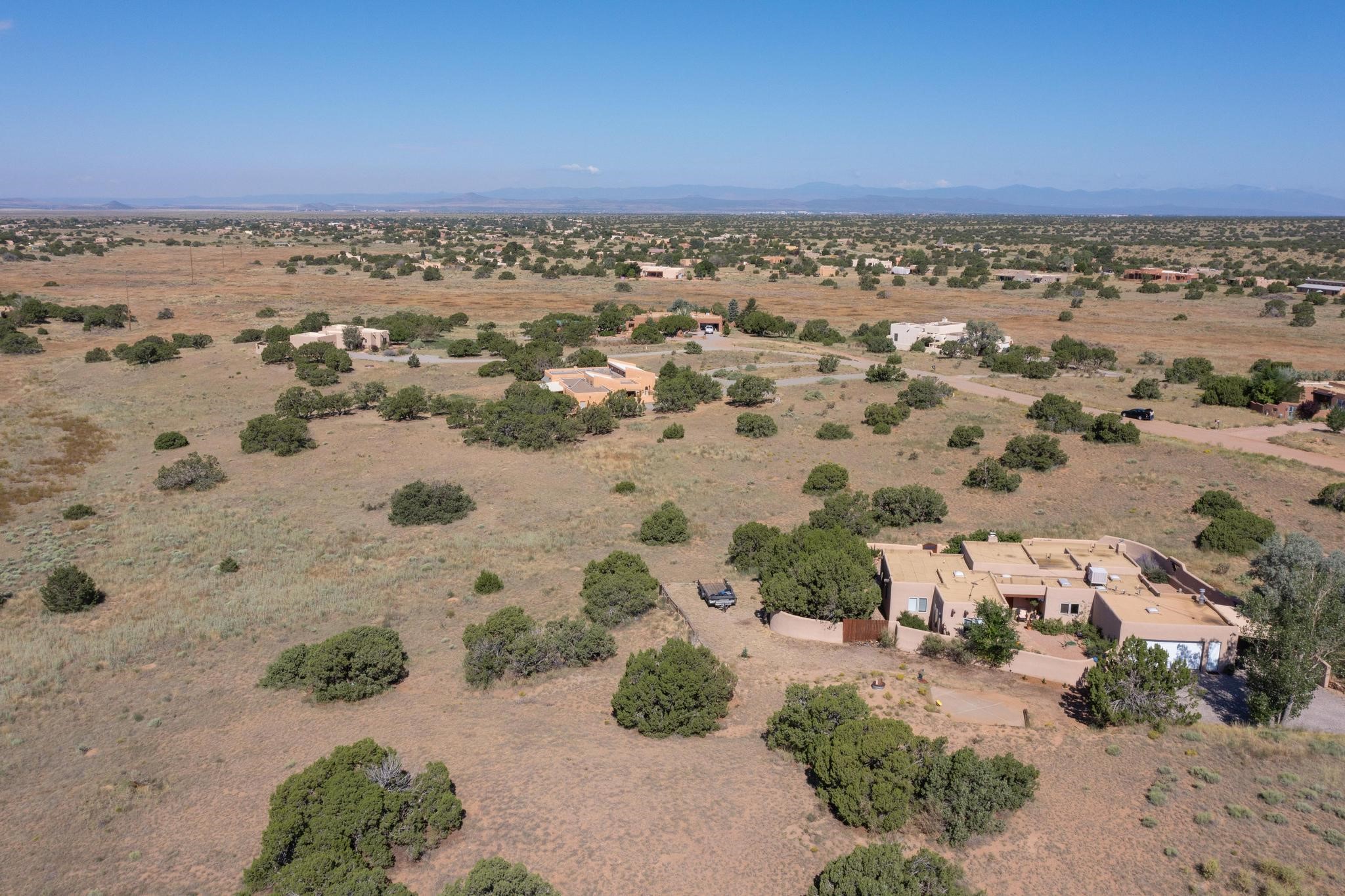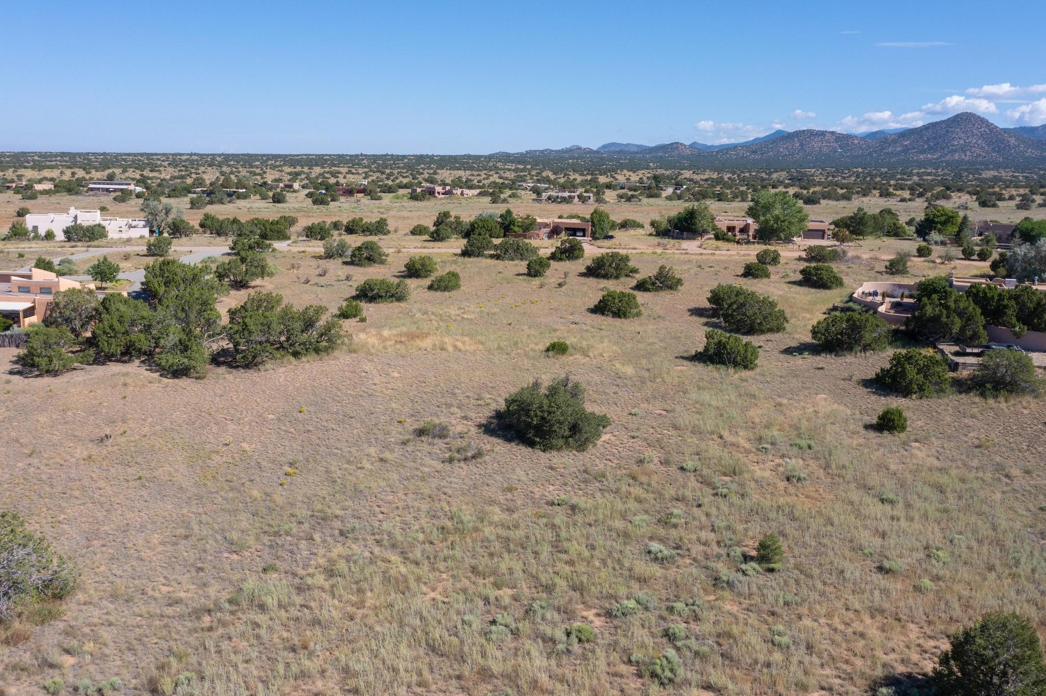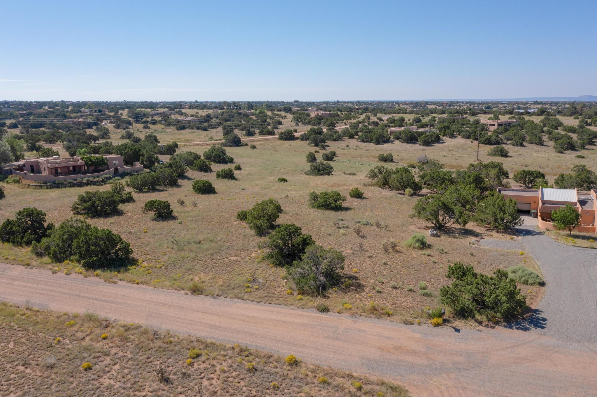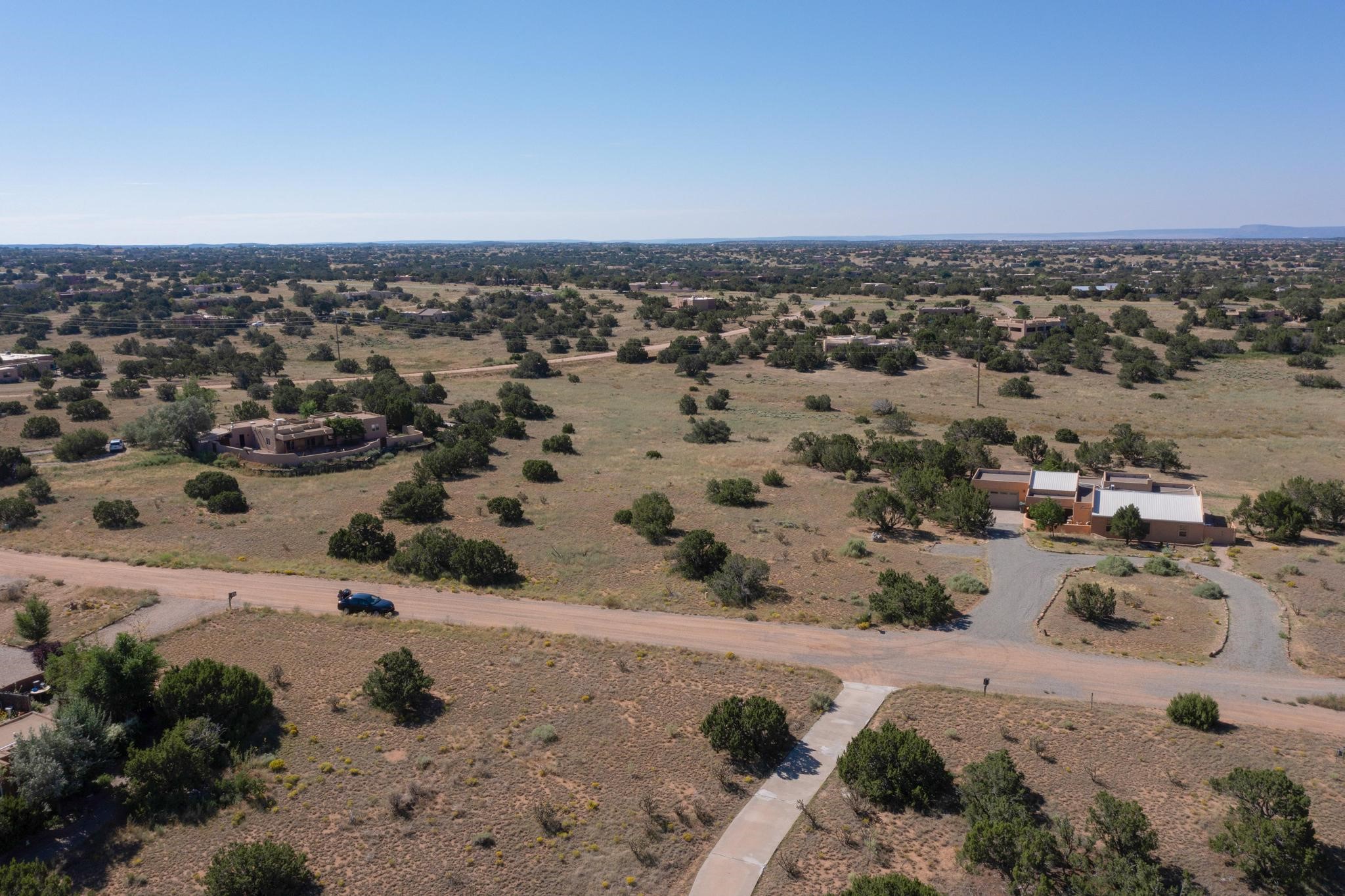 Lovely sunset view rolling terrain on a cul de sac and bordering a large greenbelt. This lot has good solar exposure building sites with natural gas, public electric and internet in the street, just requires a well. One of very few remaining lots left in Eldorado. This lot accesses all of Eldorado community amenities, pool. pickleball, tennis, basketball, disc golf, greenbelt, trails and more. It is close to local shopping centers, schools, library, senior center and parks, only minutes into historic Santa Fe.