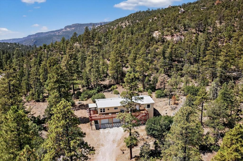 New Price- Come see this Spacious 5 Bedroom Home in Gorgeous Jemez! Top level features bright country kitchen, cheerful living room, fireplace, 3 bedrooms & two full baths. Freshly painted deck with pergola extends living space outdoors where morning coffee, evening meals & starry nights become part of daily life.The custom engineered lower level has its own entrance and was purpose built for strength and efficiency. This level offers two bedrooms, two spacious living areas, and a three quarter bath. Perfect for a second suite, guest wing, studio, or private rental. The 28x60 foam form monolithic foundation with ten foot walls adds long term durability and energy savings.Recent updates improve comfort throughout. Fresh interior and exterior paint, new sinks and faucets, a new primary bath vanity, six new lower level windows, upgraded upper level windows, and a brand new fifteen hundred gallon septic tank. A Whitfield pellet stove provides efficient heat and the oversized garage offers generous room for vehicles, tools, and storage.For animals and outdoor use, the property includes a dedicated half acre corral with feed shed, plus surrounding natural landscape for exploration, gardening, and future ideas. Two combined parcels, 11B and 11D, contribute additional privacy and flexibility. A two hundred twenty outlet is ready for larger projects.The location is rich with recreation. Public lands nearby offer riding, hiking, hunting permitting, Valles Caldera National Preserve provides skiing, fishing, endless trails. The mineral hot springs, restaurants, & shops of Jemez Springs are just minutes away.Access is practical for year round living. The home is near the start of the road which simplifies winter driving. Schools and bus stops are close and Los Alamos is approximately forty five minutes with Albuquerque and the Sunport about an hour away. This is abbsolutely one of the most compelling five bedroom opportunities in the Jemez Mountains.
