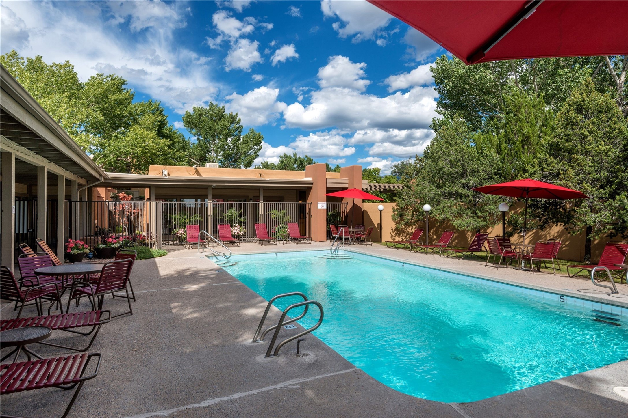 Welcome to The Reserve at Santa Fe, a beautifully maintained gated community just minutes from downtown. This furnished 1-bedroom, 1-bath residence offers comfort, privacy, and convenience in one of Santa Fe's most desirable condominium settings. The living area features soft natural light, neutral tones, and access to a private balcony surrounded by mature trees, creating a peaceful retreat. An open dining area connects seamlessly to the kitchen, which is equipped with stainless steel appliances, maple cabinetry, and tile countertops. The spacious bedroom includes ample closet space, while the full bath maintains the same clean, warm aesthetic found throughout the home. Move-in ready and sold with furnishings, this residence makes an excellent primary home, pied--terre, or long-term rental opportunity. The Reserve offers a host of amenities including a year-round heated pool, fitness center, clubhouse, walking trails, and on-site management, all within a secure gated setting just moments from shopping, dining, and the historic Plaza.