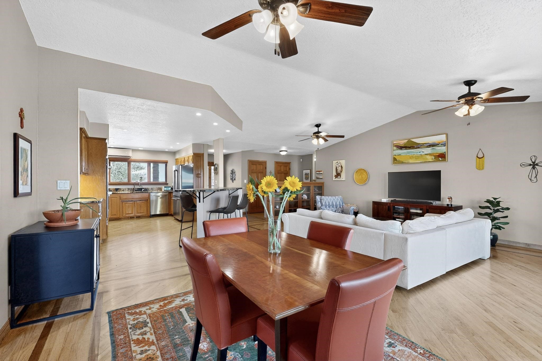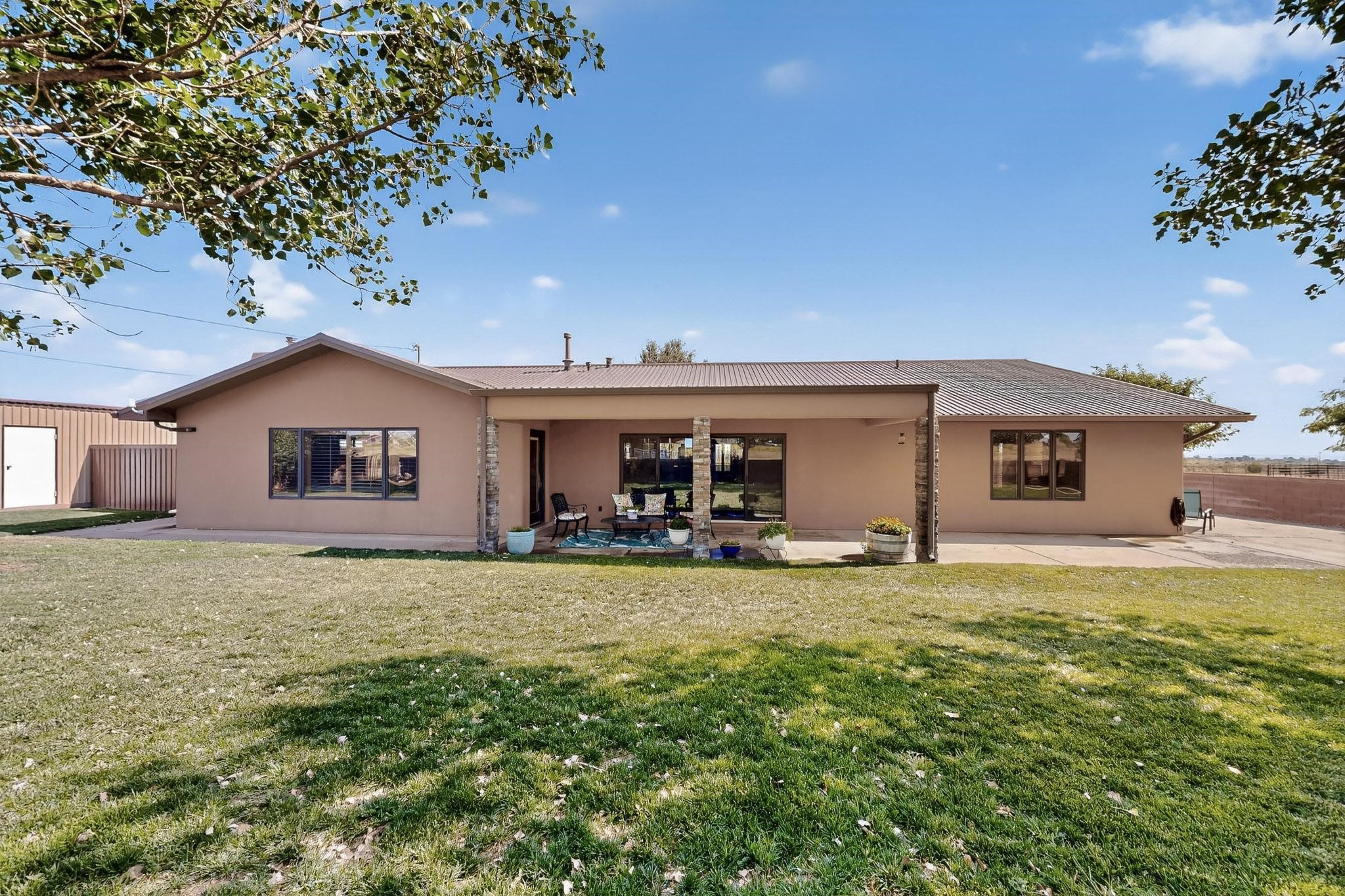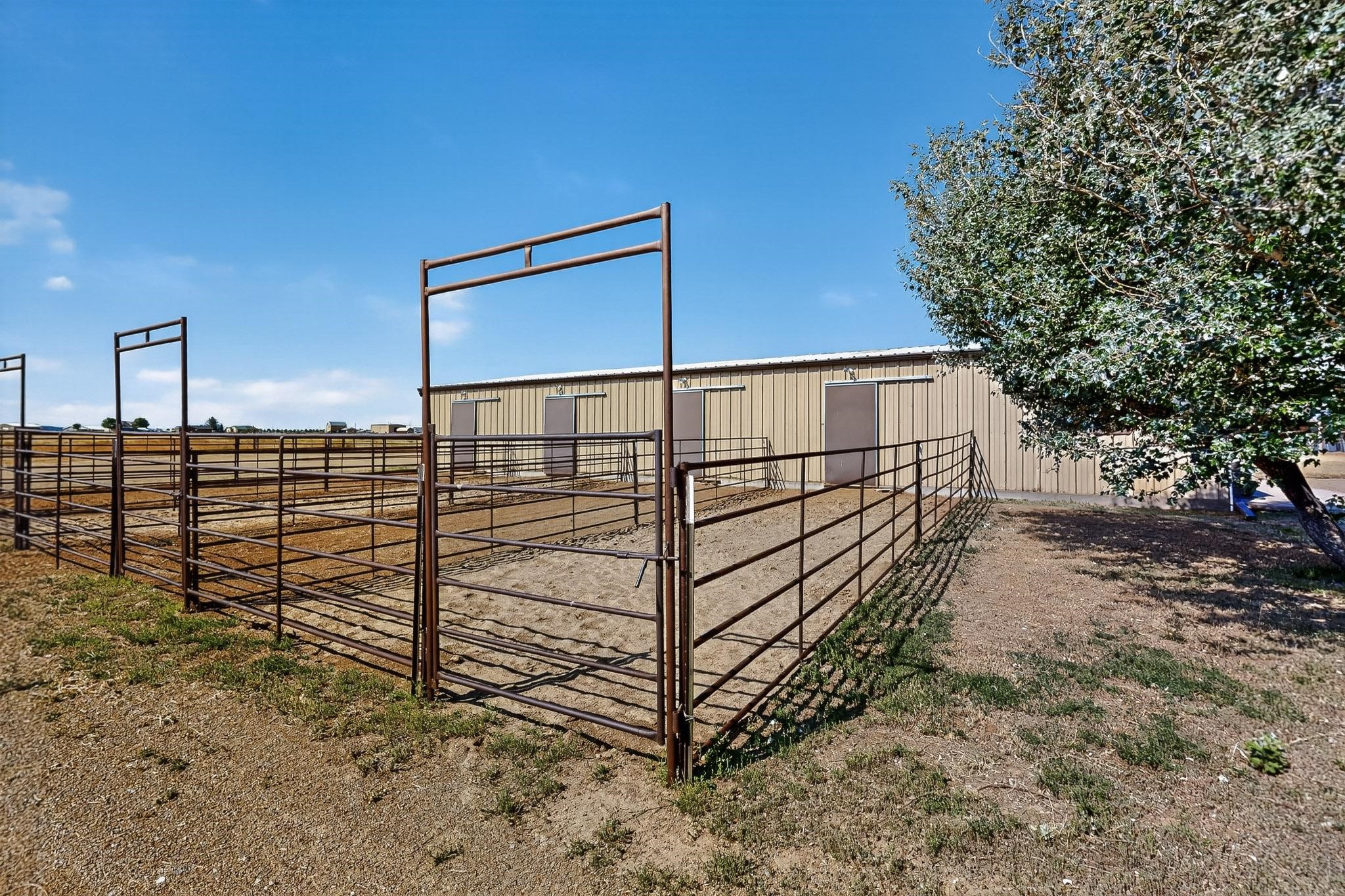 This true equine estate has finally come on the market so don't miss your opportunity to own this amazing property. 38.8 acres fully fenced and cross fenced! 3051 heated sqft of main home and guest suite. This estate home boasts hardwood floors throughout, with custom touches, large spacious open floor plan with great room and kitchen for entertaining, primary bedroom suite with wall to wall closets, double vanities, and exterior access. 3bed 2bath main home, 2 living areas, gourmet stainless steel kitchen, laundry room with storage. There are so many built in storage and closets the possibilities are endless on how you use it. Oversized finished 2 car garage with built in storage. 4 stall barn with finished tack room, and 1 bedroom, 1 bath, kitchenette, walk in closet: guest suite.Not only are you going to love this estate, but your animals will love it too! Full sized arena for your use and three cross fenced pastures all with barn loafing sheds. Water has been run throughout the property to the barns for the convenience of keeping the critters taken care of. The approx. 2300 sqft barn has pull through capability, a finished tack room, 4 walk out stalls, hay storage, rubber floor mats, and a 363 sqft guest living quarters! A large equine estate like this doesn't come up for sale in the East Mountains/Southern Santa Fe County area too often, and none are as nice and custom as this property. If you are needing a place to kick up your boots, let your critters stretch their legs, and for yourself to relax from dawn to dusk, you have found your 38.8 acre slice of paradise with this equine estate.