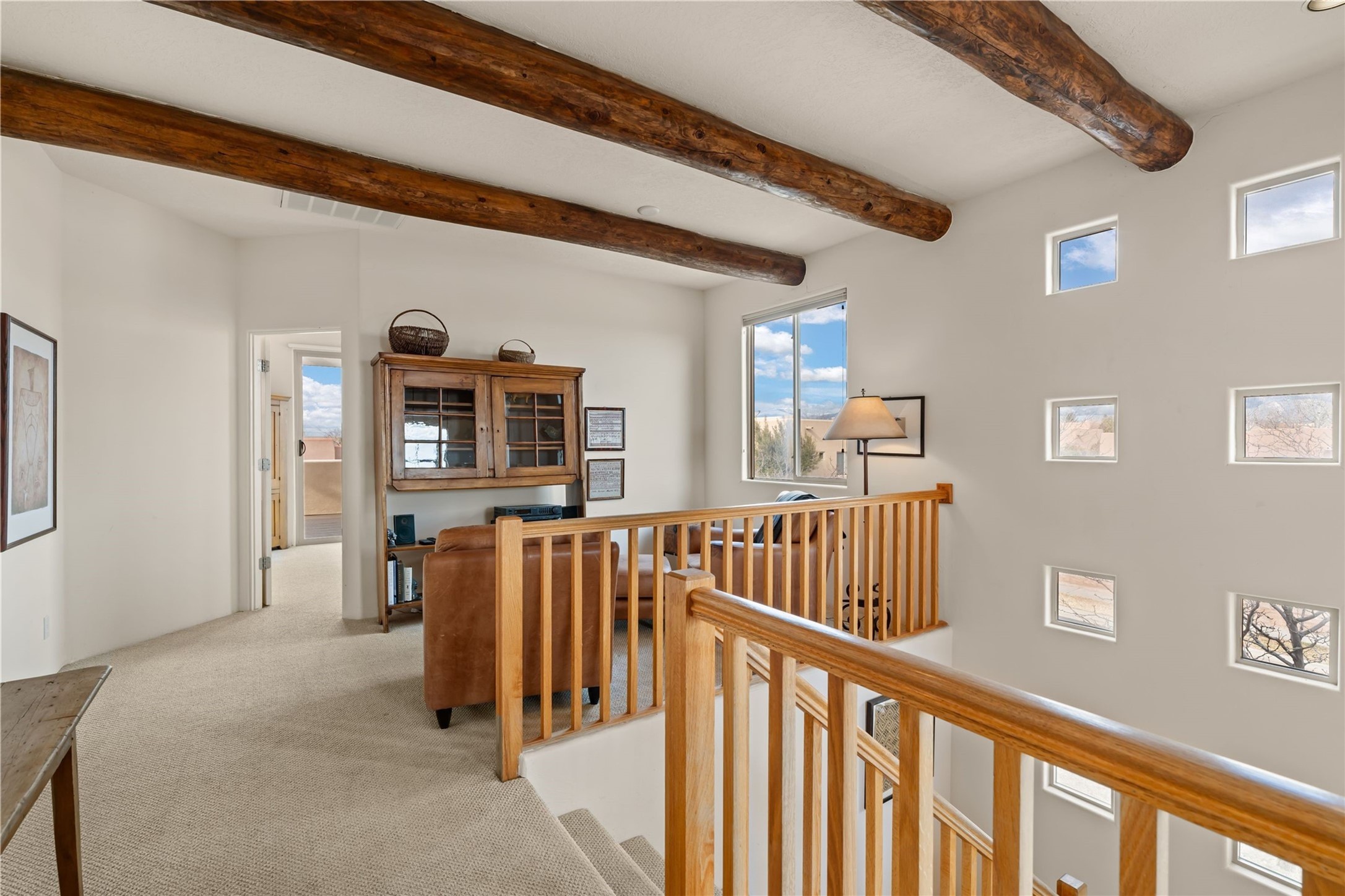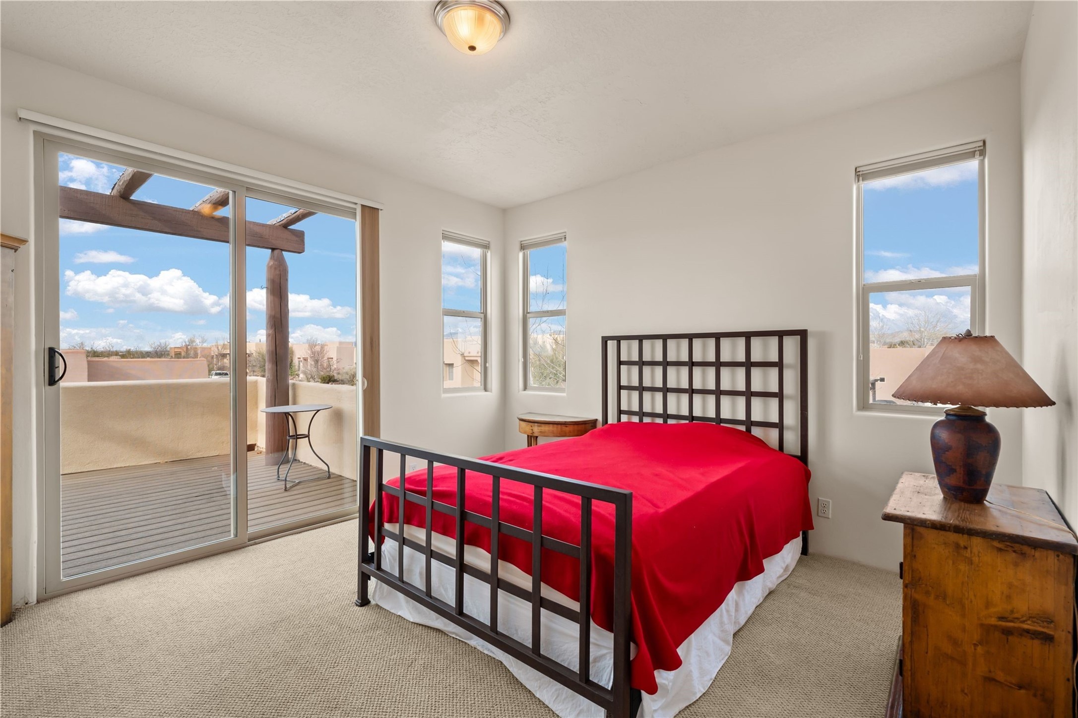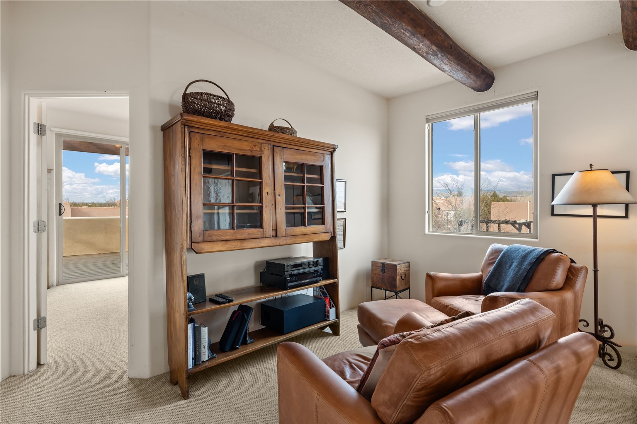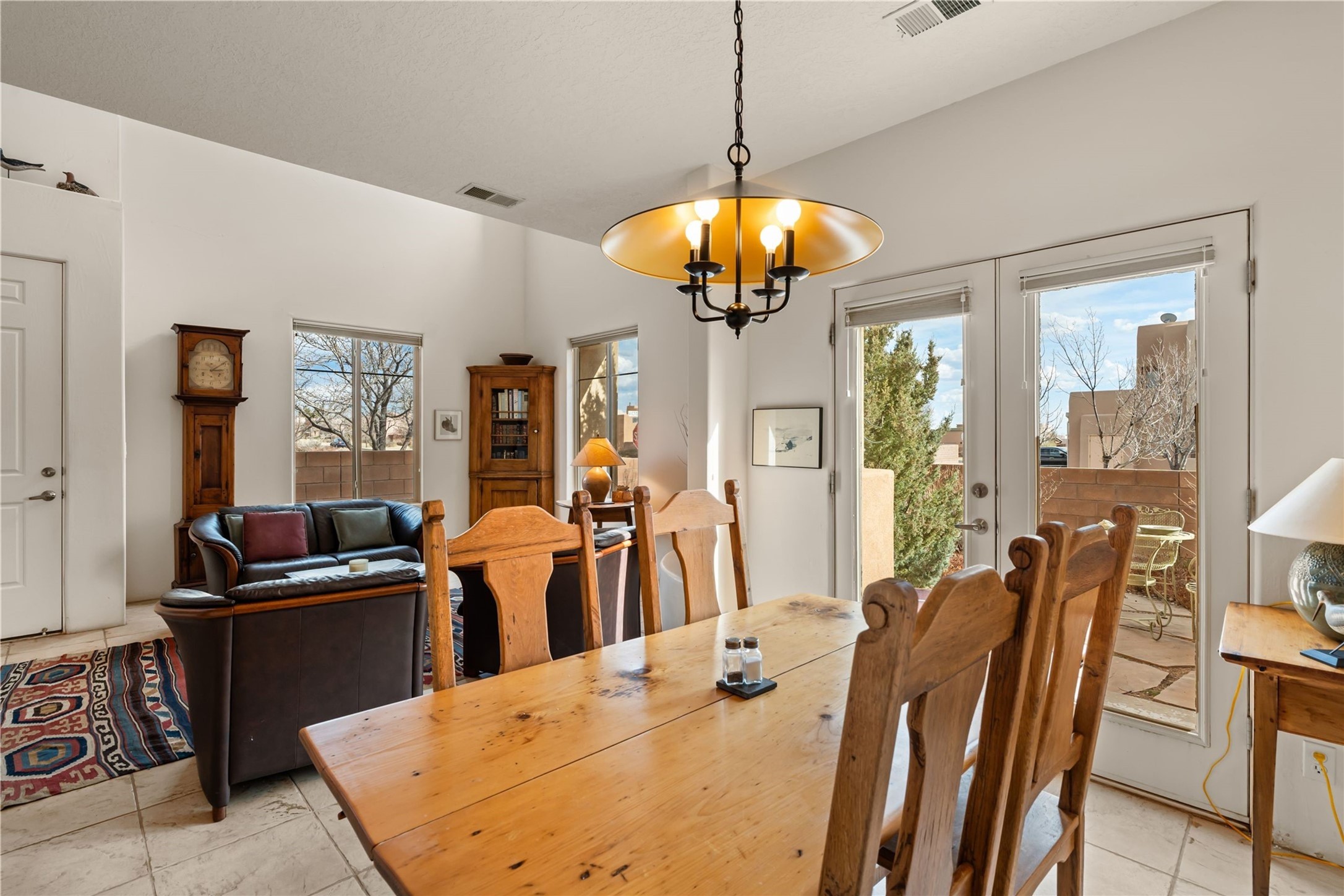 This updated end-unit townhome in Rancho Viejo offers low-maintenance living, modern upgrades, and convenient access to parks, trails, and Santa Fe amenities. With 2 bedrooms, 3 bathrooms, and 1,642 square feet of living space, the home features an open, light-filled layout ideal for comfortable living and entertaining. The living room with gas fireplace flows into a dining area and kitchen with new stainless steel appliances installed in July 2025. Upstairs, the spacious primary suite includes a balcony with northeast orientation capturing both sunrise and sunset light, along with a walk-in closet and ensuite bath. A second bedroom and full bath complete the upper level. Major systems and components have been updated, including a new HVAC system and hot water heater (2023), new balcony decking and roof (2024), and all exterior maintenance covered by the HOA. High-speed internet is available, and the attached two-car garage provides direct interior access. Enjoy outdoor space with a private deck and courtyard, plus proximity to trails, a park directly across the street, and Santa Fe Community College just 1.6 miles (about 5 minutes) away. Shopping and restaurants are 4.7 miles (about 12 minutes) away, and downtown Santa Fe is within easy reach. HOA dues also cover exterior maintenance, adding to the property's lock-and-leave appeal. Combining a prime location with significant recent improvements, this townhome offers a turnkey lifestyle in a peaceful community setting.
