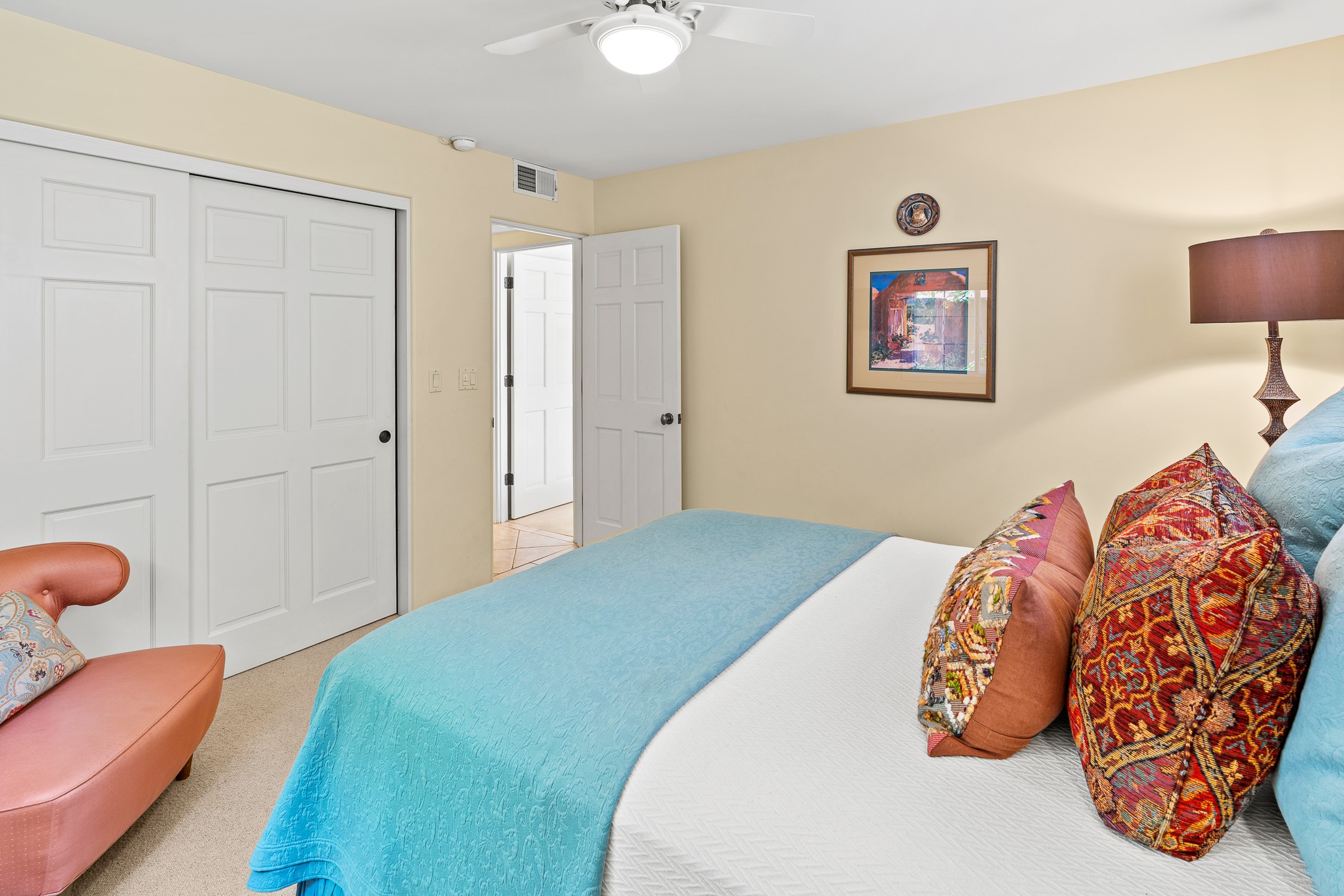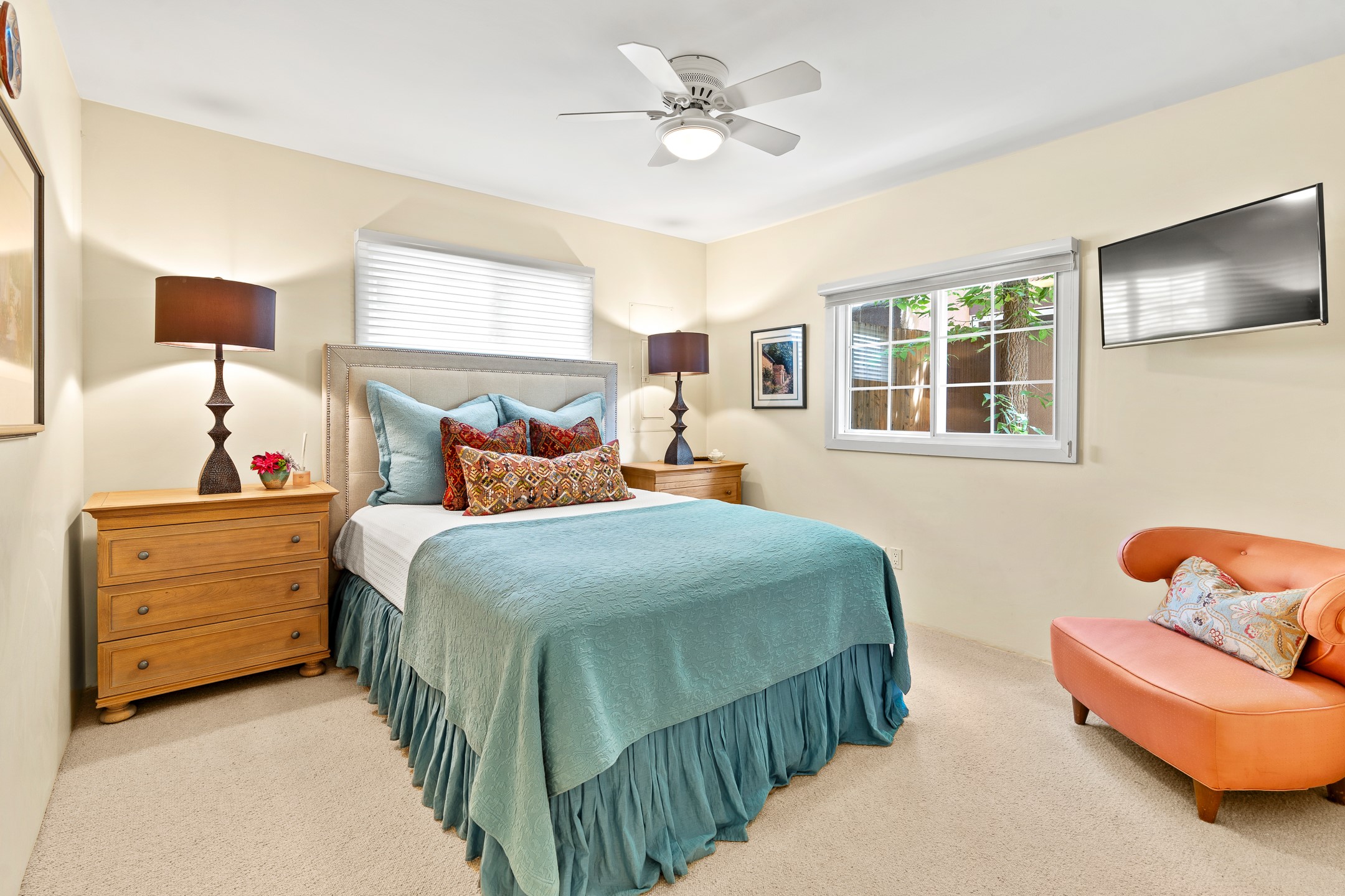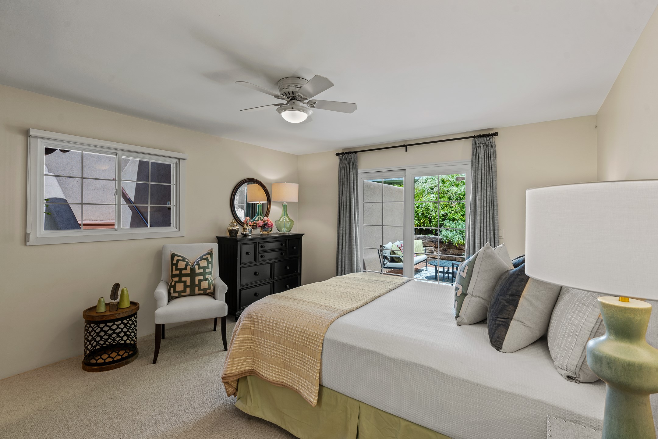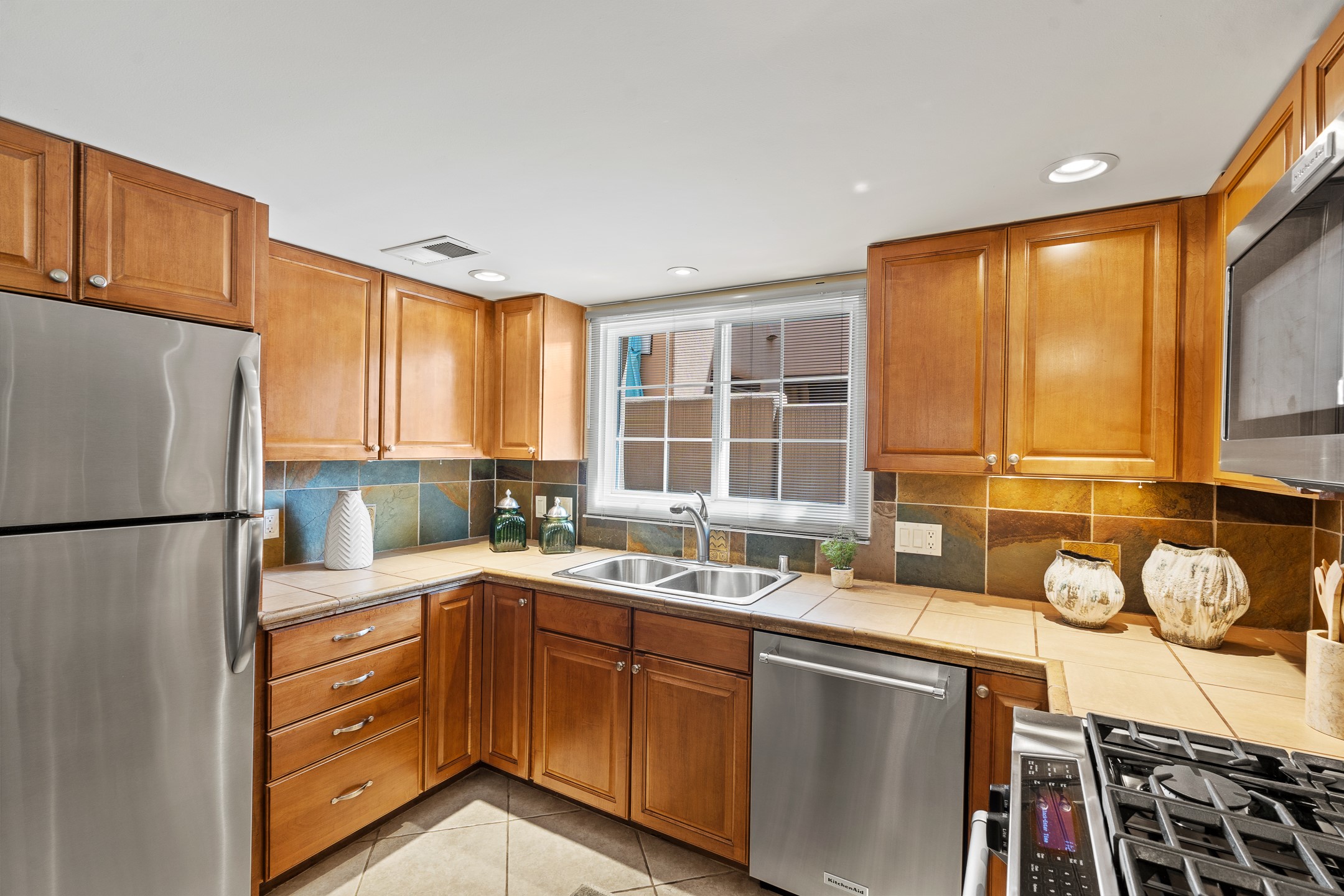 Just a short stroll from the historic Plaza, this inviting 2-bedroom, 2-bath condo blends modern comfort with timeless Southwestern charm. Located across from the Santa Fe River, you can wander its peaceful banks straight into downtown, where world-class dining, art galleries, and cultural landmarks await. With a desirable southeast orientation, the open concept living spaces are bathed in natural light. Tile floors, spacious bedrooms, and custom finishes reflect Santa Fe's distinctive artistry, while the gourmet kitchen--featuring high-end stainless-steel appliances, tile countertops, and warm wood cabinetry--offers both style and function. A dedicated dining room provides the perfect setting for family meals or entertaining guests. The primary bedroom opens to a private patio, ideal for morning coffee or quiet reflection. In the evening, enjoy the lively neighborhood atmosphere from the front patio, or unwind with a glass of wine beneath the surrounding cottonwoods. Additional highlights include two off-street parking spaces, forced-air heating and air conditioning, and a shared courtyard that fosters a welcoming sense of community. With only four units in the complex and modest dues of just $155 per month, this rare Santa Fe enclave offers both privacy and charm. Whether you're seeking a full-time home or a sophisticated pied--terre, this condo is your gateway to the very best of Santa Fe living.