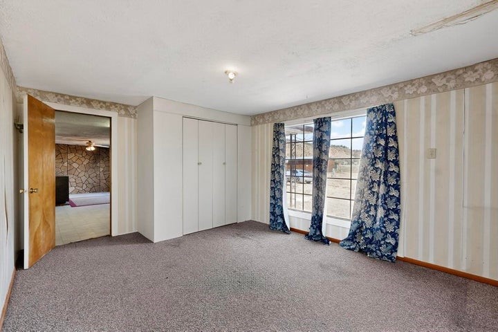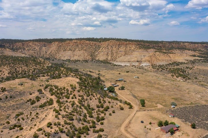 This versatile 81 acre property nestled in a peaceful canyon surrounded by grand mesas, abuts a 'hike-in' area of the Santa Fe National Forest to the west and BLM land to the north! Plenty of potential for horses, hunting, livestock and more. Watch Elk graze right outside your front porch while enjoying magnificent sunrises and sunsets. There is source of gravel and petrified wood is prevalent. Outbuildings include a shop/garage/storage 20'W x 40'D x 12'H (approx),a detached two level cellar/storage building, a tack room, a horse corral plus shaded area and more. The house has a propane line running to it.