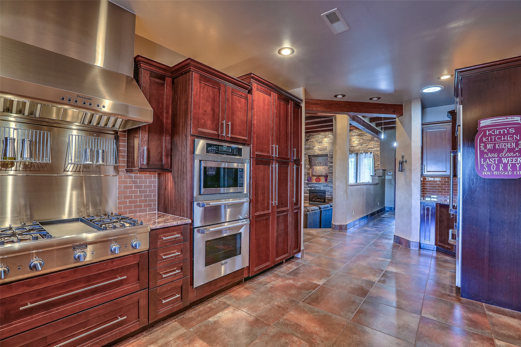 Priced to sell! Don't miss our on this opportunity!!! Absolute Stunner in Santa Fe! Perfect for a Large Family or Investor. Walk into the 2,764 SF 3 Bedroom, 3.5 Bath Primary Home and be greeted with Luxury! A Huge Sunken Family Room creates a Cozy and Intimate Atmosphere for Family Gatherings centered around a Fireplace accented with a Stonewall covering the entire South Wall. Magnificent Vigas and Diamond Finish Walls provide the Perfect Touch! The Kitchen is a True Chefs Delight! The Main Home includes an En Suite, Office, Radiant Floor Heating, Central Vac System, Water Softener System, and a High Efficiency Tankless Water Heater. The Comfy Primary Suite is equipped with its own Fireplace offering the Ultimate Relaxation. Attached to the Main Home is a Fabulous 1,008 SF Efficiency Suite with its own Private Entrance and includes 1 Bedroom, 1 Bath, Office, Full Kitchen, Laundry Room and Living Area. Behind the Full Size Enclosed Basketball Court you will find an additional 1,560 SF Guest Home that was built in 2022. This Modern New Home offers 4 Bedrooms; a Primary Suite, an En Suite, and 2 Guest Rooms and 3 Baths. Features include all Tile Flooring, Tankless Water Heater, TPO Roof, Fenced Yard and its own Private Road. The Two Large (480 SF Each) Utility Sheds/Carports also convey. Don't Miss Out on this One of a Kind Opportunity!!