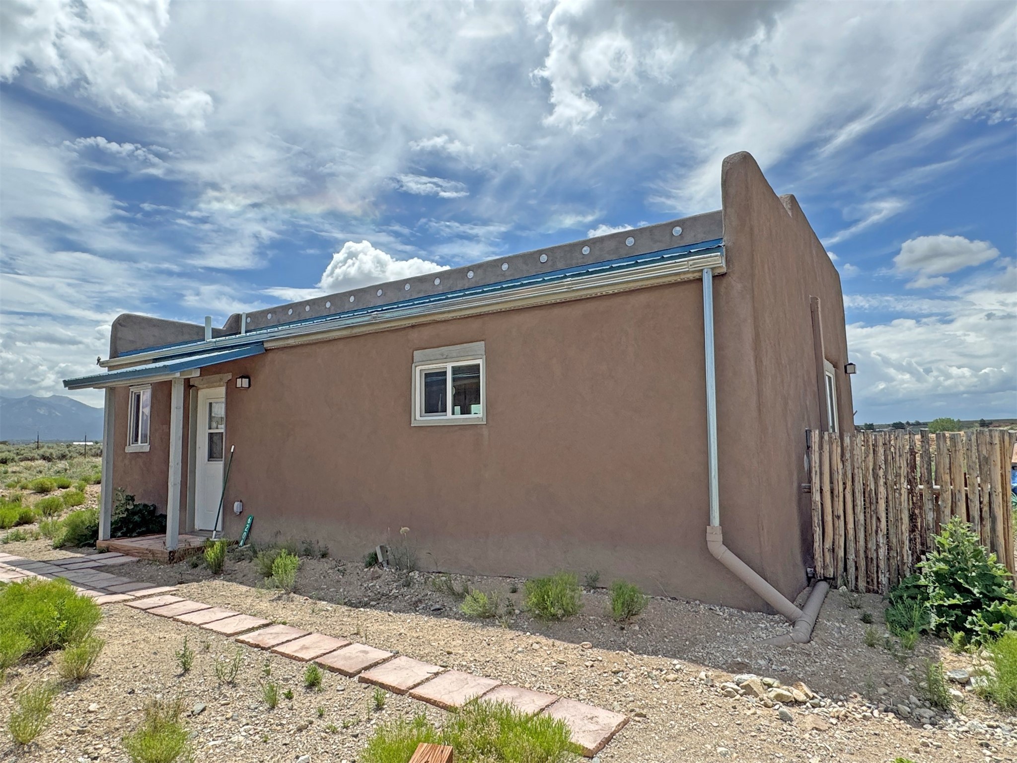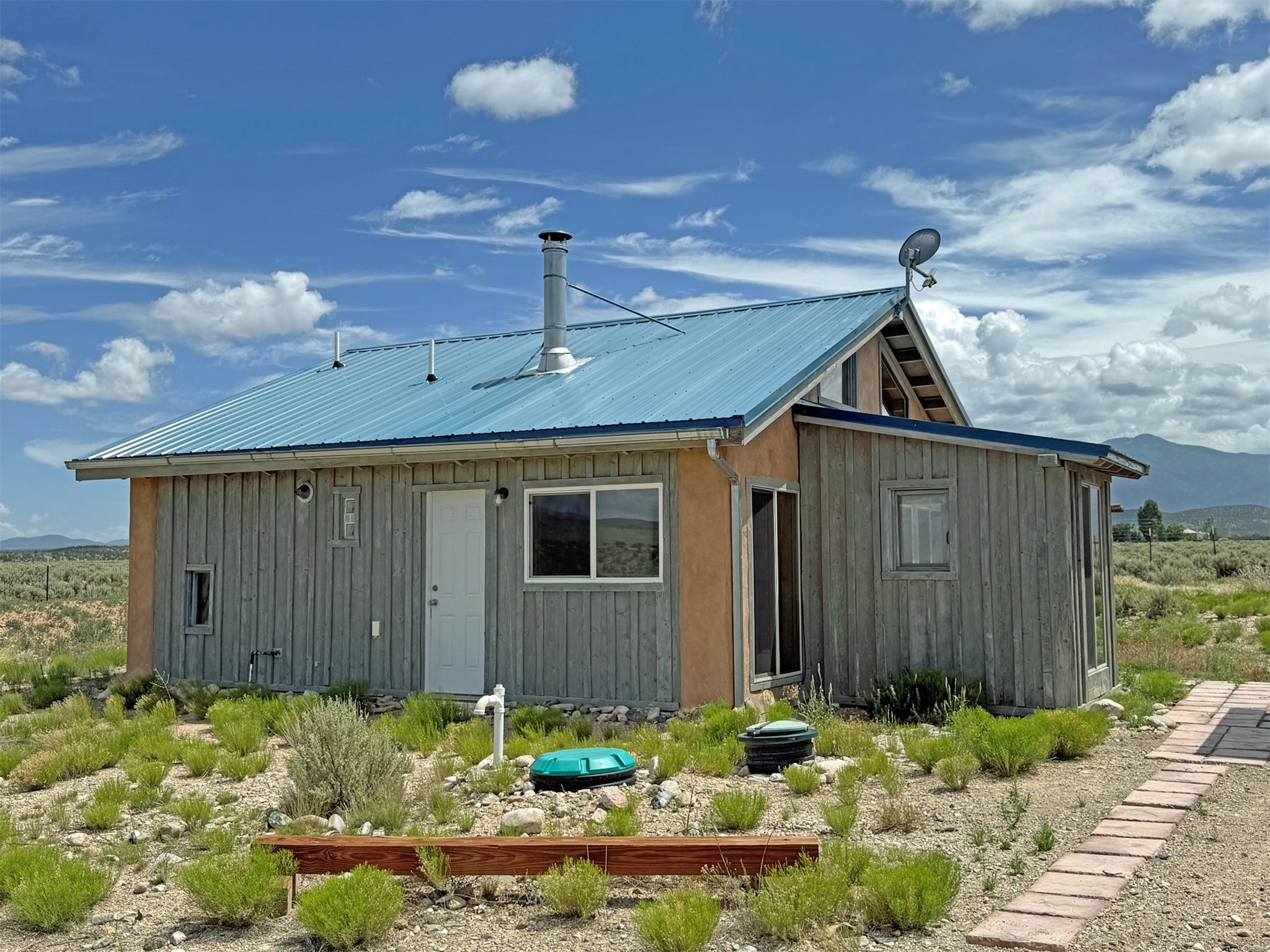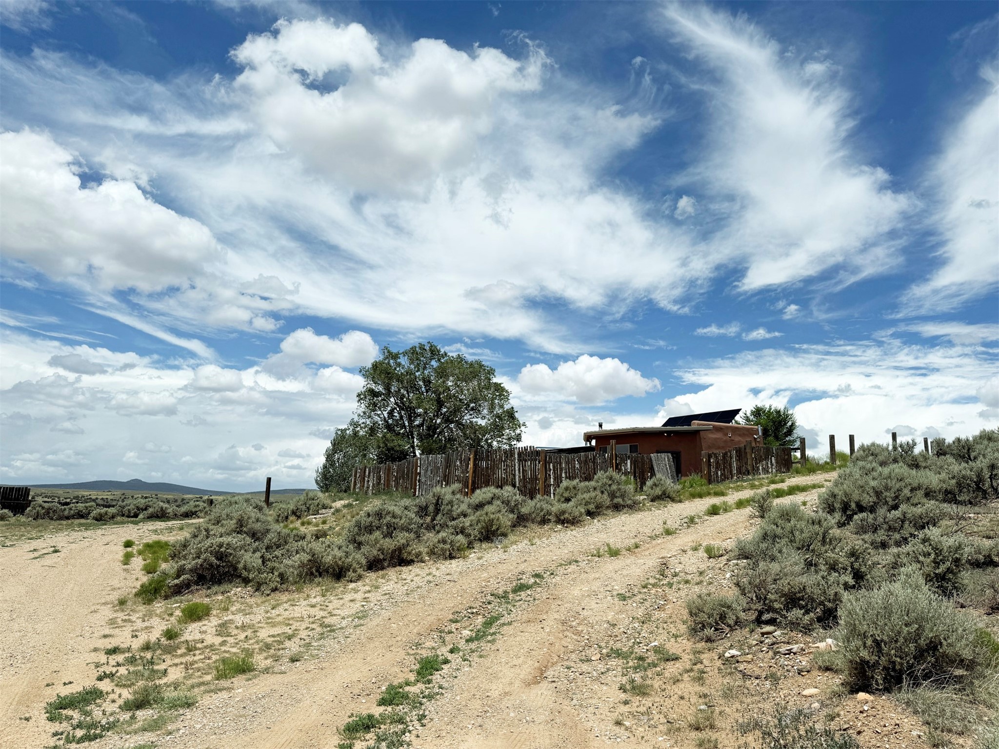 Here's a flexible property featuring two 700 square feet casitas on 2.53 unrestricted acres! Main house constructed in 2017 has entrymud room and open living/dining/kitchen areas with lots of windows framing wrap around views of sunset, Taos Mountain and Sangre deCristo Mountains. Painted concrete floors with in floor radiant heat. Pitched tongue and groove ceiling, ceiling fan and woodstovemaintain comfortable temperatures year round. Easily accessible, finished loft with cabinets provides ample storage. Cook's kitchen hasgranite tile countertops, is wired for under counter lighting, and has a propane gas range and fridge. Comfortable bedroom with T&G andbeams ceiling features a spacious ensuite bathroom with cast iron tub, personal shower and ample linen storage. Mechanical/utility roomincludes a washer which conveys with sale and storage shelving. On the north side is a sweet exposed adobe wall courtyard containinga paver stone patio and latilla ramada, perfect for dining al fresco and star gazing. Pitched Propanel roof delivers water catchment for a1700 gallon buried cistern in lieu of conventional well. Seller typically orders supplemental water 1-2 times a year for a cost ofapproximately $230 each delivery of 1700 gallons. Exterior siding is a combination of stucco and Cape Cod wood siding. Guest houseis 714 square feet of flexible space built in 2023 featuring kitchenette with fridge, full bath, wood stove, exposed adobes, and vaultedT&G ceiling with beams and columns. Comfortable full bathroom with linen storage, tub and shower. This structure is heated and cooledwith a heat pump mini split system. This space could serve as a studio/workshop, studio apartment rental, or additional property livingspace. Painted cement floors and wrap around windows with mountain views. Entertain outside with a latilla ramada over paver stonepatio. Propanel metal shed roof is plumbed for cistern catchment. Landscape berms cradle both structures, adding privacy and providinga canvass for gardeners. Taosnet broadband Internet in both houses (Kit Carson fiber optic in Tune Drive); cell service on site. Locatedon a rise with stellar 360 degree views and easy walk to the Rio Grande Gorge and John Dunn bridge, Mamby/Stagecoach and BlackRock springs. GPS: 36.52508202679919, -05.70209218650817. Approximately one acre around the structures is fully fence with a farmgate at the entrance. Wood board fencing provides additional privacy. Circle drive and ample guest parking. Property could besubdivided into three separate parcels. Electric transformer has been installed in lower part of property for future development. Allconstruction county permitted with C/Os in Associated Documents. Seller has left firewood, Colorado red flagstone, adobe bricks andnew generator in the original box for the buyer. Approximately twenty minutes from Taos Plaza and half an hour from Taos Ski Valley.Only half a mile off the paved road. This quiet, peaceful property could be developed into three residential properties, a family compound, investment rentals, or horse property. So many options for this creative, energy efficient property built with love!