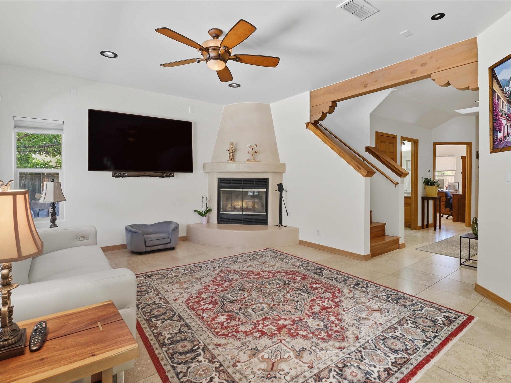Nestled on a quiet street, this beautiful two-story home offers the perfect blend of comfort, functionality, and charm--ideal for a starting family or a growing one. Step inside to an inviting open floor plan that seamlessly connects the main living spaces. The main level features a dedicated office, perfect for remote work or study, and a warm, welcoming living area with a traditional Kiva fireplace to keep you cozy during winter nights.The kitchen is thoughtfully designed with a breakfast counter, stainless steel appliances, and plenty of space for everyday meals and gatherings. From here, step out to the beautifully landscaped backyard, complete with a covered portal, ample seating for guests, an outdoor hot tub, Gas Fire table and a charming gazebo with heating elements, outdoor speakers and ambient lighting --perfect for BBQ nights or morning tea with family and friends. Upstairs, you'll find four spacious bedrooms, including the primary suite, a private retreat with an attached bathroom featuring a his-and-her sink, an enclosed shower, and a walk-in closet. A private balcony extends from the suite, offering the perfect spot to enjoy your morning coffee while soaking in the fresh air.Blending modern convenience with inviting outdoor spaces, this home is truly designed for both relaxation and entertaining.
