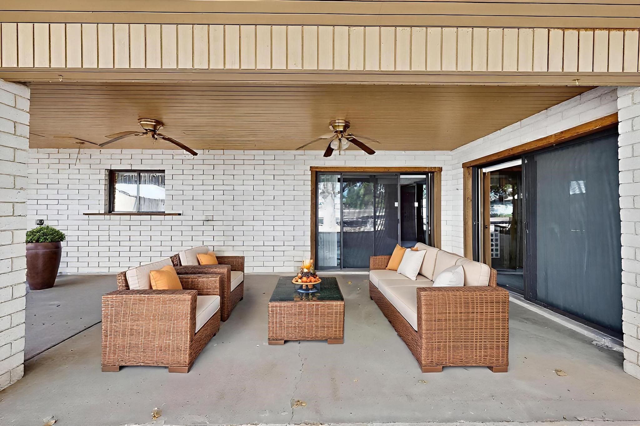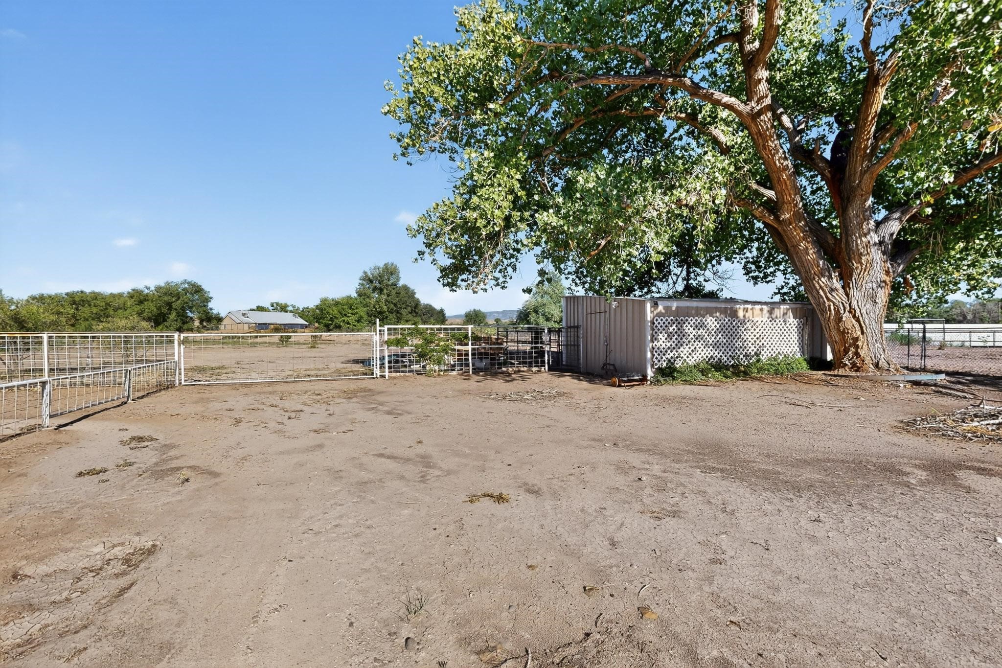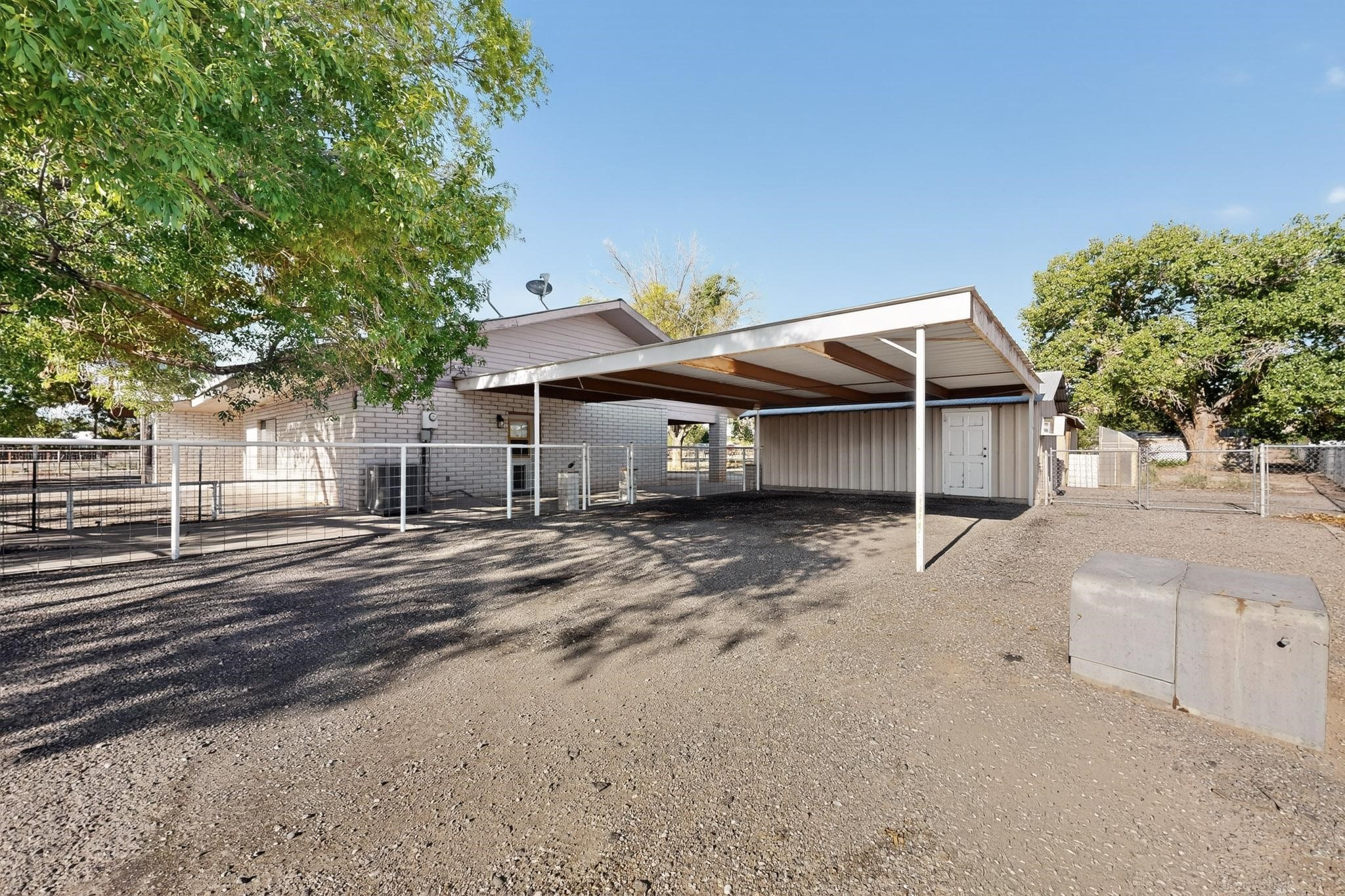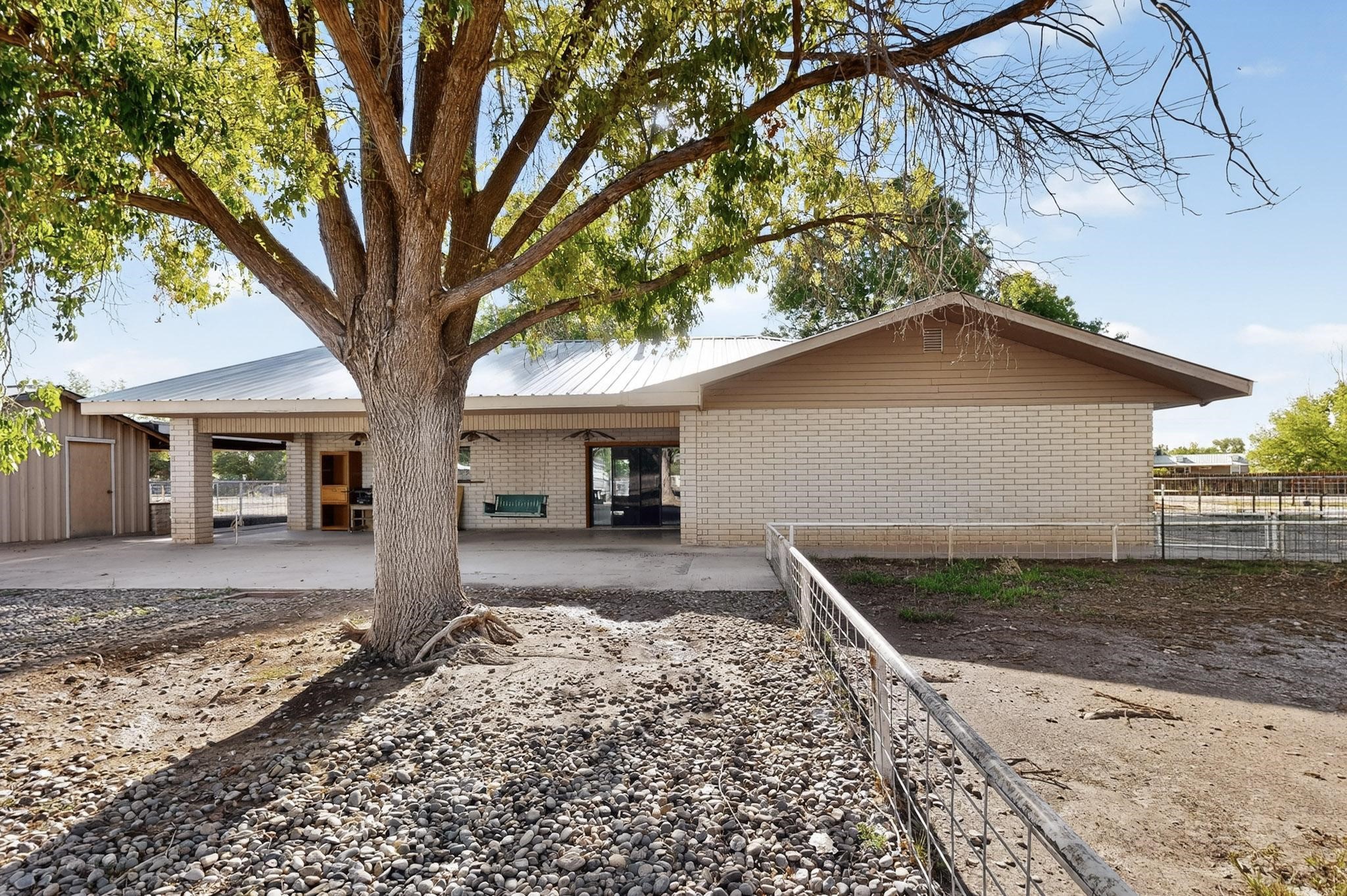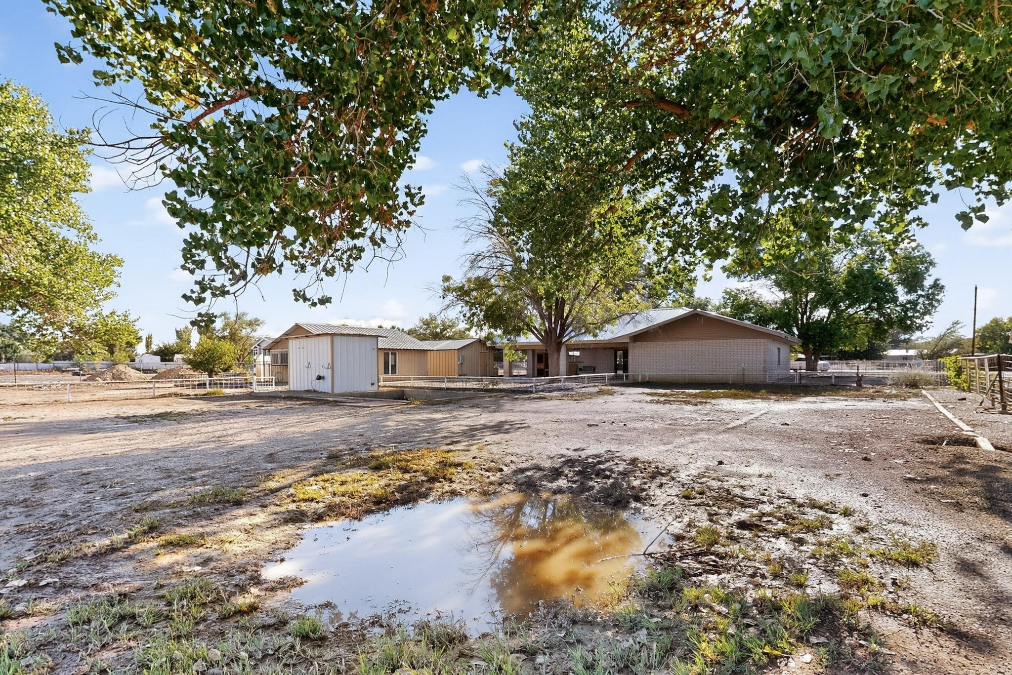 Spacious Los Lunas home with unique features! The open living and dining room is anchored by a double-sided fireplace, creating a warm focal point. The kitchen is generously sized with an island and plenty of room to personalize. Step outside to a covered patio with ceiling fans, perfect for relaxing or entertaining. A separate studio in the backyard adds flexibility for hobbies, work, or guests. This home offers great space and character, ready for your vision and updates. Land comes with a manufactured home next door to the North.