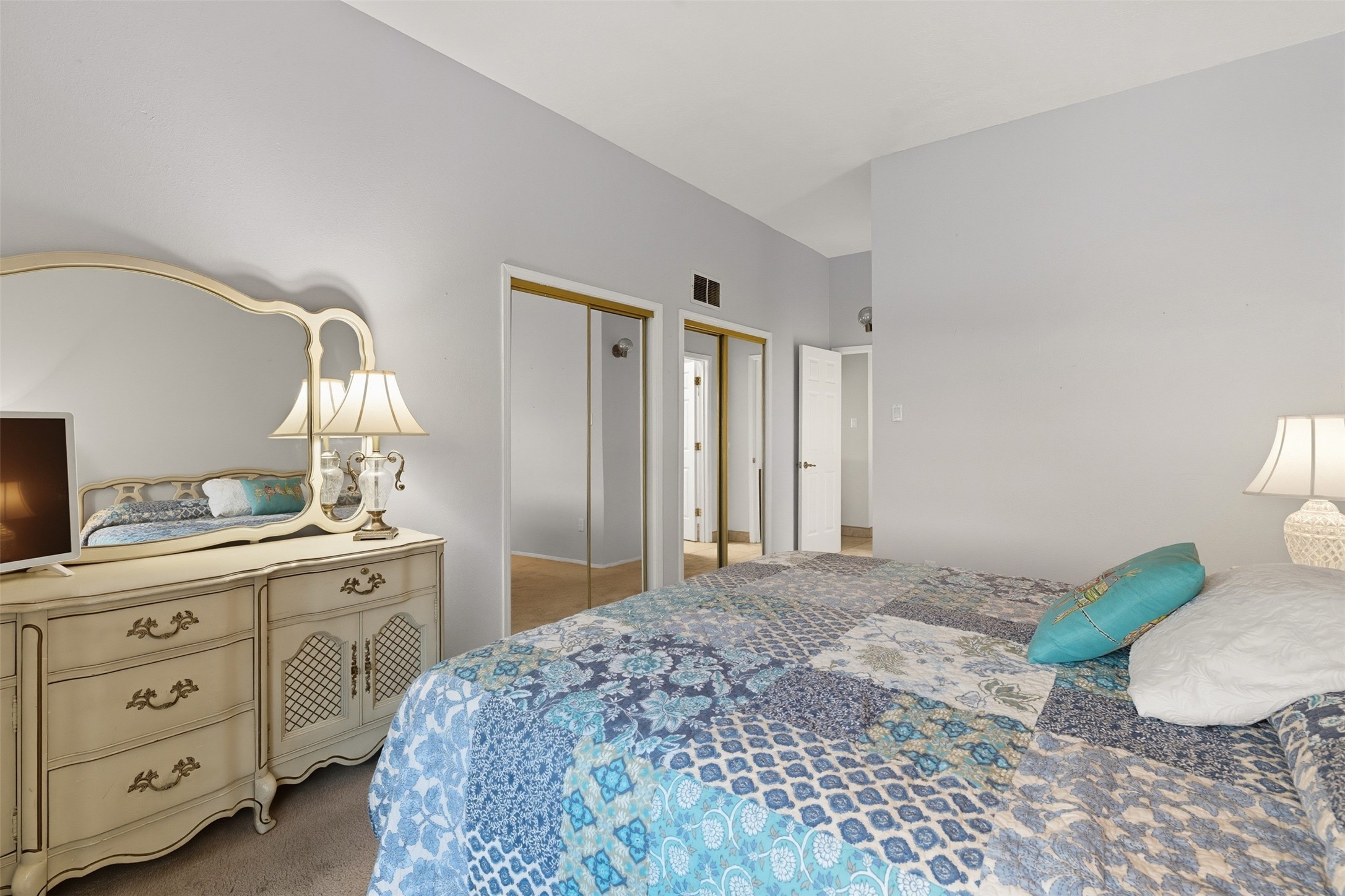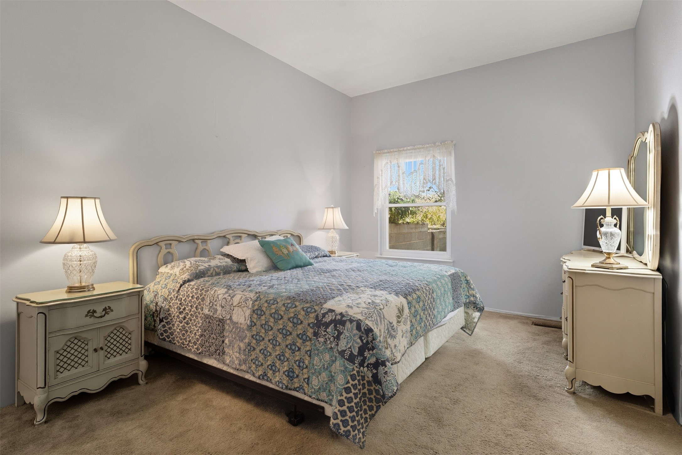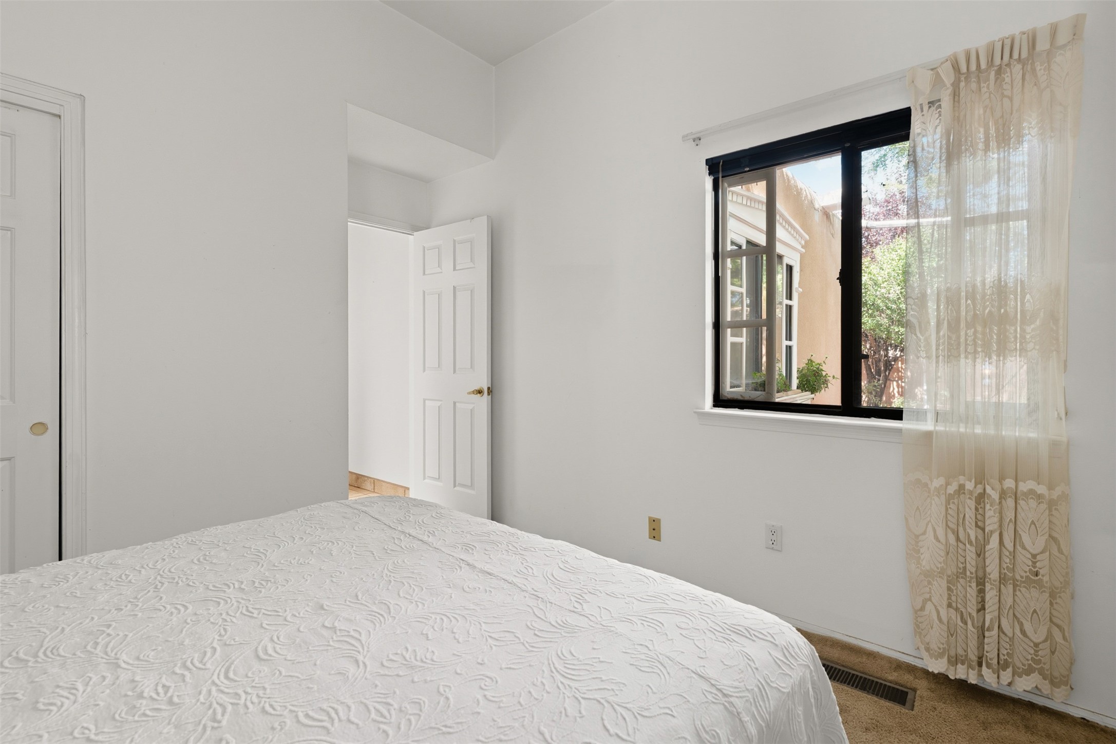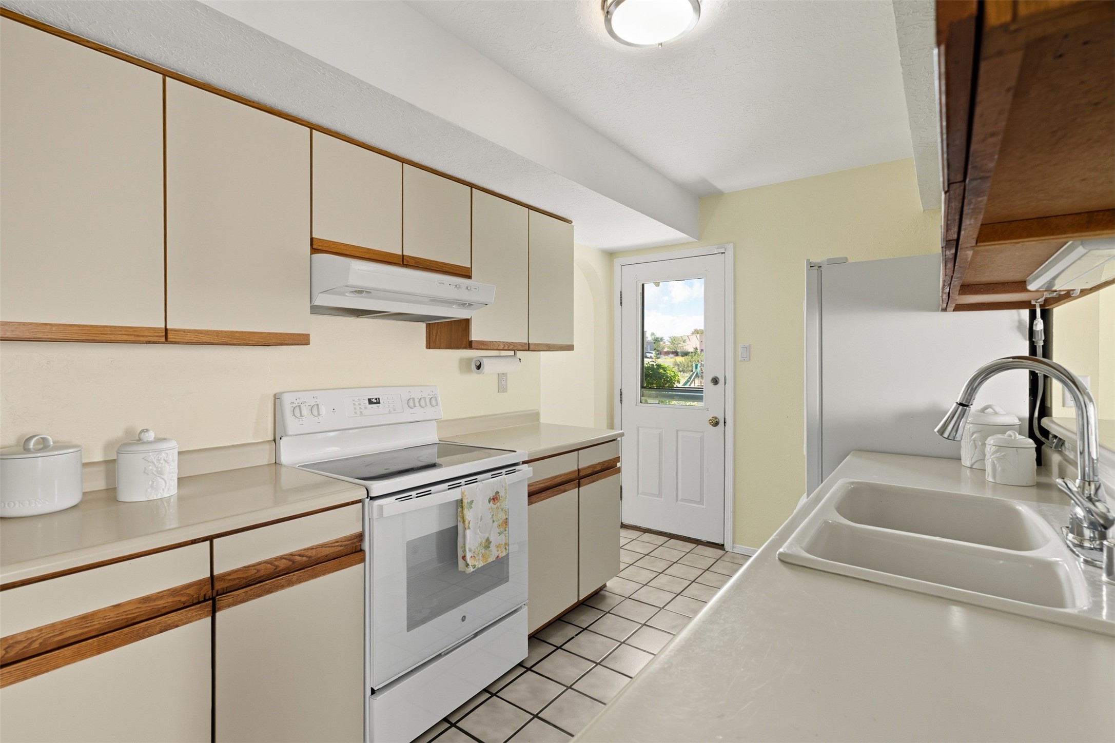Patio home with two bedrooms and two bathrooms, plus a bonus room off the main living area that could be used as a den or office. The living room has a high ceiling and lots of light. Formal dining area adjacent to the kitchen that leads to the spacious outdoor area with covered portal, patio space and the backyard area which backs up to the Las Estancias Park. The primary bedroom is spacious and the second bedroom is at the opposite side of the hall. An oversized garage includes built-in cabinetry for storage and an additional freezer that conveys with the home. Enjoy outdoor entertaining or quiet evenings in the private gated courtyard. A perfect blend of comfort, functionality, and outdoor living!