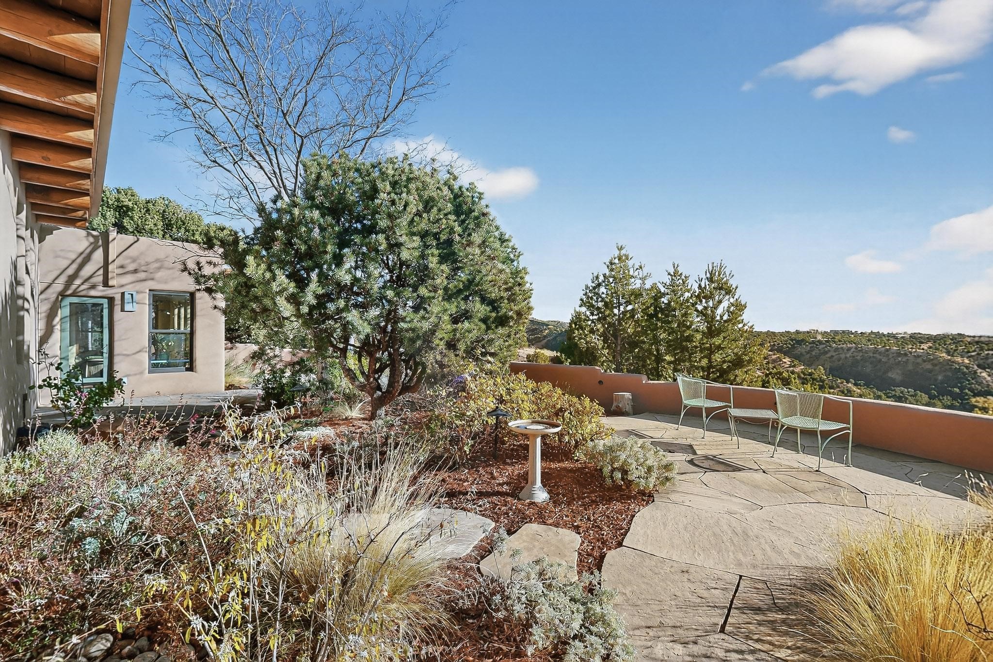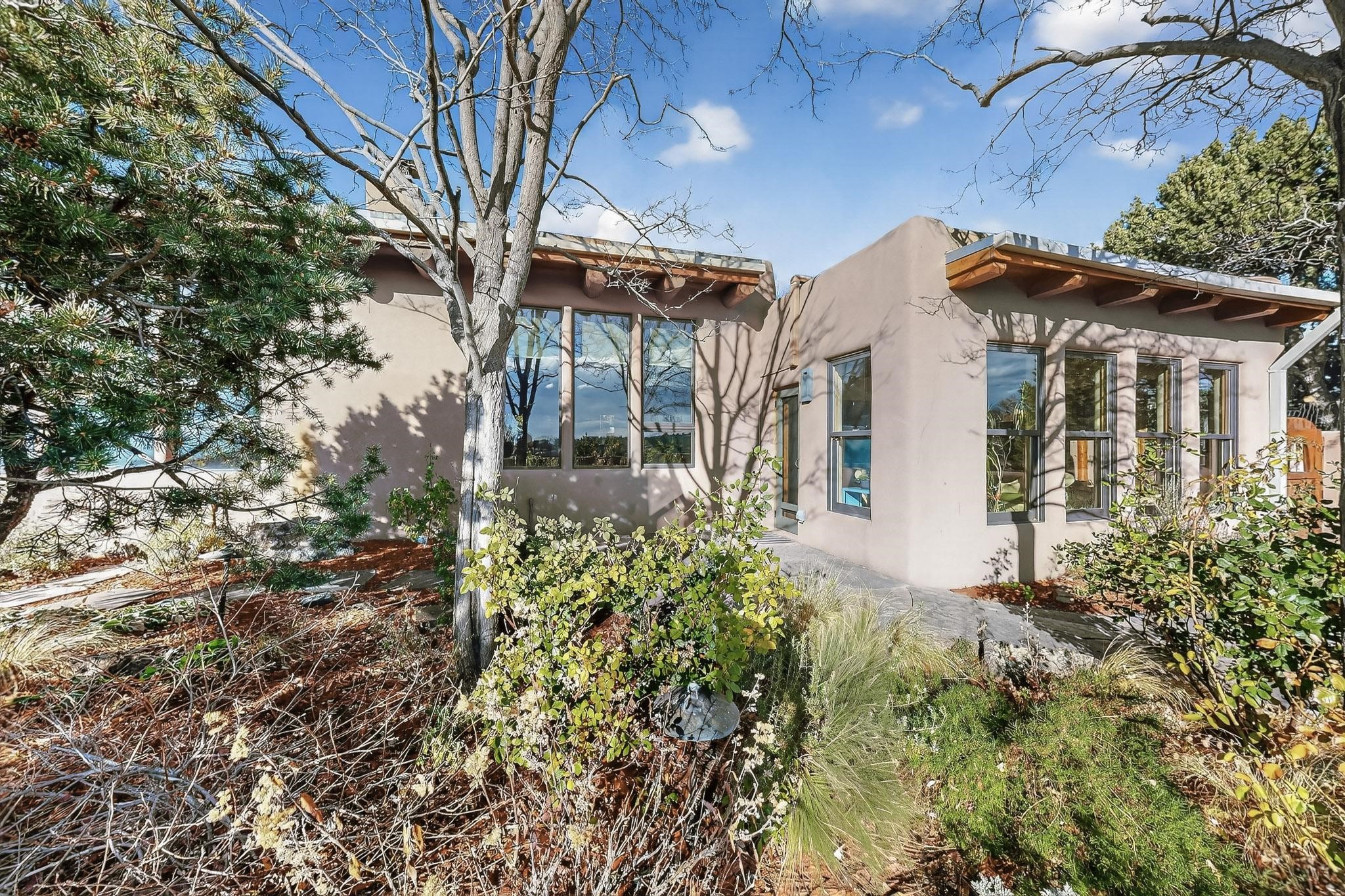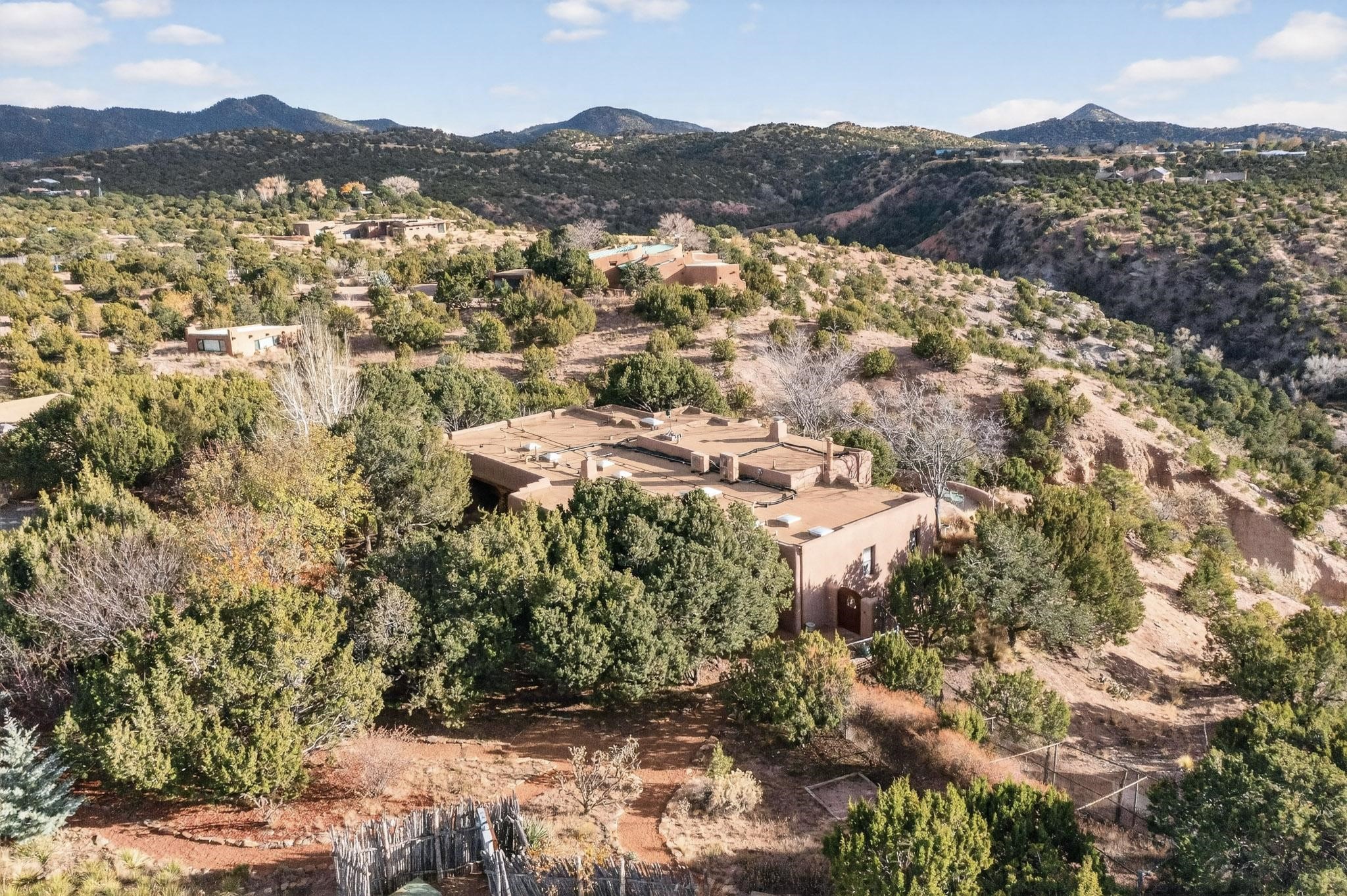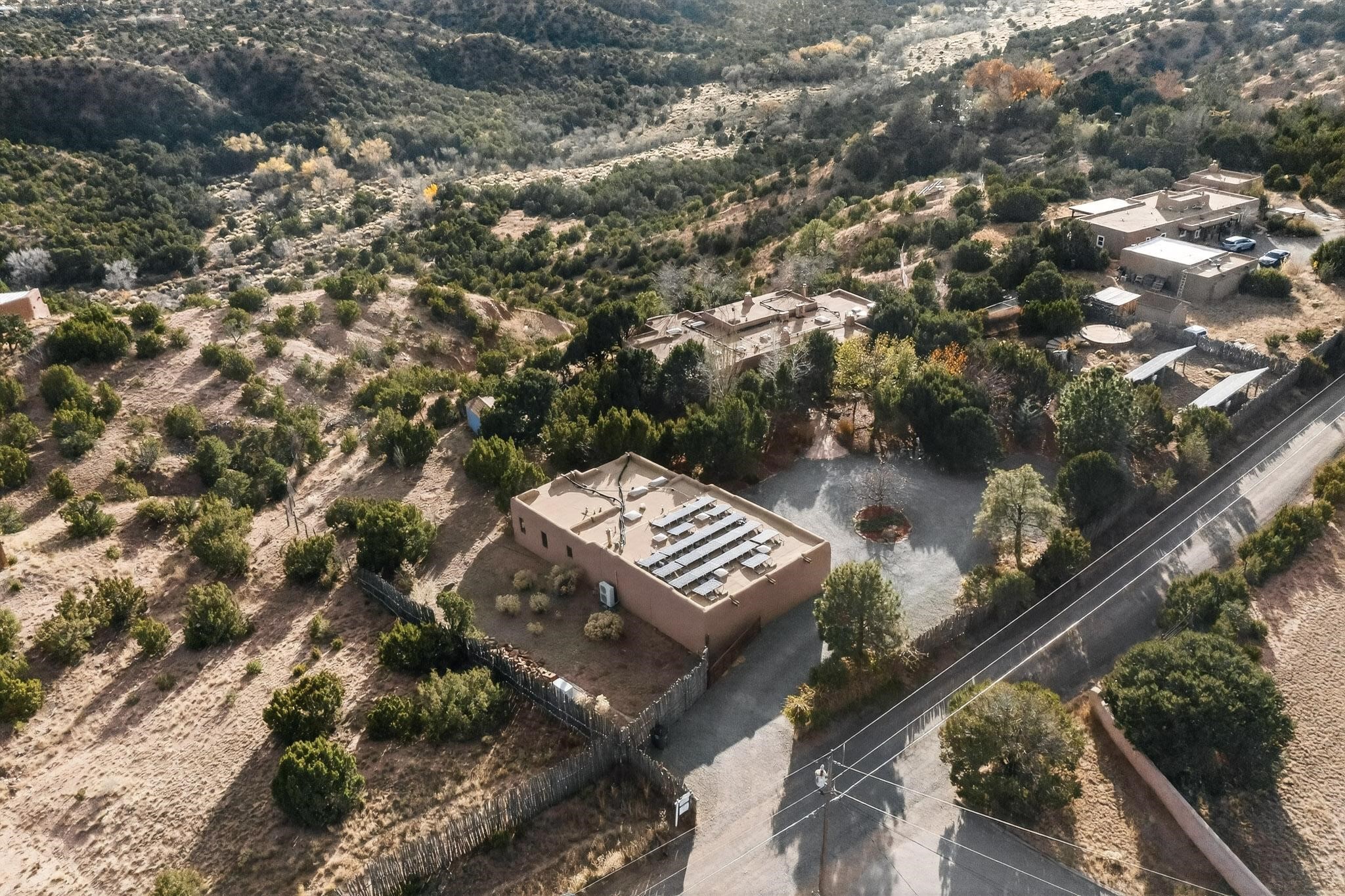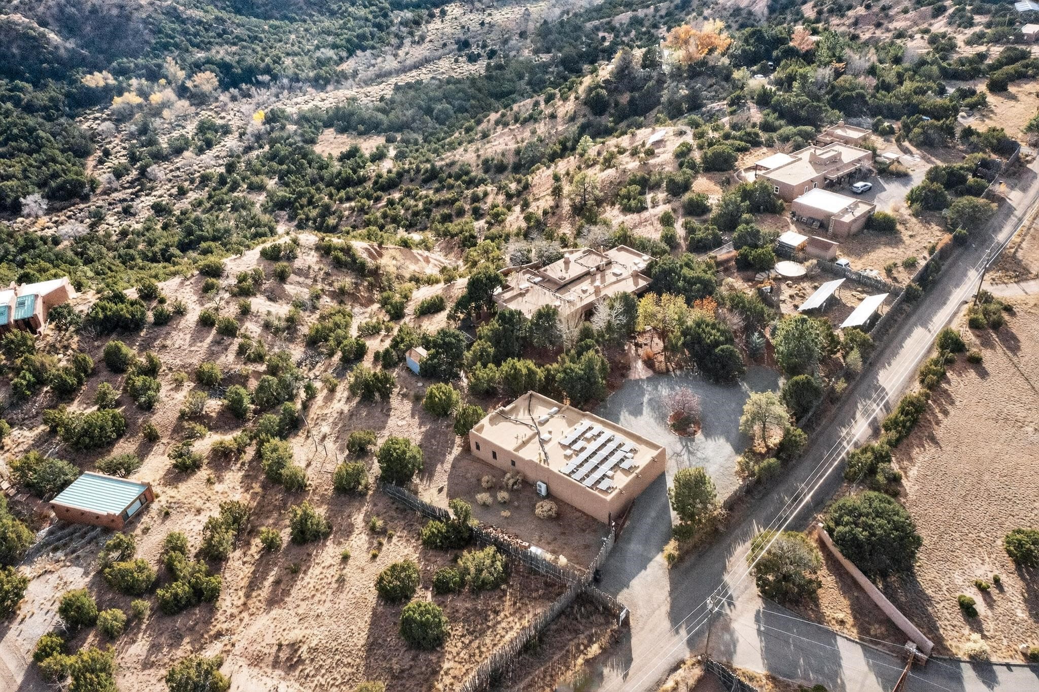 The 24 Old Agua Fria adobe compound is a rare property given its unique location on the north rim of the Arroyo Hondo , a tributary of the Santa Fe River, with its inspiring and commanding canyon views to the south and west, its access to nearby public and private trails, its plentiful garden pathways, stone walls, and diverse trees and plants. Of note, the property has a remarkable solar footprint both on ground and rooftop that champions its sustainable profile in locked step with PNM. And finally, the nearby proximity of the indigenous Arroyo Hondo Pueblo (Ca1300 CE) that grew into a 1000 room thriving community, speaks with immediacy to our local Archeological heritage and its stewardship today under the Archeological Conservancy. See WWW.ArroyoHondo.Org in Associated Docs for the compelling Santa Fe storyline that emerged in the 20th Century.The adobe Main House was bult in 1990 and the Casita in 2000. The Main has 3 bedroom, 2 bathrooms and the Casita includes a 1 bedroom with adjacent Living Room, a small kitchen and 1 bathroom. A large adobe garage abuts to the north for car parking (EV connections), storage and creative uses. The property has a private well, the land parcel with its serene, sunny vistas shares 7.94 relatively undeveloped private acres with close access to downtown Sant Fe at 10 minutes drive away. Please come visit this extraordinary residence, experience its embrace of soft canyon winds, long sunrise and sunset views with hilltop promontory privacy that's hard to find today!