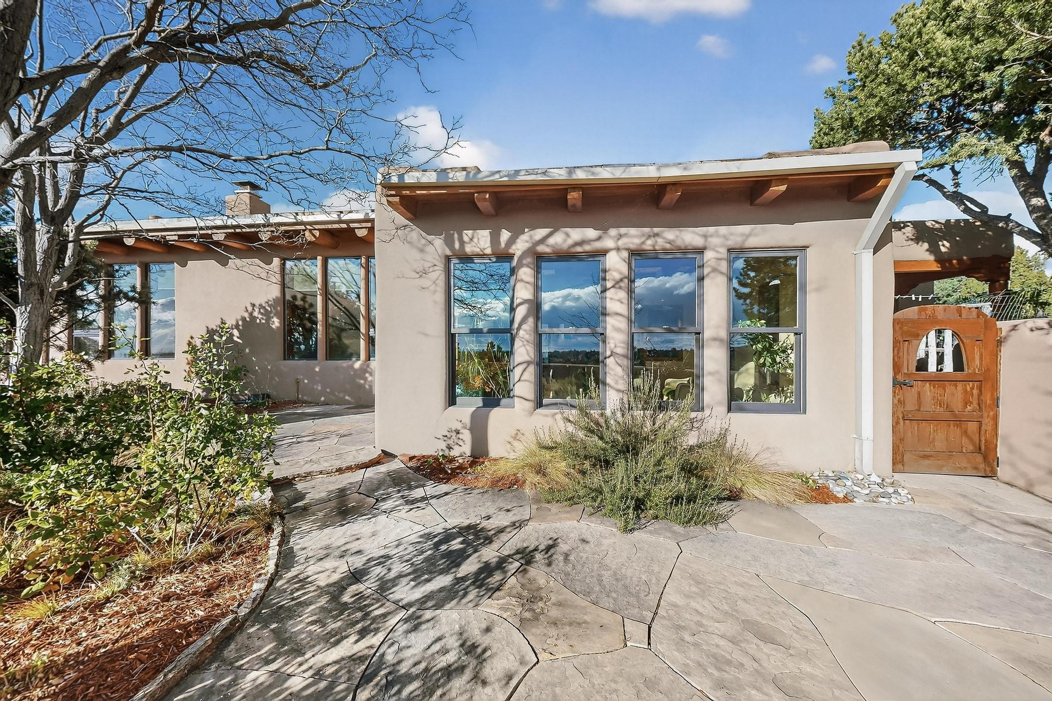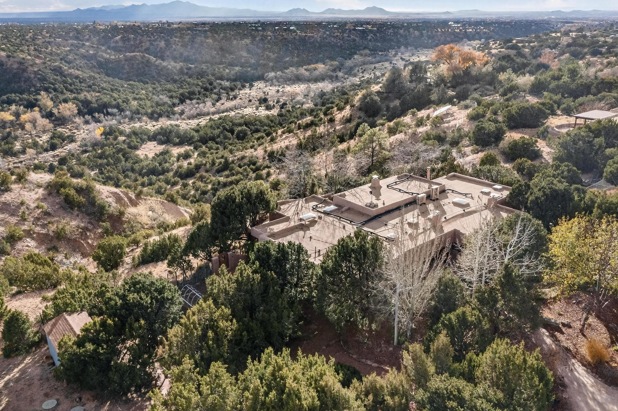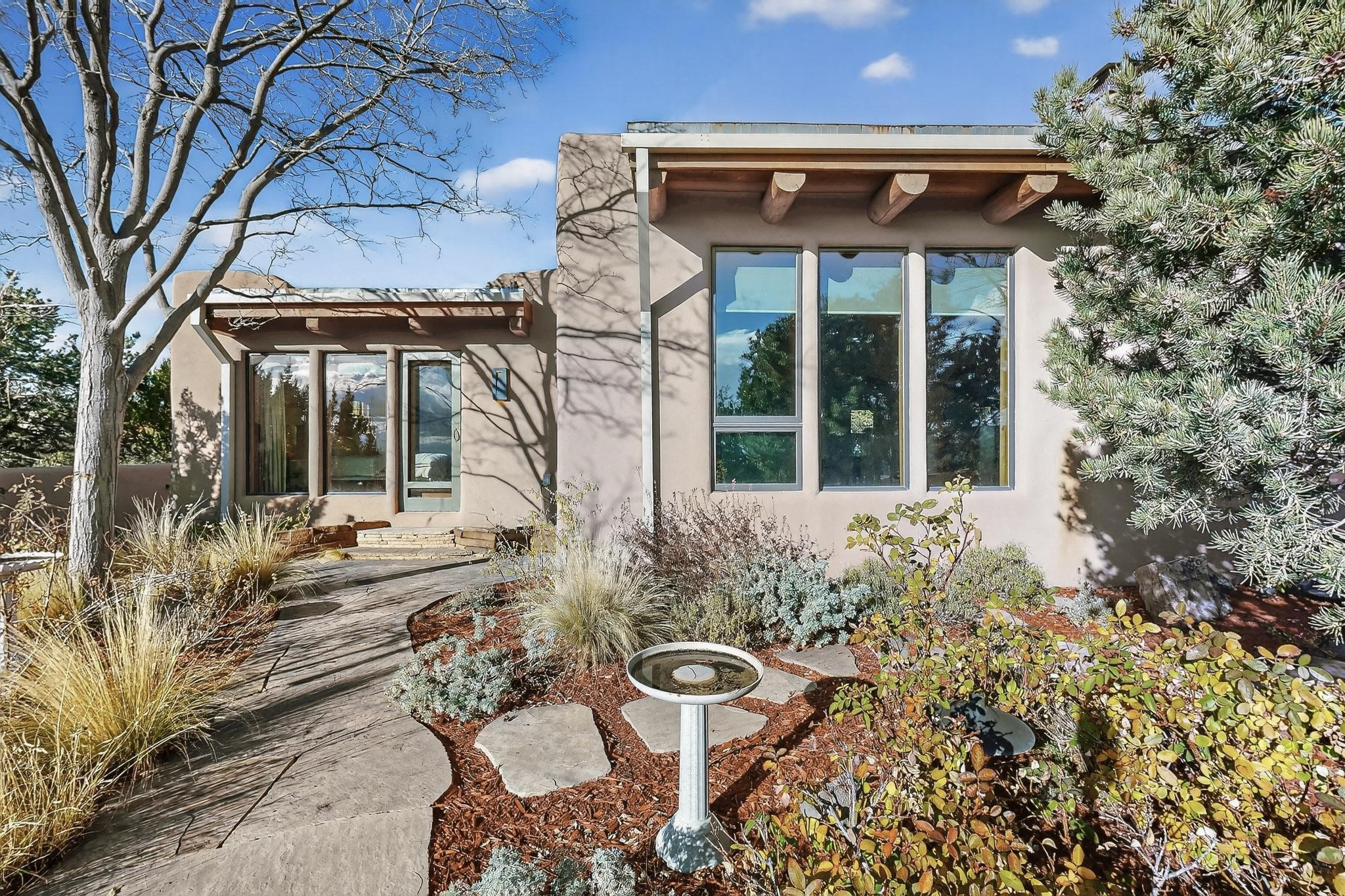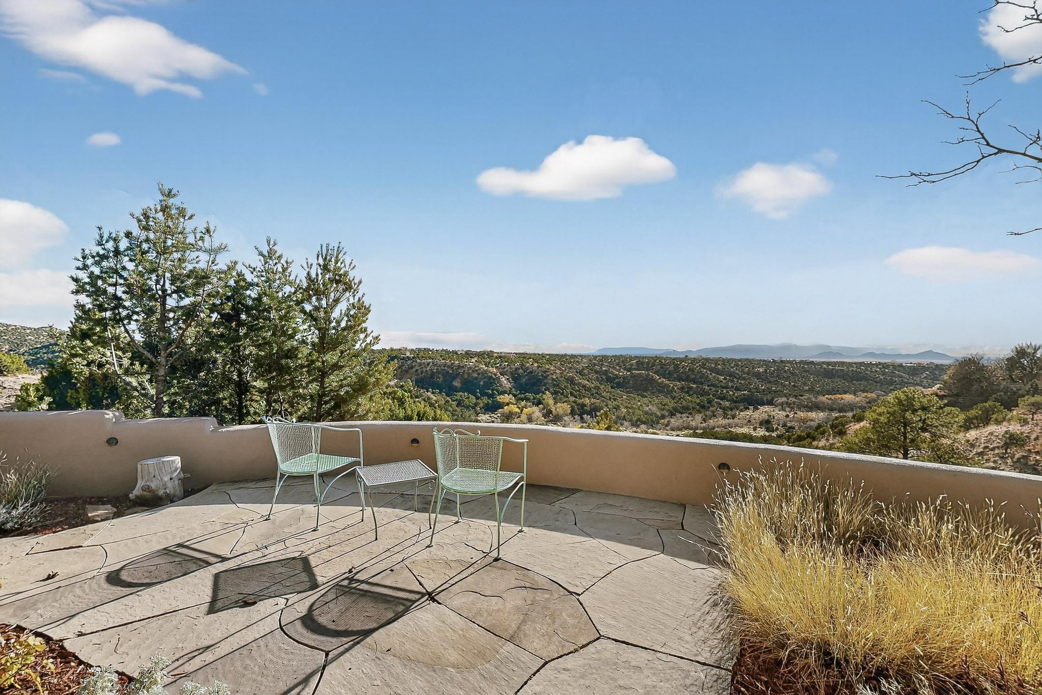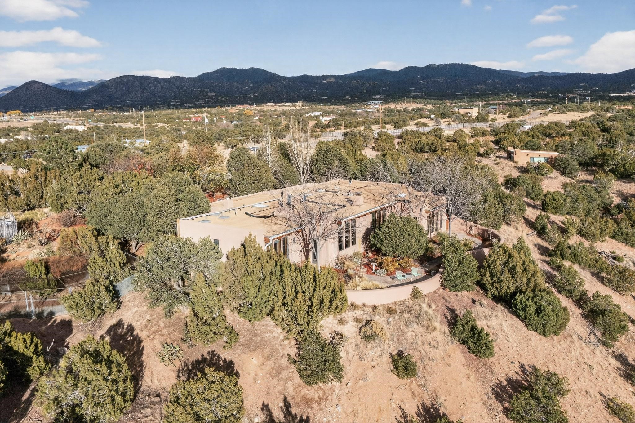 The 24 Old Agua Fria adobe compound is a rare property given its unique location on the north rim of the Arroyo Hondo , a tributary of the Santa Fe River, with its inspiring and commanding canyon views to the south and west, its access to nearby public and private trails, its plentiful garden pathways, stone walls, and diverse trees and plants. Of note, the property has a remarkable solar footprint both on ground and rooftop that champions its sustainable profile in locked step with PNM. And finally, the nearby proximity of the indigenous Arroyo Hondo Pueblo (Ca1300 CE) that grew into a 1000 room thriving community, speaks with immediacy to our local Archeological heritage and its stewardship today under the Archeological Conservancy. See WWW.ArroyoHondo.Org in Associated Docs for the compelling Santa Fe storyline that emerged in the 20th Century.The adobe Main House was bult in 1990 and the Casita in 2000. The Main has 3 bedroom, 2 bathrooms and the Casita includes a 1 bedroom with adjacent Living Room, a small kitchen and 1 bathroom. A large adobe garage abuts to the north for car parking (EV connections), storage and creative uses. The property has a private well, the land parcel with its serene, sunny vistas shares 7.94 relatively undeveloped private acres with close access to downtown Sant Fe at 10 minutes drive away. Please come visit this extraordinary residence, experience its embrace of soft canyon winds, long sunrise and sunset views with hilltop promontory privacy that's hard to find today!