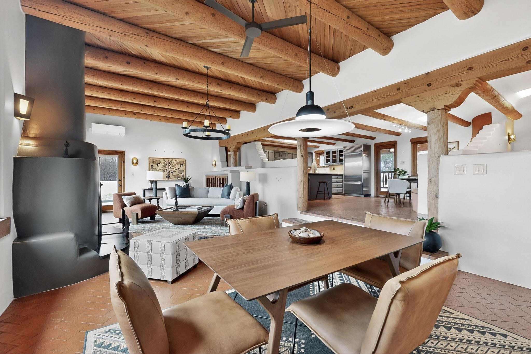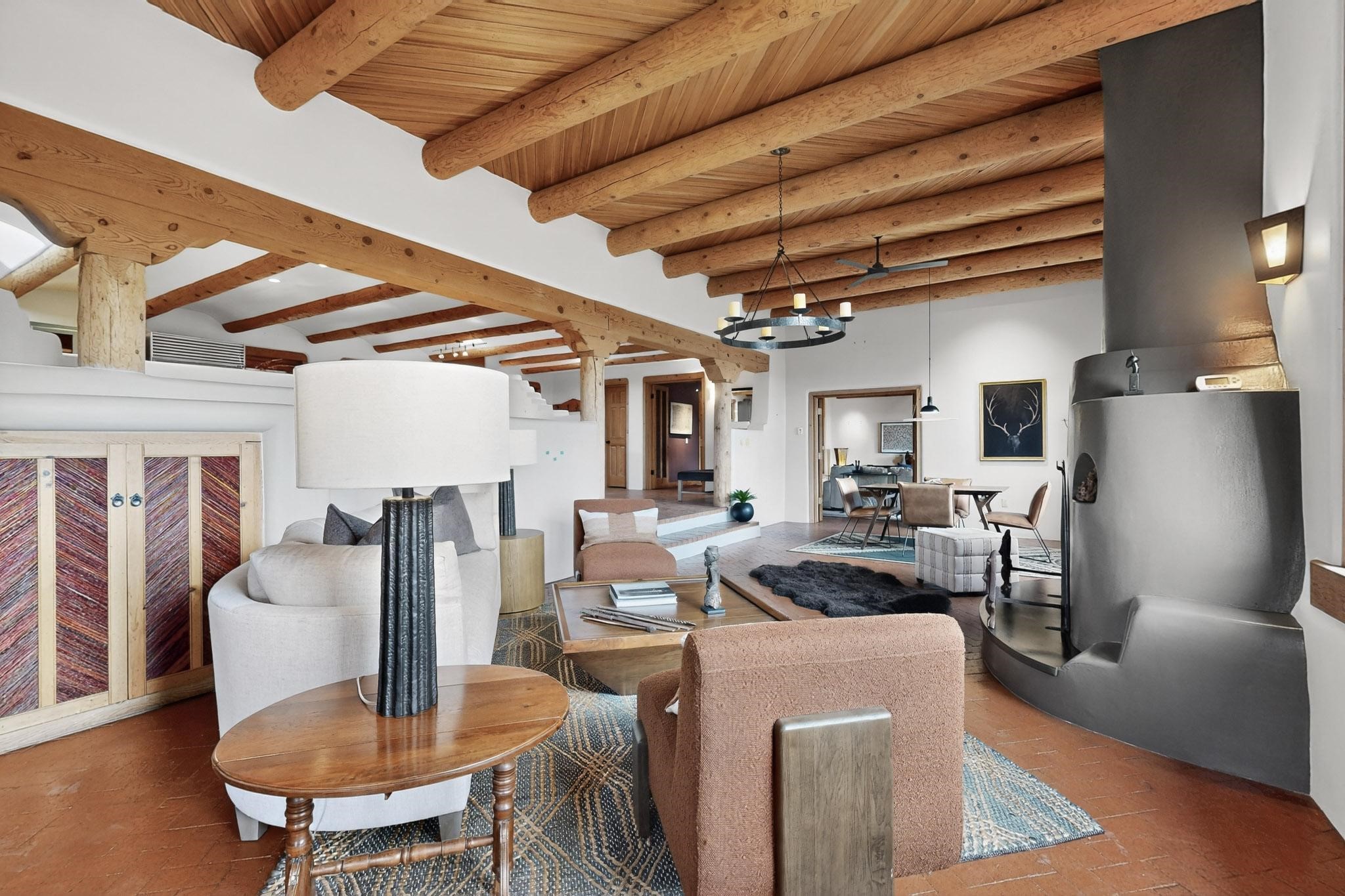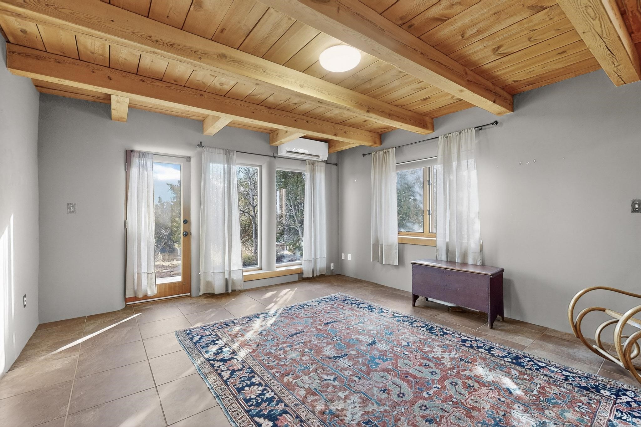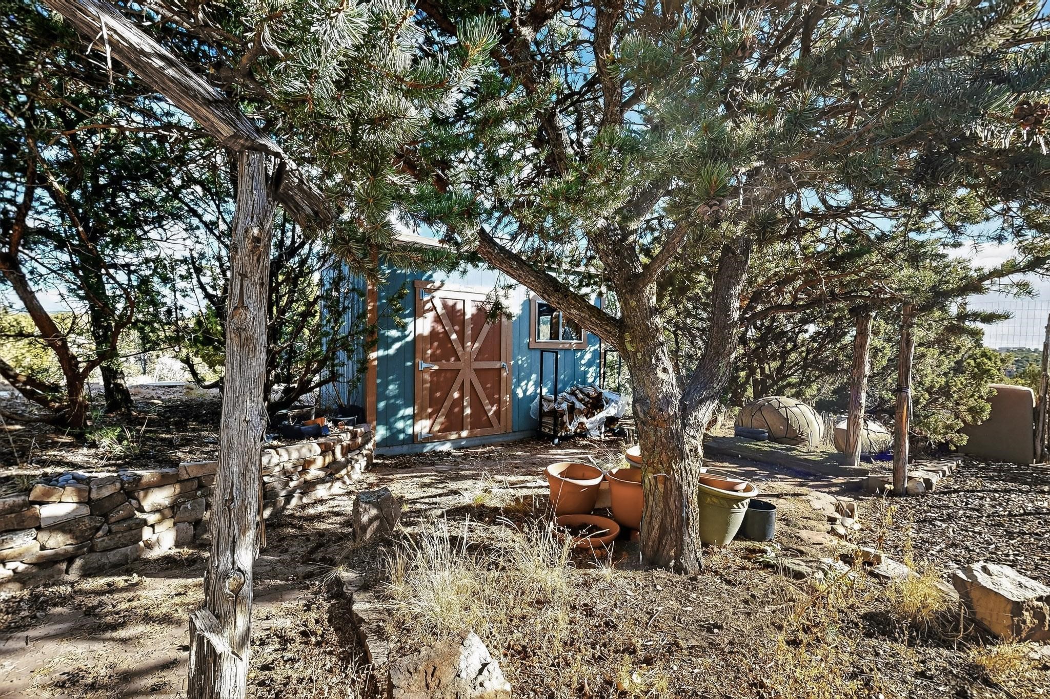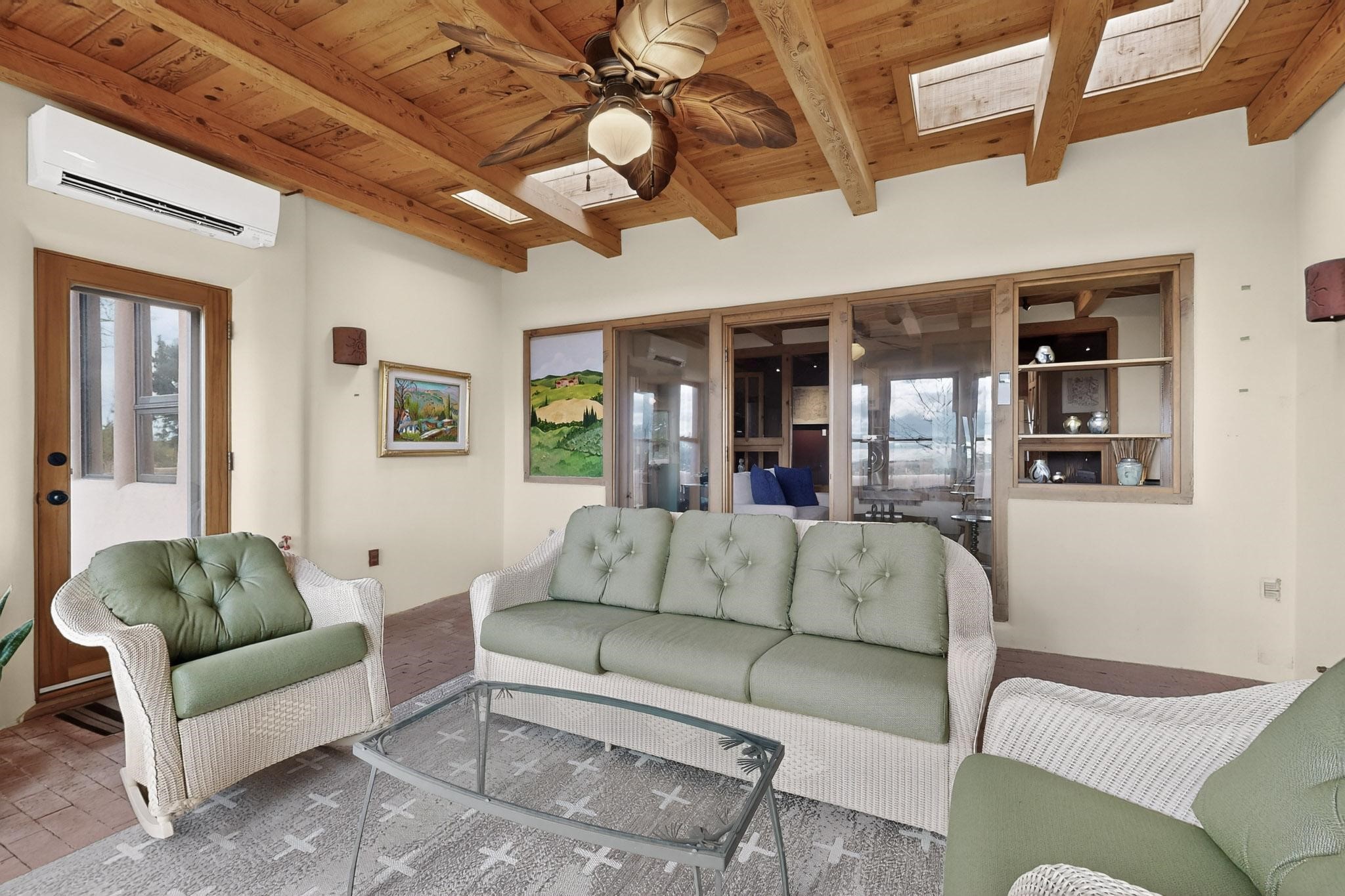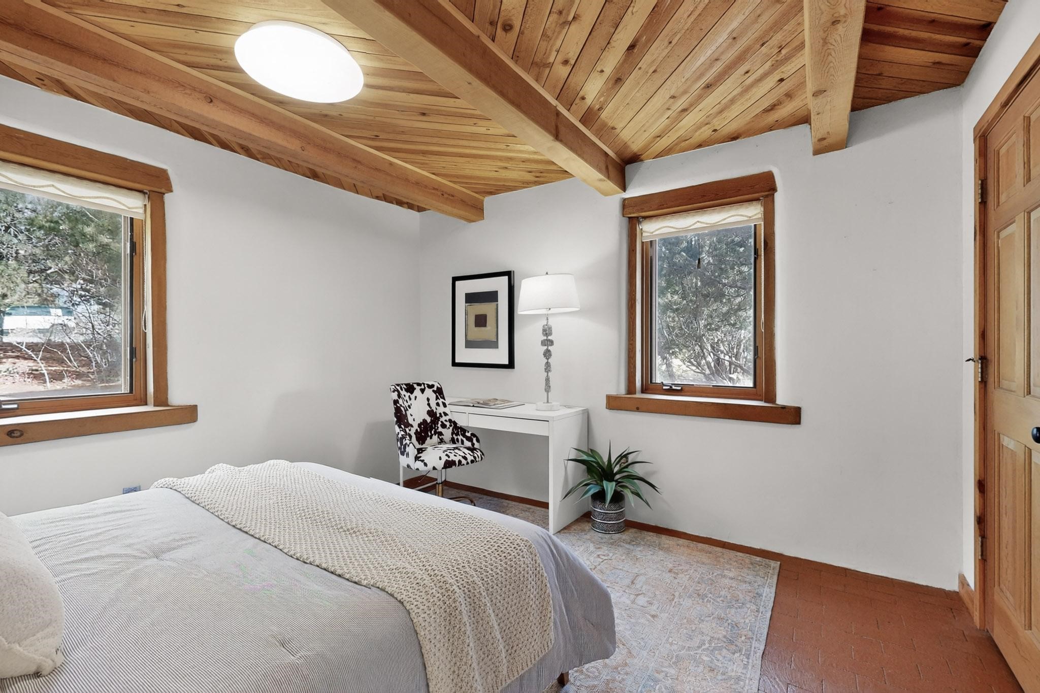 The 24 Old Agua Fria adobe compound is a rare property given its unique location on the north rim of the Arroyo Hondo , a tributary of the Santa Fe River, with its inspiring and commanding canyon views to the south and west, its access to nearby public and private trails, its plentiful garden pathways, stone walls, and diverse trees and plants. Of note, the property has a remarkable solar footprint both on ground and rooftop that champions its sustainable profile in locked step with PNM. And finally, the nearby proximity of the indigenous Arroyo Hondo Pueblo (Ca1300 CE) that grew into a 1000 room thriving community, speaks with immediacy to our local Archeological heritage and its stewardship today under the Archeological Conservancy. See WWW.ArroyoHondo.Org in Associated Docs for the compelling Santa Fe storyline that emerged in the 20th Century.The adobe Main House was bult in 1990 and the Casita in 2000. The Main has 3 bedroom, 2 bathrooms and the Casita includes a 1 bedroom with adjacent Living Room, a small kitchen and 1 bathroom. A large adobe garage abuts to the north for car parking (EV connections), storage and creative uses. The property has a private well, the land parcel with its serene, sunny vistas shares 7.94 relatively undeveloped private acres with close access to downtown Sant Fe at 10 minutes drive away. Please come visit this extraordinary residence, experience its embrace of soft canyon winds, long sunrise and sunset views with hilltop promontory privacy that's hard to find today!