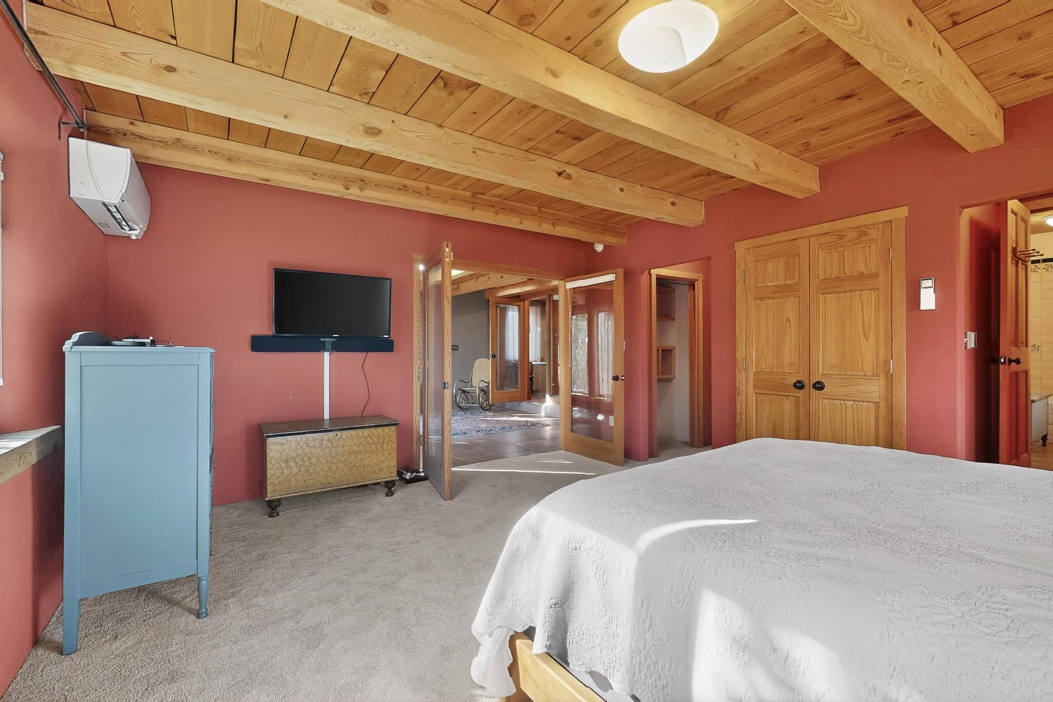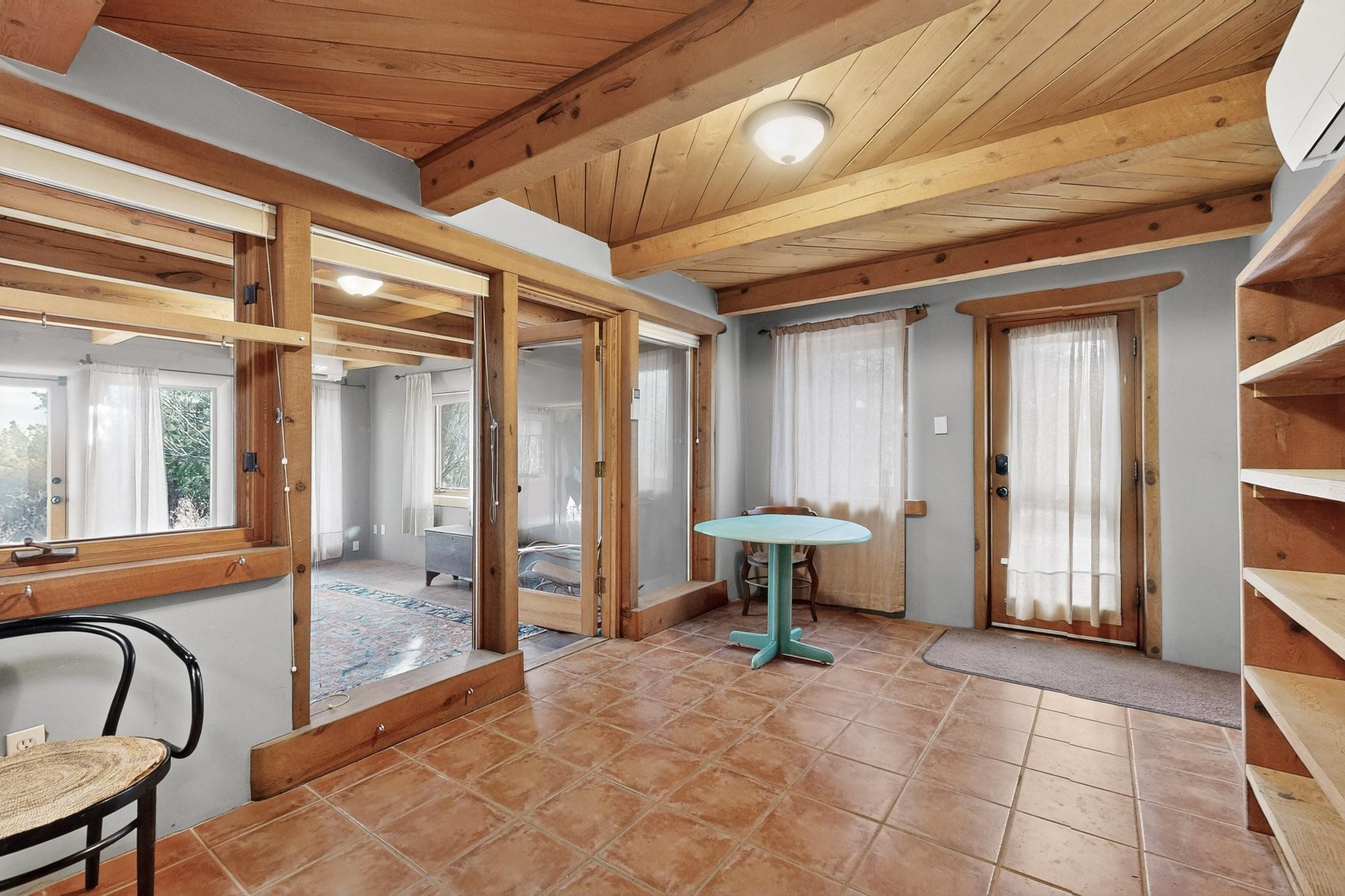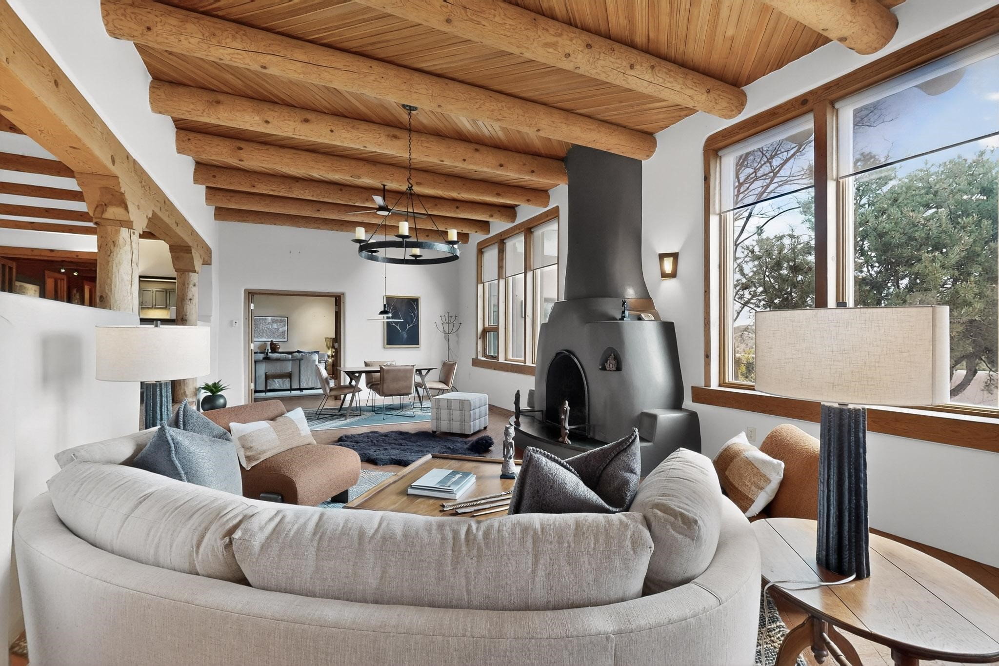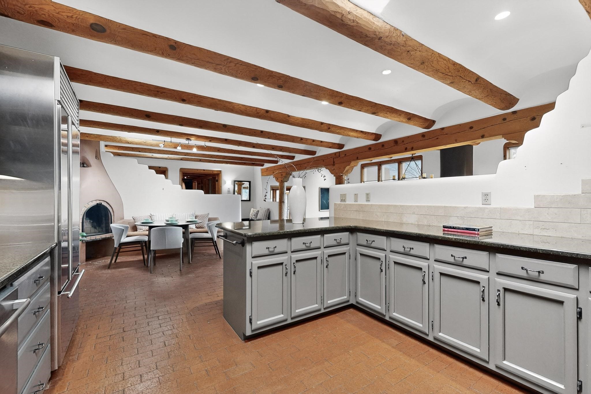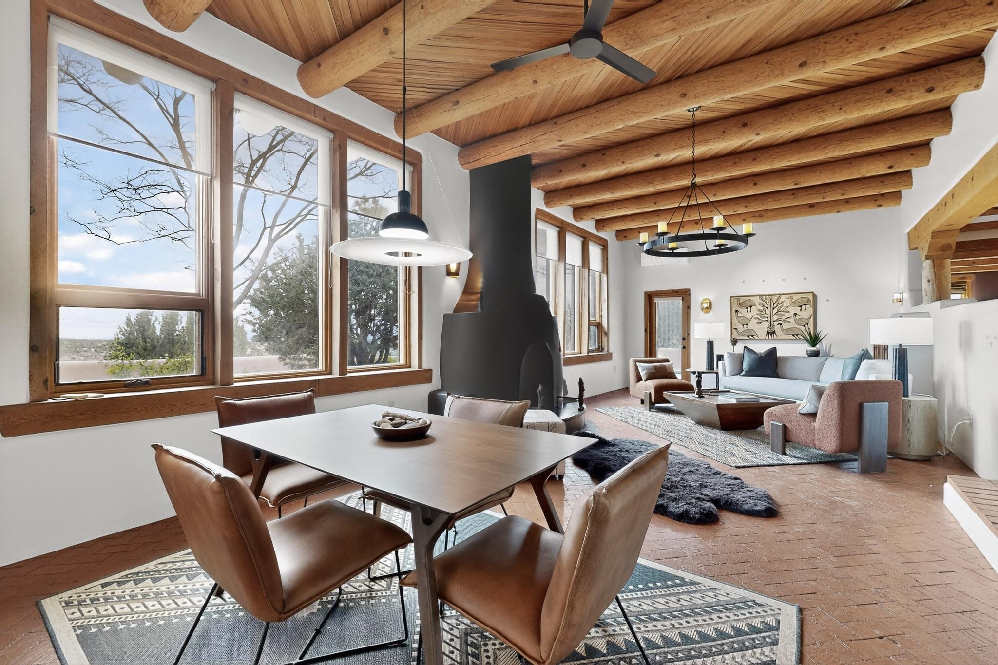 The 24 Old Agua Fria adobe compound is a rare property given its unique location on the north rim of the Arroyo Hondo , a tributary of the Santa Fe River, with its inspiring and commanding canyon views to the south and west, its access to nearby public and private trails, its plentiful garden pathways, stone walls, and diverse trees and plants. Of note, the property has a remarkable solar footprint both on ground and rooftop that champions its sustainable profile in locked step with PNM. And finally, the nearby proximity of the indigenous Arroyo Hondo Pueblo (Ca1300 CE) that grew into a 1000 room thriving community, speaks with immediacy to our local Archeological heritage and its stewardship today under the Archeological Conservancy. See WWW.ArroyoHondo.Org in Associated Docs for the compelling Santa Fe storyline that emerged in the 20th Century.The adobe Main House was bult in 1990 and the Casita in 2000. The Main has 3 bedroom, 2 bathrooms and the Casita includes a 1 bedroom with adjacent Living Room, a small kitchen and 1 bathroom. A large adobe garage abuts to the north for car parking (EV connections), storage and creative uses. The property has a private well, the land parcel with its serene, sunny vistas shares 7.94 relatively undeveloped private acres with close access to downtown Sant Fe at 10 minutes drive away. Please come visit this extraordinary residence, experience its embrace of soft canyon winds, long sunrise and sunset views with hilltop promontory privacy that's hard to find today!