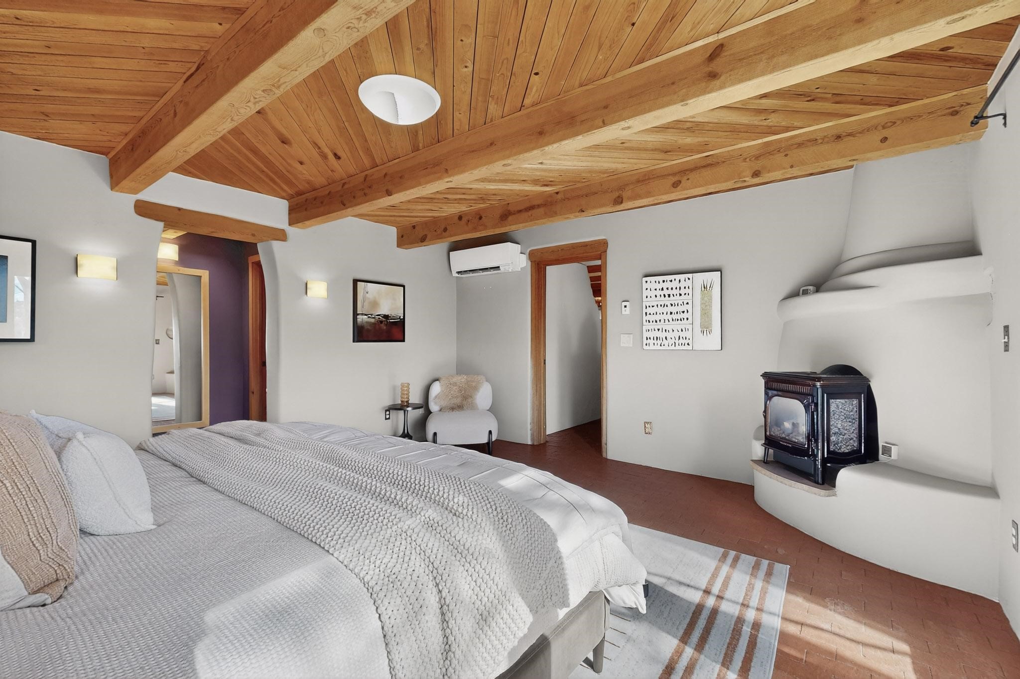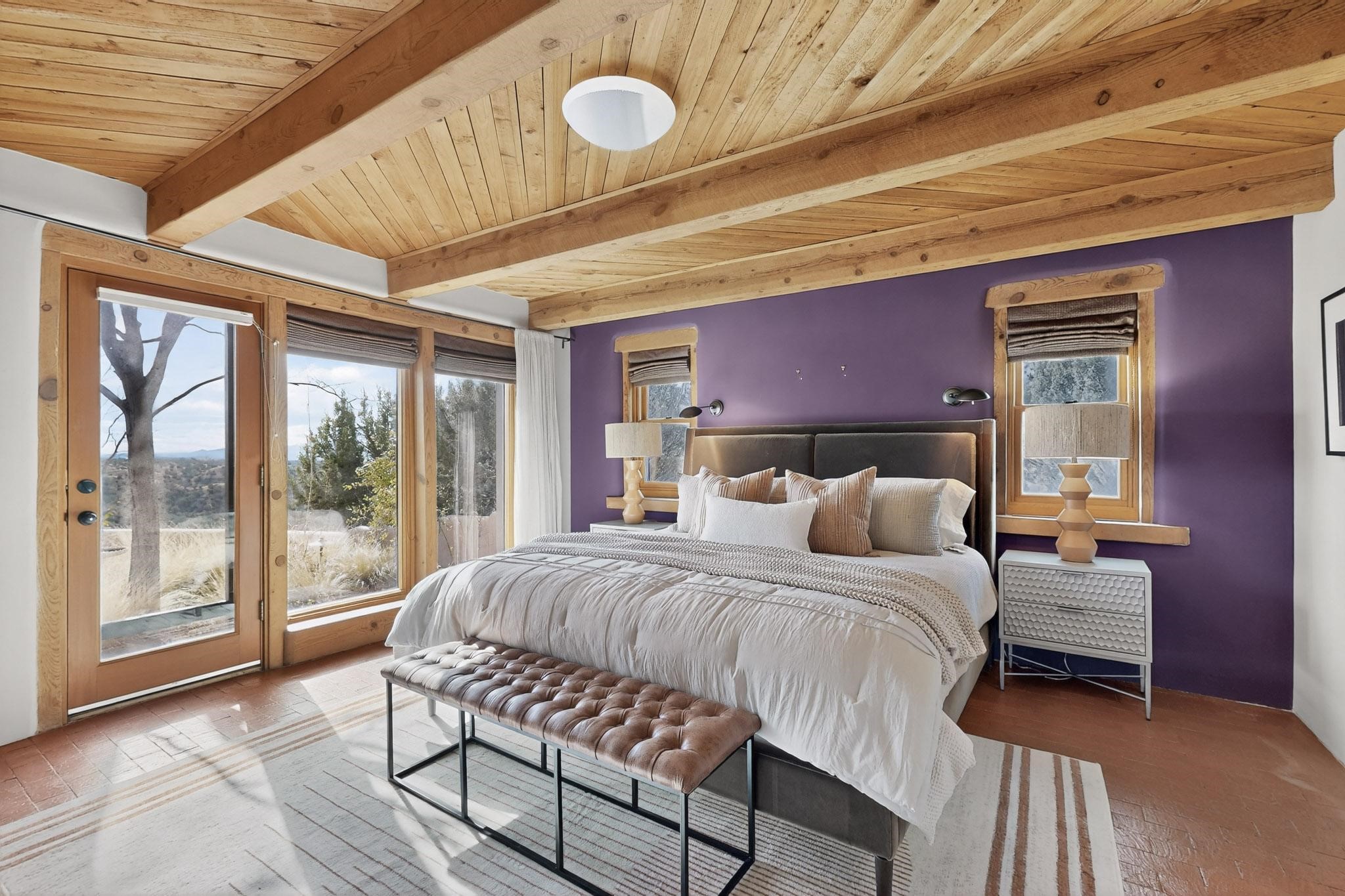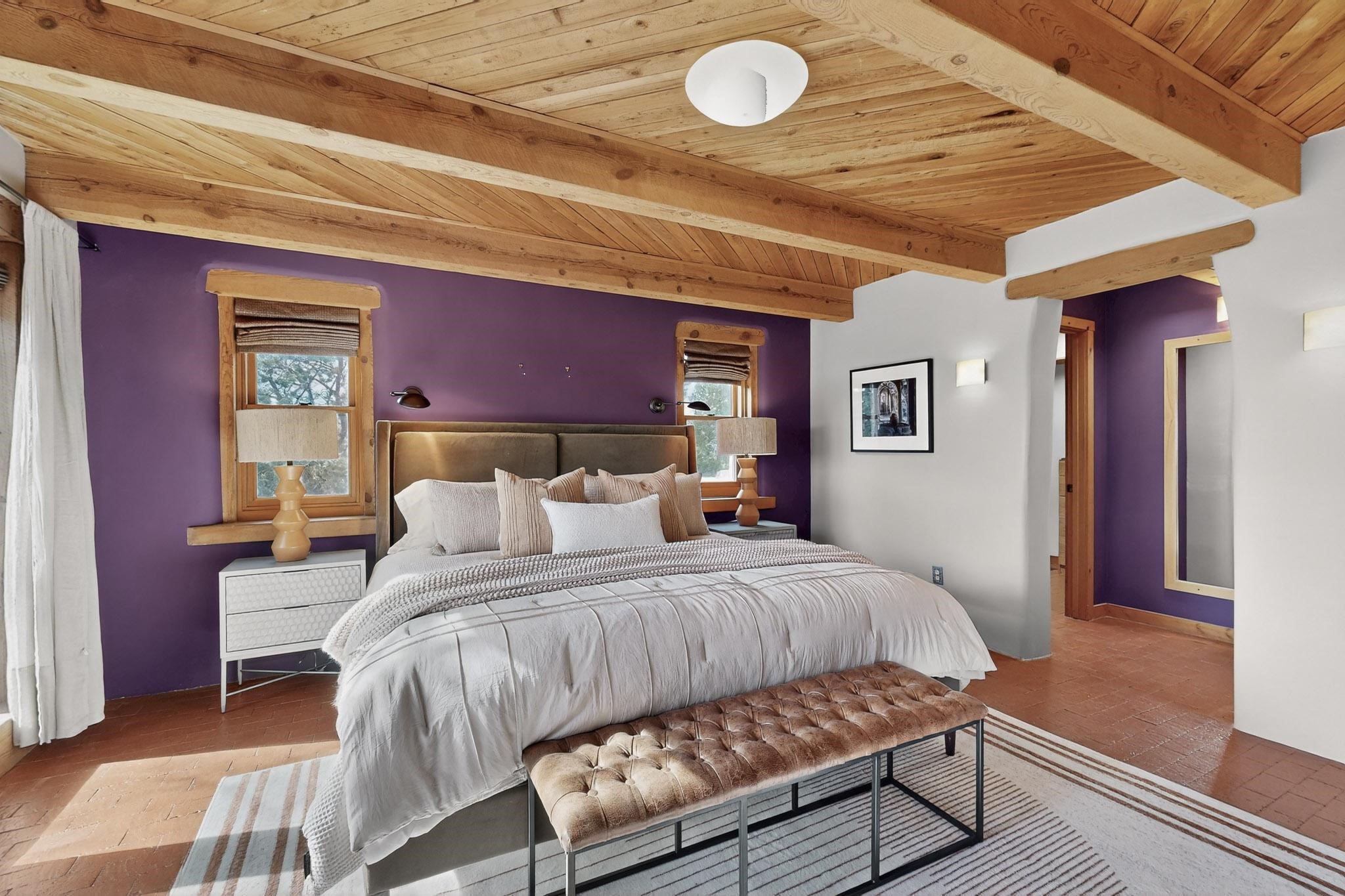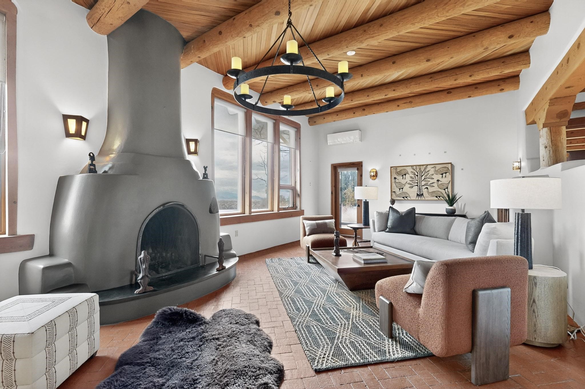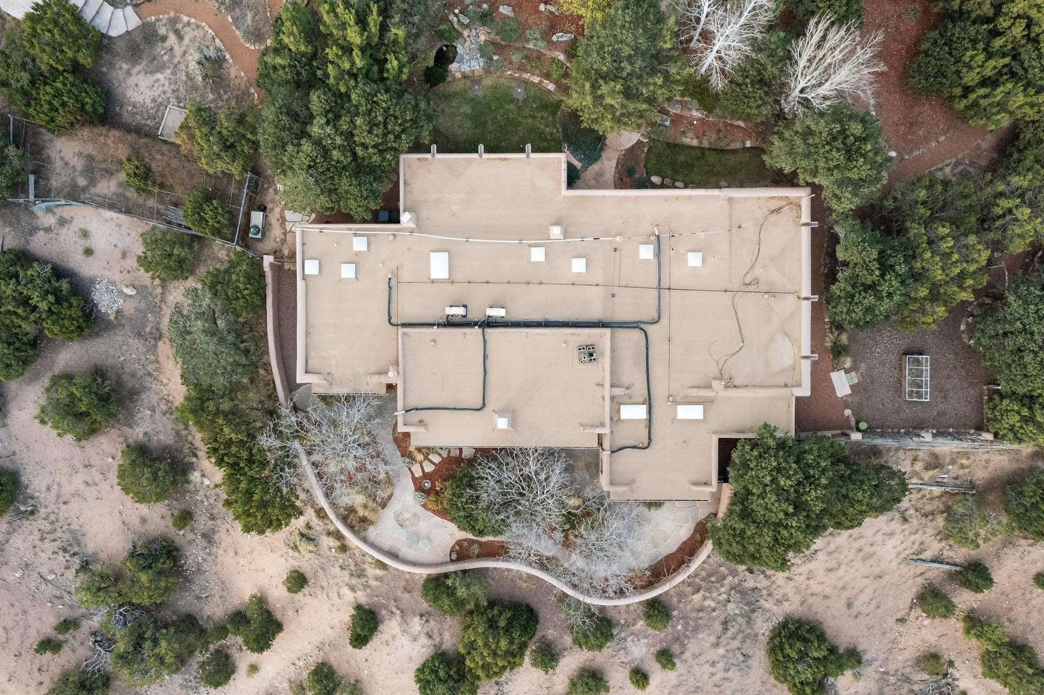 The 24 Old Agua Fria adobe compound is a rare property given its unique location on the north rim of the Arroyo Hondo , a tributary of the Santa Fe River, with its inspiring and commanding canyon views to the south and west, its access to nearby public and private trails, its plentiful garden pathways, stone walls, and diverse trees and plants. Of note, the property has a remarkable solar footprint both on ground and rooftop that champions its sustainable profile in locked step with PNM. And finally, the nearby proximity of the indigenous Arroyo Hondo Pueblo (Ca1300 CE) that grew into a 1000 room thriving community, speaks with immediacy to our local Archeological heritage and its stewardship today under the Archeological Conservancy. See WWW.ArroyoHondo.Org in Associated Docs for the compelling Santa Fe storyline that emerged in the 20th Century.The adobe Main House was bult in 1990 and the Casita in 2000. The Main has 3 bedroom, 2 bathrooms and the Casita includes a 1 bedroom with adjacent Living Room, a small kitchen and 1 bathroom. A large adobe garage abuts to the north for car parking (EV connections), storage and creative uses. The property has a private well, the land parcel with its serene, sunny vistas shares 7.94 relatively undeveloped private acres with close access to downtown Sant Fe at 10 minutes drive away. Please come visit this extraordinary residence, experience its embrace of soft canyon winds, long sunrise and sunset views with hilltop promontory privacy that's hard to find today!