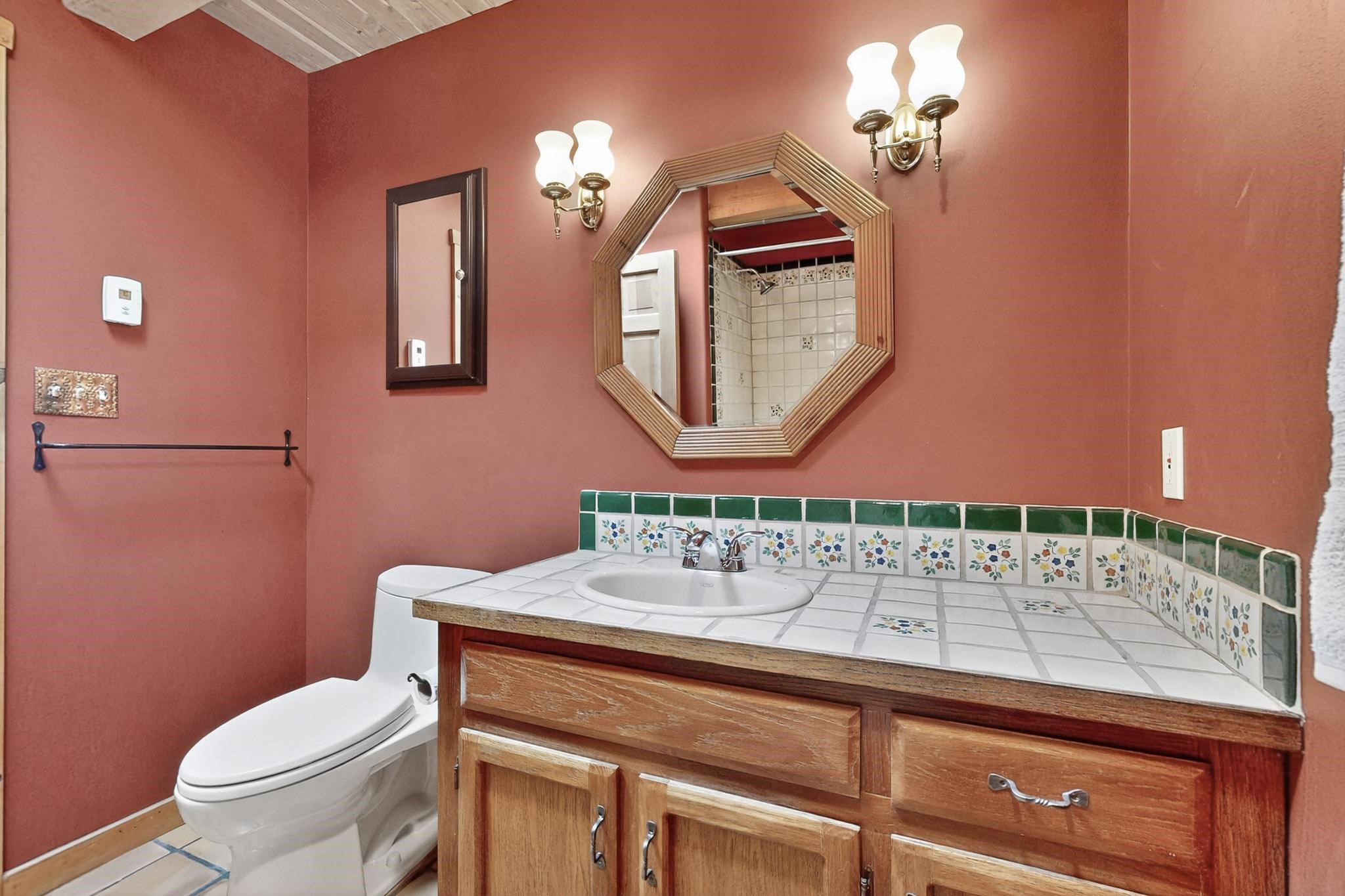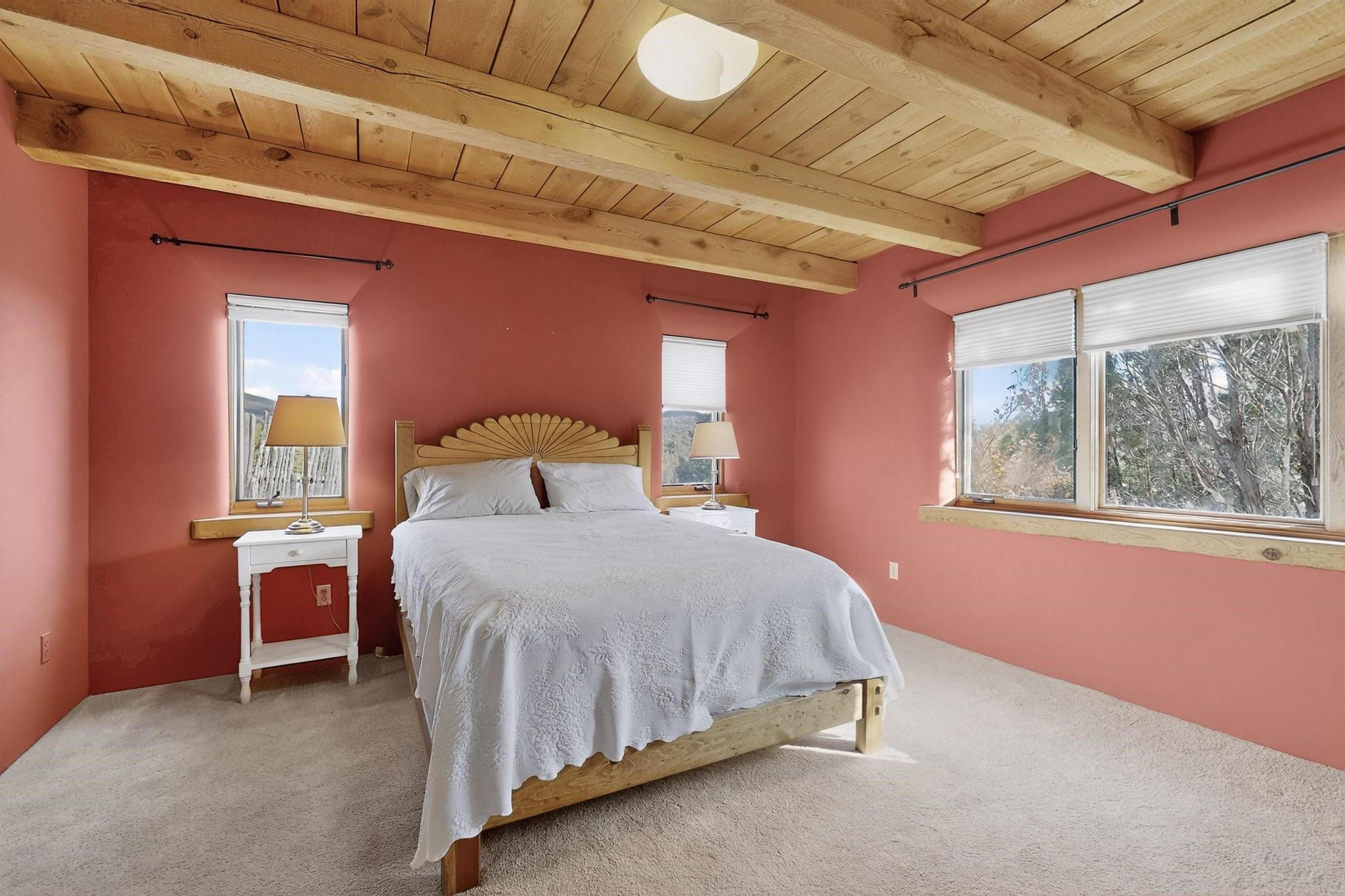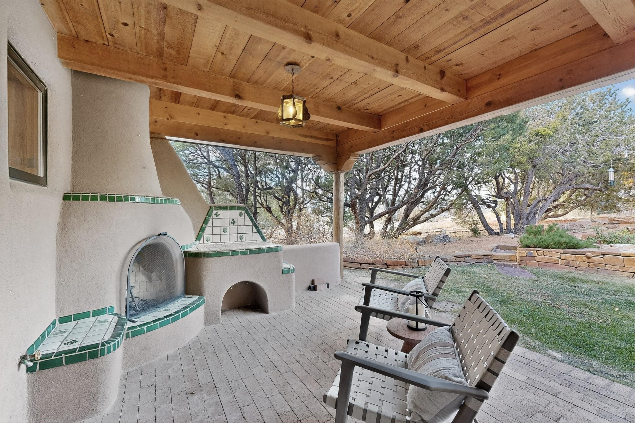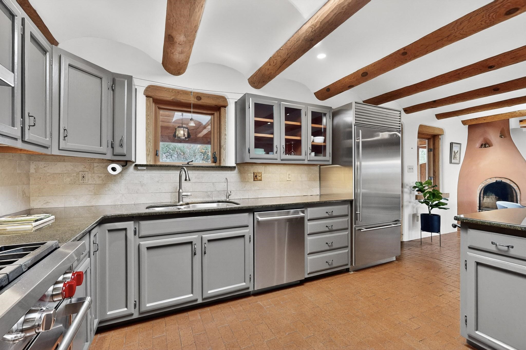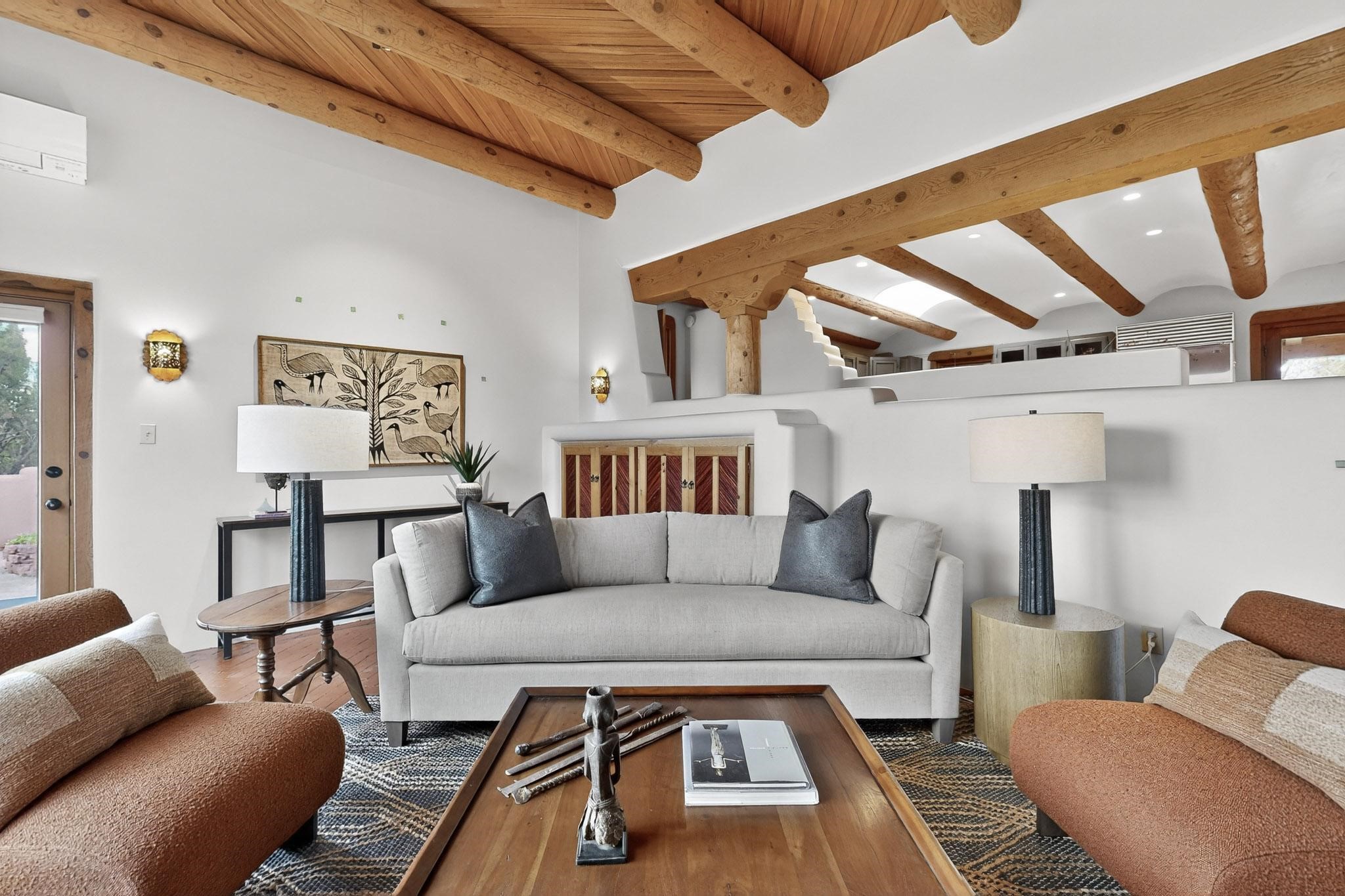 The 24 Old Agua Fria adobe compound is a rare property given its unique location on the north rim of the Arroyo Hondo , a tributary of the Santa Fe River, with its inspiring and commanding canyon views to the south and west, its access to nearby public and private trails, its plentiful garden pathways, stone walls, and diverse trees and plants. Of note, the property has a remarkable solar footprint both on ground and rooftop that champions its sustainable profile in locked step with PNM. And finally, the nearby proximity of the indigenous Arroyo Hondo Pueblo (Ca1300 CE) that grew into a 1000 room thriving community, speaks with immediacy to our local Archeological heritage and its stewardship today under the Archeological Conservancy. See WWW.ArroyoHondo.Org in Associated Docs for the compelling Santa Fe storyline that emerged in the 20th Century.The adobe Main House was bult in 1990 and the Casita in 2000. The Main has 3 bedroom, 2 bathrooms and the Casita includes a 1 bedroom with adjacent Living Room, a small kitchen and 1 bathroom. A large adobe garage abuts to the north for car parking (EV connections), storage and creative uses. The property has a private well, the land parcel with its serene, sunny vistas shares 7.94 relatively undeveloped private acres with close access to downtown Sant Fe at 10 minutes drive away. Please come visit this extraordinary residence, experience its embrace of soft canyon winds, long sunrise and sunset views with hilltop promontory privacy that's hard to find today!