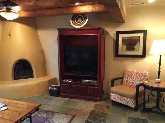 Managed by the Hyatt Vacation Club, this is a fractional (1/8 share) share condo at El Corazon de Santa Fe. It is a deeded 1/8th share in Terra floorplan #48B. There are seven Terra floorplan units, but it isn't a given that an owner will always stay in 48-B but they will always stay in one of the Terra units. Owners get 4 weeks per year, with the possibility of more time if it's available. Two luxurious bedrooms and bathrooms, 1300 square feet in a single level. There is a main living room with fireplace, state-of-the-art kitchen with stainless steel appliances, separate dining area, main living area with fireplace, master bath with dual vanities and jetted tub, private patio or balcony, and outdoor and covered garage parking available, accessed with key code. Cleaning fee due before you leave. Owners can exchange time through the Hyatt Vacation Club and Registry Collection.