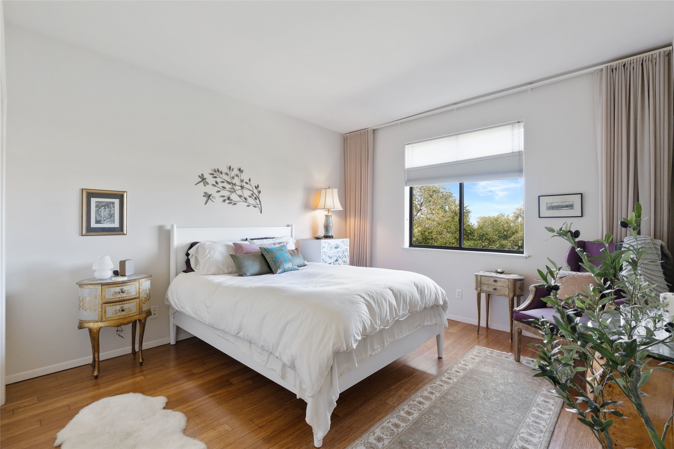 Classic urban oasis surrounded by mature trees, La Remuda Condominium is located on the edge of Midtown where you can walk to relaxed eateries featuring global cuisine and local flair. Not far from theRailyard, quick stops to Trader Joe's and Whole Foods. The central location is convenientfor a fast commute to Los Alamos or I-25. This bright and airy condo features an open floor plan with sliding glass doors at each end of the living/dining rooms with access to the 2 balconies. The kitchen is well designed, with exceptional storage, high quality stainless steel appliances, butcher block on one side of the counter and Italian tile on the other. Other features include: central air conditioning and heating installed in 2023, 9 foot ceilings, beautiful bamboo floors, custom drapes, custom dividedclosets, custom cabinets in living room and office, private storage: 5.5' x 17', Asko washer and dryer, whole house water filtration system installed in 2025, 2 under cover designated parking spots with direct entrance to the secure building, upper floor unit with no interior steps, new roof in 2024 and refreshed stucco in 2025. One of the two only units at La Remuda with 3 bedrooms. Seller will credit one year of special assessment dues with an acceptable offer. This condo is on the second floor and stairs are required to access it.