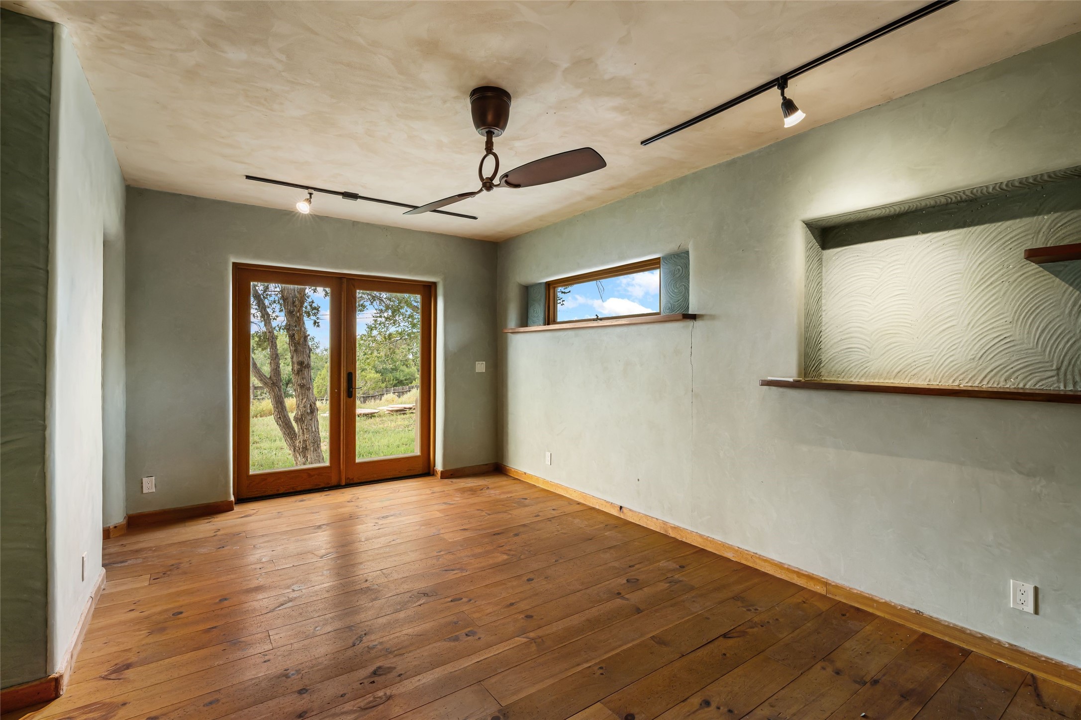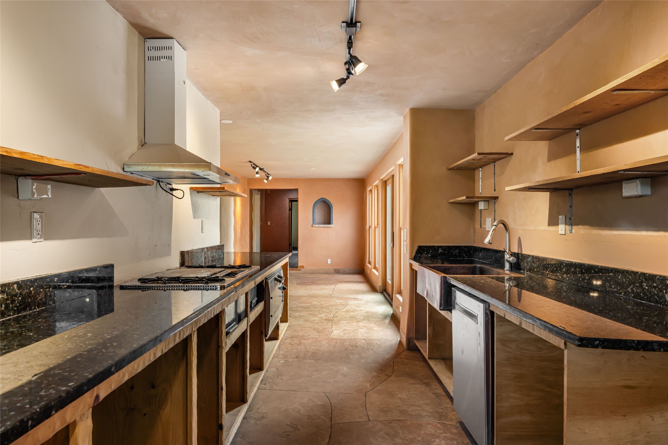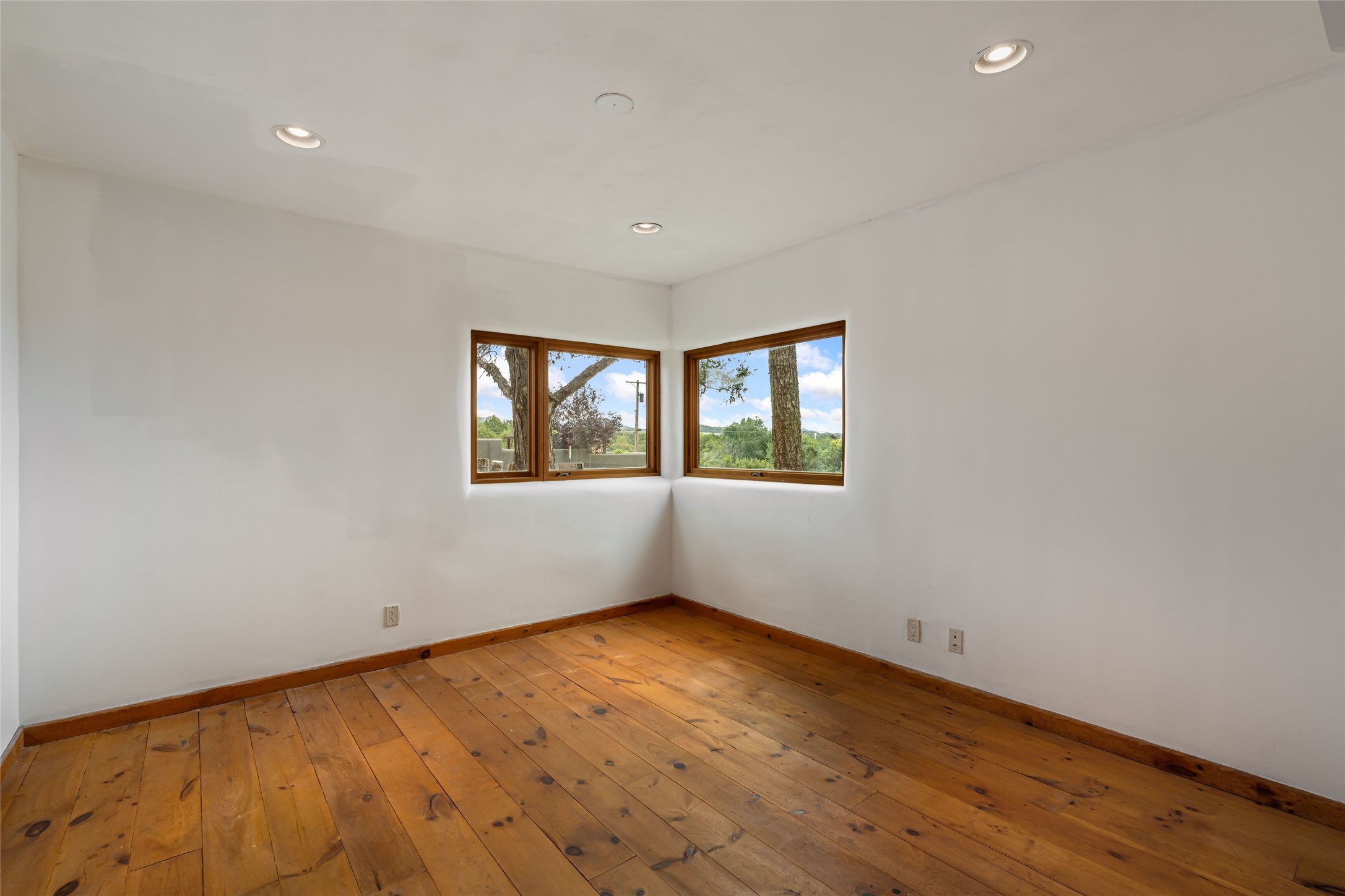 Wonderful opportunity to own a Sol Y Lomas adobe gem. Set your sights on the final finishing touches and upgrades on this adobe, three bedroom, two bathroom home at the end of the Santa Barbara Drive. Home is situated on a 3/4 acre lot with mature trees. Large Sunken Living Room and Dining Room with room for lots of entertaining, both with wood burning Fireplaces and flagstone floors. Beautiful Ceilings with Vigas and Latillas. New Marvin double pane wood windows and hardwood floors. Beautiful carved doors and wood accents in the home. The oversized two car garage has enough additional space for a small workshop. Ductless mini-splits heat and cool. Rinnai tankless hot water heater. Brand new stucco done in 2025. Bathroom includes tub, separate shower and dual sinks with nice tile accents. Lots of storage space. Outside in the back yard is a patio with an older brick fireplace. In the back of home is a space to be finished for a studio apartment with an additional bathroom and access to the back patio. Minutes to Downtown Santa Fe, hospital, shopping, and I-25.