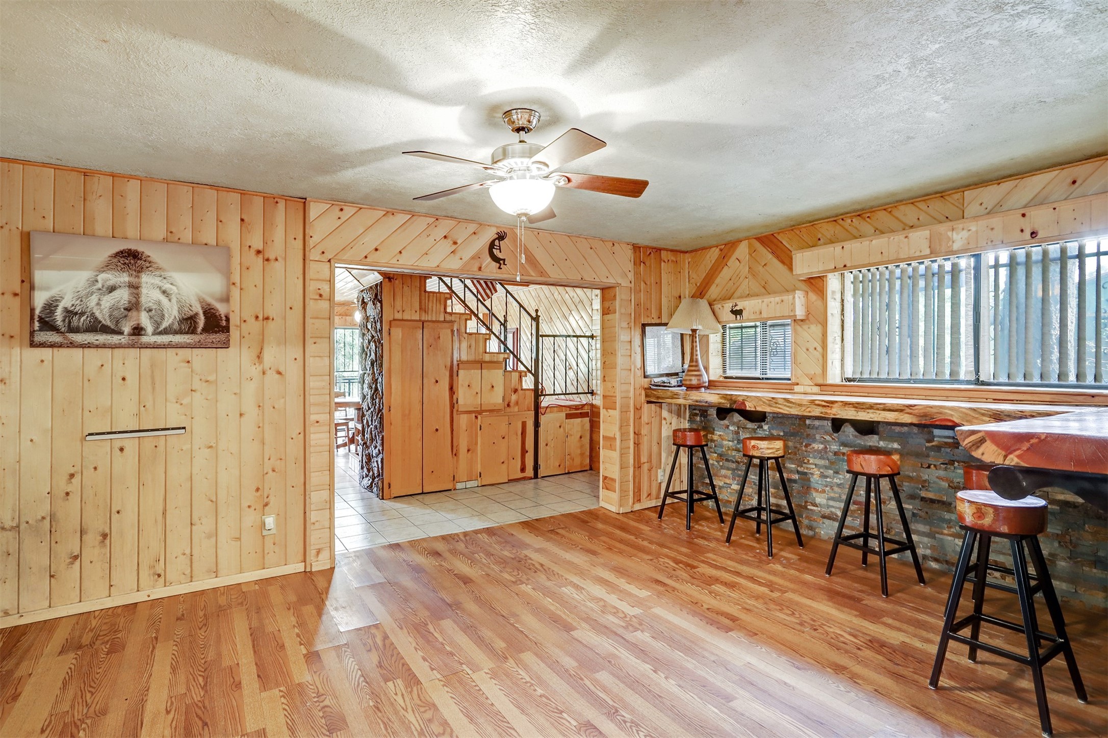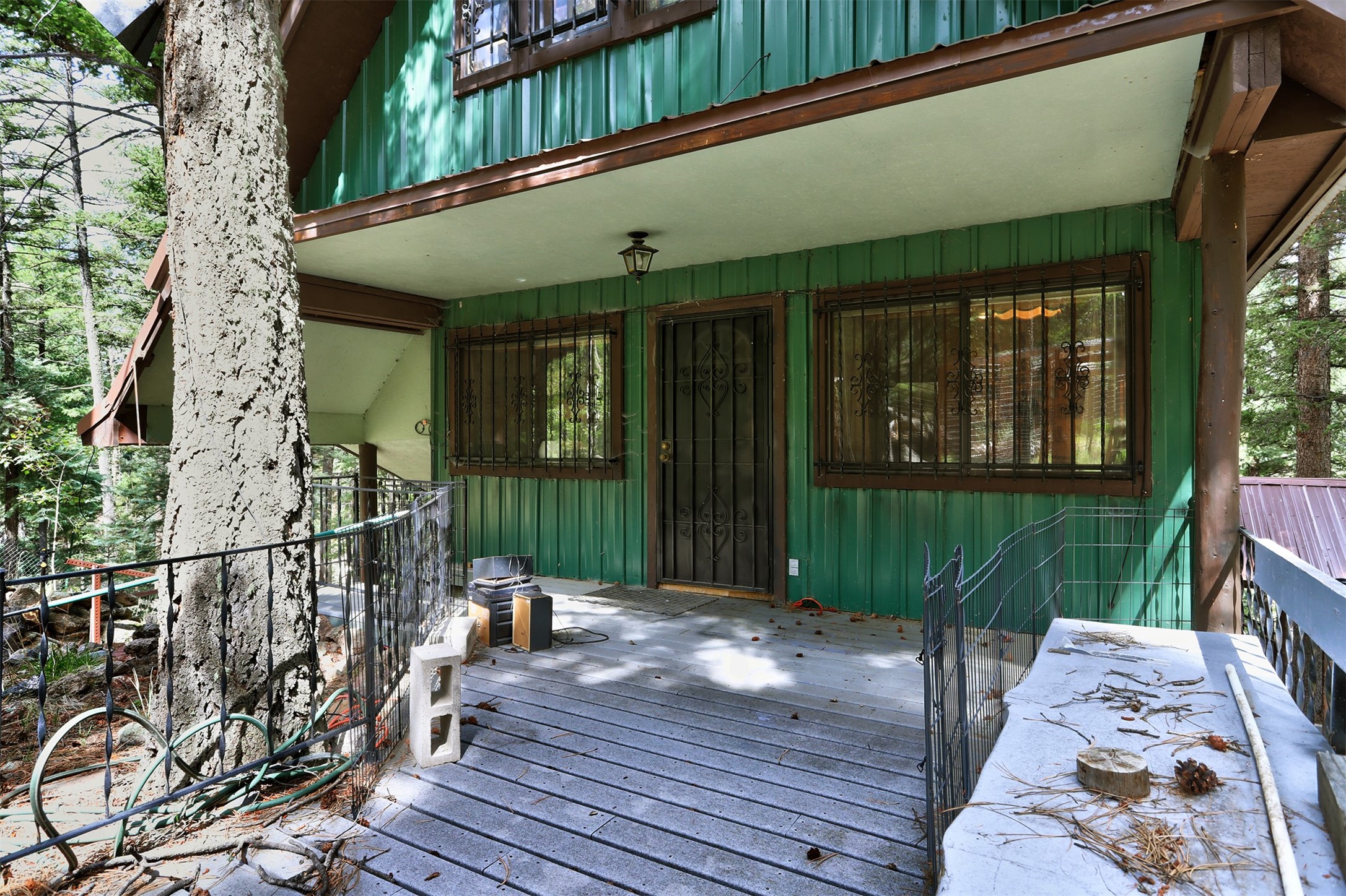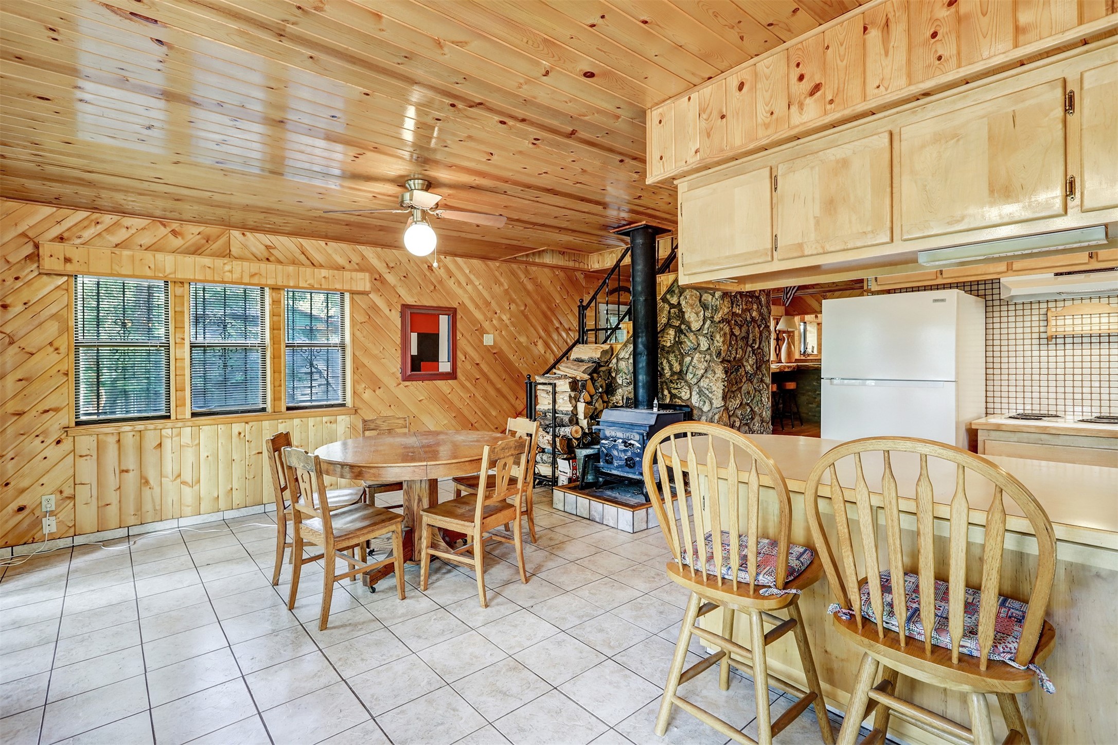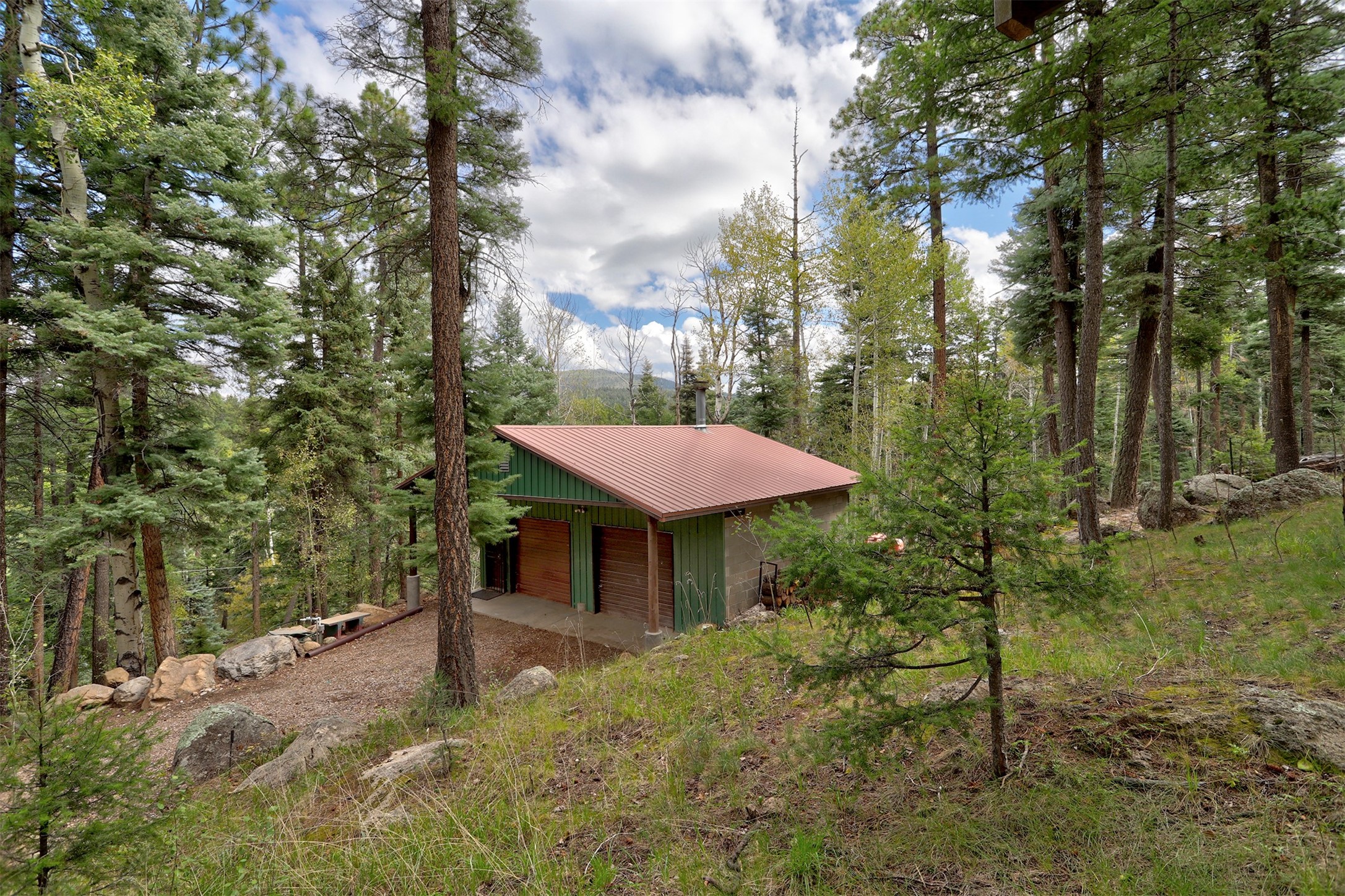 This 1750 SF mountain home is like no other! Located in Thompson Ridge Estates and has three levels, plus a one car garage/storage area underneath. The main floor features a spacious kitchen/dining area leading into the family/living room. Most of the residence is finished in tongue and groove floor to ceiling and gives it that warm mountain feel. Electric baseboard plus a wood stove and two pellet stoves keep everything toasty in the winter. Take the steps or spiral staircase up to the master suite and sleeping area. Walk in closet, full bath and laundry have access from the master and open sleeping area. Walk out to the back deck and upper lot area. From the second floor, head up the ship stairs upper loft and train room. Come to the mountains and enjoy all the Jemez has to offer!