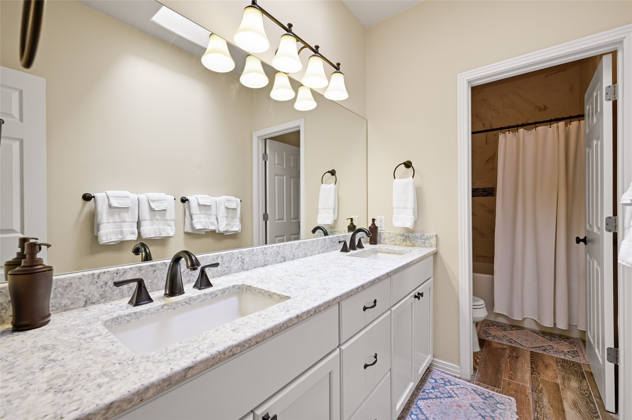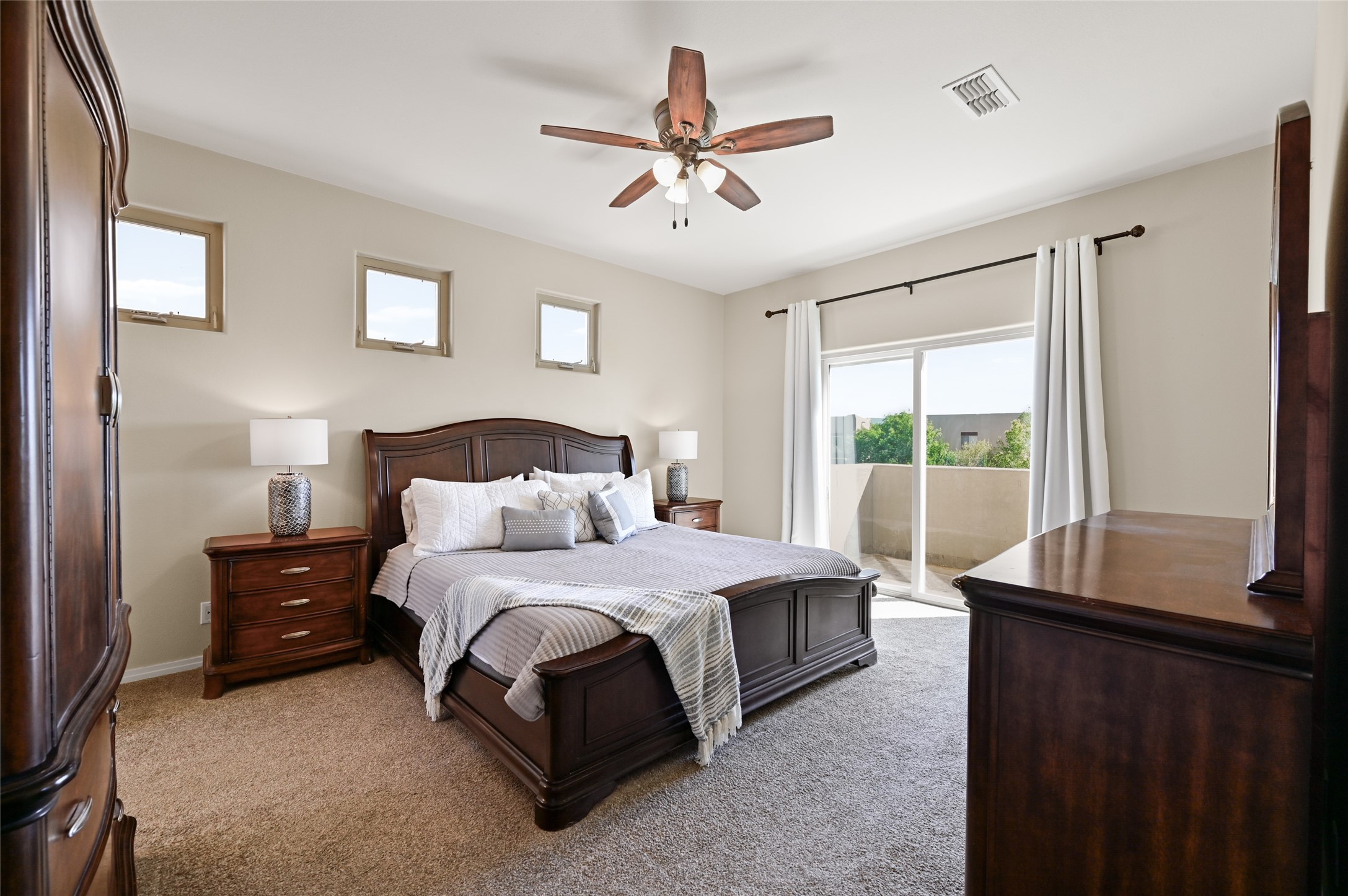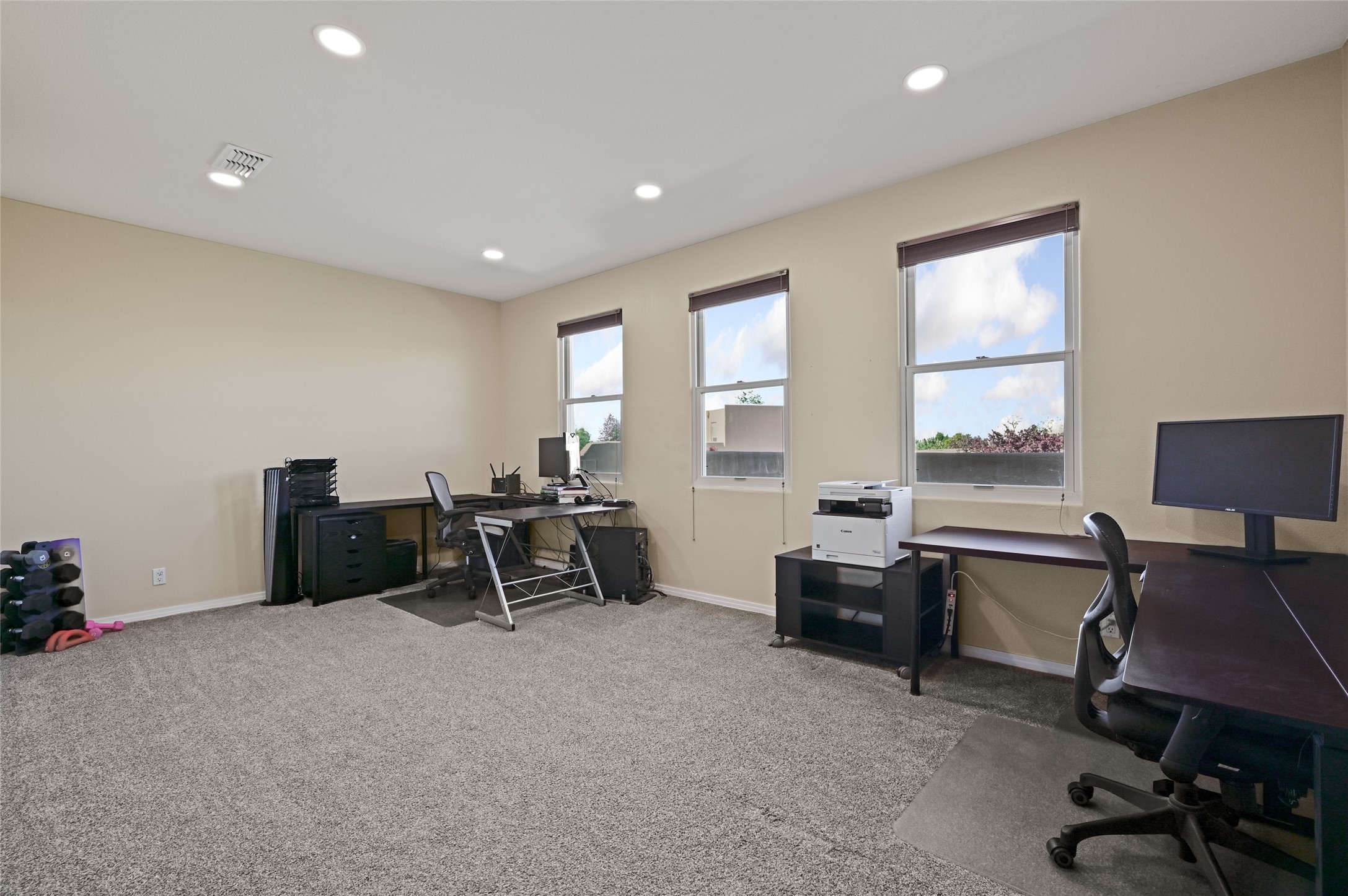 Welcome to your new home! This well-maintained 5-bedroom home offers lots of space with a practical and flexible floor plan. The main living area is inviting with an open concept kitchen and den area with a cozy fireplace and access to the backyard with portal. The easy to maintain, fully fenced backyard is perfect for entertaining and outdoor grilling. There is a bonus room that makes an ideal bedroom or office. Upstairs is the generously sized primary bedroom with an outdoor deck, an ensuite bathroom that includes dual sinks, a large tub, separate shower, and a walk-in closet. There are 3 additional bedrooms upstairs. Additional highlights are oversized 2 car garage, new windows in 2022 and a new roof substrate in 2023 with approximately 7 1/2 years remaining on the transferrable limited warranty that includes yearly maintenance and a new water heater in 2025. Really, you need to see this home.