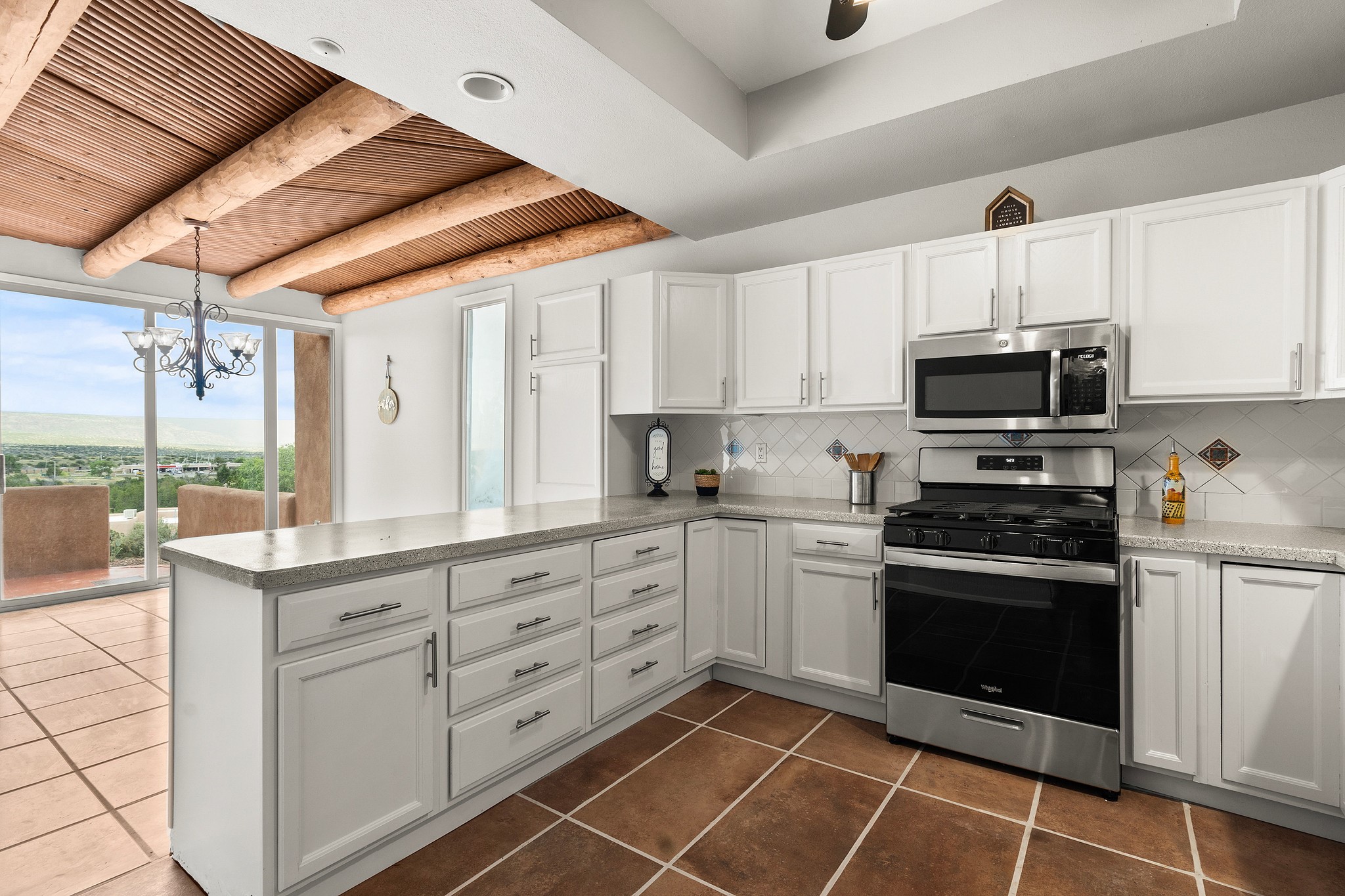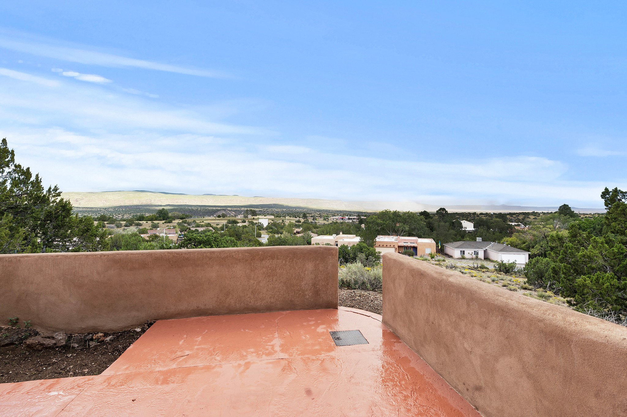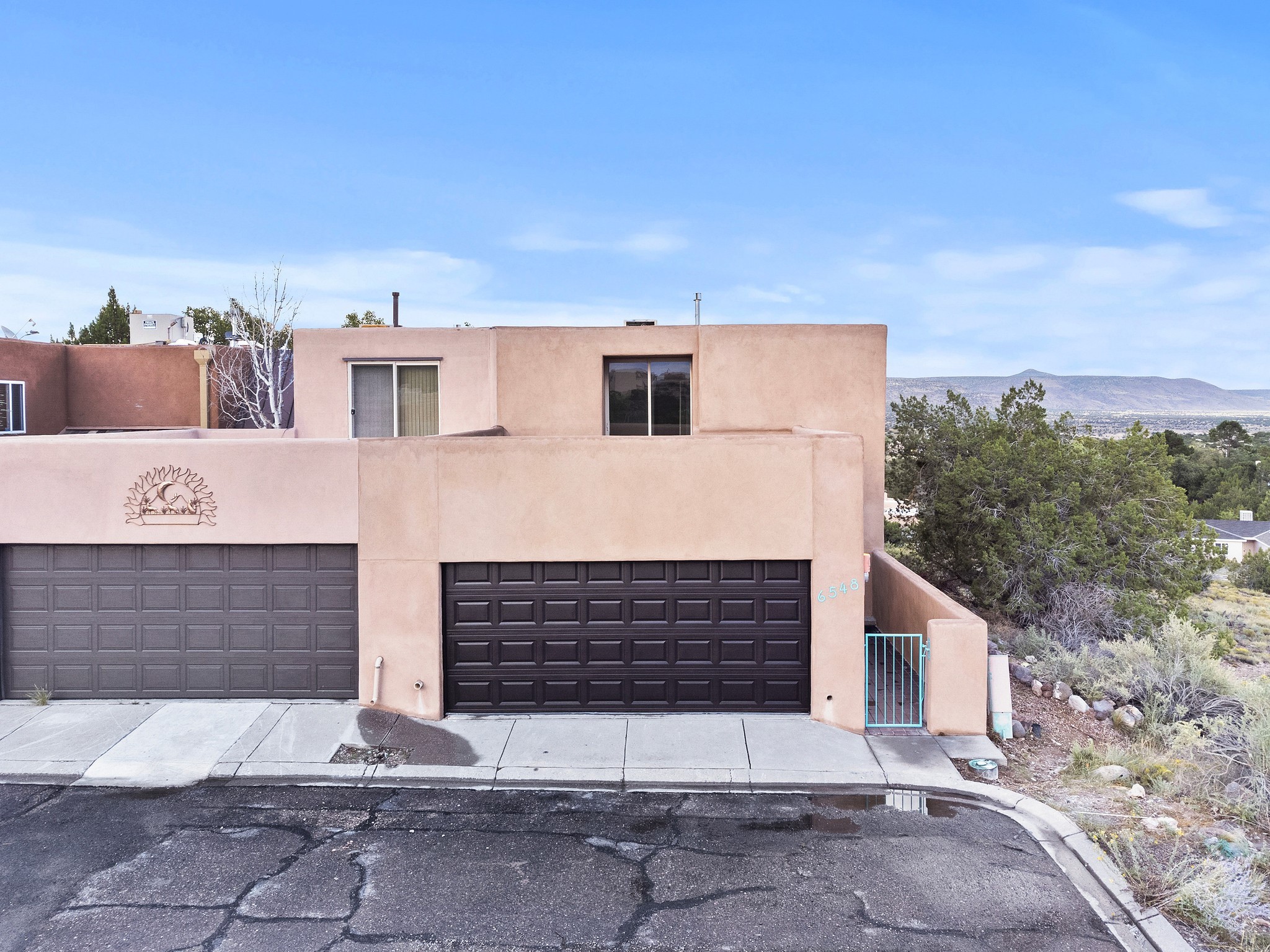 Extensively updated multi level townhome that is move in ready and on an end lot! 100K worth of upgrades. Exterior features a new roof, new stucco, and new swamp cooler, and a new furnace. Inside: fresh paint, new carpet, new tile in kitchen & primary bath, updated kitchen, and new appliances. The garage features a new insulated door, epoxy floor, and fresh paint. Bathrooms have new toilets, shower fixtures, and upgraded shower door. Bright, open spaces with great natural lighting, show casing vigas, and a cozy Kiva fireplace. The spacious primary bedroom offers a walkout balcony with stunning views. Minutes from Cochiti golf course and Cochiti lake, with breathtaking skies and scenic views all around! Don't miss out on this spectacular home! Washer/dryer and pool table included.