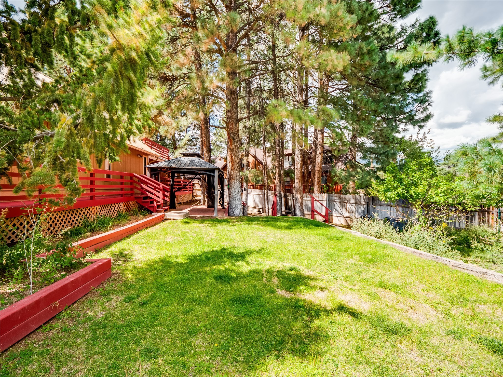 Welcome to this beautiful two-story home in the highly sought-after North Mesa neighborhood! Nestled on a wooded lot with a lush grass lawn, vibrant flower beds, and mature trees, the inviting curb appeal leads you to a charming sunroom-style front porch with stone flooring and direct access to the two-car garage. Step inside through one of two entryways, including sliding doors that open into the warm and welcoming living room. Here, vaulted ceilings create a spacious atmosphere while a stunning corner stone wood-burning fireplace serves as the focal point. Sliding doors extend the living space outdoors to a covered wood deck overlooking the expansive backyard--complete with fruit trees, mature landscaping, a grassy lawn, greenhouse, and storage shed, making it a true outdoor retreat. The dining and kitchen area features tile flooring, a tray ceiling with a skylight, and a thoughtful layout perfect for everyday living. The kitchen is equipped with warm wood cabinets accented by black hardware, light counters, a tile backsplash, and stainless steel appliances. Down the hall, the main level also offers a comfortable guest en-suite with a walk-in shower, an additional guest bedroom, a full guest bathroom with a single sink vanity, and a convenient laundry closet. Upstairs, plush carpet leads to a cozy loft-style family room with built-in cabinet bookcases, ideal for reading or gathering. A bright guest bedroom provides storage space and sliding doors that open to a private deck with breathtaking mountain views. The large primary en-suite is a peaceful retreat, featuring a spacious walk-in closet and extra storage. The bathroom is designed with a white single sink vanity with granite counters located within the bedroom, while a separate enclosed space houses the walk-in glass shower and toilet for added privacy. This fantastic home is in a prime location close to the golf course, trails, horse stables, and schools. Don't miss your chance to own this one-of-a-kind home!