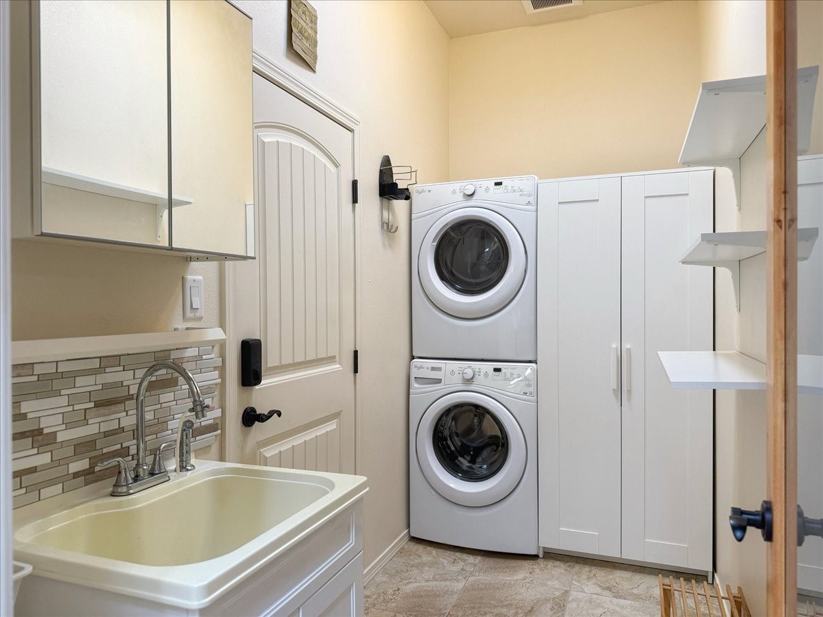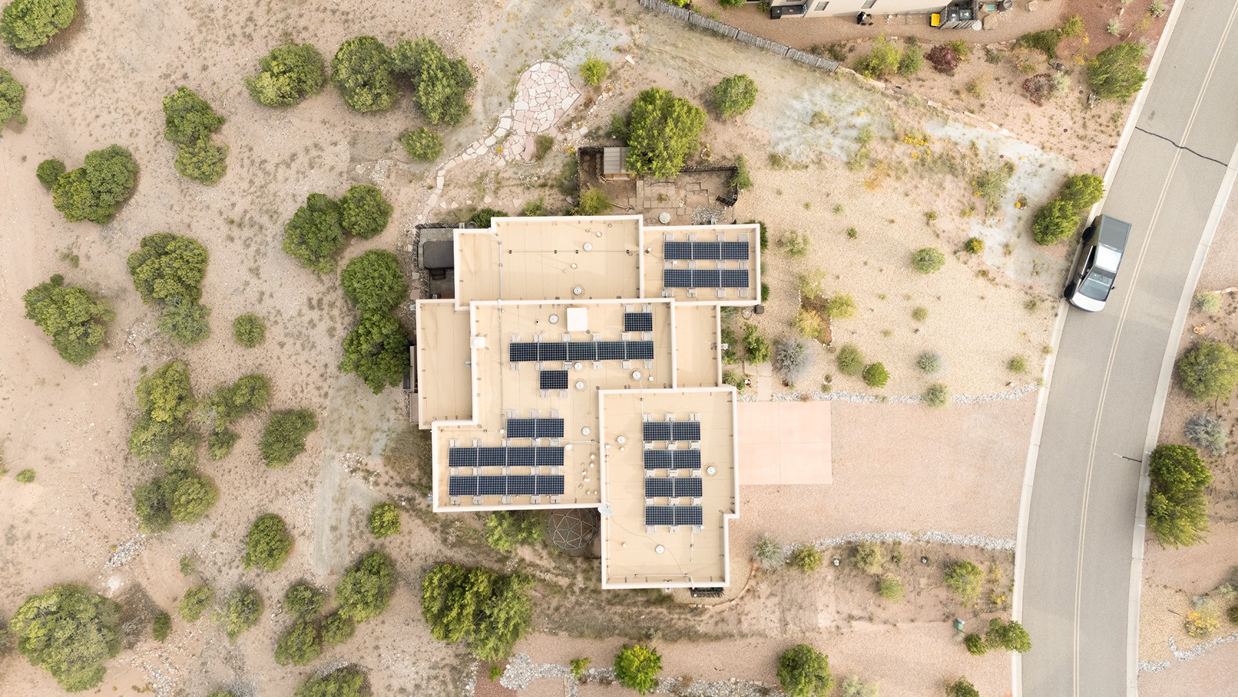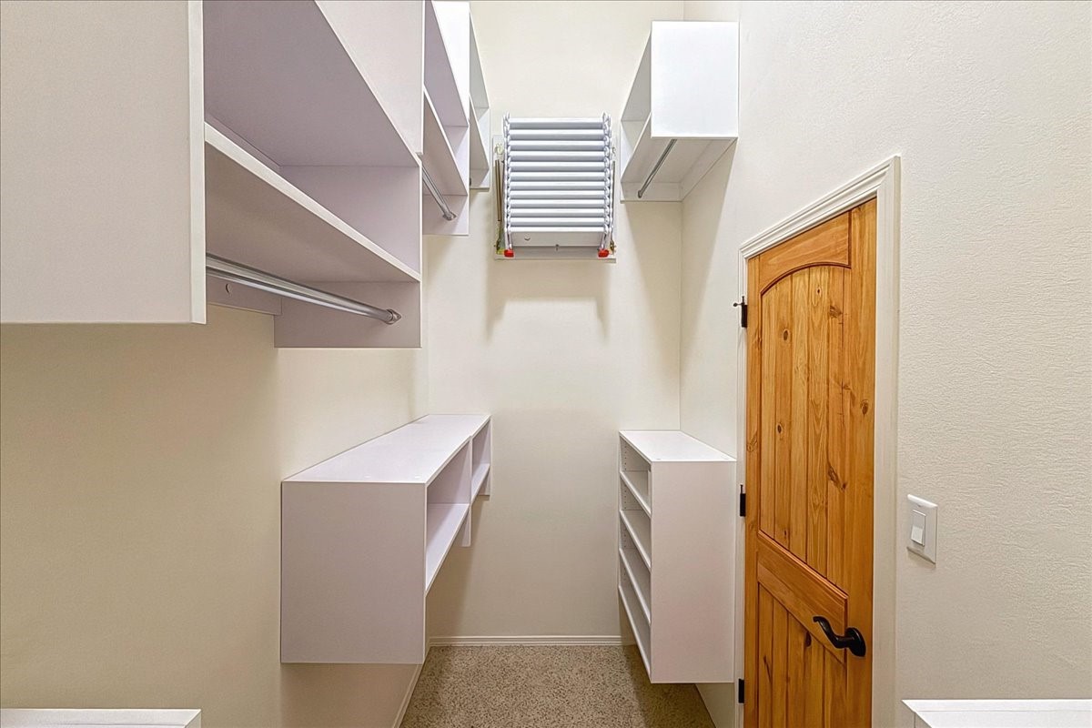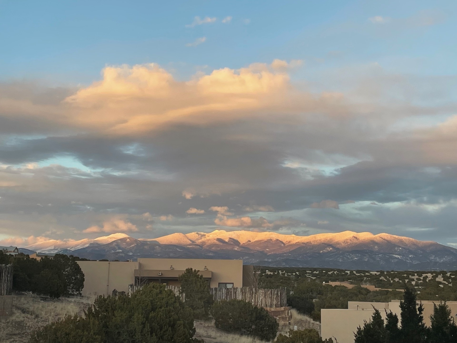 Beautiful 3-bedroom, 2.5-bath home built in 2015, perfectly situated on a 0.34-acre lot surrounded by natural pinon and juniper open space, just 8 minutes from downtown Santa Fe. Offering 1,850 sq ft of thoughtfully designed living space and a finished 3-car EV-ready garage with workbench area, shelves, and overhead storage, this single-owner home blends Santa Fe charm with modern efficiency. Tall ceilings and large-format tile floors enhance the open feel, while wood ceilings with vigas and latillas add warmth. The kitchen features granite countertops, under-cabinet lighting, gas range, ENERGY STAR® appliances, and hood-mounted microwave. Expansive picture windows frame Sangre de Cristo views, filling the home with natural light. Step from the dining area to a covered patio and a private screened spa retreat with multi-person 220V hot tub off the primary suite. The spacious primary suite offers room for a home office or yoga area, plus a walk-in closet with custom Modular Closets® and built-in staircase to high-bay storage. The primary bath boasts an oversized walk-in shower with no glass door and a private toilet area. Energy efficiency abounds with 31 owned solar panels to power spa, home and 300 miles daily for up to 3 EVs, foam-core insulation, radiant floor heat, solar tubes, recirculating hot water, whole-house fan, and motorized exterior sunshades. Additional features include a water softening and revese osmosis systems, radon mitigation, low-VOC finishes, and a partially concrete driveway for easy snow removal. The driveway can accommodate 5 cars in addition to garage. Outdoors, enjoy professional landscaping, drip irrigation, a secluded flagstone patio for dining or stargazing, a fully fenced garden area with shed, and rainwater barrels. Scenic walking trails with mountain views. Convenient access to Hwy 599 makes commuting to Los Alamos or the Santa Fe Airport a breeze--this home delivers mountain views, sustainability, and comfort in one perfect package.