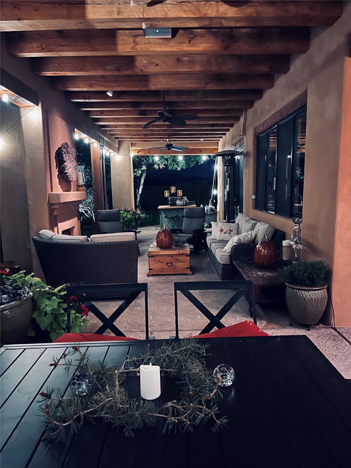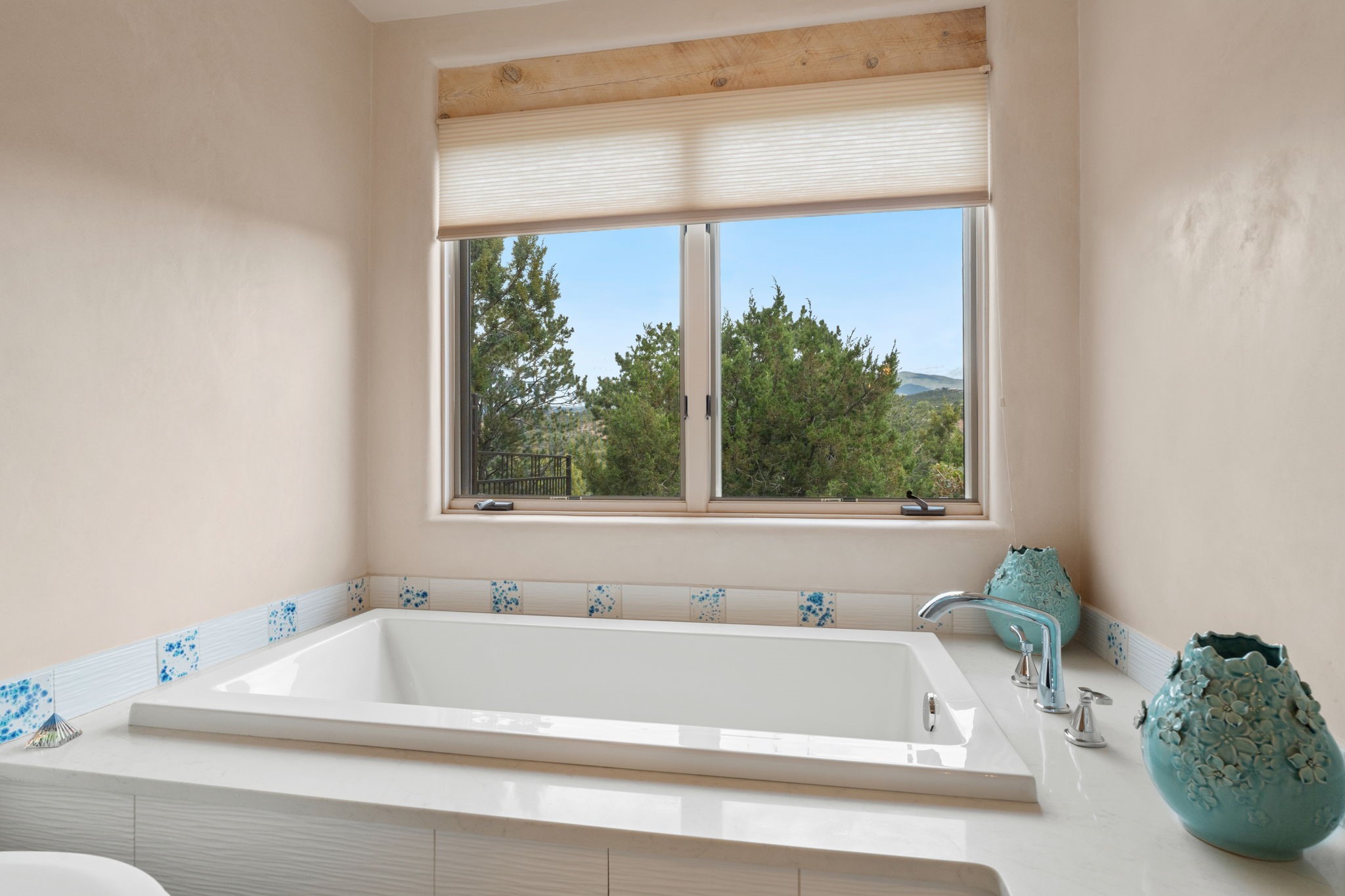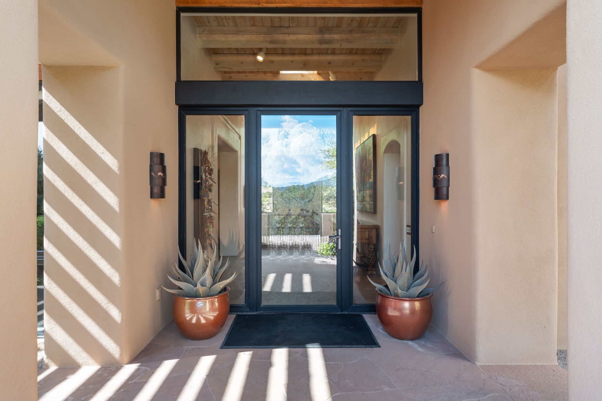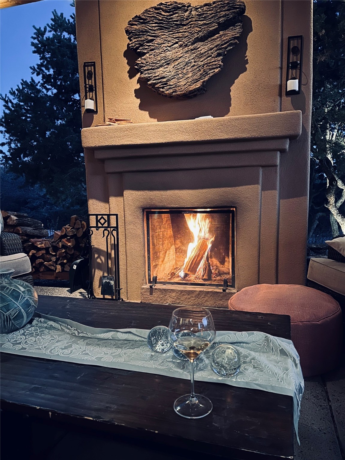 Tucked just a mile from the historic Santa Fe Plaza, this exceptional adobe estate blends classic Northern New Mexico architecture with modern sophistication. Set on a wooded, private property, it features a 3,263 sq. ft. main house and a 1,340 sq. ft. detached casita--ideal for guests or extended family.Handcrafted details abound: viga beams, tile and hardwood floors, and softly curved adobe walls that invite natural light. The great room offers tall ceilings, a grand fireplace, and picture windows framing mountain views. Double doors open to a covered portal with outdoor fireplace and seating for year-round entertaining.Remodeled in 2024, the chef's kitchen includes a six-burner range, convection oven, oversized island, premium appliances, built-in bar, and coffee station--perfect for gatherings large or small.The primary suite is a serene retreat with fireplace, private portal, and spa-style bath with dual closets, double vanities, soaking tub, and glass-enclosed shower. A guest suite, radiant heating, skylights, and seven mini-splits enhance comfort throughout.The detached casita echoes the main home's charm, offering two bedrooms, two baths, a kiva fireplace, wet bar, breakfast nook, and office area--an ideal guest or studio space.Outdoors, multiple patios and sitting areas blend seamlessly with the landscape. A 3,000-gallon cistern supports irrigation, and an EV-ready outlet adds modern convenience.With timeless adobe design, curated upgrades, and proximity to downtown Santa Fe, 1085 Camino Maana captures the essence of refined Southwestern living.