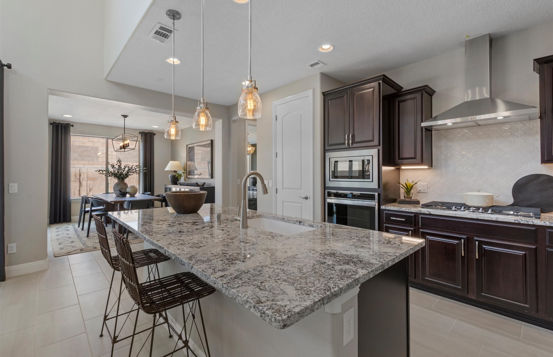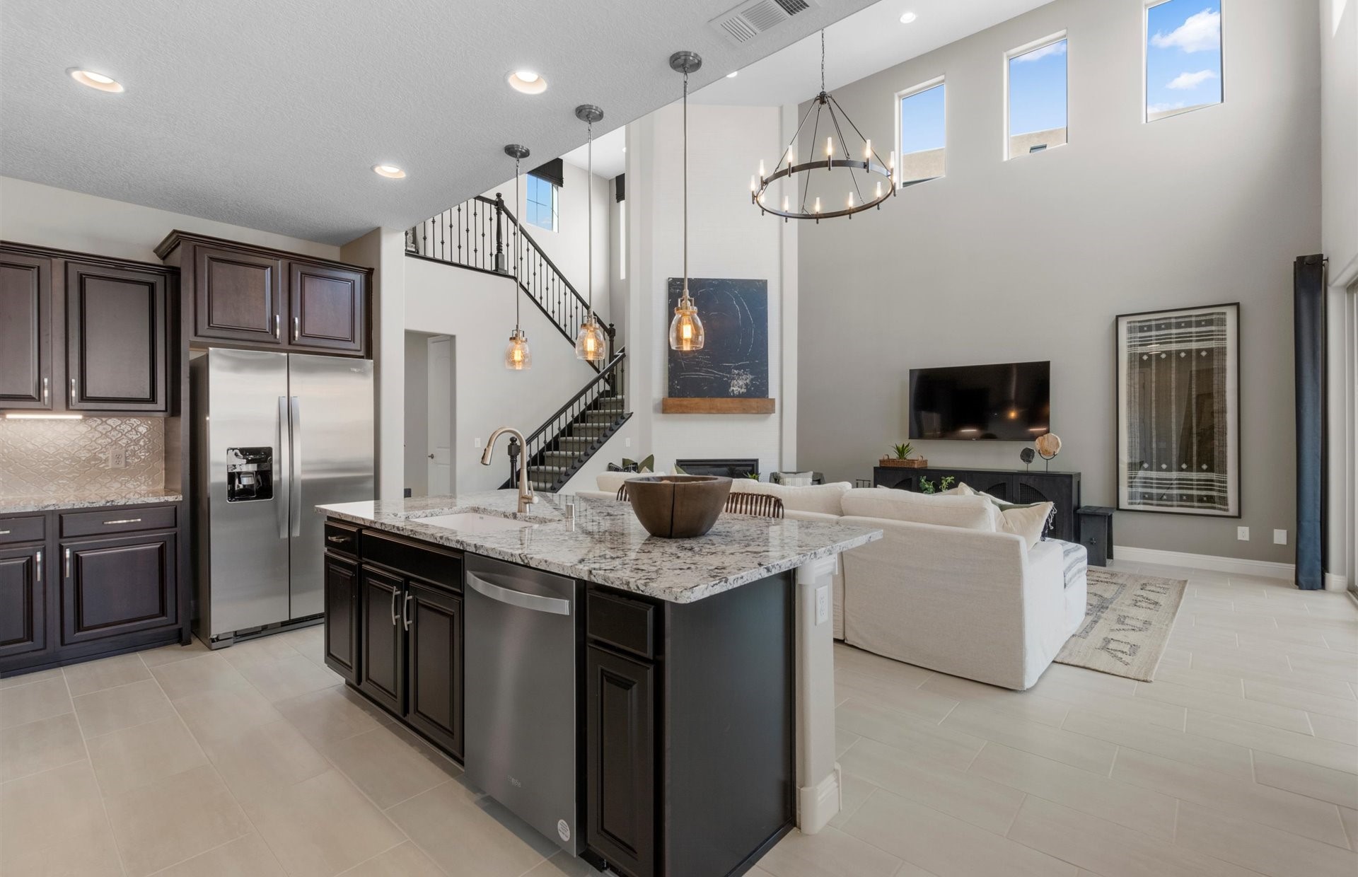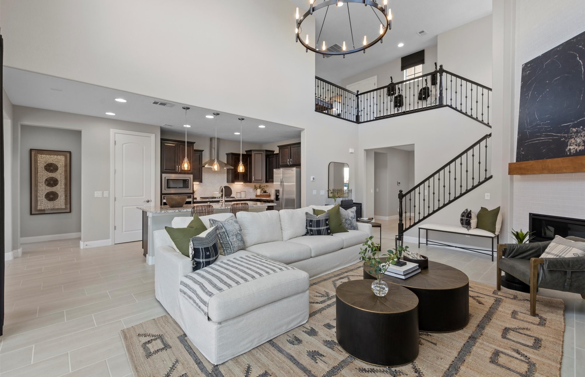 This dramatic Yucca floorplan ticks all the boxes. The home features a dramatic great room complete with nearly 18ft ceilings and a fireplace that is perfect for entertaining and no matter if you are cooking for a crowd or just cooking a quick Tuesday night dinner the chef's kitchen with built in appliances and a large island is designed to bring out the Julia Childs in anyone. This home backs to open space and has a huge, covered patio where you can BBQ or just have a morning cup of coffee while enjoying the open space. Upstairs has three bedrooms and two bathrooms so, kids or guests will never have to line up for the bathroom. The three-car tandem garage is so flexible. You can use the extra space for a car, workshop or perhaps storage for your family's treasures. The Yucca offers 4 bedrooms, and 3.5 bathrooms jam packed with quality design and quality construction. This home is a must see.