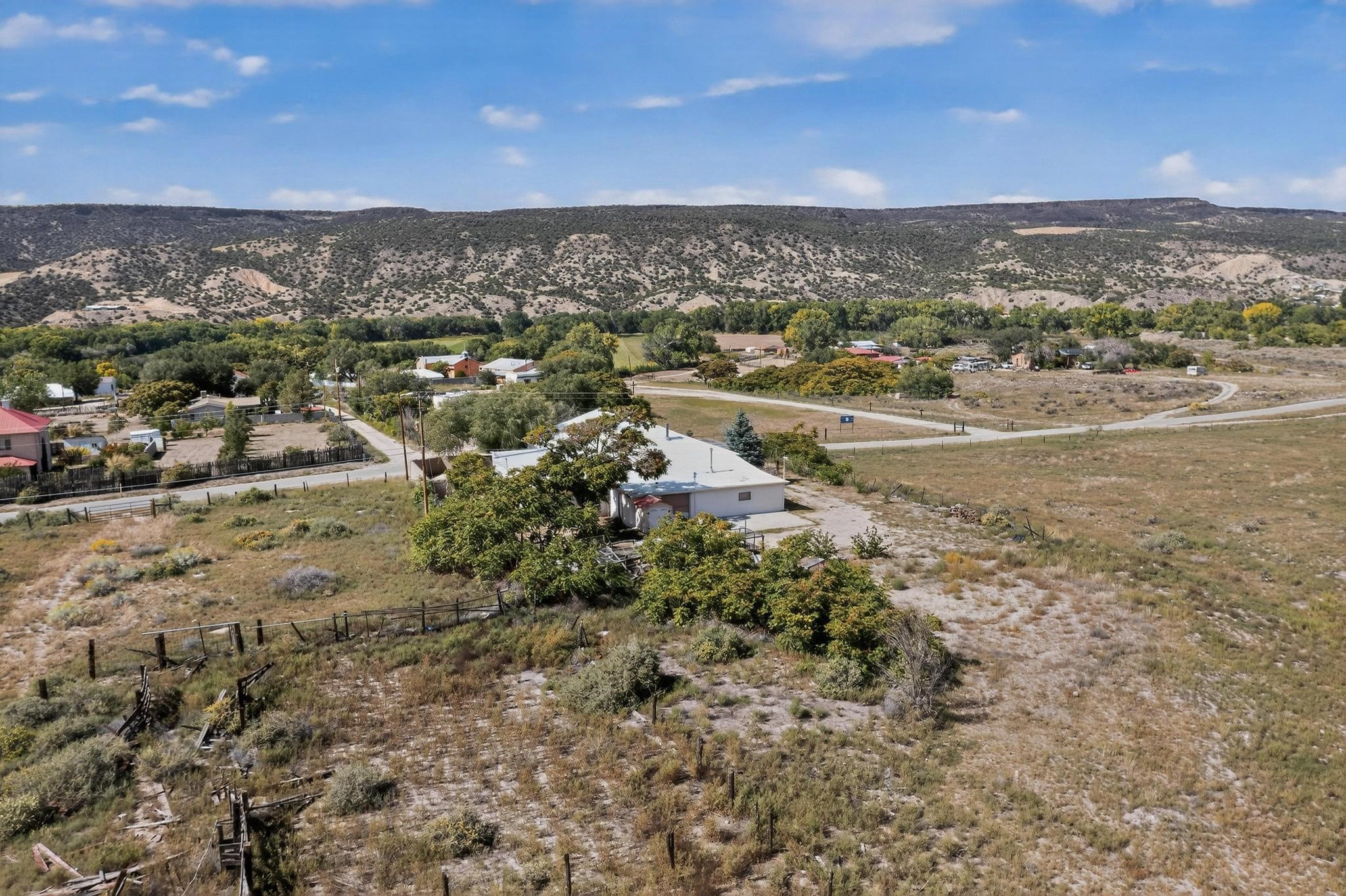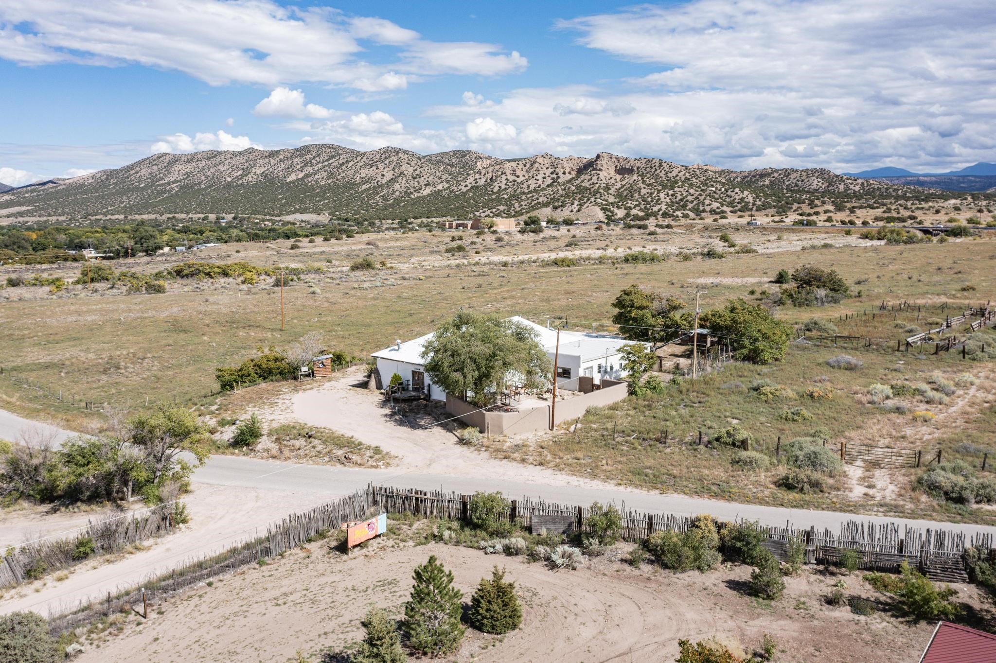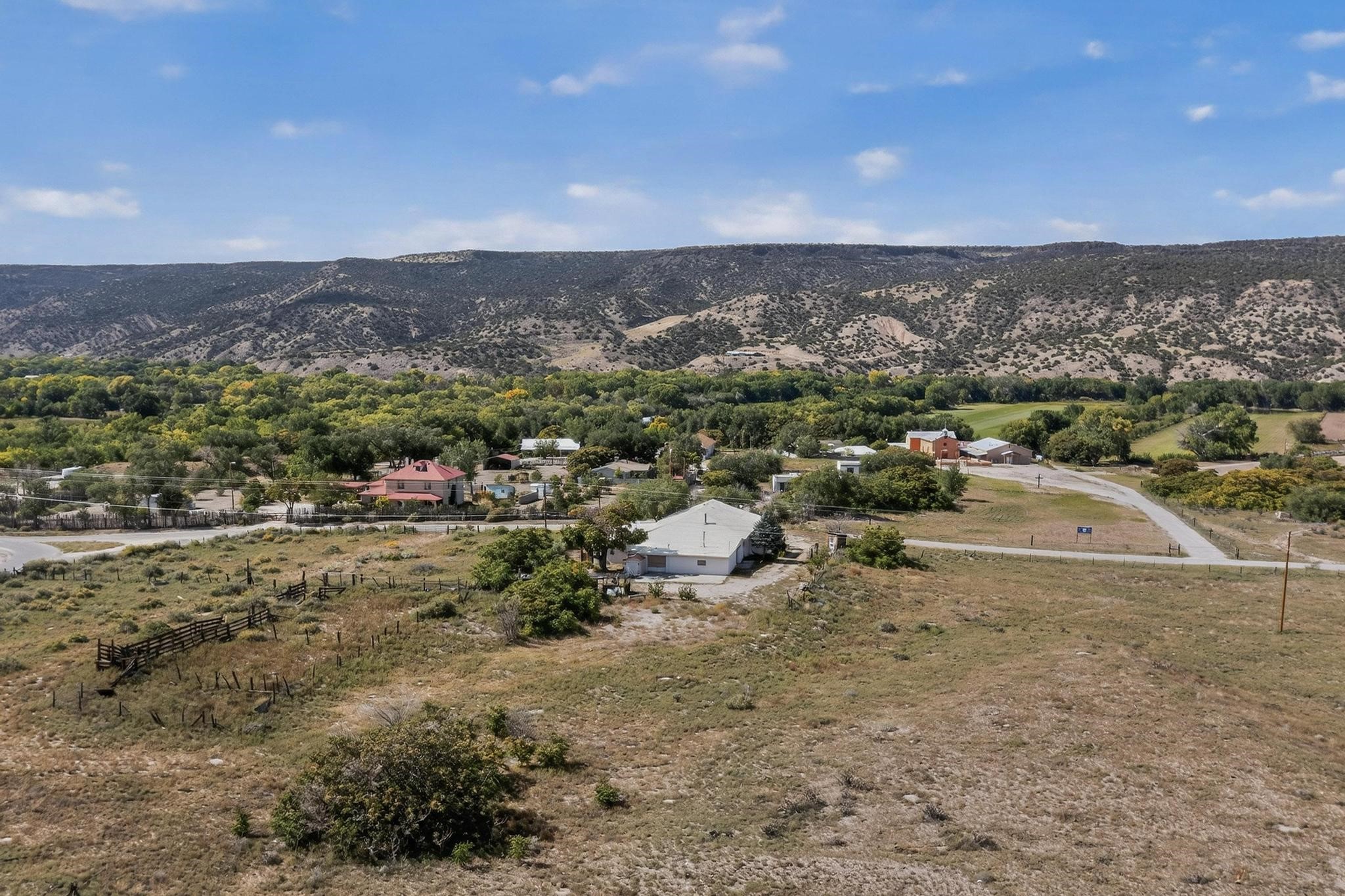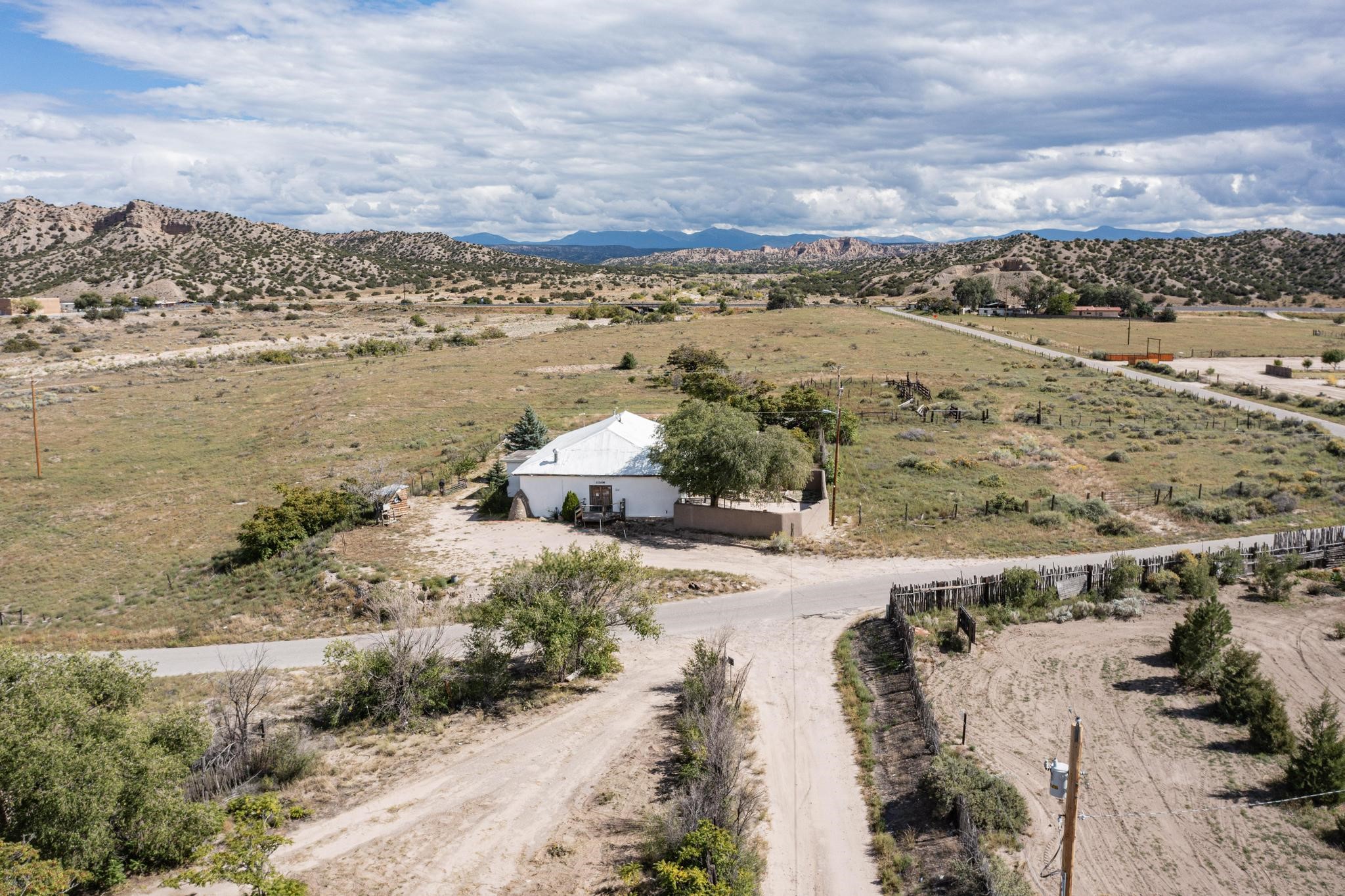 Historic Adobe Charm, home and workshop studio. The original 2950 sq ft. Adobe was built in 1910 as a community dance hall. The walls are 2' thick adobe with the ceiling height of 12'. The tin roof and tin ceiling were delivered on the old Chile line Railroad. This unique adobe building in Northern New Mexico has a rich history, having served various purposes over the years. From a Dancehall and a rollerskating rink in the 1950s to a pub in the 1960s and 1980s it has seen it all. More recently, it housed a custom cabinet shop with a show room, and then a winery. Over the past century, additional rooms have been added increasing the livable area to 5427 ft.. As well as an Adobe wall enclosed patio of 1650 ft. This home could be used as a live workspace with plenty of room to spread out. Located just east of the Rio Grande and east of the Black Mesa with its many petroglyphs, bountiful orchards, and thriving Apple production. It's amazing to think about all the stories these walls could tell, and I'm sure the new owners will be ready to make their own history here.
