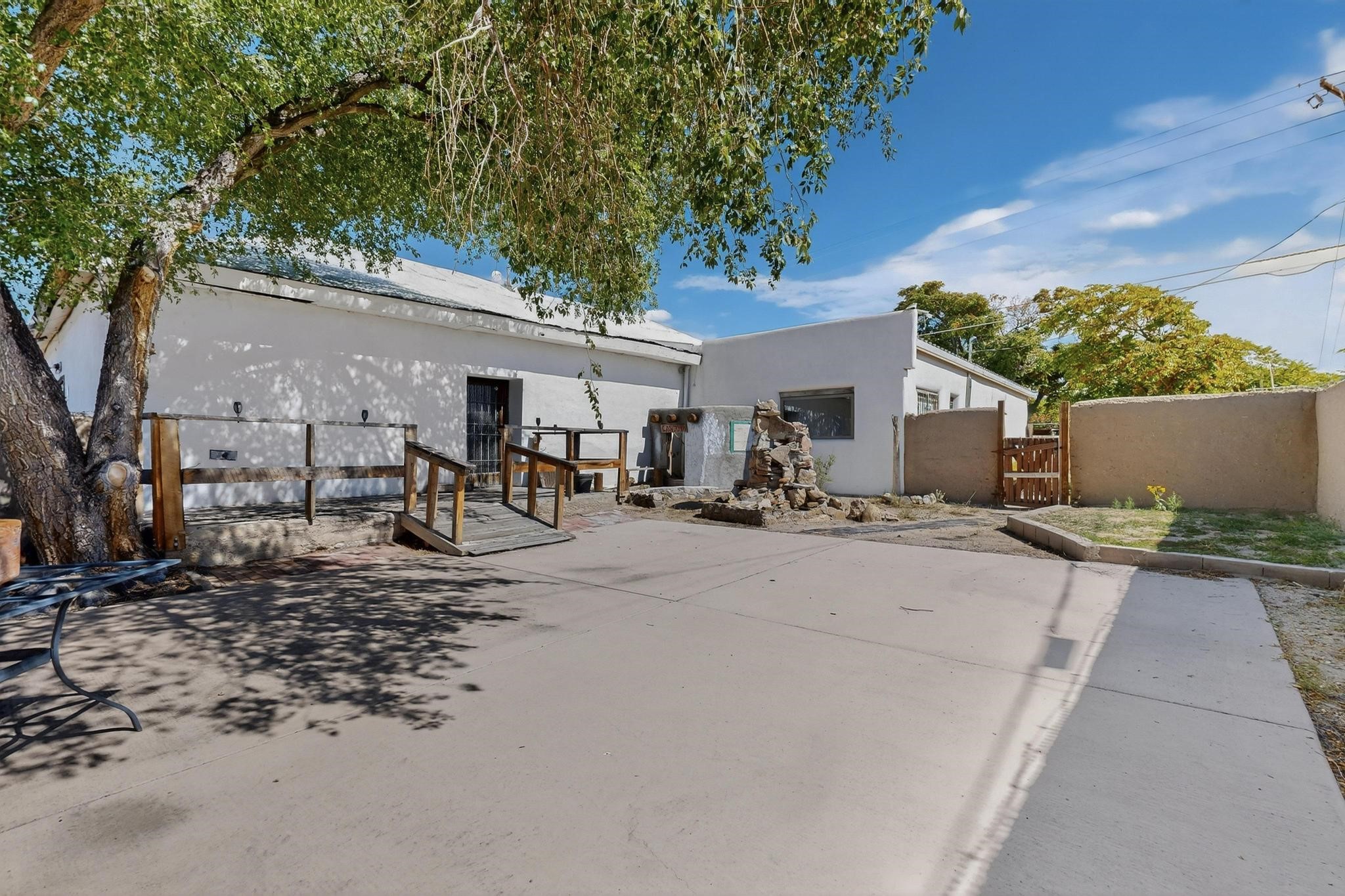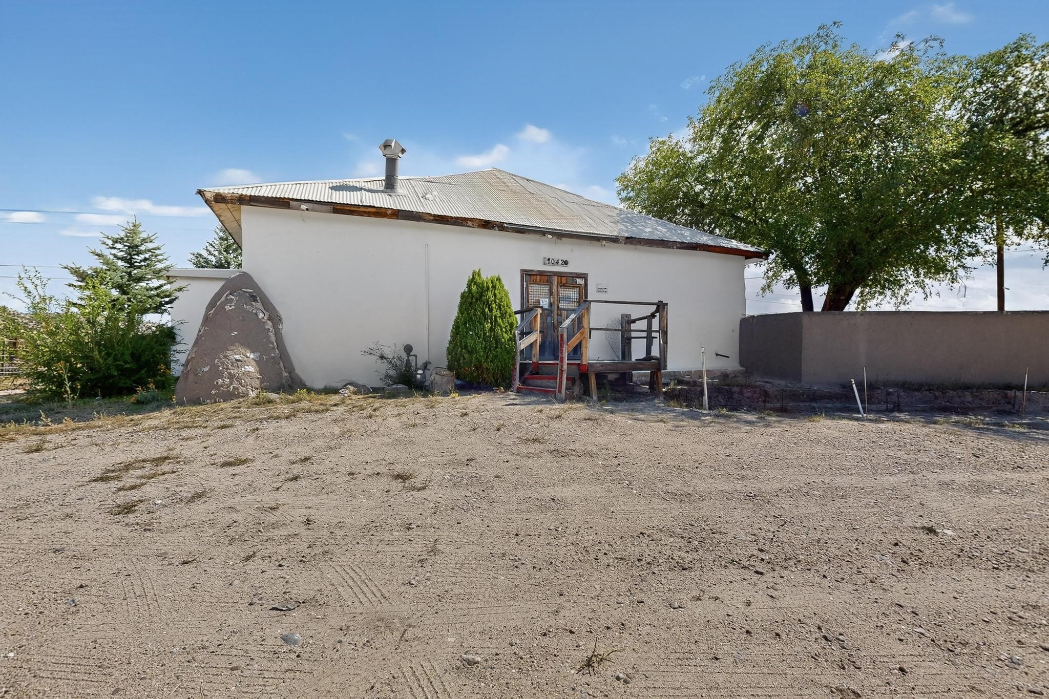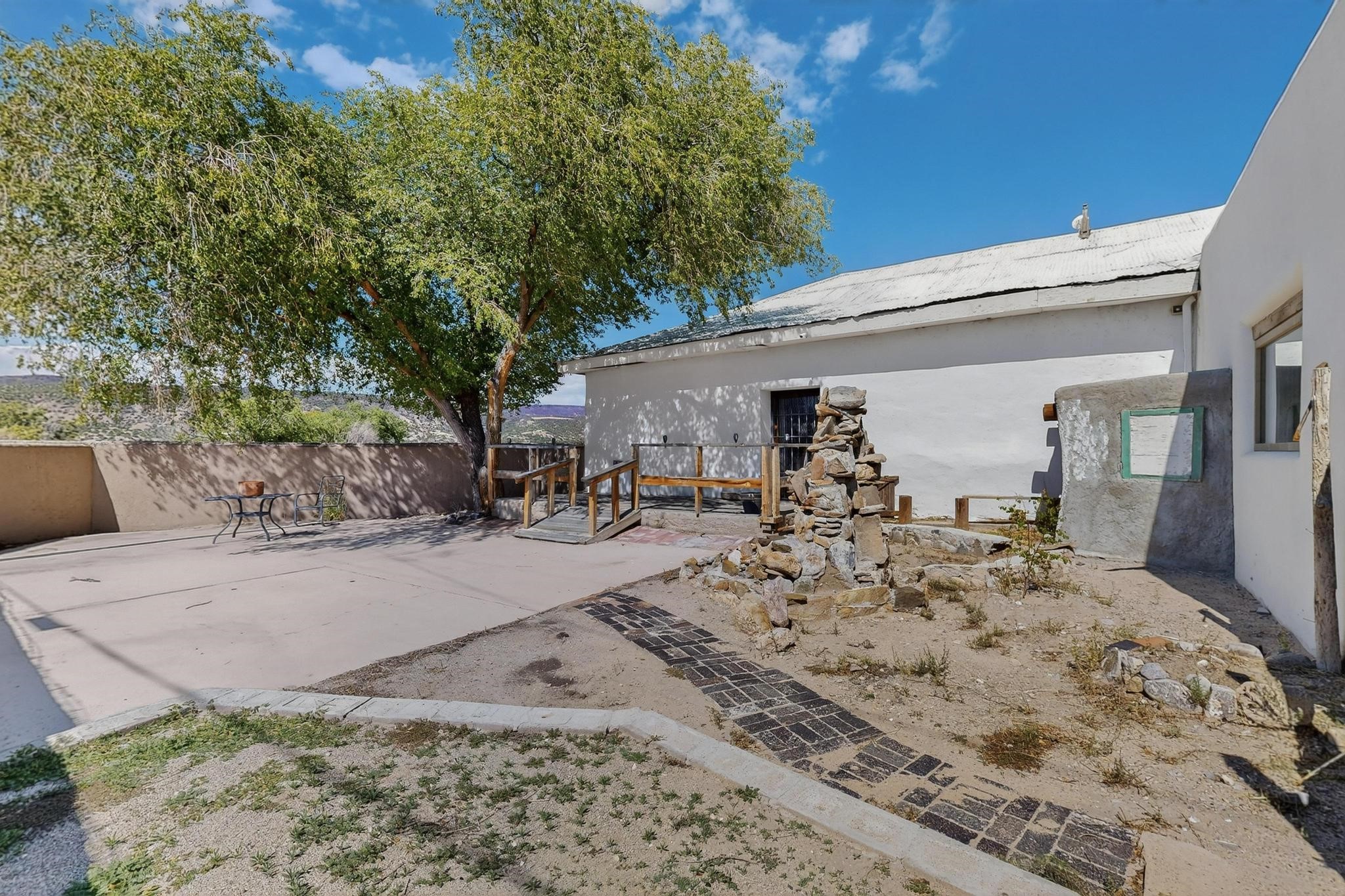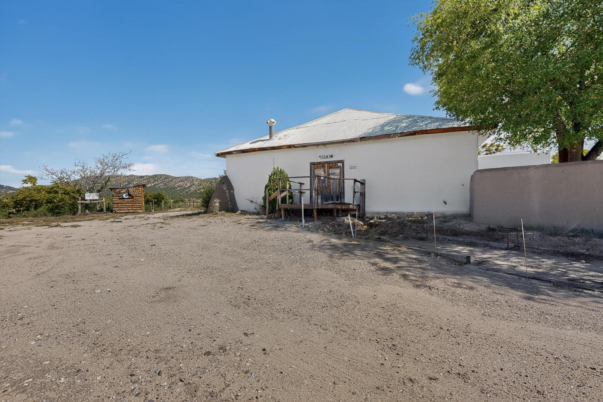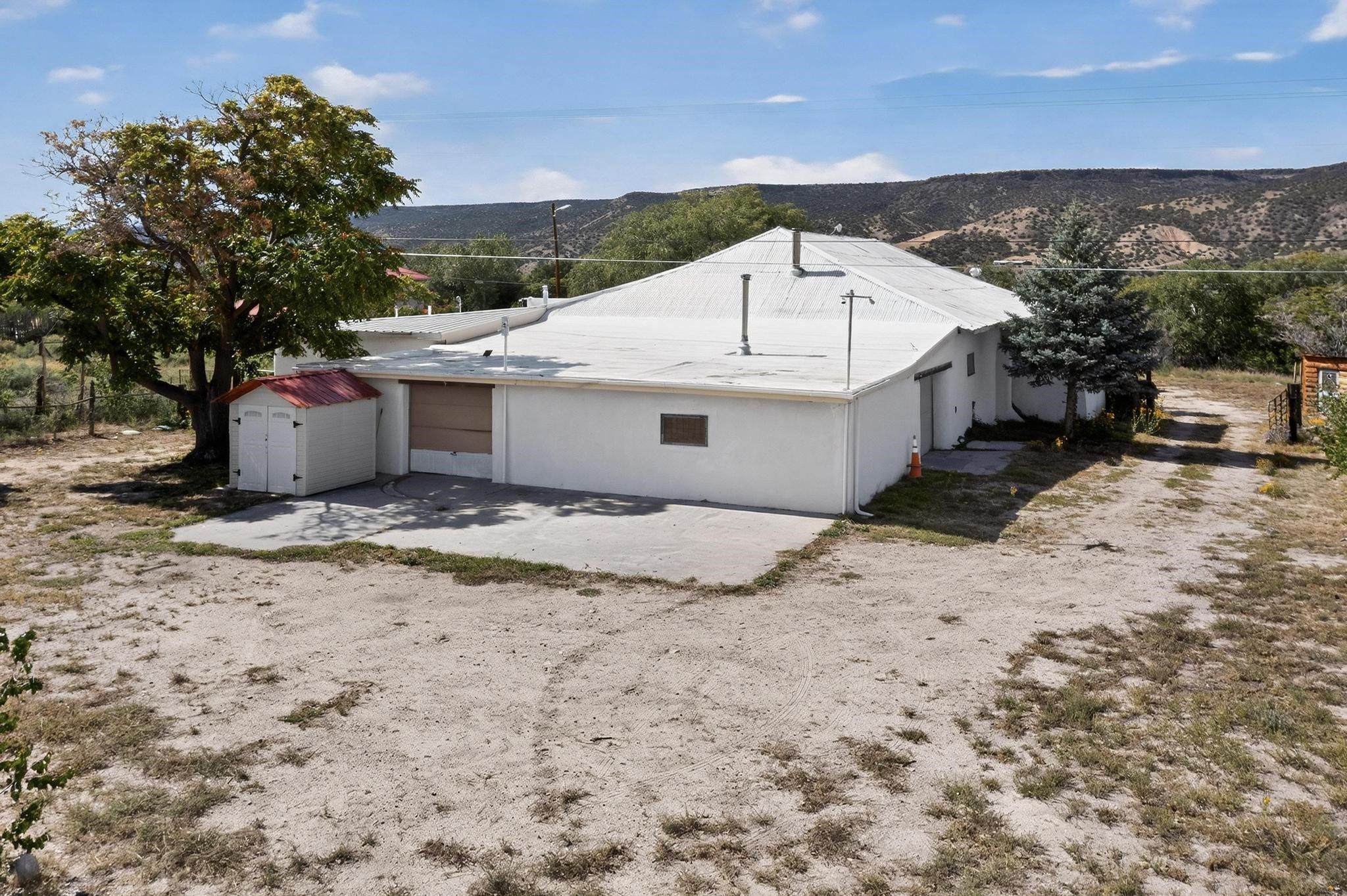 Historic Adobe Charm, home and workshop studio. The original 2950 sq ft. Adobe was built in 1910 as a community dance hall. The walls are 2' thick adobe with the ceiling height of 12'. The tin roof and tin ceiling were delivered on the old Chile line Railroad. This unique adobe building in Northern New Mexico has a rich history, having served various purposes over the years. From a Dancehall and a rollerskating rink in the 1950s to a pub in the 1960s and 1980s it has seen it all. More recently, it housed a custom cabinet shop with a show room, and then a winery. Over the past century, additional rooms have been added increasing the livable area to 5427 ft.. As well as an Adobe wall enclosed patio of 1650 ft. This home could be used as a live workspace with plenty of room to spread out. Located just east of the Rio Grande and east of the Black Mesa with its many petroglyphs, bountiful orchards, and thriving Apple production. It's amazing to think about all the stories these walls could tell, and I'm sure the new owners will be ready to make their own history here.