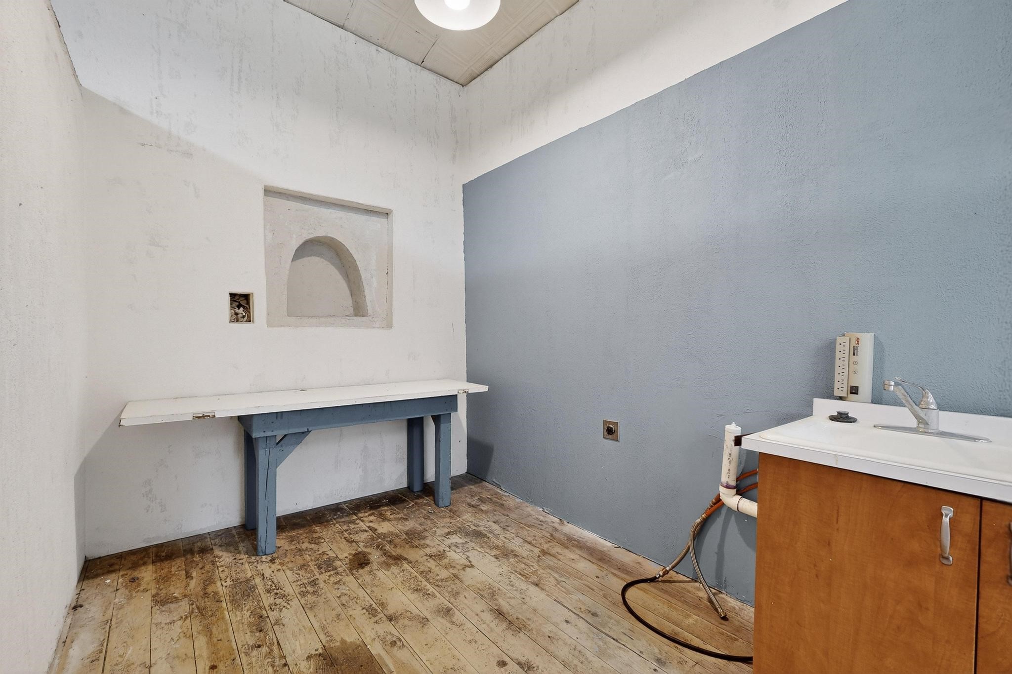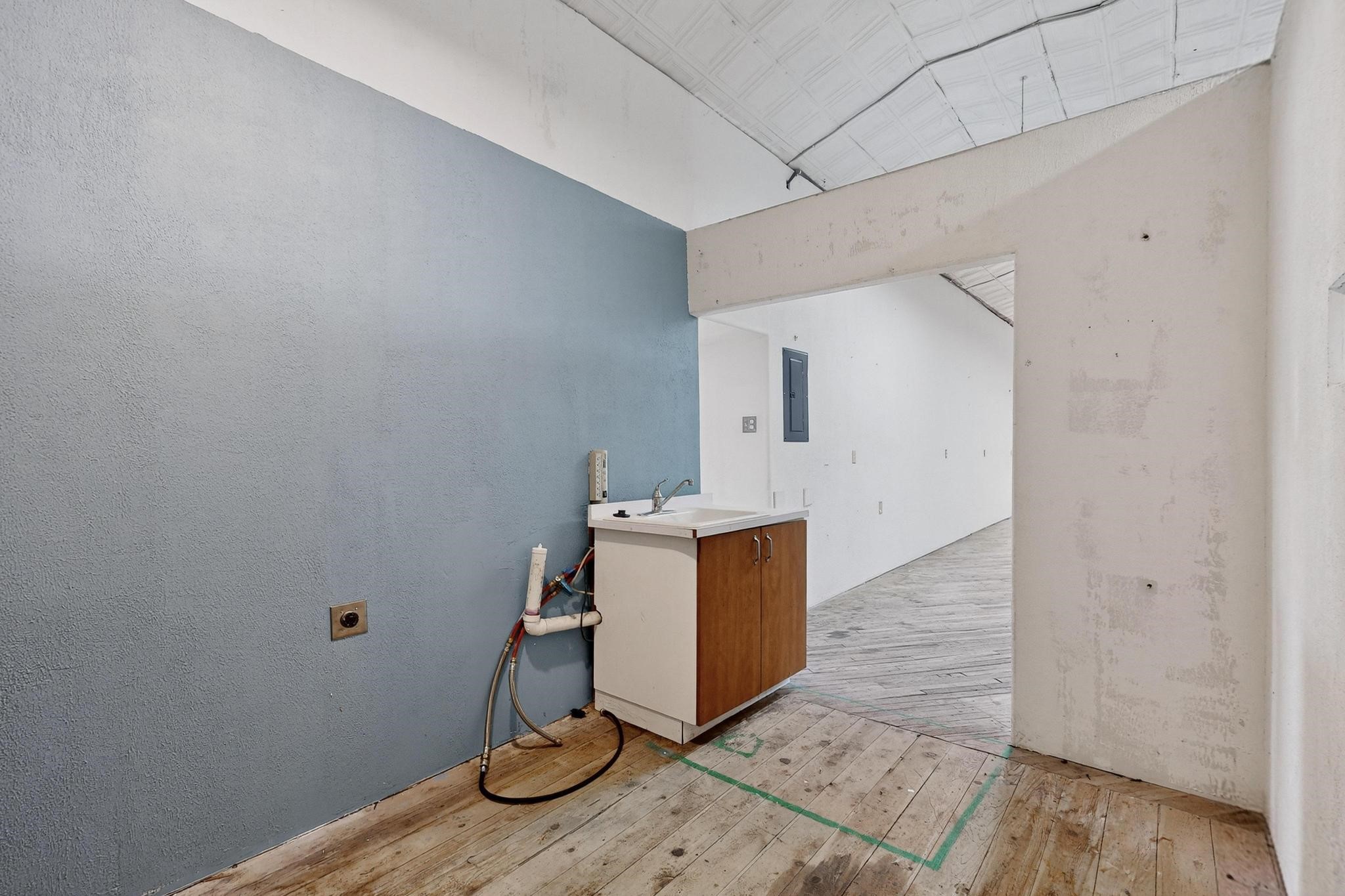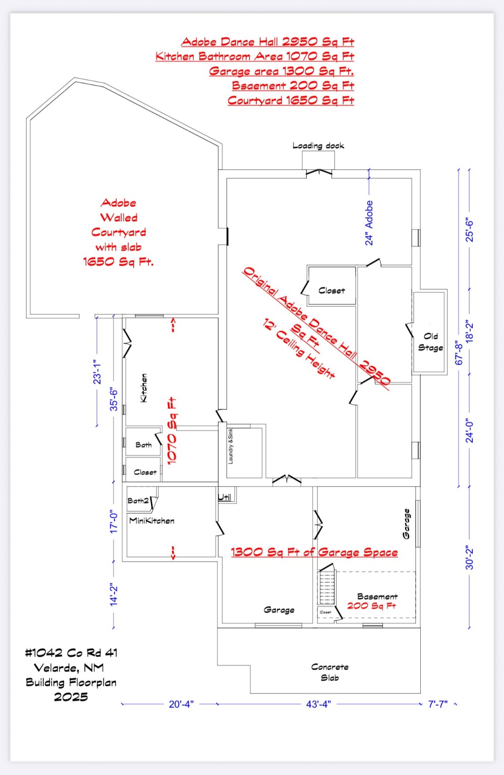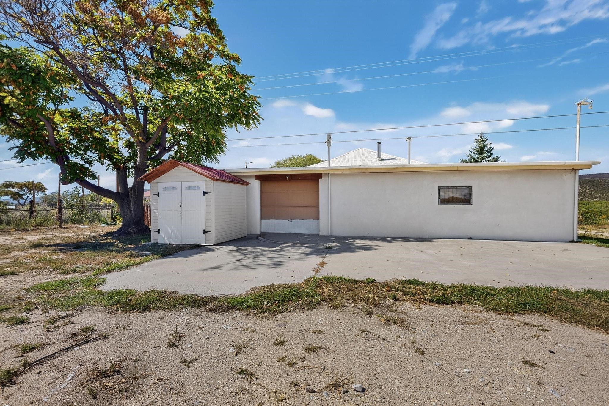 Historic Adobe Charm, home and workshop studio. The original 2950 sq ft. Adobe was built in 1910 as a community dance hall. The walls are 2' thick adobe with the ceiling height of 12'. The tin roof and tin ceiling were delivered on the old Chile line Railroad. This unique adobe building in Northern New Mexico has a rich history, having served various purposes over the years. From a Dancehall and a rollerskating rink in the 1950s to a pub in the 1960s and 1980s it has seen it all. More recently, it housed a custom cabinet shop with a show room, and then a winery. Over the past century, additional rooms have been added increasing the livable area to 5427 ft.. As well as an Adobe wall enclosed patio of 1650 ft. This home could be used as a live workspace with plenty of room to spread out. Located just east of the Rio Grande and east of the Black Mesa with its many petroglyphs, bountiful orchards, and thriving Apple production. It's amazing to think about all the stories these walls could tell, and I'm sure the new owners will be ready to make their own history here.