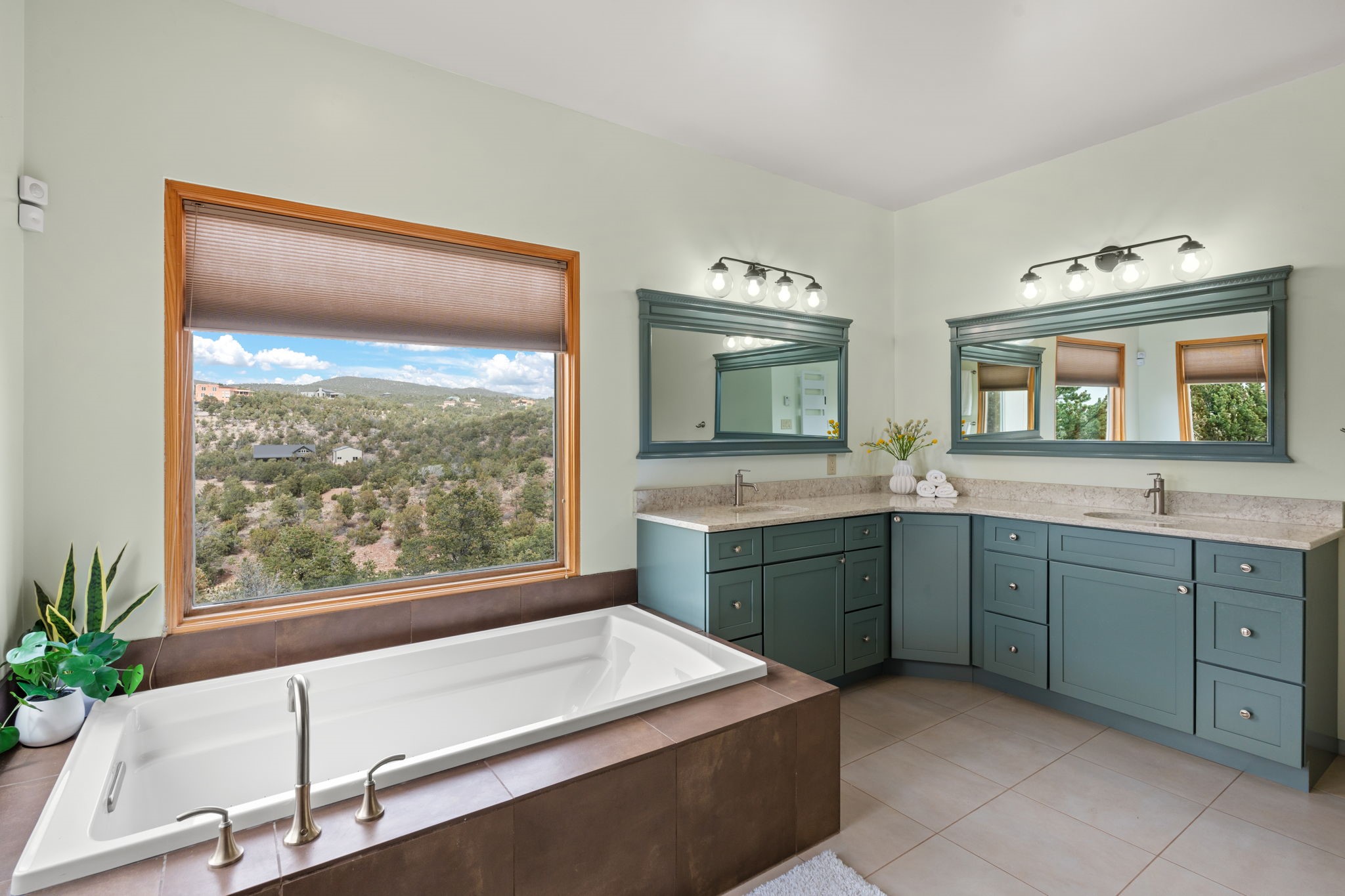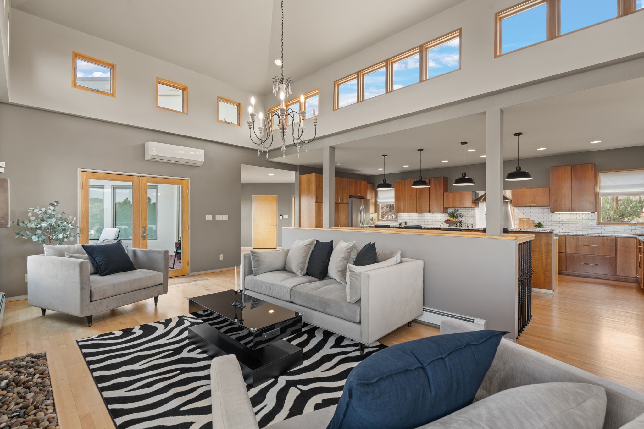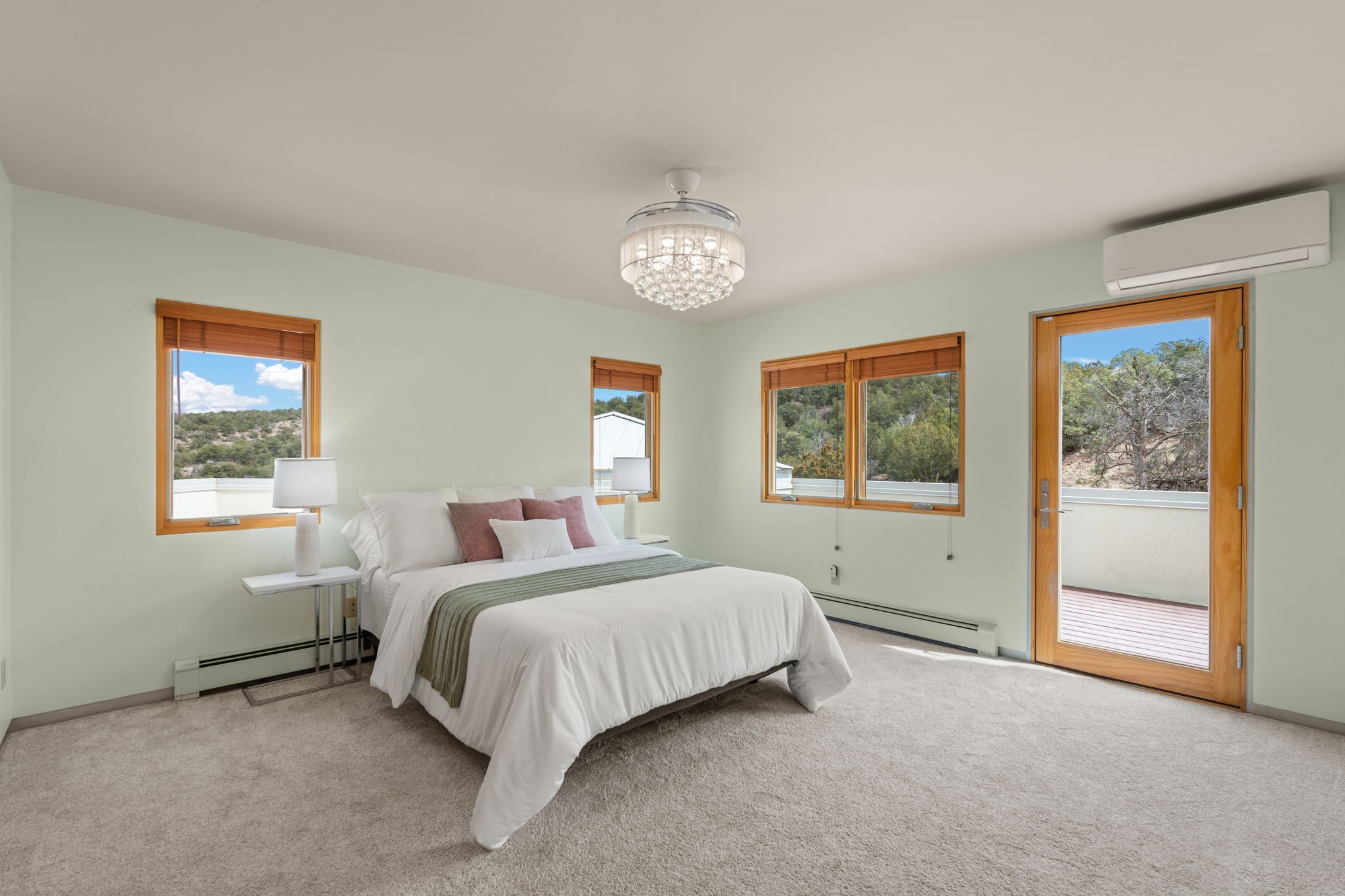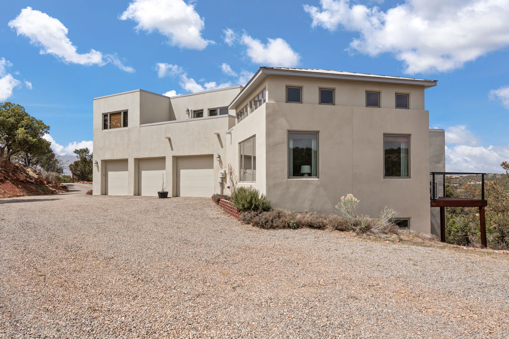 SELLERS ARE READY TO SELL! Modern luxury mountain living, Easy drive to Albuquerque and SF. Perfect for entertaining or as a quiet retreat. Private, gated neighborhood: 5-acre + lots, custom homes. Drenched in natural light. Sweeping views of the entire east slope of the Sandias. Expansive views from the many picture windows. Energy efficient FIRE RESISTANT ICF construction. Private decks off of every bedroom. Mini-splits throughout. 6-burner gas range with pot filler. Wine fridge. Giant walk-in laundry room. Over-sized, finished 3-car garage. Lots of extra storage. Easily accessed crawl space with even MORE storage! Solid hardwood/carpet/and ceramic tile flooring. Custom solid wood cabinetry throughout. 2 wood-burning fireplaces. Horses allowed. See supplement and docs for more. BRING US AN OFFER!