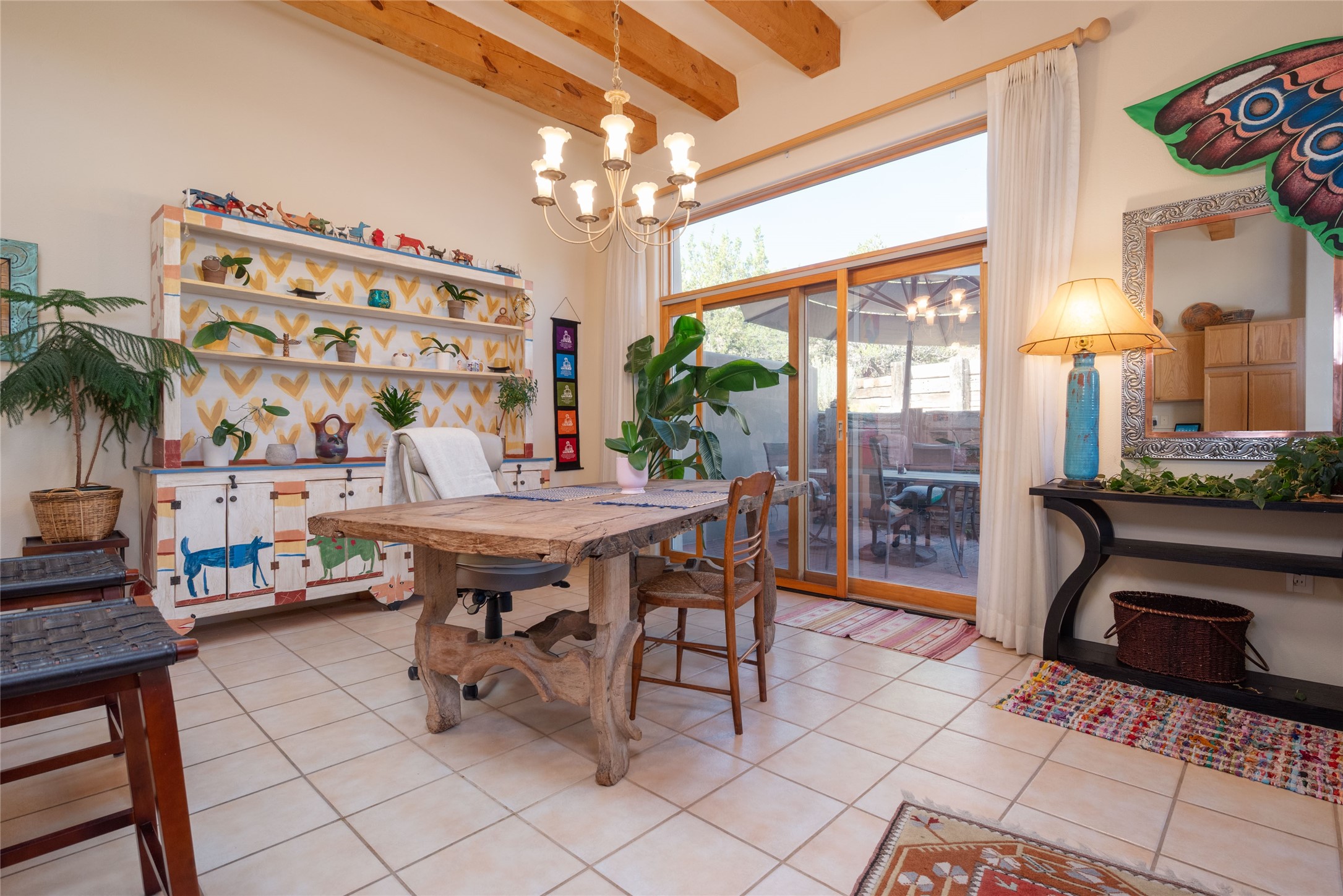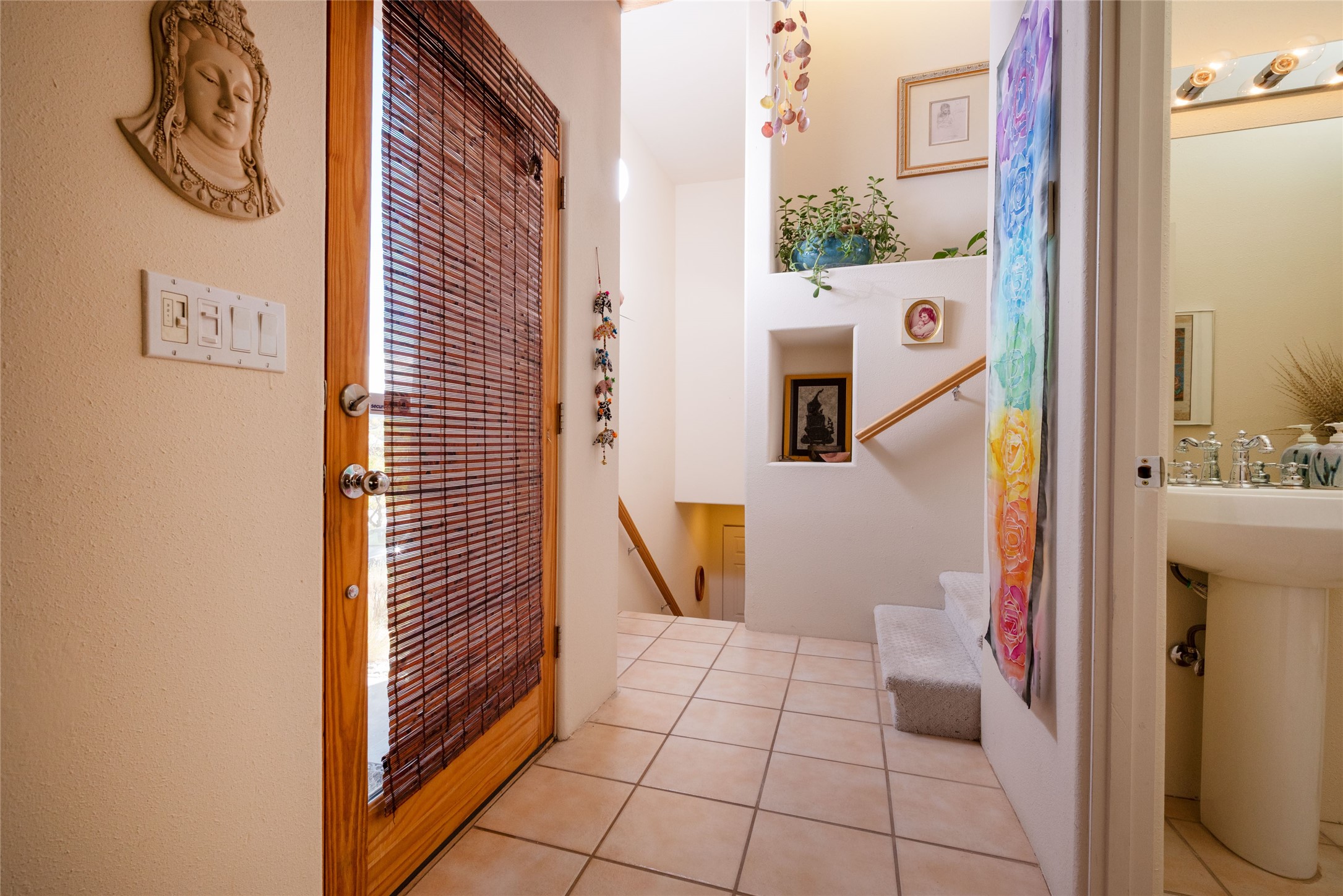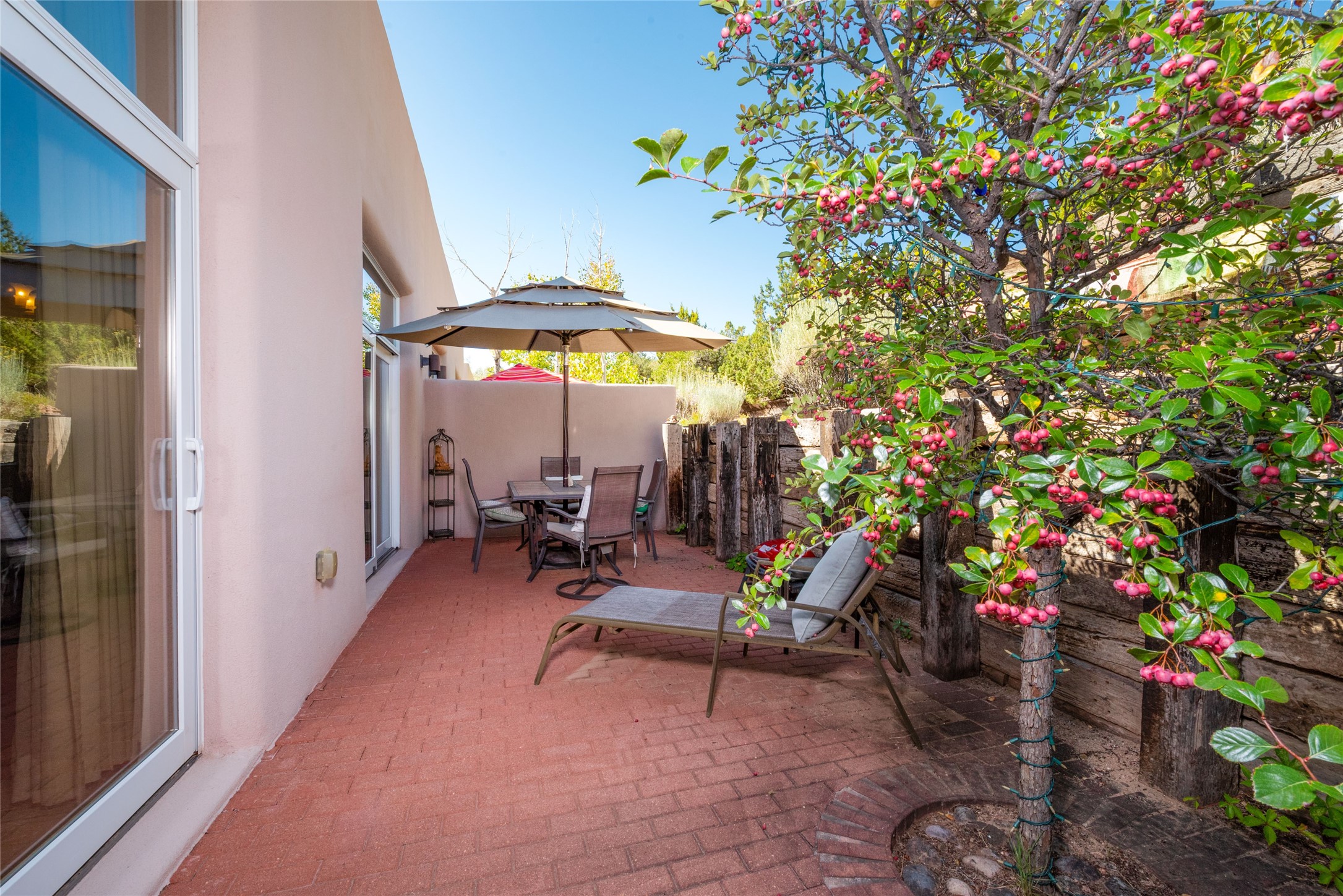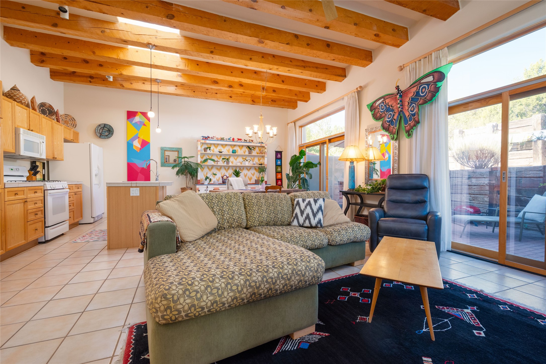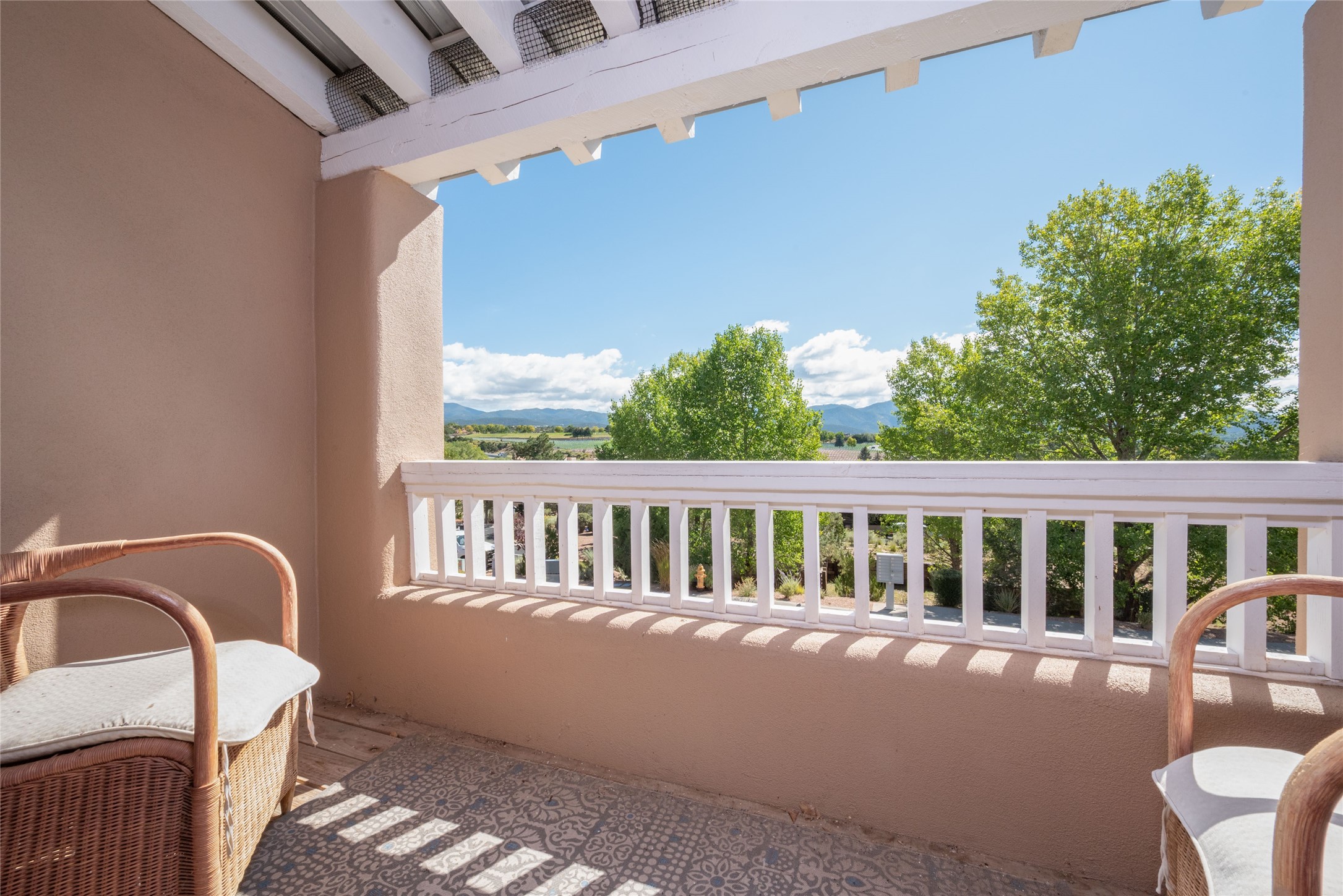 Minutes to De Vargas Mall, Down Town Plaza and Highway 285/84 .This light filled Townhome with spectacular views has it all. The open Living area features Cathedral ceilings, vigas, fireplace and walk out to private courtyard..The radiant floor heating is enhanced with refrigerated ductless A/C heat splits in living room and both upstairs bedrooms. Each Bedroom features en suite baths and the primary bedroom has its own balcony and walk in closet. Other features include skylights, nichos, and parking for guests .. Furniture for sale separately...Don't forget the oversized 2 car garage which offers extra storage space !!