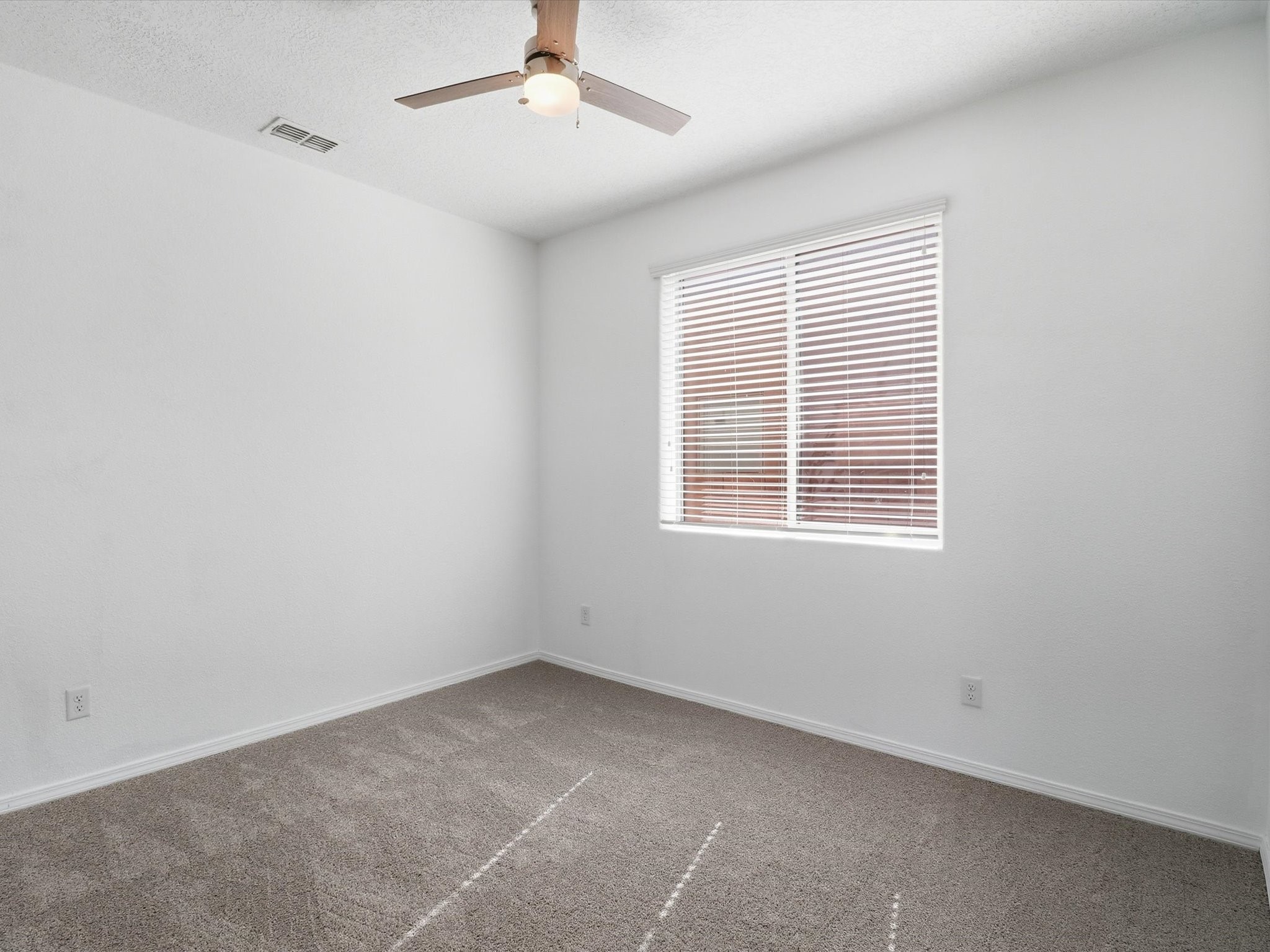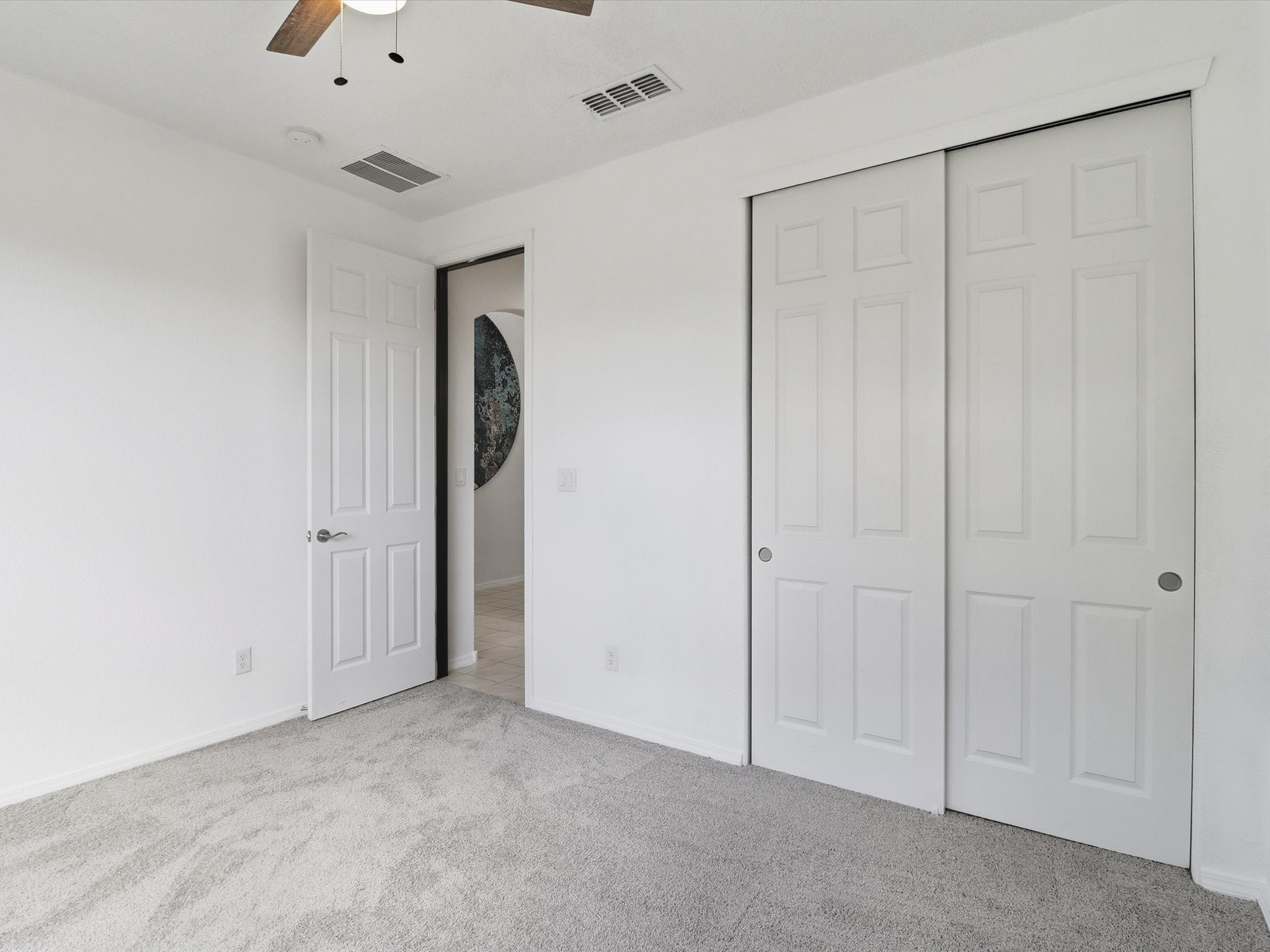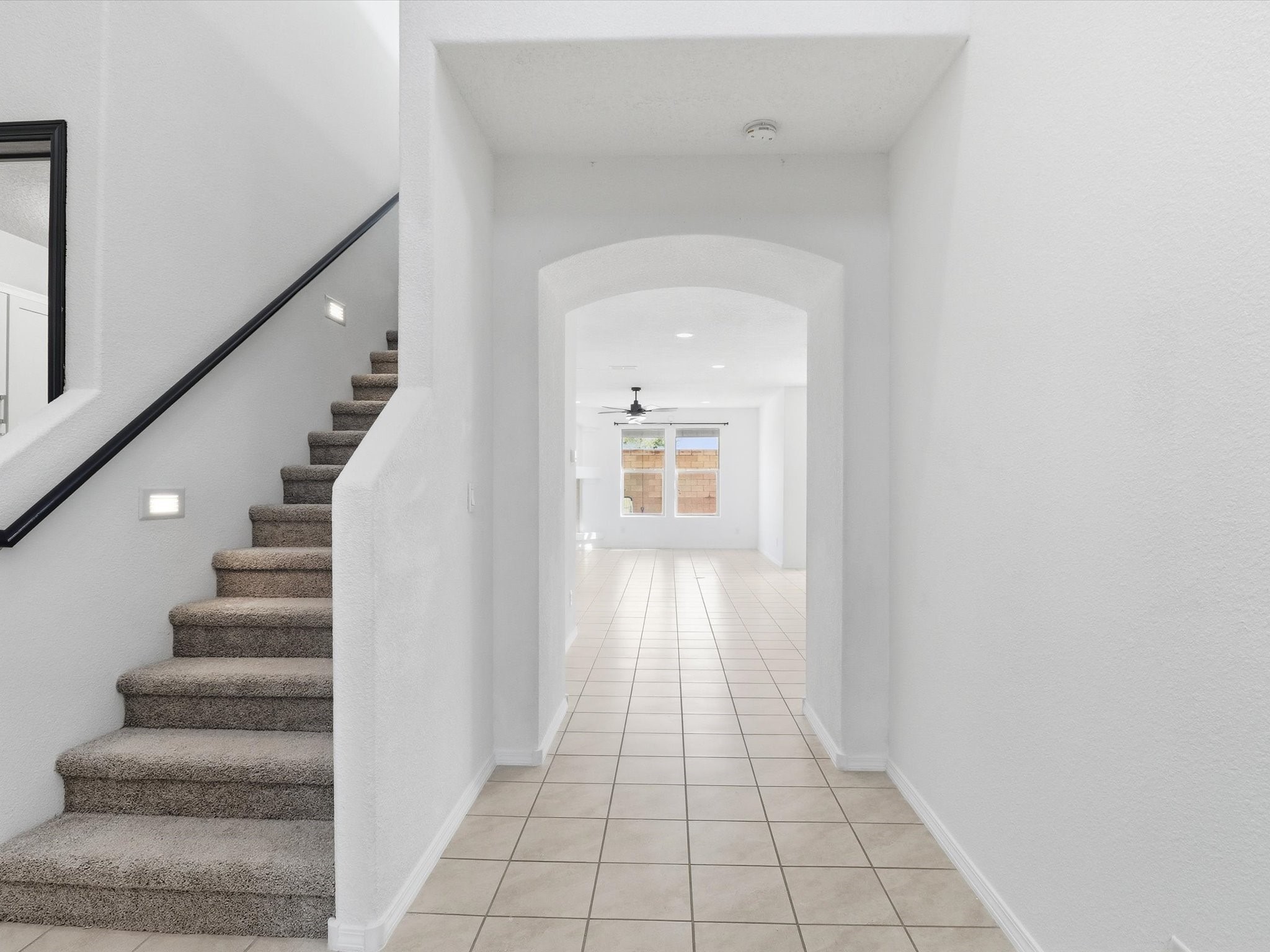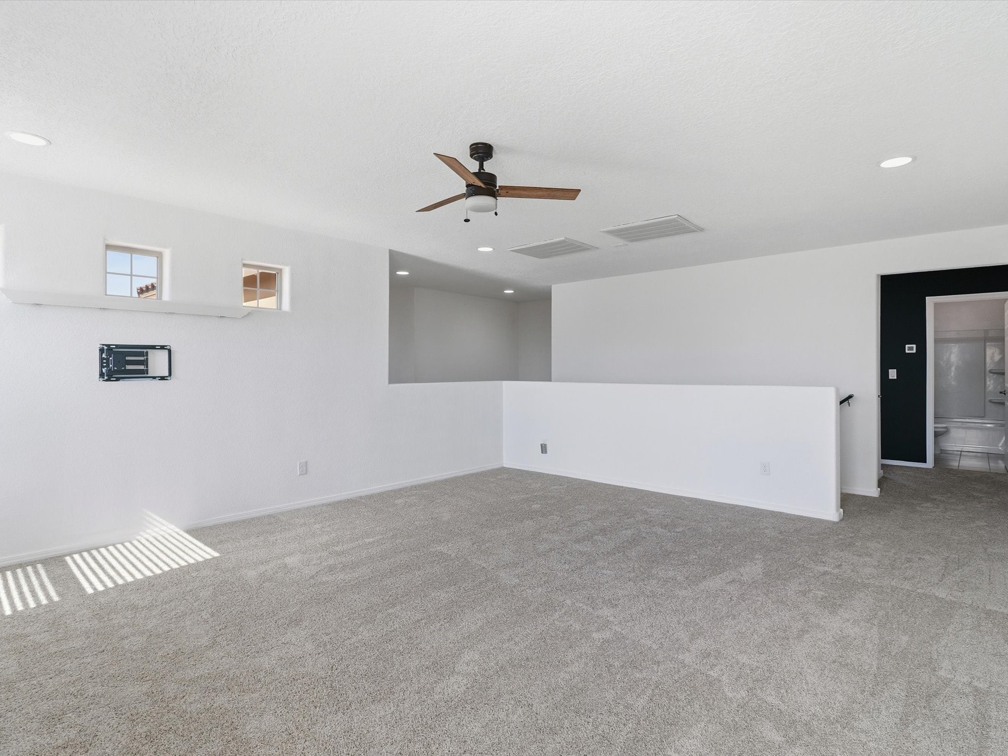 Welcome to your dream home in one of Las Soleras' most desirable neighborhoods -- this well-maintained home offers elegance, functionality, and peace of mind with warranties and new features throughout.This home has a brand-new carpet, ceiling fans in every room, and upgraded 8-foot doors, adding a touch of sophistication and spaciousness throughout. The Kitchen is with granite countertops, new backsplash, new faucet, and a brand-new refrigerator, while the bathrooms feature quartz vanities, new faucets, and upgraded shower heads.Every detail has been thoughtfully refreshed -- from the new washer and dryer to the WiFi-enabled garage door opener and new weatherproof rubber entryway perfect for winter durability. Enjoy peace of mind with the remainder of the Pulte structural warranty, AC/heater and water heater warranties, and a 6-month refurbishment warranty on the hot tub.The zeroscaped backyard is designed for low-maintenance living, complete with a 50-amp outdoor service, ideal for gatherings or future enhancements. The extended garage provides space for a workshop, and CenturyLink wiring ensures high-speed connectivity. Pet lovers will appreciate the dog door conveniently leading into the garage, while guests will love the ample parking space directly across the home and the upstairs loft with a full bath -- a perfect retreat for visitors or entertainment.Located on a perimeter lot close to mailboxes and neighborhood conveniences, this home embodies modern Santa Fe living with unmatched practicality and style.Move-in ready, fully upgraded, and built to last -- this Las Soleras gem is a rare find you don't want to miss.
