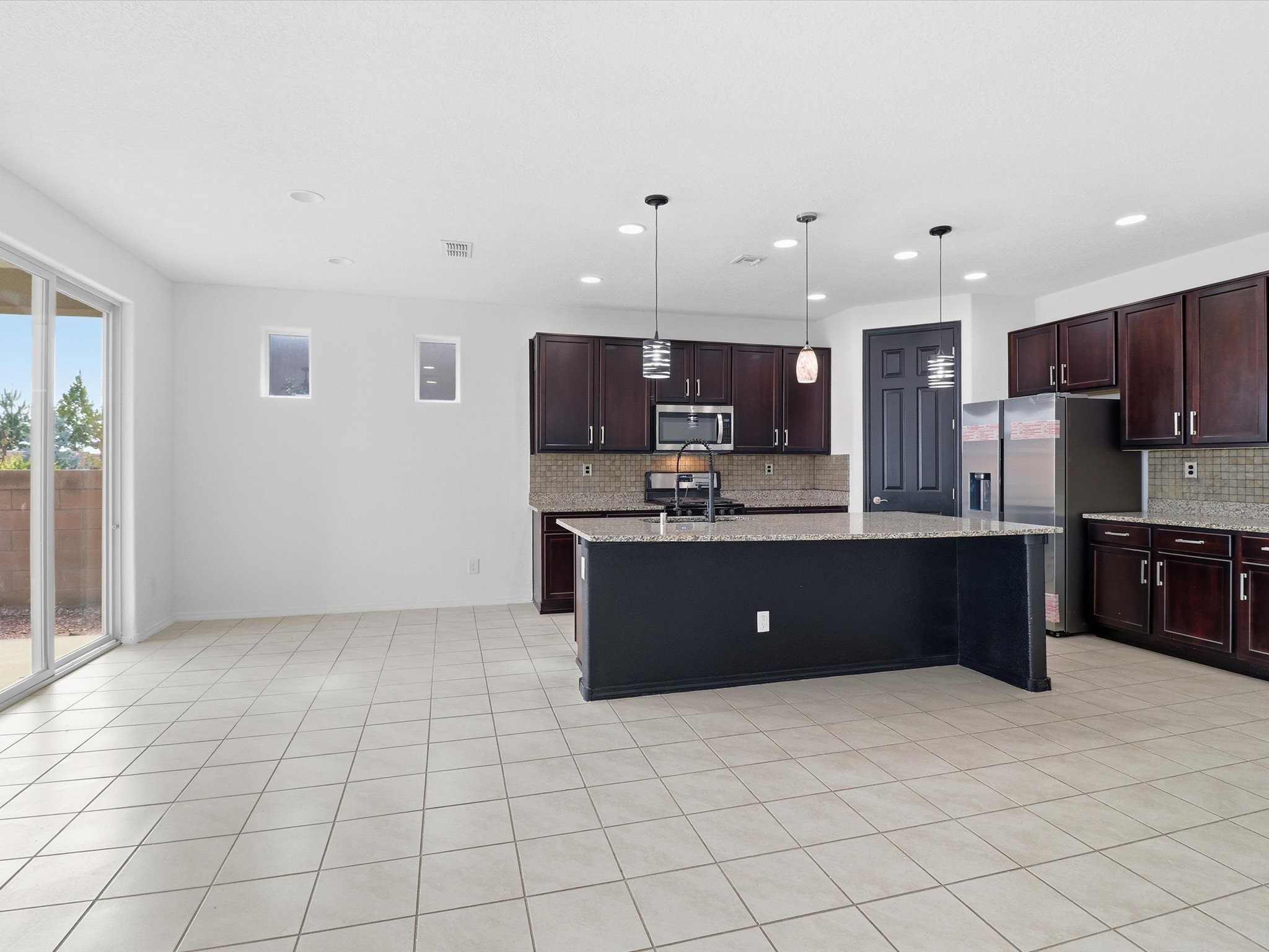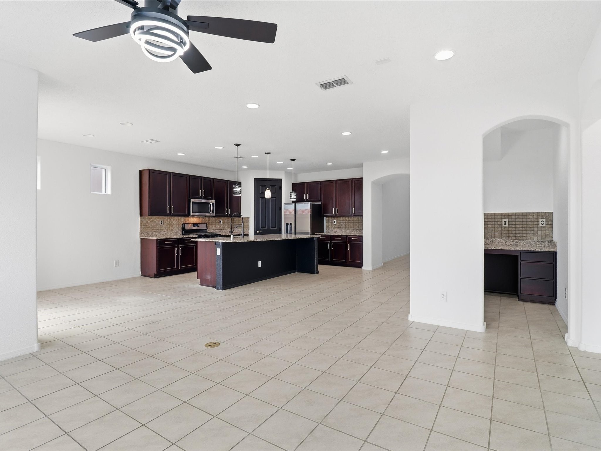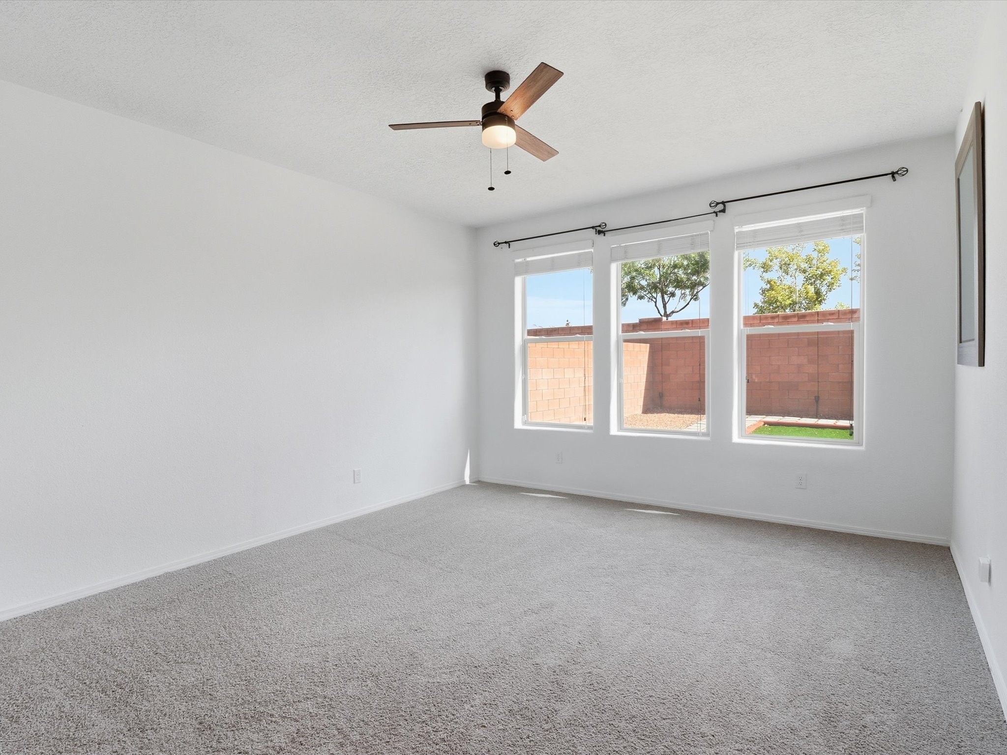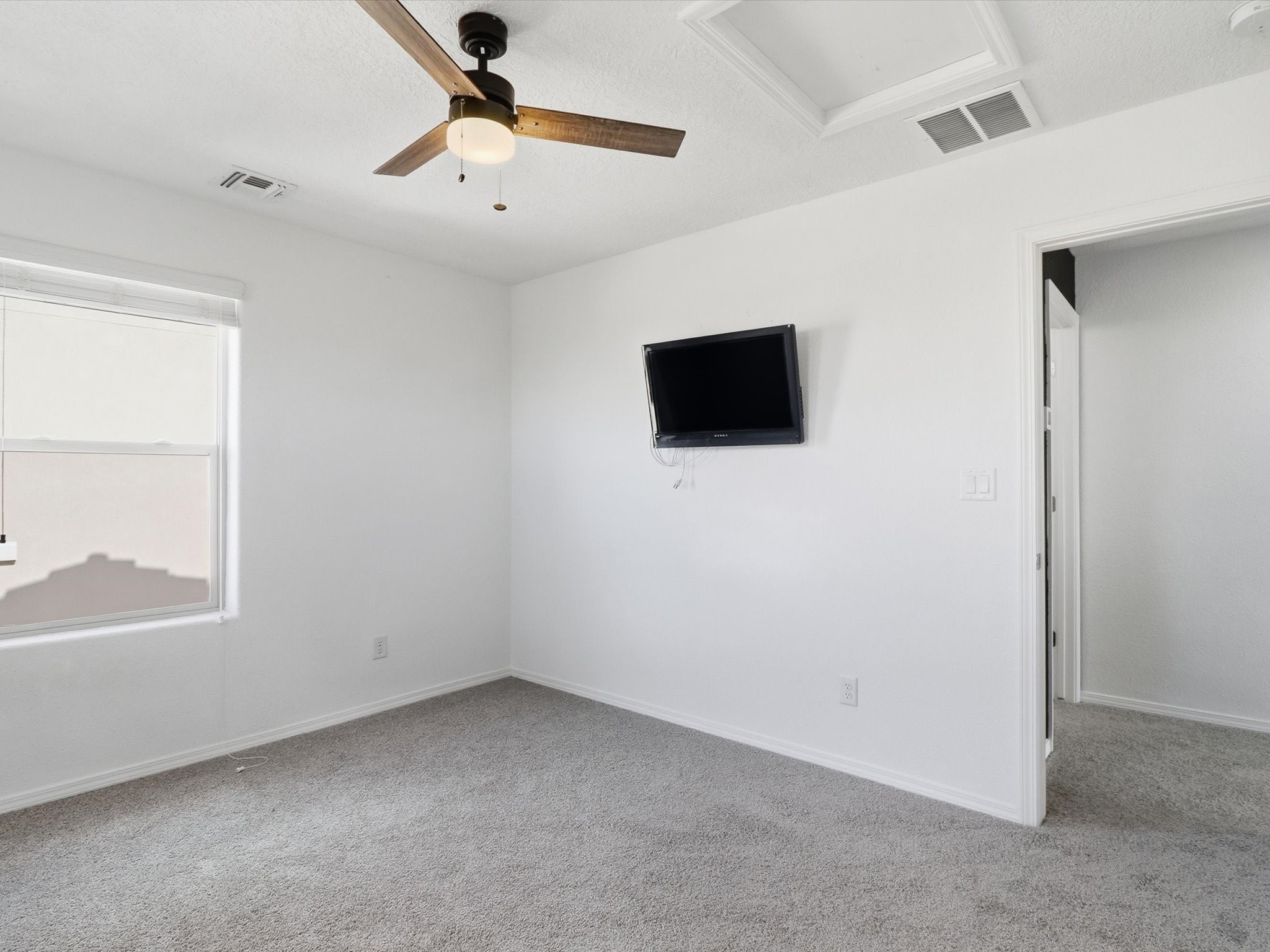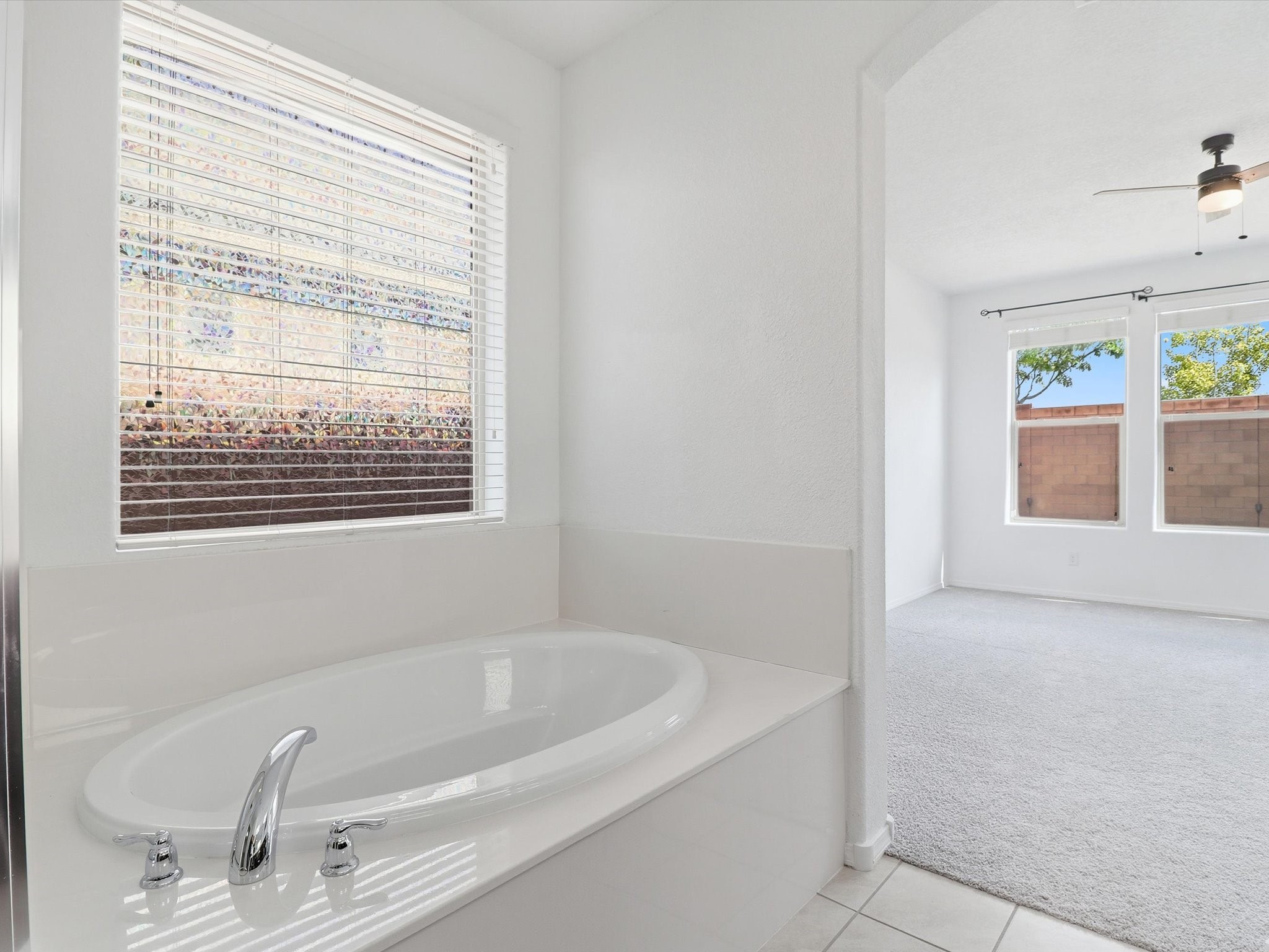 Welcome to your dream home in one of Las Soleras' most desirable neighborhoods -- this well-maintained home offers elegance, functionality, and peace of mind with warranties and new features throughout.This home has a brand-new carpet, ceiling fans in every room, and upgraded 8-foot doors, adding a touch of sophistication and spaciousness throughout. The Kitchen is with granite countertops, new backsplash, new faucet, and a brand-new refrigerator, while the bathrooms feature quartz vanities, new faucets, and upgraded shower heads.Every detail has been thoughtfully refreshed -- from the new washer and dryer to the WiFi-enabled garage door opener and new weatherproof rubber entryway perfect for winter durability. Enjoy peace of mind with the remainder of the Pulte structural warranty, AC/heater and water heater warranties, and a 6-month refurbishment warranty on the hot tub.The zeroscaped backyard is designed for low-maintenance living, complete with a 50-amp outdoor service, ideal for gatherings or future enhancements. The extended garage provides space for a workshop, and CenturyLink wiring ensures high-speed connectivity. Pet lovers will appreciate the dog door conveniently leading into the garage, while guests will love the ample parking space directly across the home and the upstairs loft with a full bath -- a perfect retreat for visitors or entertainment.Located on a perimeter lot close to mailboxes and neighborhood conveniences, this home embodies modern Santa Fe living with unmatched practicality and style.Move-in ready, fully upgraded, and built to last -- this Las Soleras gem is a rare find you don't want to miss.
