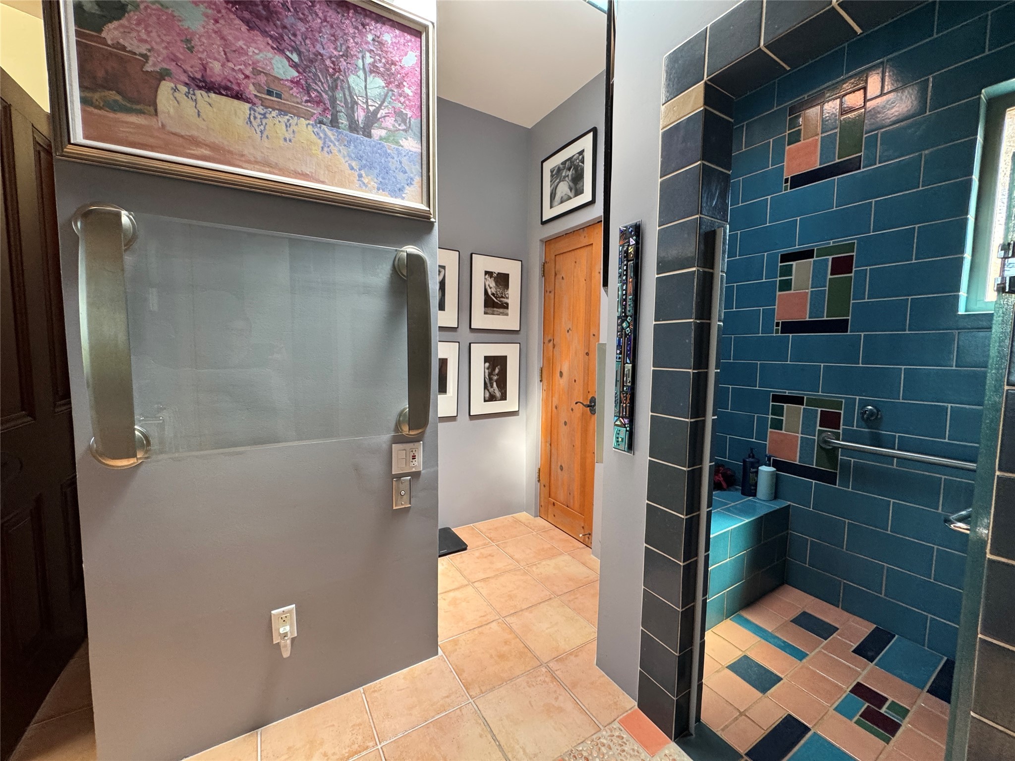 Come discover the beauty of 67 Vallecito Road. This dreamy Santa Fe home is on 3.5 acres with great mountain views only 10 minutes outside of Santa Fe. The home has 3 bedrooms plus a flex room that could be used as an office or additional bedroom with a closet and wood burning kiva fireplace. Other custom features include: Radiant in-floor heating, metal clad insulated wood windows, Italian Tile and Berber Carpet, custom crafted wood interior doors, 3 brick paved portals, viga ceilings with herringbone pine decking and latillas, and 6 custom designed masonry fireplaces. Check out the exquisite chef's kitchen with a large kitchen island, Wolf gas stove, large refrigerator with built-in wine cooler. The interior doorways with scalloped carved archways, and thick recessed wall and nichos give a warm and unique feel to this Northern New Mexico home. The living room and dining rooms flow together nicely and both have doors leading to the outside portals that wrap around the back of the house. There is a dreamy walled patio with a private garden off the dining room that includes a goldfish pond with waterfall, perfect for cozying up with a good book or stargazing at night. The main bedroom also features a fireplace, large soaking tub with mountain views and it's own private portal with a peaceful water feature perfect for relaxing with that first cup of coffee in the morning. An 1800 gallon cistern system catches the rain water draining off the roof, providing water for the irrigation system throughout the yard. E/V charger in garage. Come see and experience this peaceful, high desert oasis with some of the most beautiful sunsets in the Southwest!