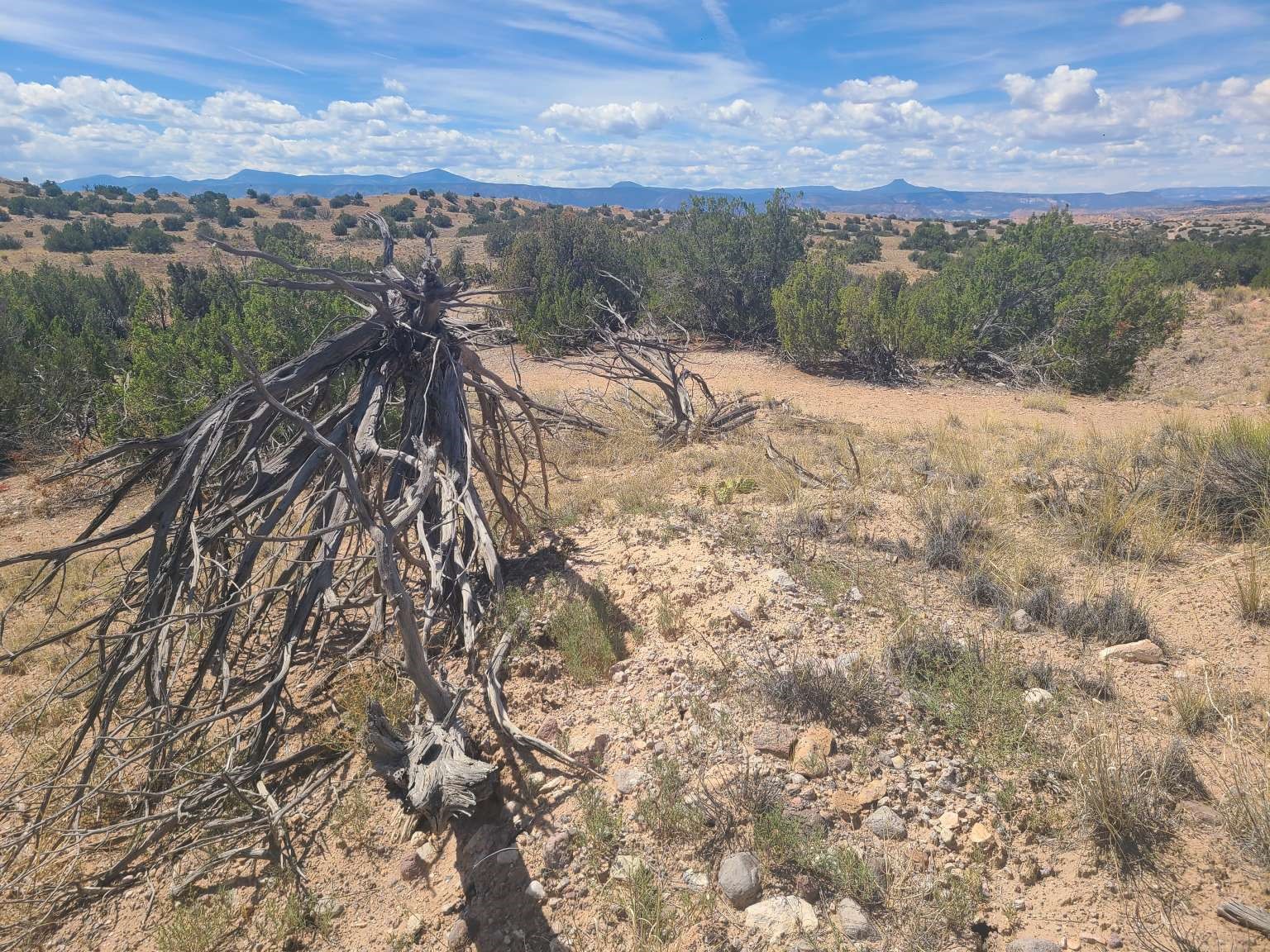 Live where the sky soars and silence reigns. This 5-acre parcel on Fort Defina Road in Abiqui, NM, offers a rare opportunity to claim your own slice of the high desert. With sweeping vistas of mesas, juniper-dusted badlands, and distant mountain ridgelines, this one-of-a-kind site invites you to build a cabin, a tiny home, or a weekend retreat (residential zoning). No power lines run across the land. Perfect for solar or off-grid systems. Water would be by well or delivery. Though remote, access is year-round.Only 20 minutes to the heart of Abiqui, and roughly an hour to Santa Fe, this land harmonizes solitude and accessibility. You'll live among landscapes that inspired Georgia O'Keeffe, with Ghost Ranch, Cerro Pedernal, Abiqui Lake, and Echo Amphitheater nearby. Build at your pace. Embrace the wide-open Southwest. Your retreat, studio, or legacy property awaits.