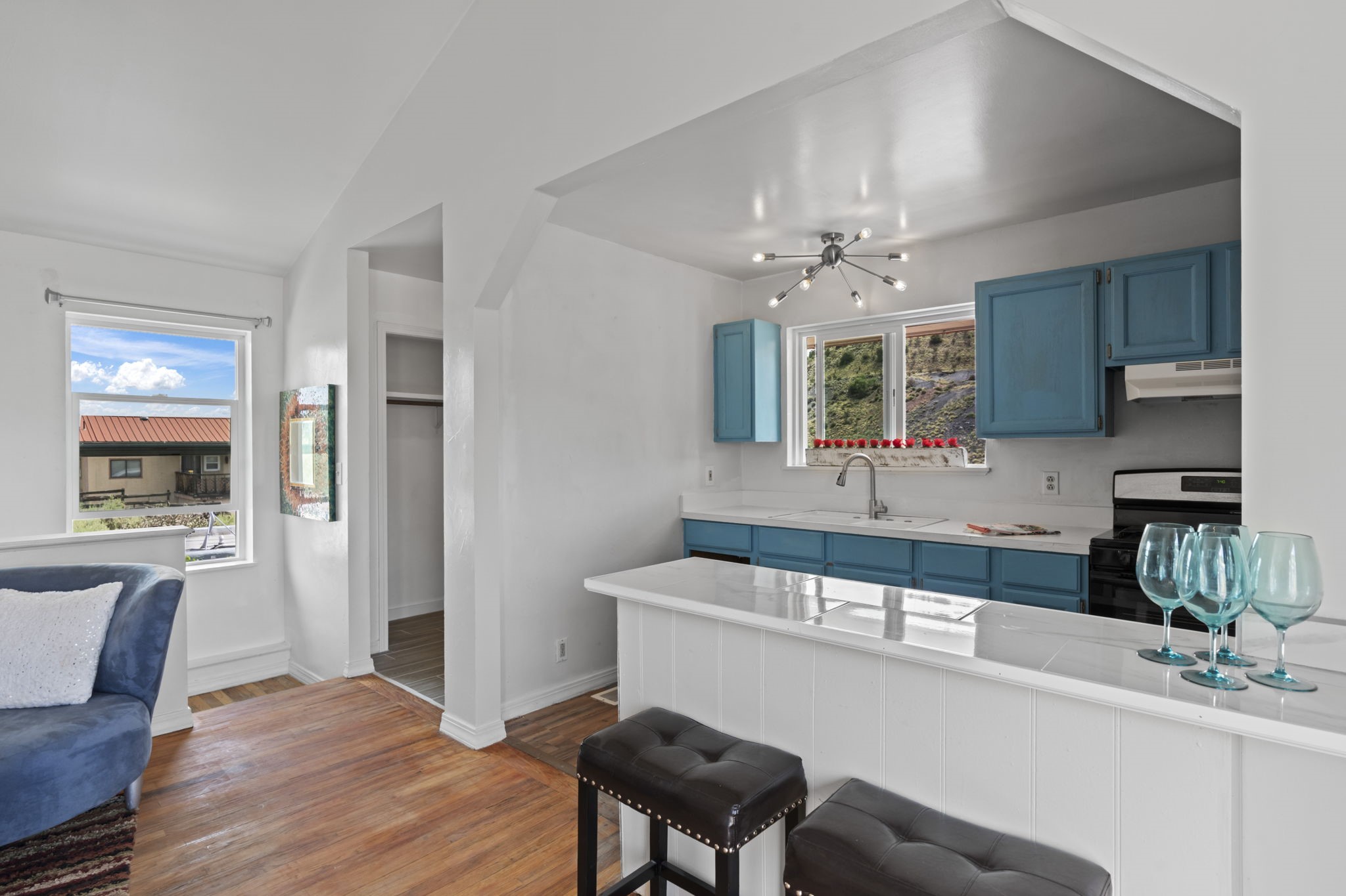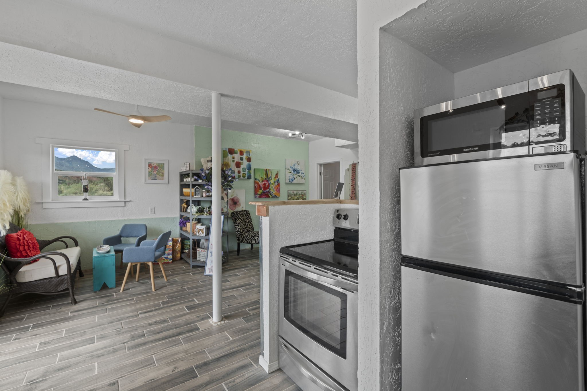 Authentic Magical Madrid Cottage with Creative Spaces! This sun-soaked gem blends possibility with artistic living. The upper level features a one-bedroom, one full bathroom, full kitchen owner's suite with a private deck perfect for morning coffee or stargazing. Below, features a flex space like no other. Open floorplan with one bathroom and full kitchen. Great family home. With a separate entrance, the downstairs is perfect for a full-time rental or a short-term rental. Commercial space to display your unique art, local jewelry, homemade candles, local apparel, or anything your heart desires, while living upstairs and walking to enjoy all that Madrid has to offer! PLUS, lot next door is included. Perfect for additional parking or bldg. Amy Biehl Elem, Milagro Middle, SF High. YOU'RE HOME!