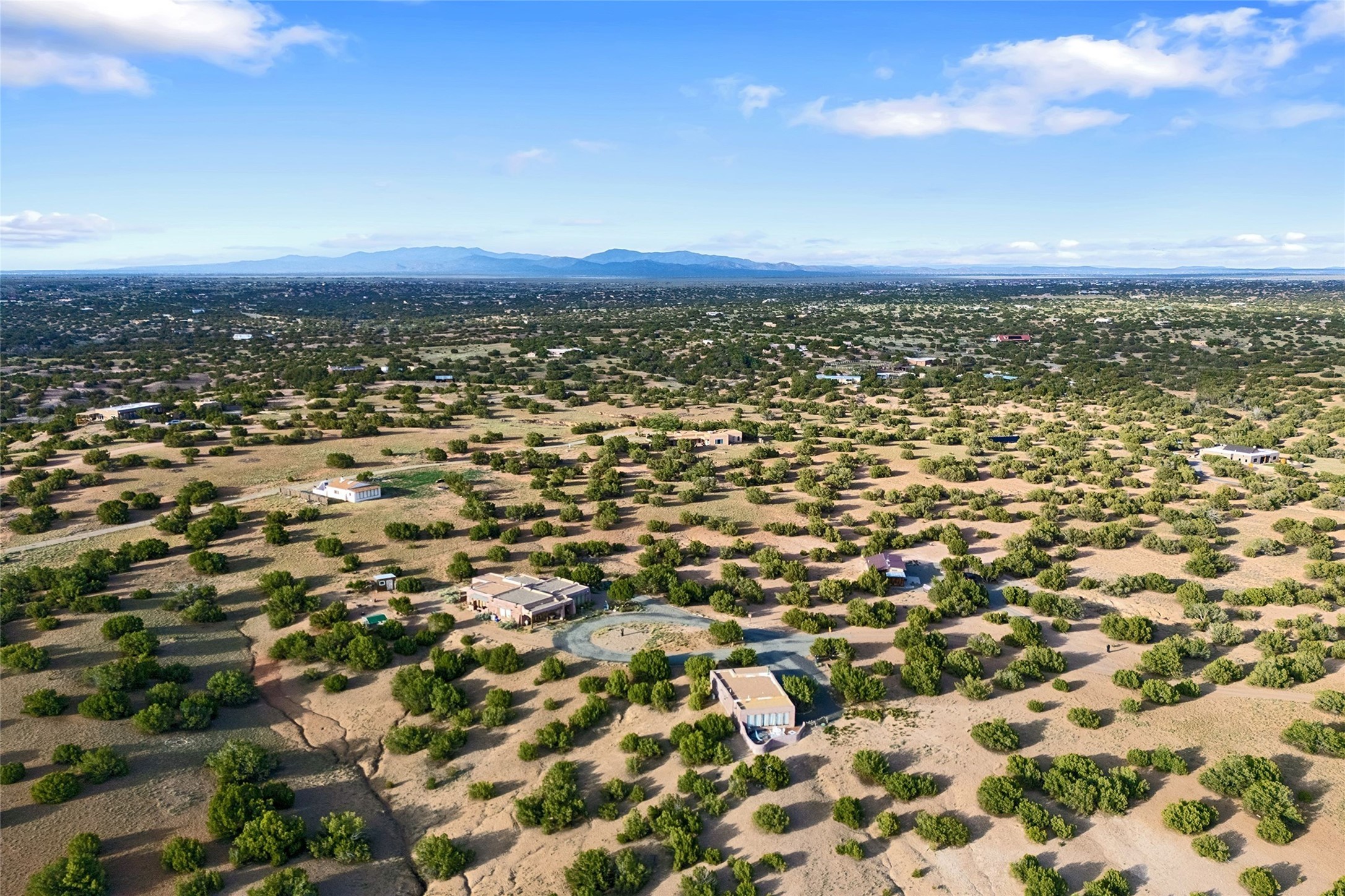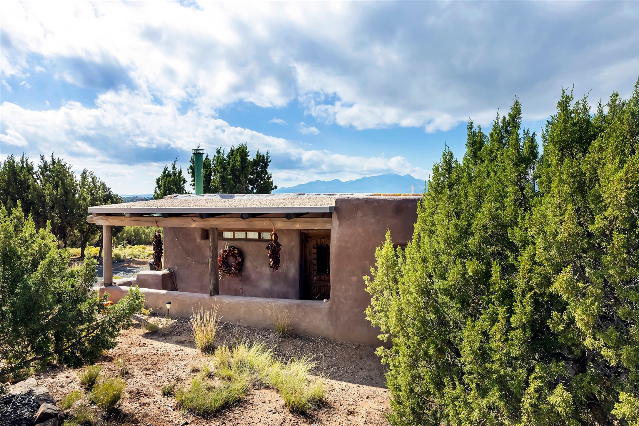 Experience the ultimate Southwestern lifestyle--where vast skies, sweeping mountain vistas, and timeless Santa Fe architecture come together on 12.5 private acres along the historic Turquoise Trail. Just a short drive from Santa Fe, this rolling, historic parcel offers three distinct structures: a two-bedroom main house, a one-bedroom guest casita, and an open-plan studio--ideal for an artist's workspace, creative retreat, or flexible additional living space. The main residence blends authenticity and comfort with hallmark Santa Fe craftsmanship. High ceilings with massive round vigas, hand-painted Mexican tile, custom wood doors, and hand-forged ironwork create a home rich in character and warmth. Natural light fills each room, and the easy flow to multiple patios and portals makes outdoor living effortless. From every vantage, the property captures stunning views of surrounding mountain ranges and the endless New Mexico sky--perfect for entertaining, dining alfresco, or quiet reflection. The freestanding one-bedroom, one-bath guest casita offers its own sense of serenity, with multiple outdoor living spaces that frame sweeping views of the Ortiz Mountains. Ideal for guests or extended stays, it provides privacy while keeping nature close at hand. The nearby studio, with its open-concept design, dedicated bedroom space, kitchen, and inspiring light, is a dream space for artists, writers, or anyone seeking a creative sanctuary. Rooted in history, this land was once part of the ancient San Marcos Pueblo, offering a deep sense of place and tranquility. Here, privacy, beauty, and authenticity define daily life--all within easy reach of Santa Fe's renowned culture, dining, and galleries.
