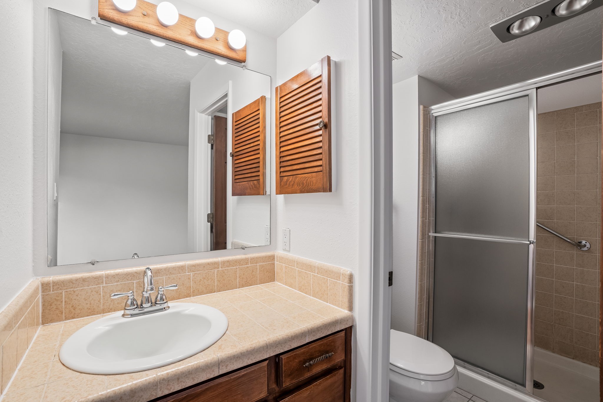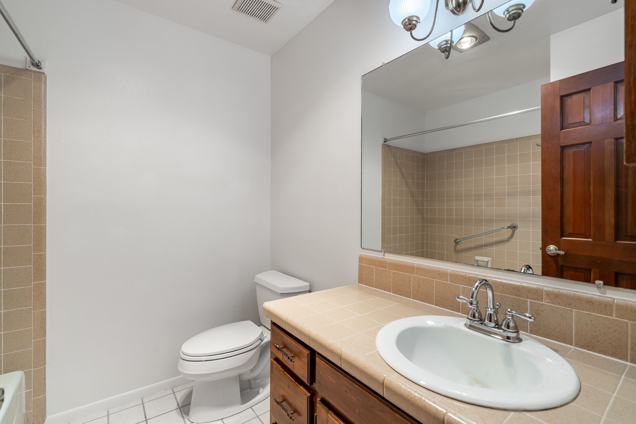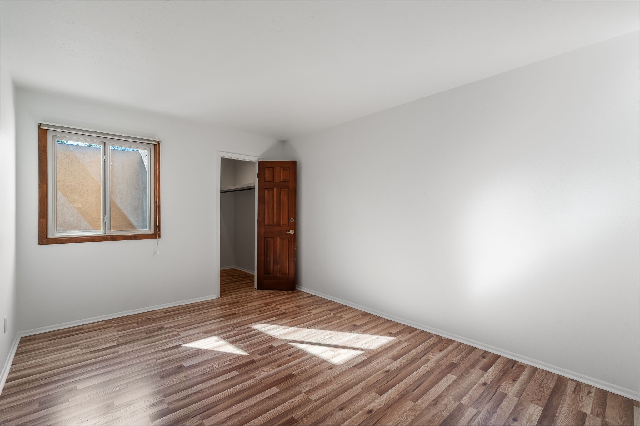 Welcome home to this beautifully refreshed single-story townhouse offering 2 bedrooms, an office, and timeless Santa Fe charm. Step through the inviting blue gate into a brick courtyard, where a sense of warmth and tranquility sets the tone for what's inside.Freshly painted throughout and featuring new laminate flooring, this home is move-in ready and thoughtfully designed for both comfort and style. Just off the entry hall, you'll find a versatile office--perfect for working from home or creative pursuits.The living room is a true highlight, showcasing a beamed ceiling, corner Kiva fireplace, and sliding doors that open to a spacious covered portal overlooking the backyard. A charming little gate leads directly to a neighborhood walking path, ideal for morning strolls or evening walks.The galley kitchen features tile floors, newer appliances, and a cozy breakfast area filled with natural light. The second bedroom includes a walk-in closet, while the generous primary suite offers a large picture window, walk-in closet, and a private bath.Outside, a detached two-car garage provides convenience and extra storage.Located in Park Plazas, one of Santa Fe's most beloved communities, residents enjoy miles of walking trails, tennis courts, an off-leash dog park, and a community garden--all just minutes from shopping, restaurants, and the Santa Fe Plaza.This home beautifully combines authentic Santa Fe character with modern updates and an unbeatable location. Come see why Park Plazas living is so special!