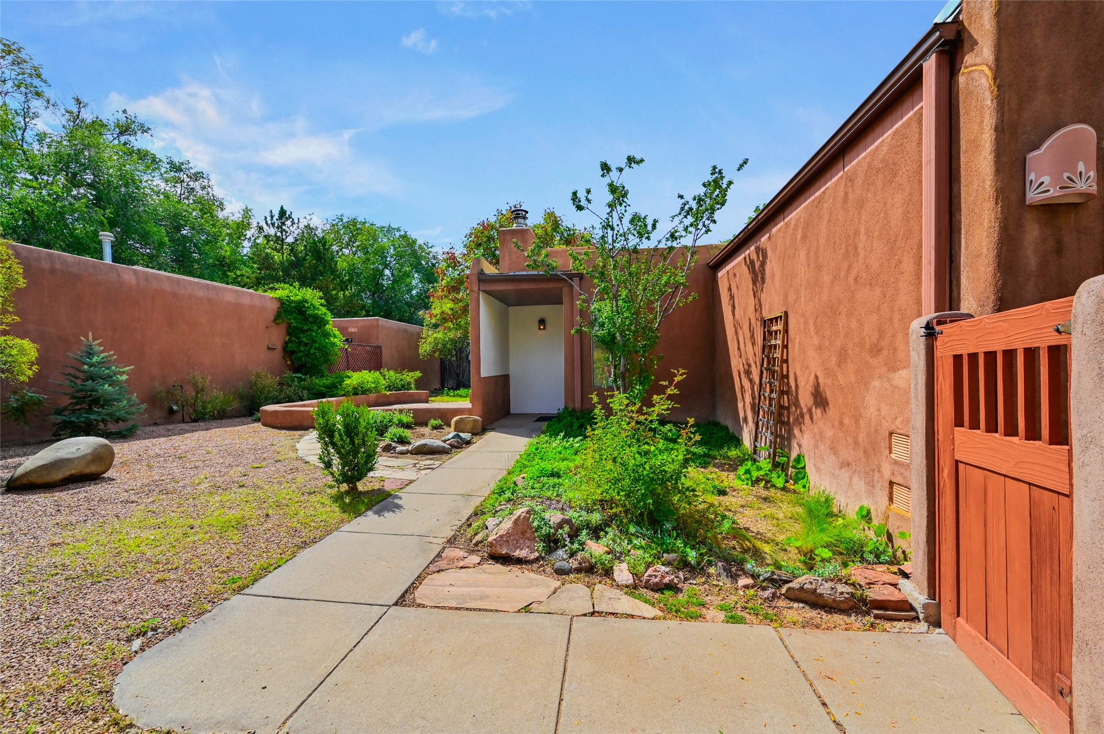 Nestled in the serene Pueblo Alegre neighborhood at the end of a quiet cul-de-sac, this bright and inviting home combines comfort with convenience. Situated opposite a lush park and surrounded by mature fruit trees, a vegetable garden, and a flagstone patio, the outdoor spaces are perfect for relaxation and connecting with nature. Inside, you'll discover new flooring and a well-maintained interior featuring a spacious, open layout and a primary bedroom with natural light and a custom closet. Enjoy easy access to scenic walking and biking along the nearby Santa Fe River Trail. Pueblo Alegre, a beloved subdivision opposite Frenchy's Field City Park, offers two small parks and a children's playground--creating an ideal setting for peaceful living just minutes from all Santa Fe has to offer.